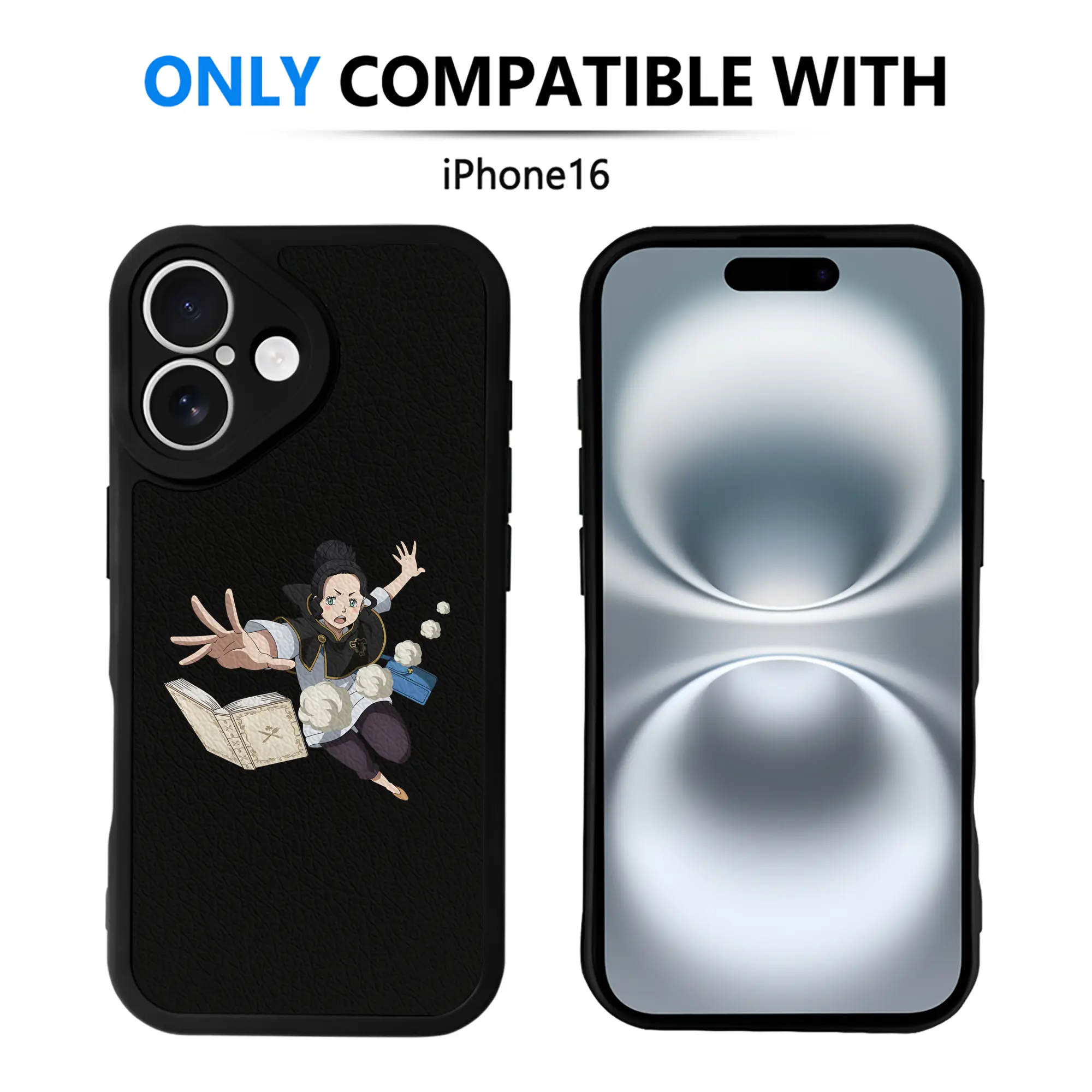 ブラッククローバー グッズ チャーミー・パピットソン - IPhone 16シリーズ対応 ・ シリコンスマホケース ・ レザー調 ・ 高精度フィット ・ 耐衝撃 ・ ワイヤレス充電対応 ・ 精密カット