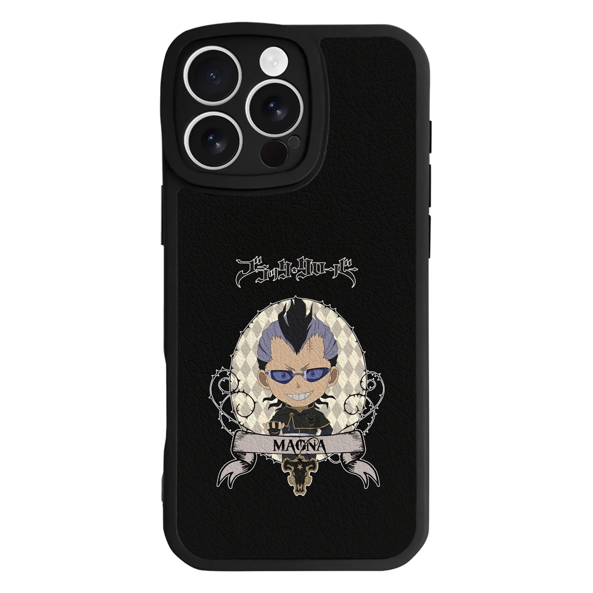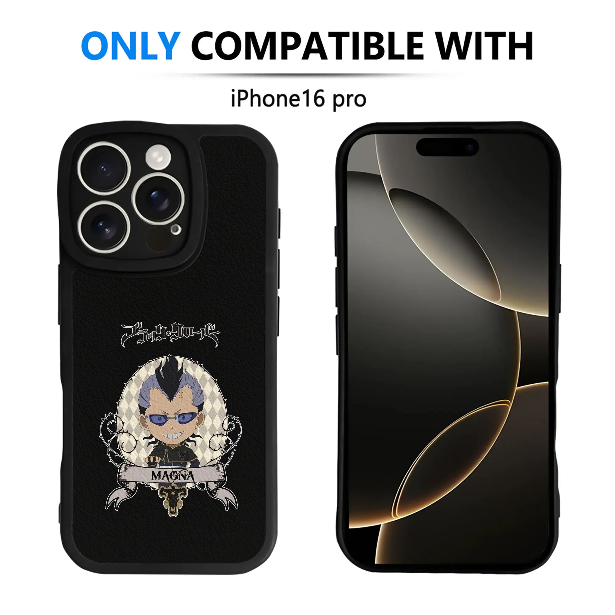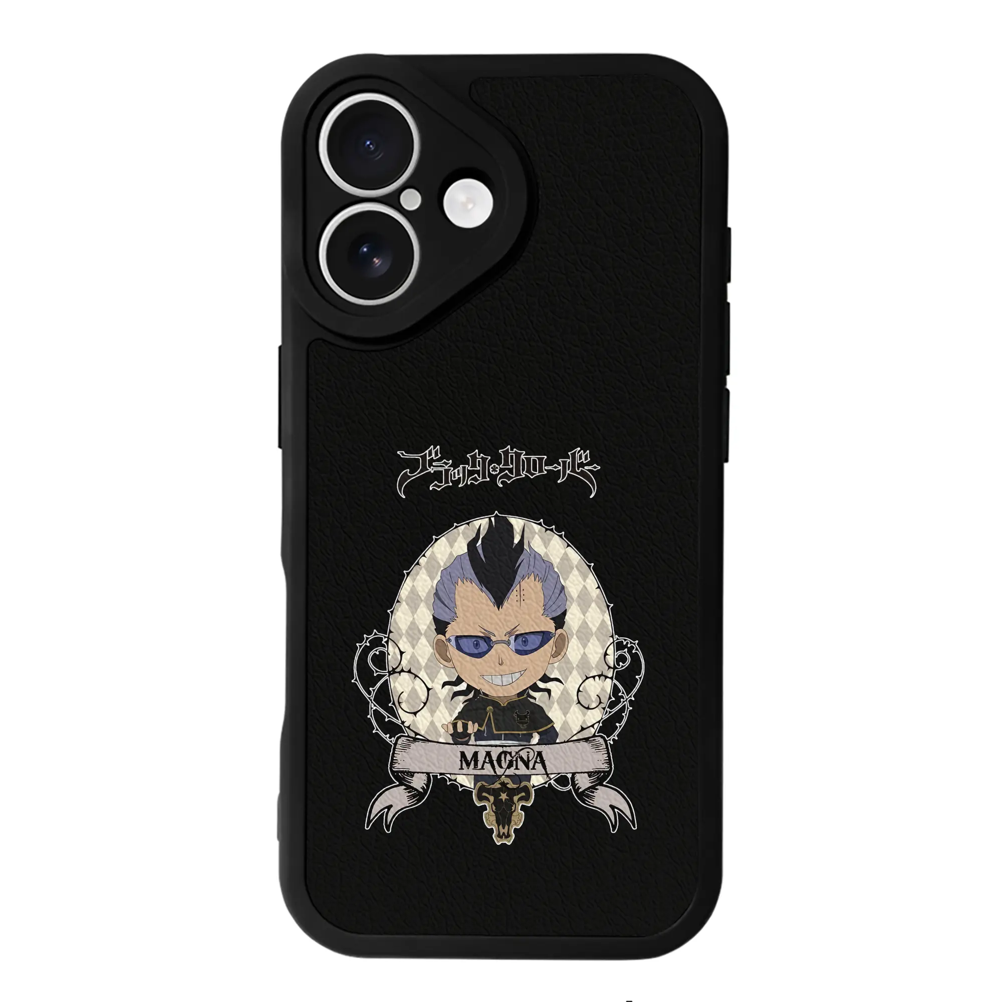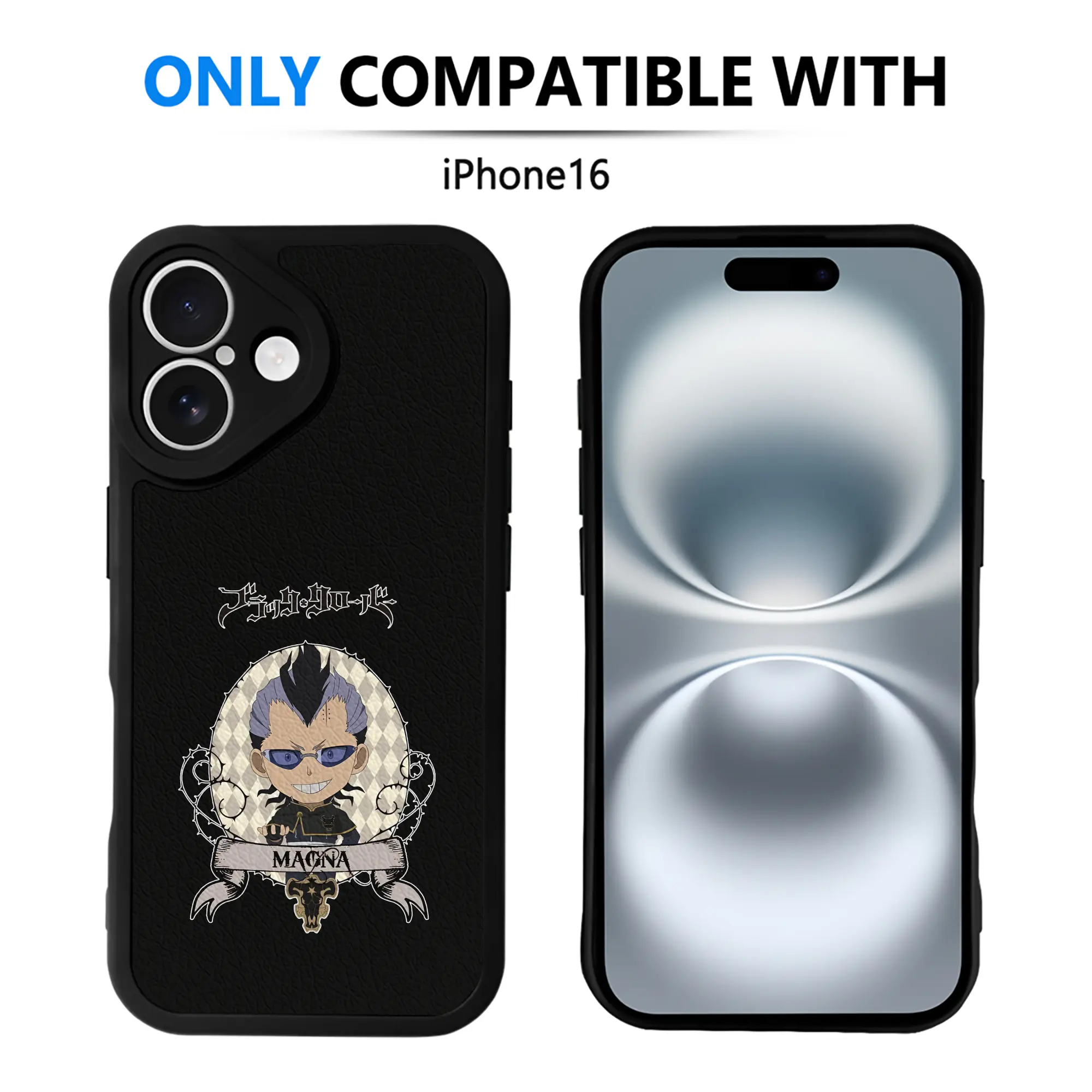 ブラッククローバー グッズ マグナ・スウィング - IPhone 16シリーズ対応 ・ シリコンスマホケース ・ レザー調 ・ 高精度フィット ・ 耐衝撃 ・ ワイヤレス充電対応 ・ 精密カット