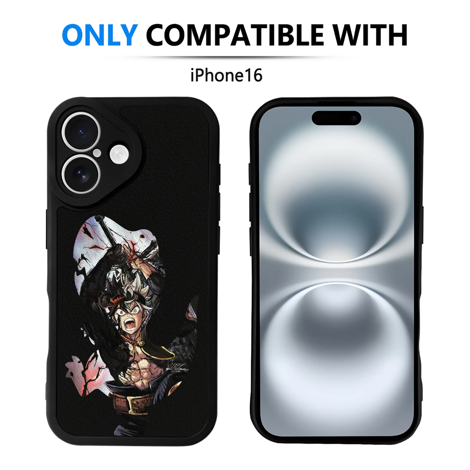 ブラッククローバー グッズ アスタ - IPhone 16シリーズ対応 ・ シリコンスマホケース ・ レザー調 ・ 高精度フィット ・ 耐衝撃 ・ ワイヤレス充電対応 ・ 精密カット
