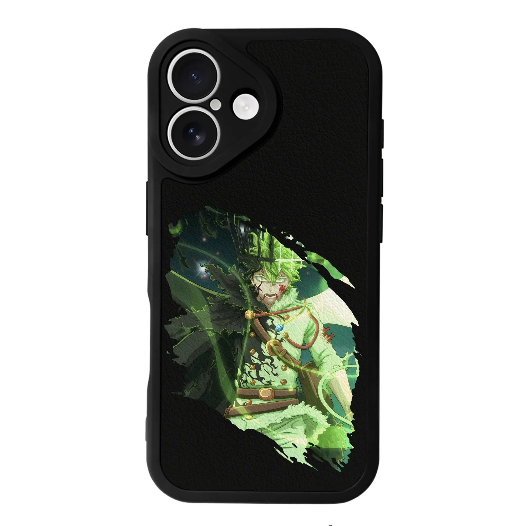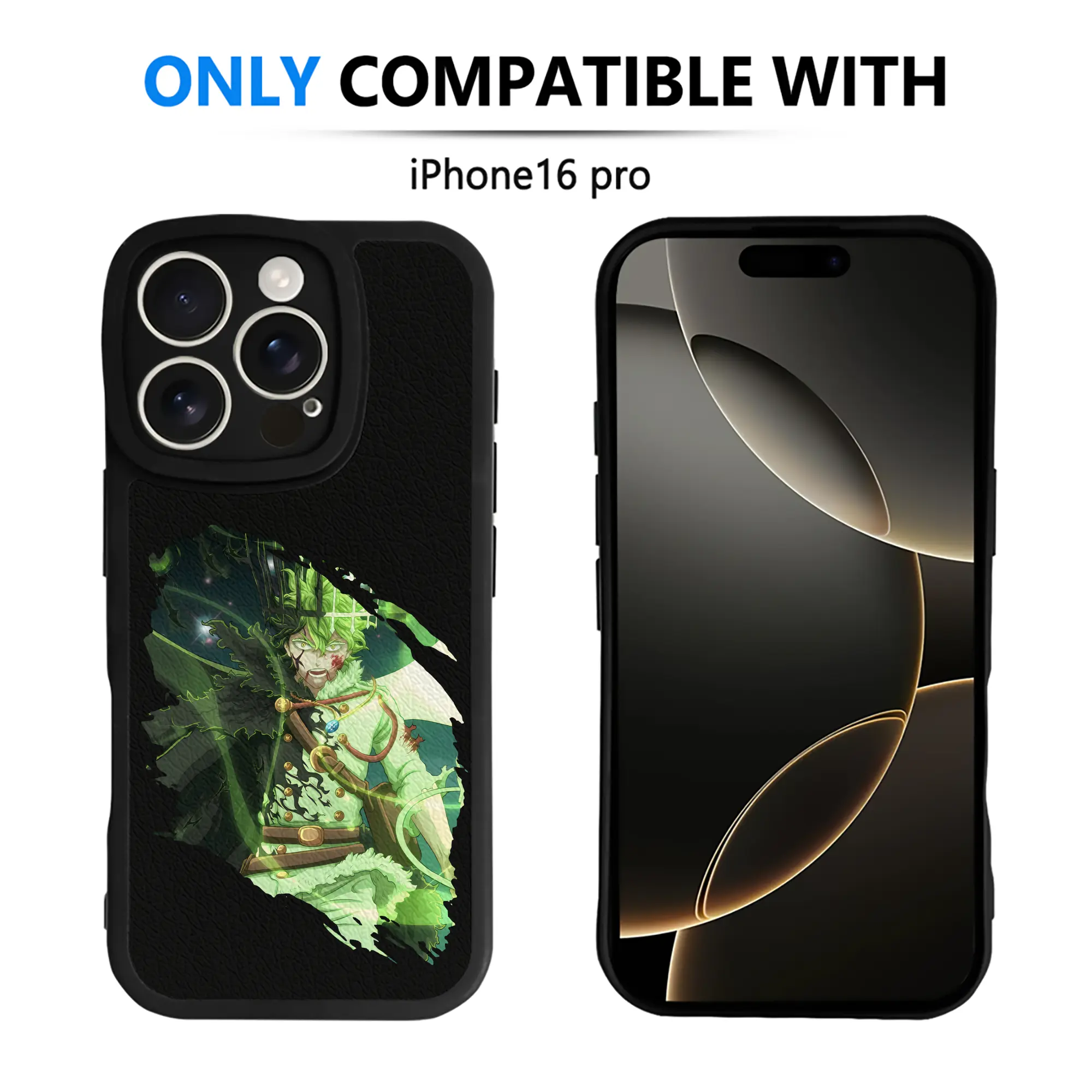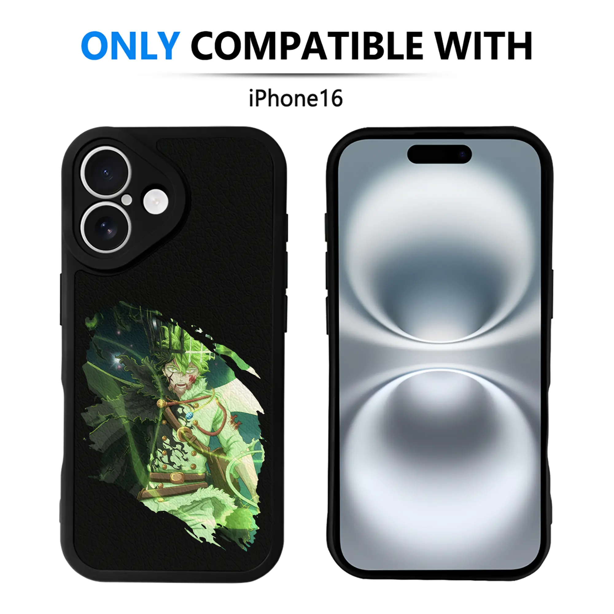 ブラッククローバー グッズ ユノ・グリンベリオール - IPhone 16シリーズ対応 ・ シリコンスマホケース ・ レザー調 ・ 高精度フィット ・ 耐衝撃 ・ ワイヤレス充電対応 ・ 精密カット