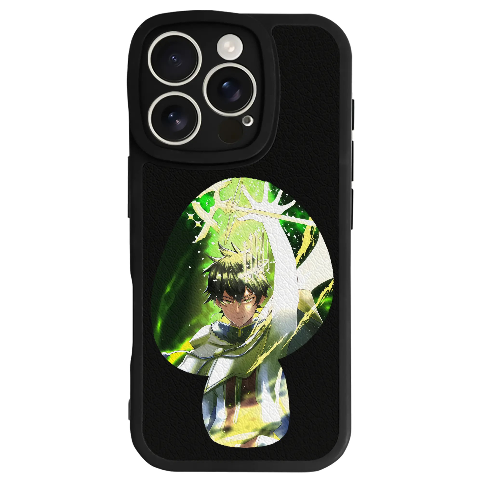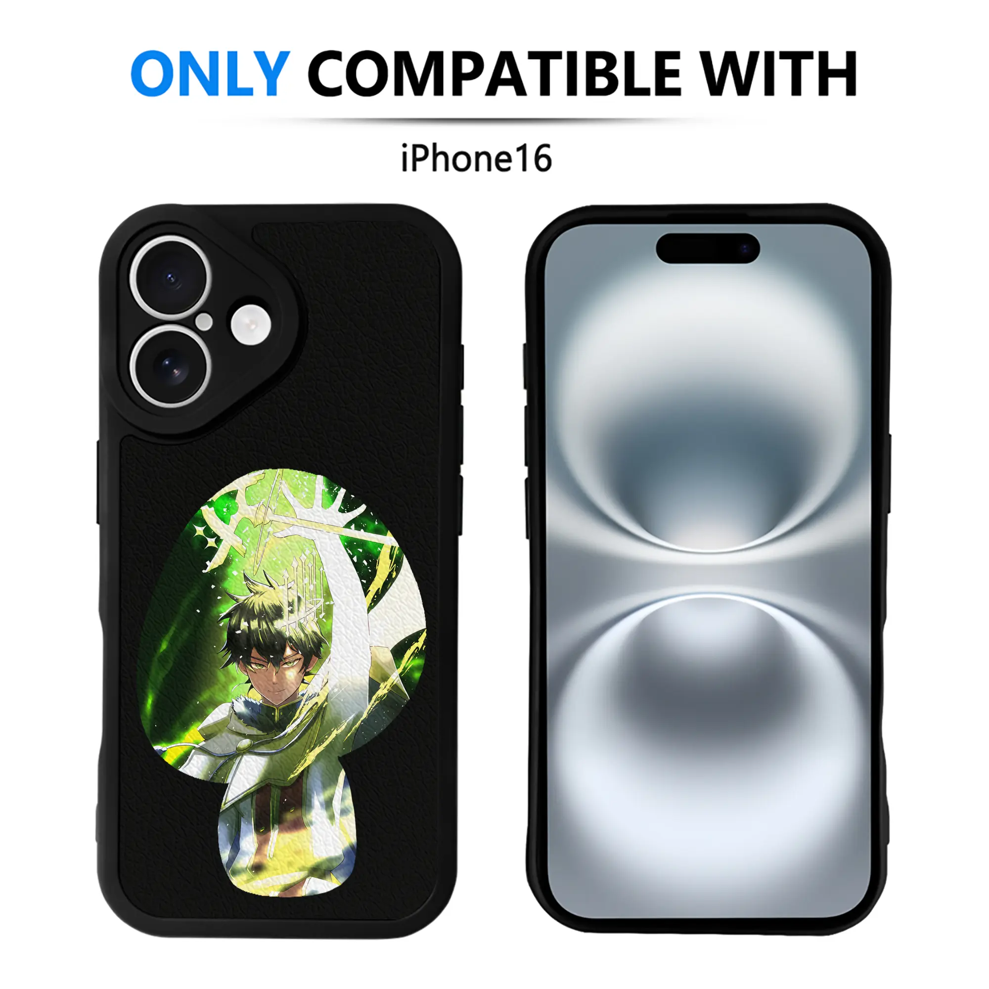 ブラッククローバー グッズ ユノ・グリンベリオール - IPhone 16シリーズ対応 ・ シリコンスマホケース ・ レザー調 ・ 高精度フィット ・ 耐衝撃 ・ ワイヤレス充電対応 ・ 精密カット