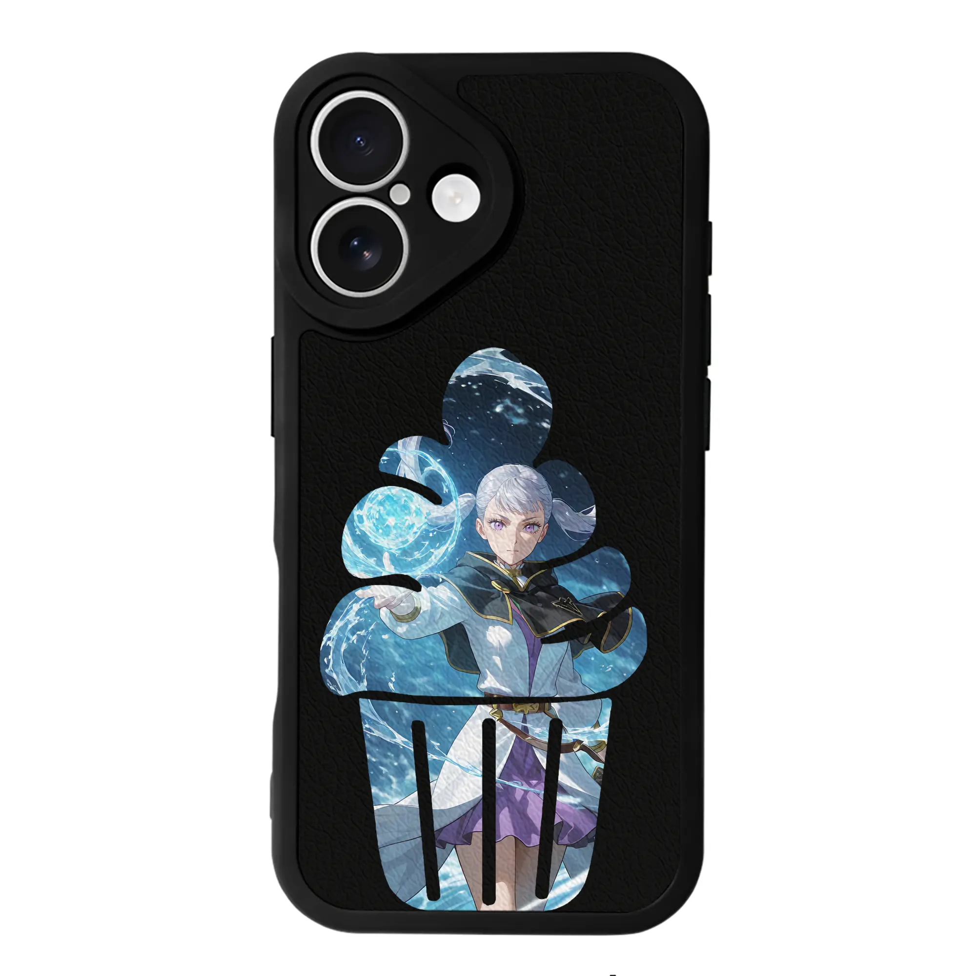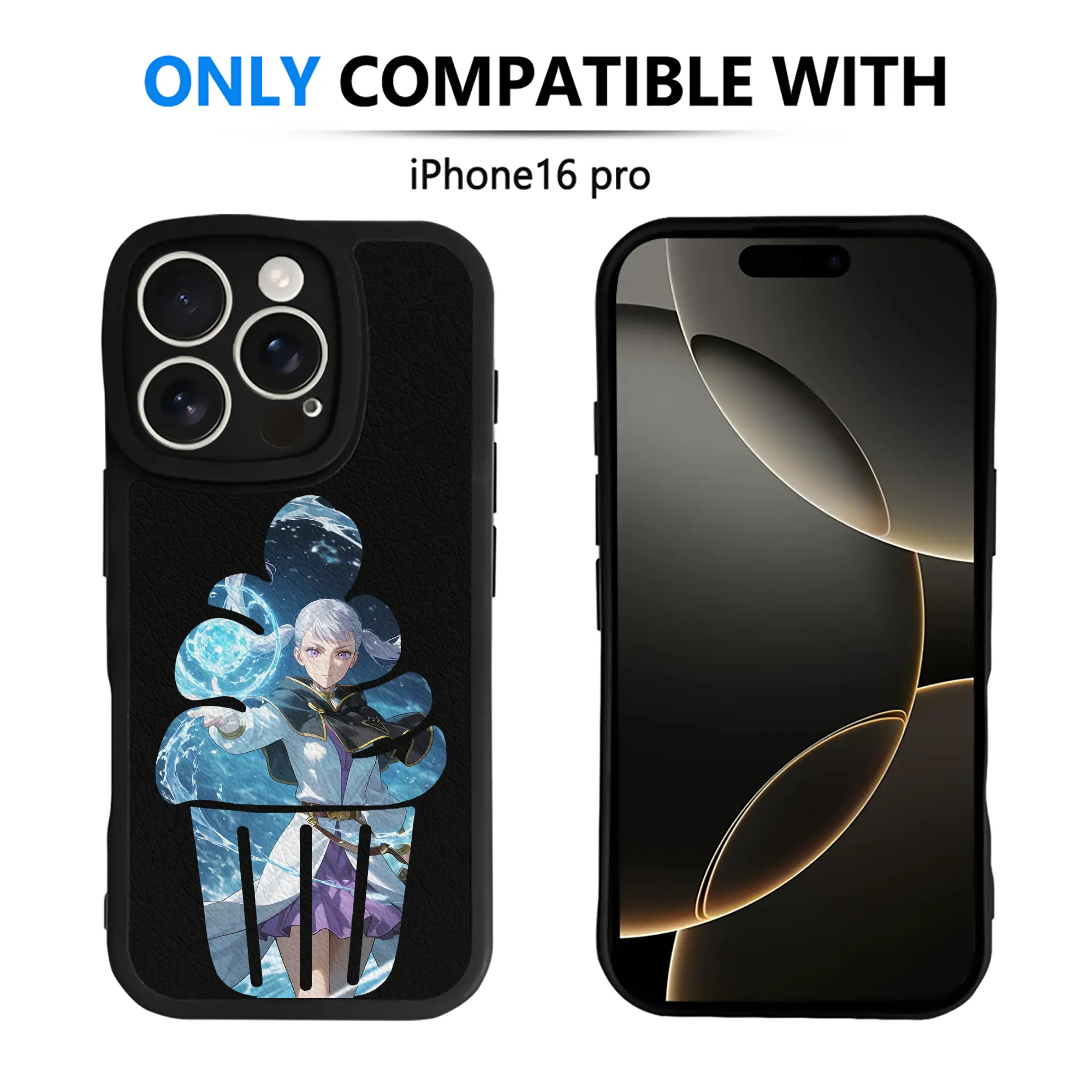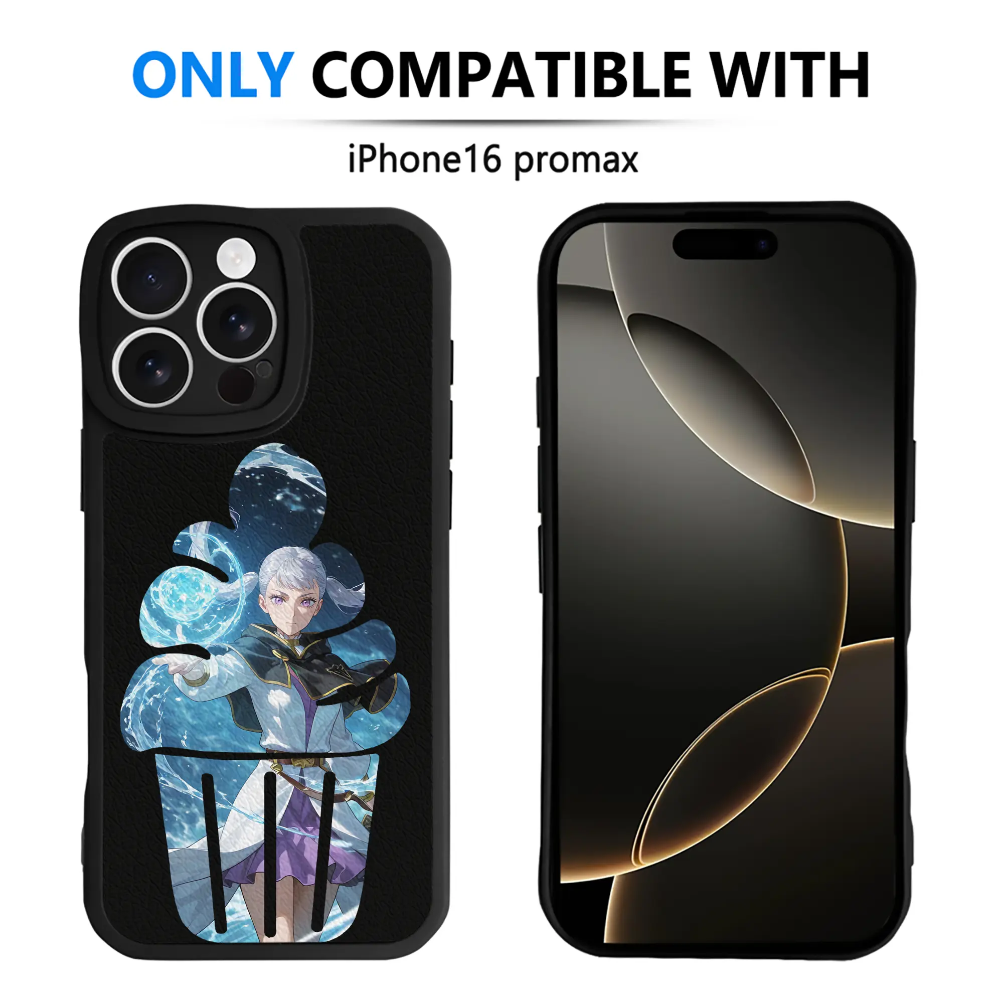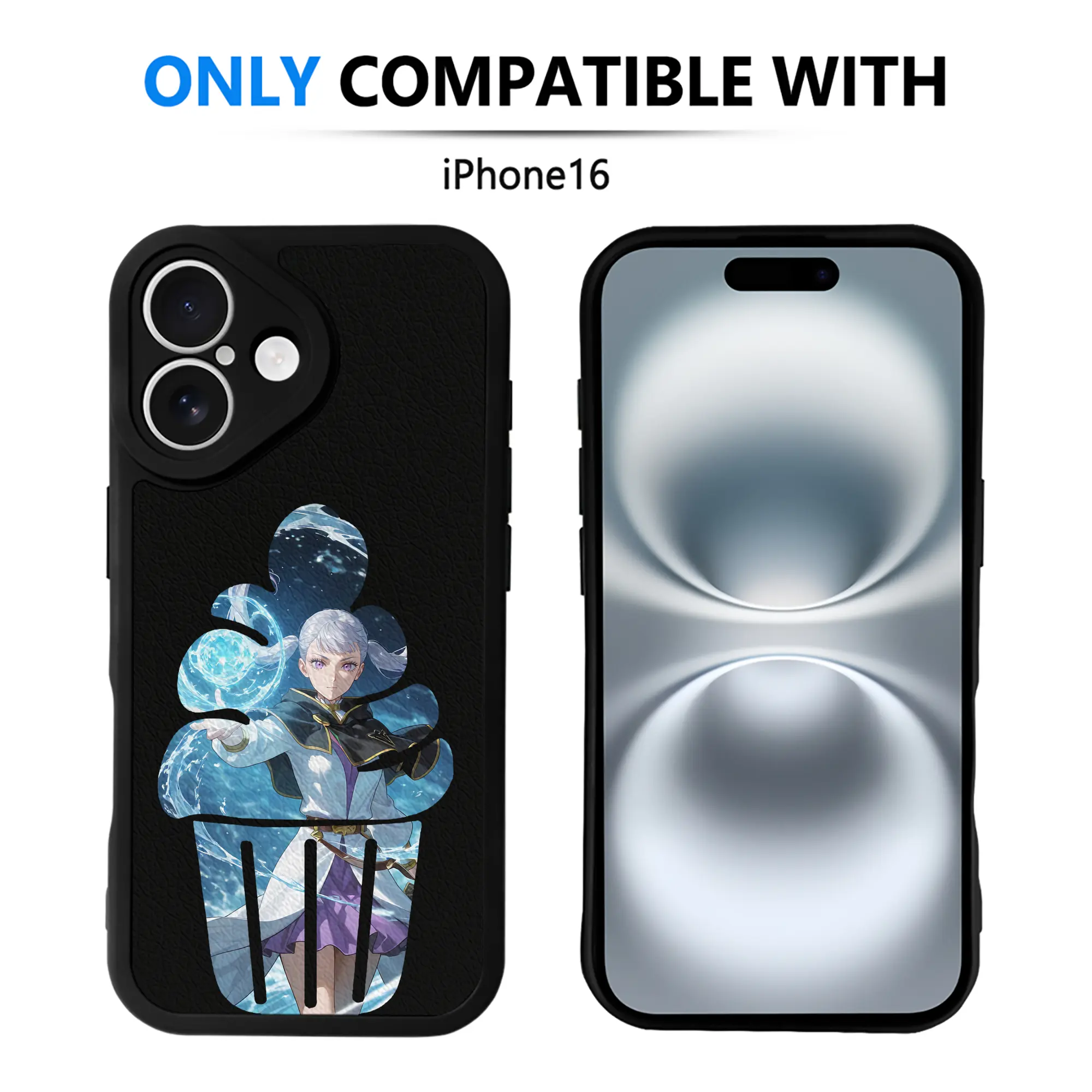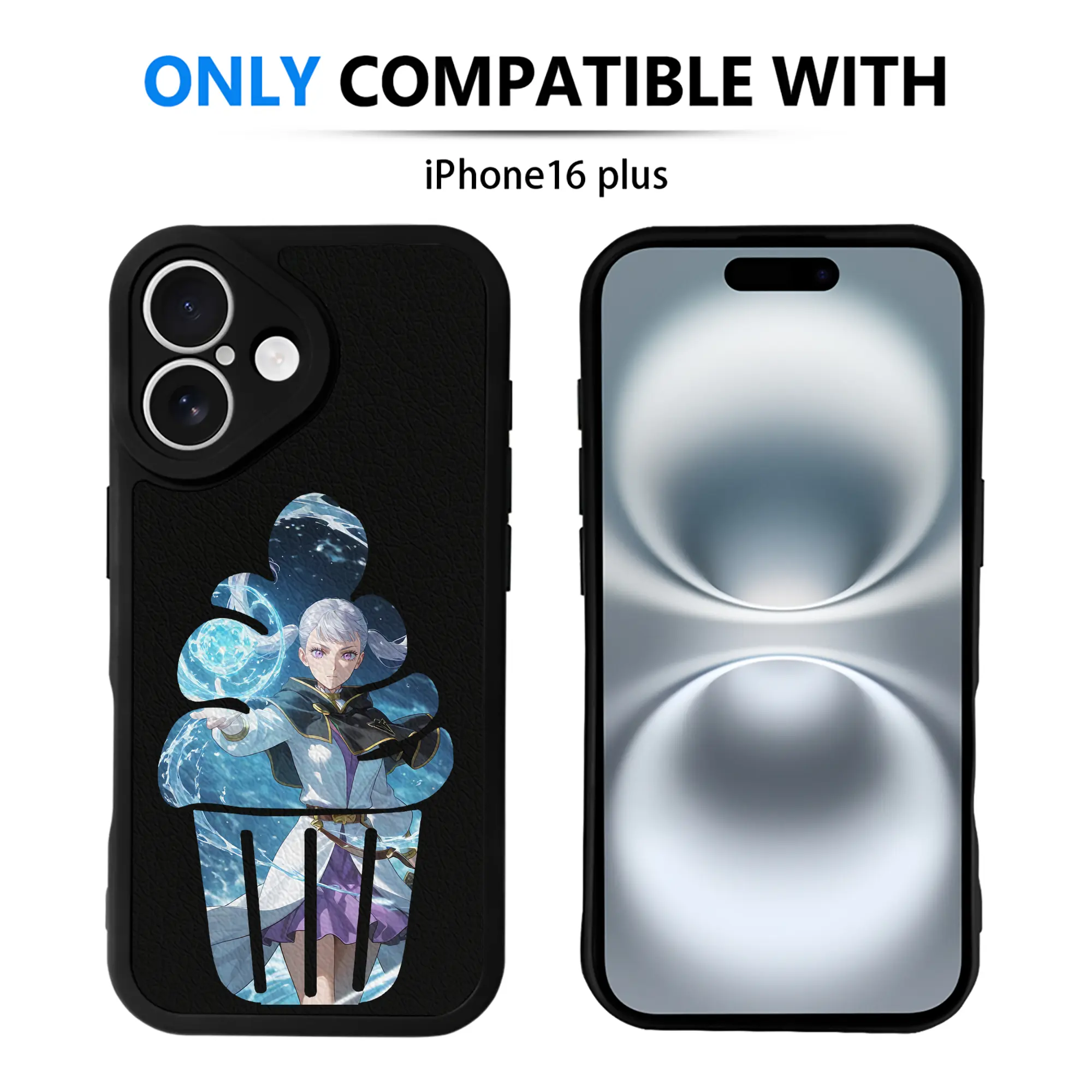 ブラッククローバー グッズ ノエル・シルヴァ - IPhone 16シリーズ対応 ・ シリコンスマホケース ・ レザー調 ・ 高精度フィット ・ 耐衝撃 ・ ワイヤレス充電対応 ・ 精密カット