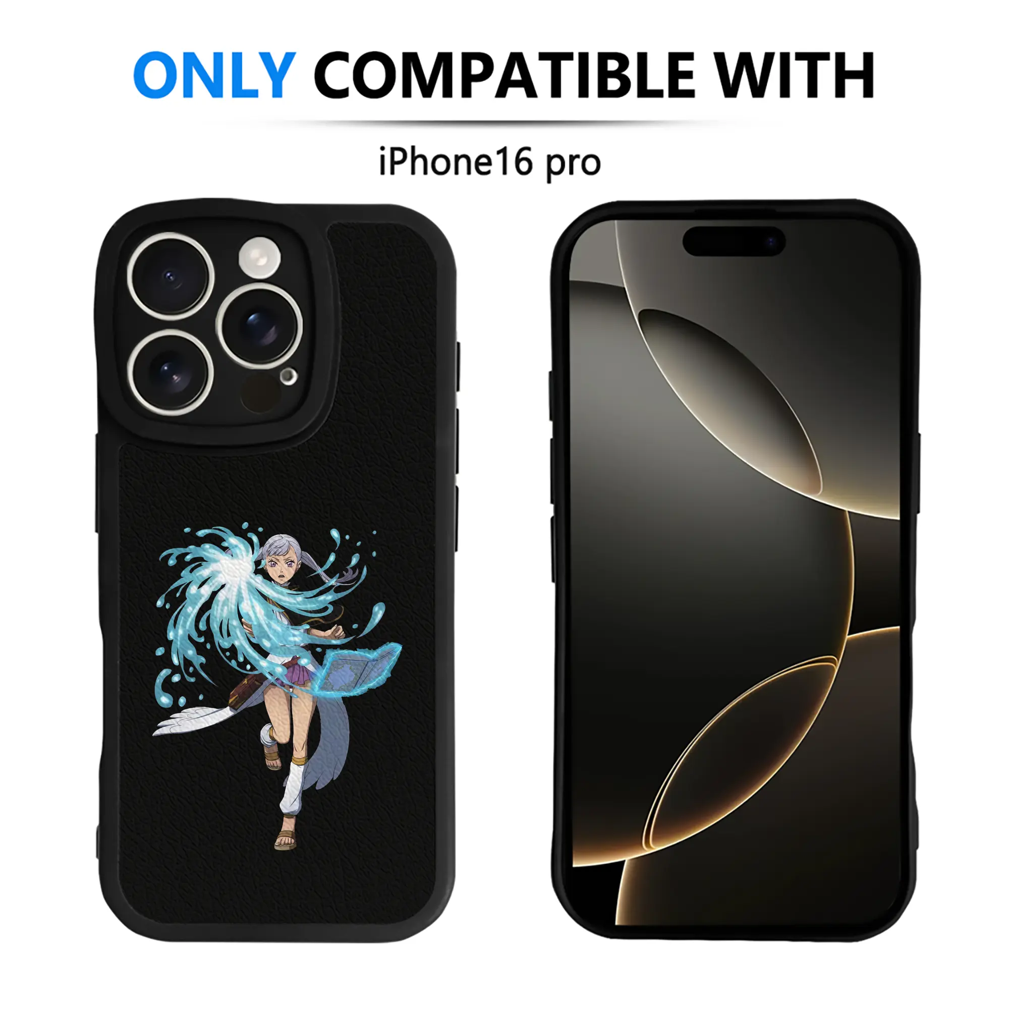 ブラッククローバー グッズ ノエル・シルヴァ - IPhone 16シリーズ対応 ・ シリコンスマホケース ・ レザー調 ・ 高精度フィット ・ 耐衝撃 ・ ワイヤレス充電対応 ・ 精密カット
