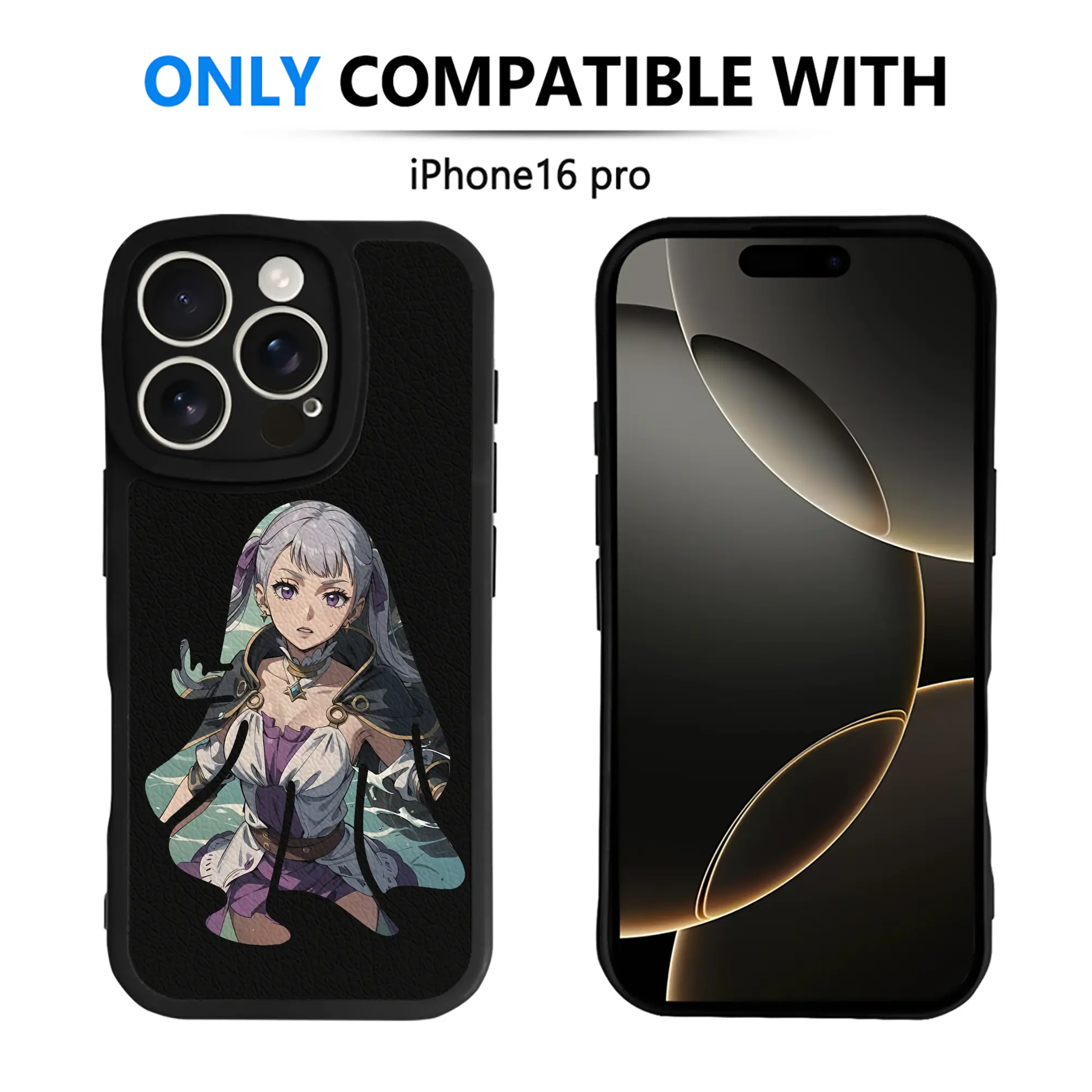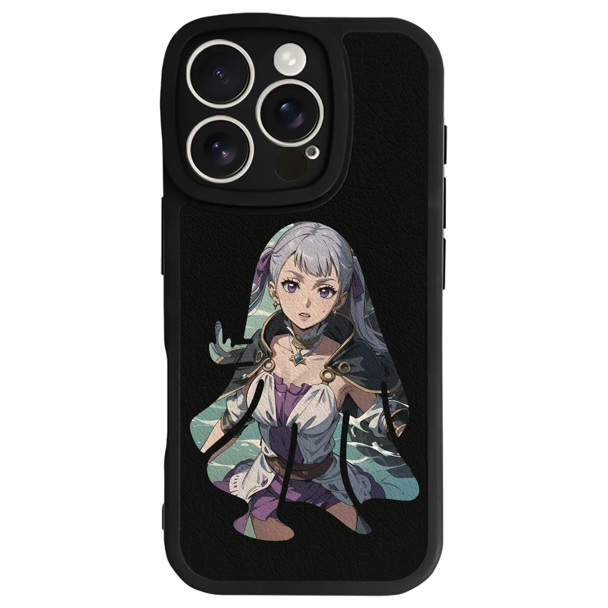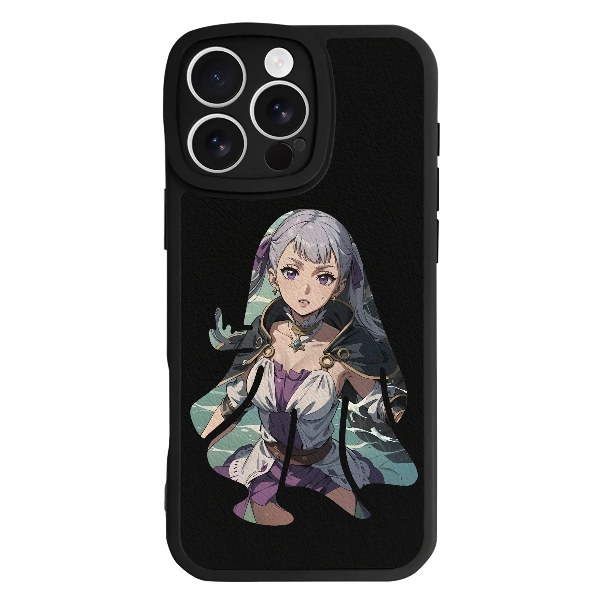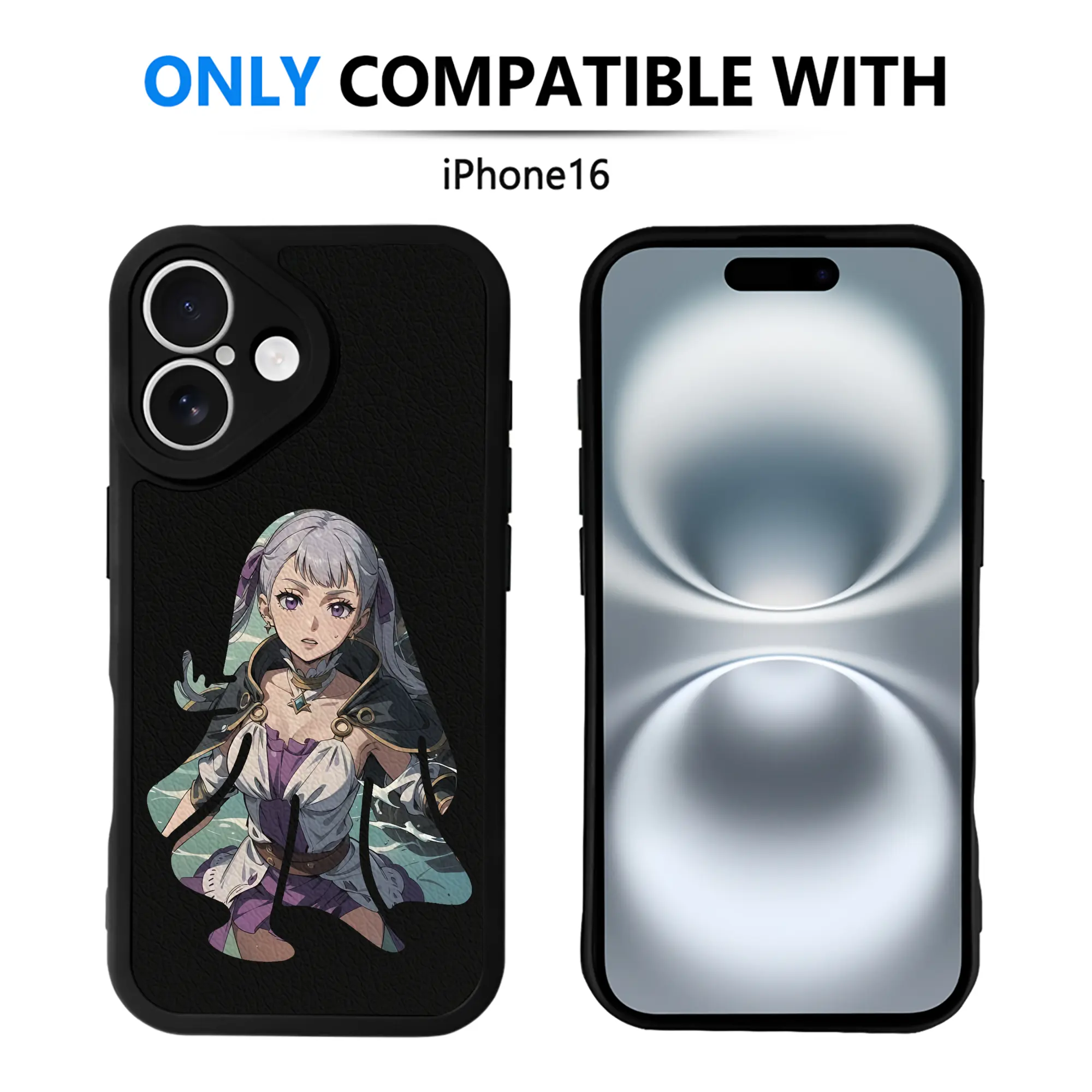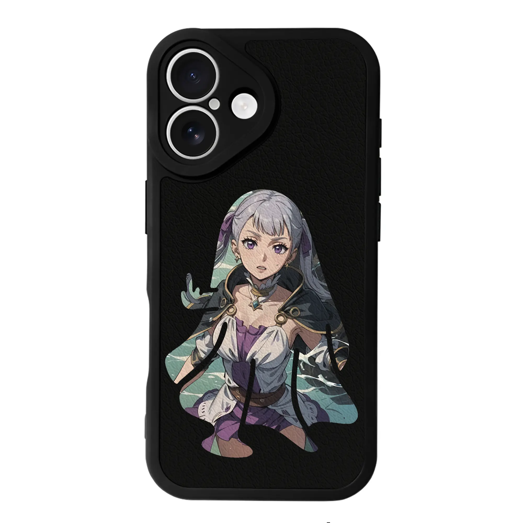 ブラッククローバー グッズ ノエル・シルヴァ - IPhone 16シリーズ対応 ・ シリコンスマホケース ・ レザー調 ・ 高精度フィット ・ 耐衝撃 ・ ワイヤレス充電対応 ・ 精密カット