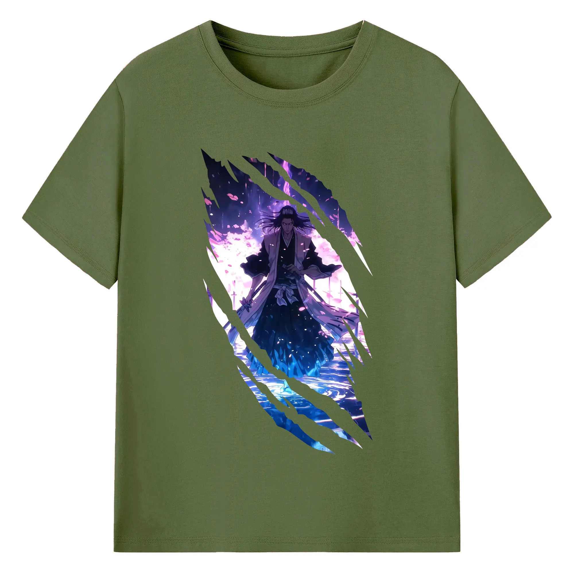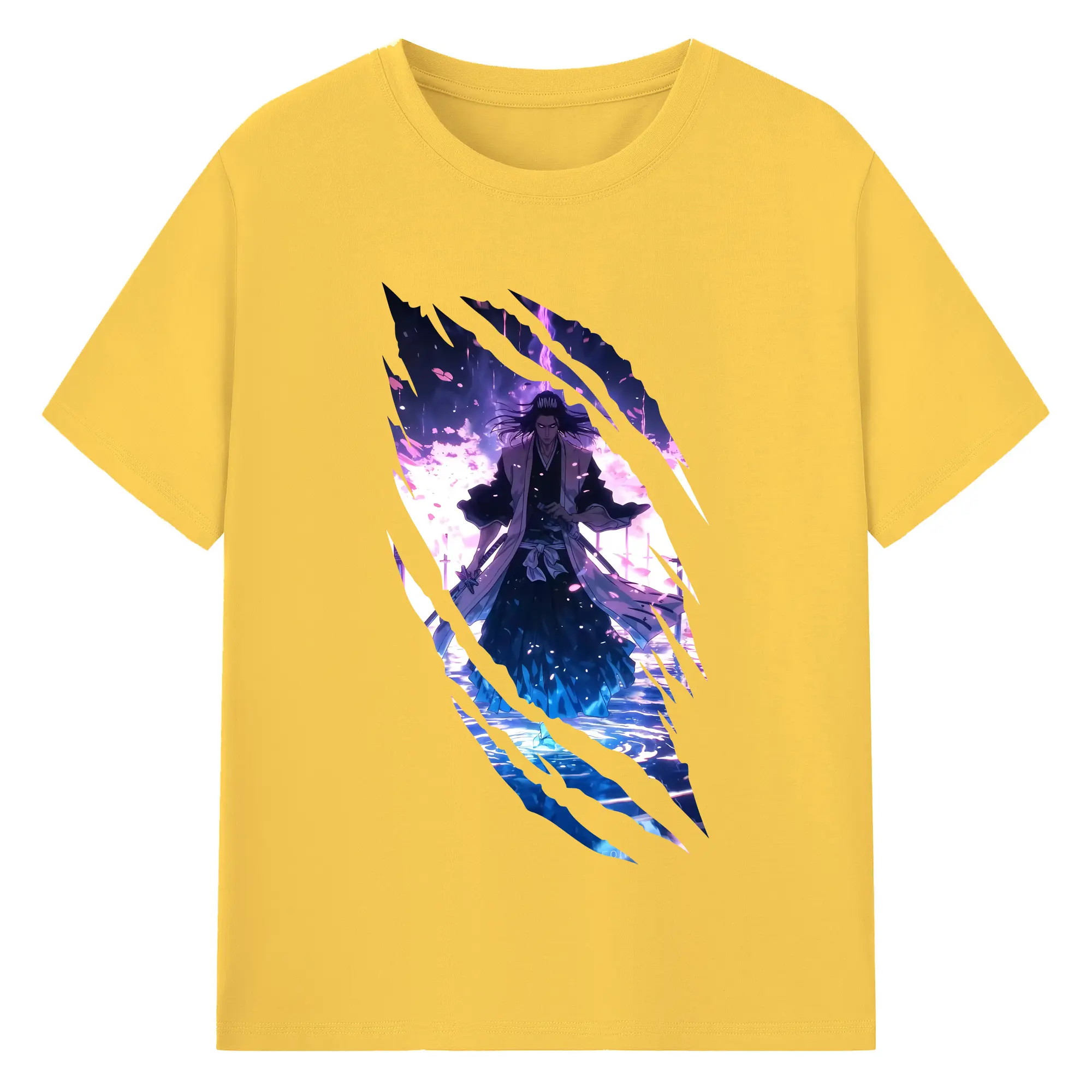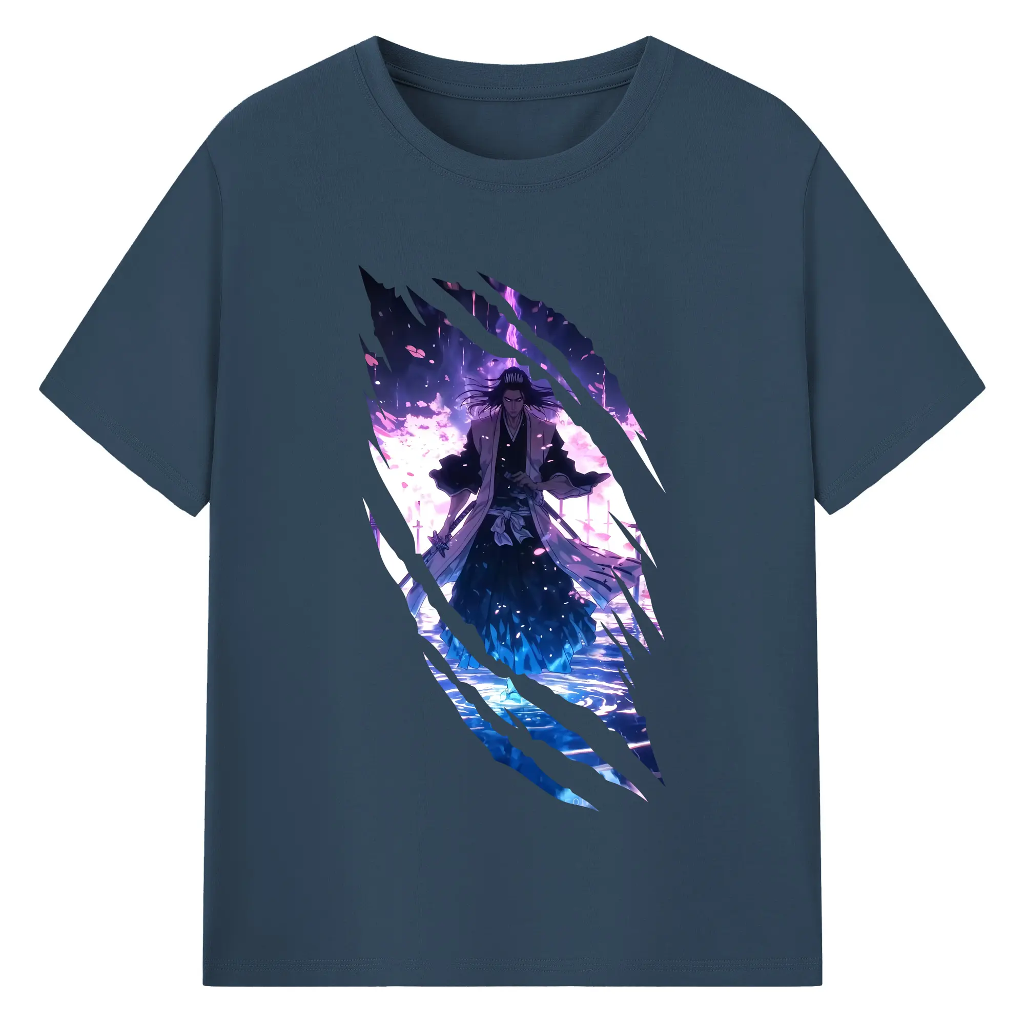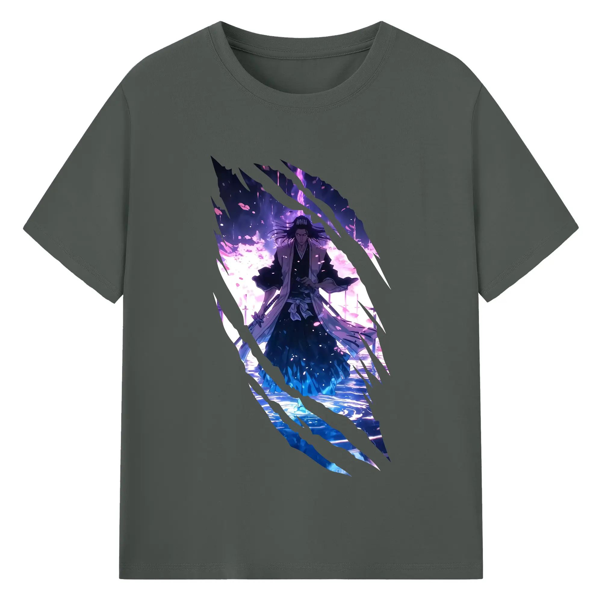 ブリーチ グッズ,朽木 白哉 - 綿100% ヴィンテージ風 半袖Tシャツ ・ フロントプリント ・ 柔らか肌触り ・ 通気性 快適 ・ スポーツ カジュアル 外出用