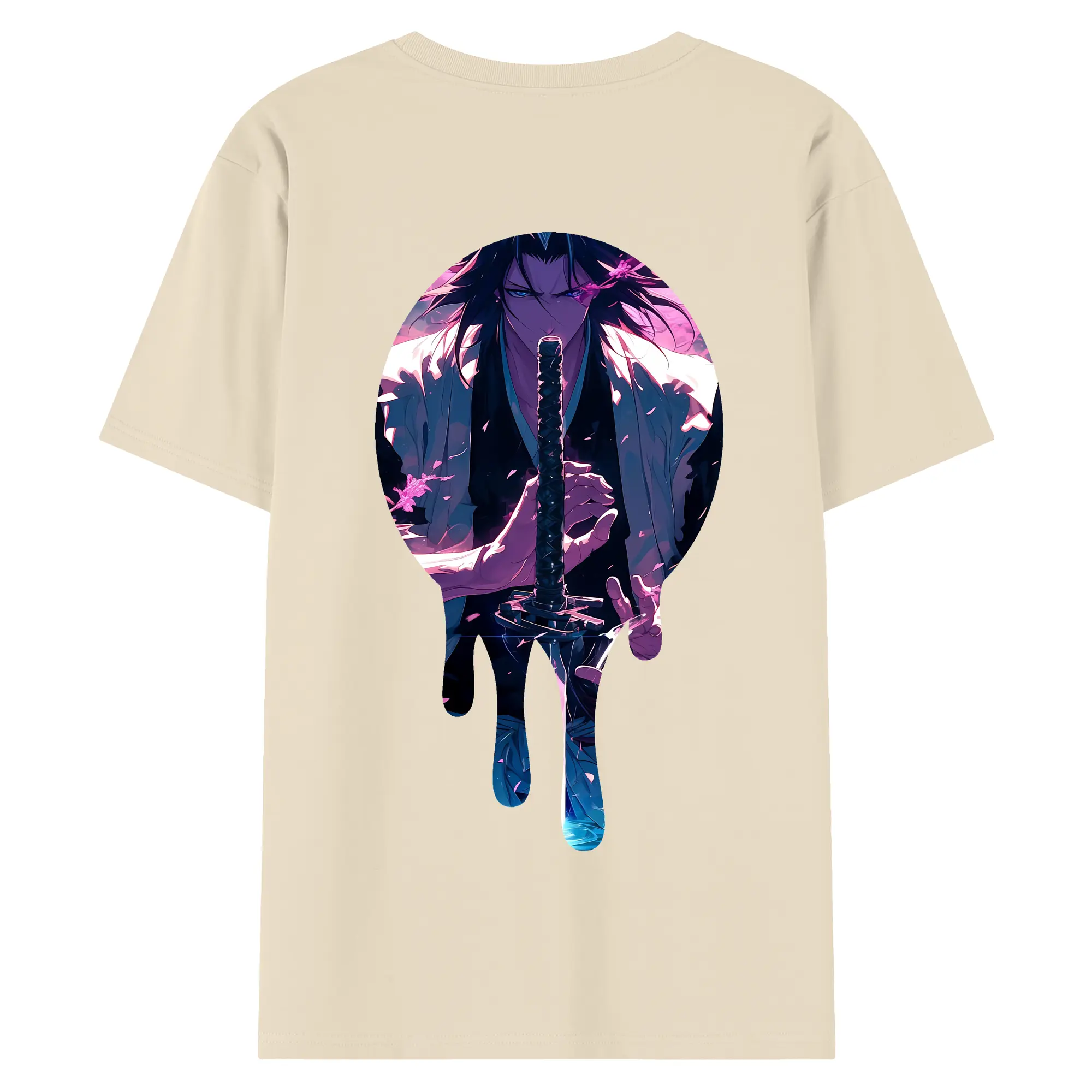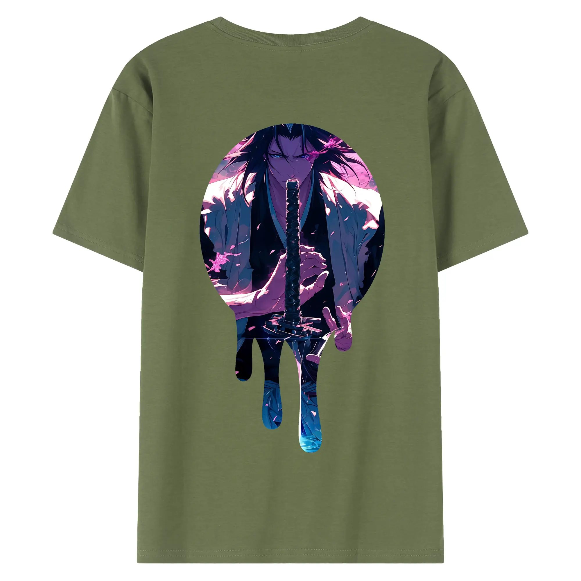 ブリーチ グッズ,朽木 白哉 - 綿100% ヴィンテージ風 半袖Tシャツ ・ 背面プリント ・ 柔らか肌触り ・ 通気性 快適 ・ スポーツ カジュアル 外出用