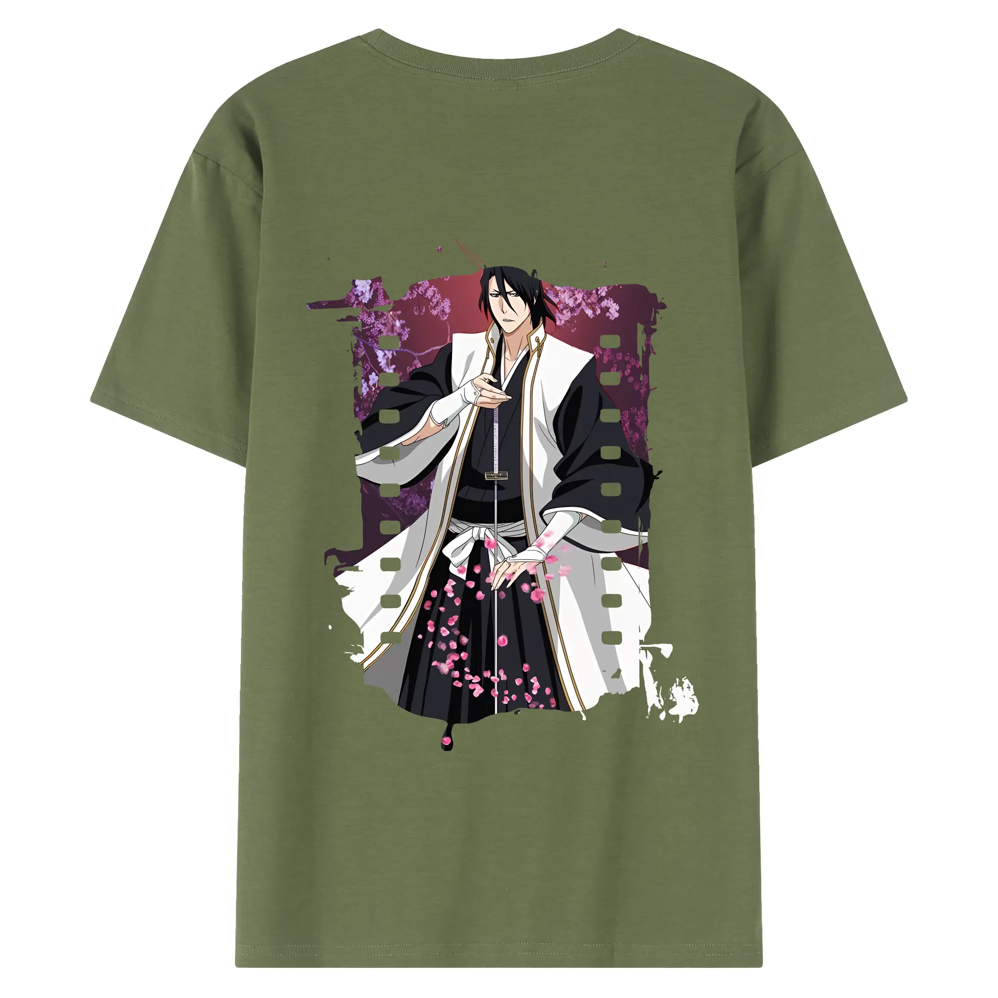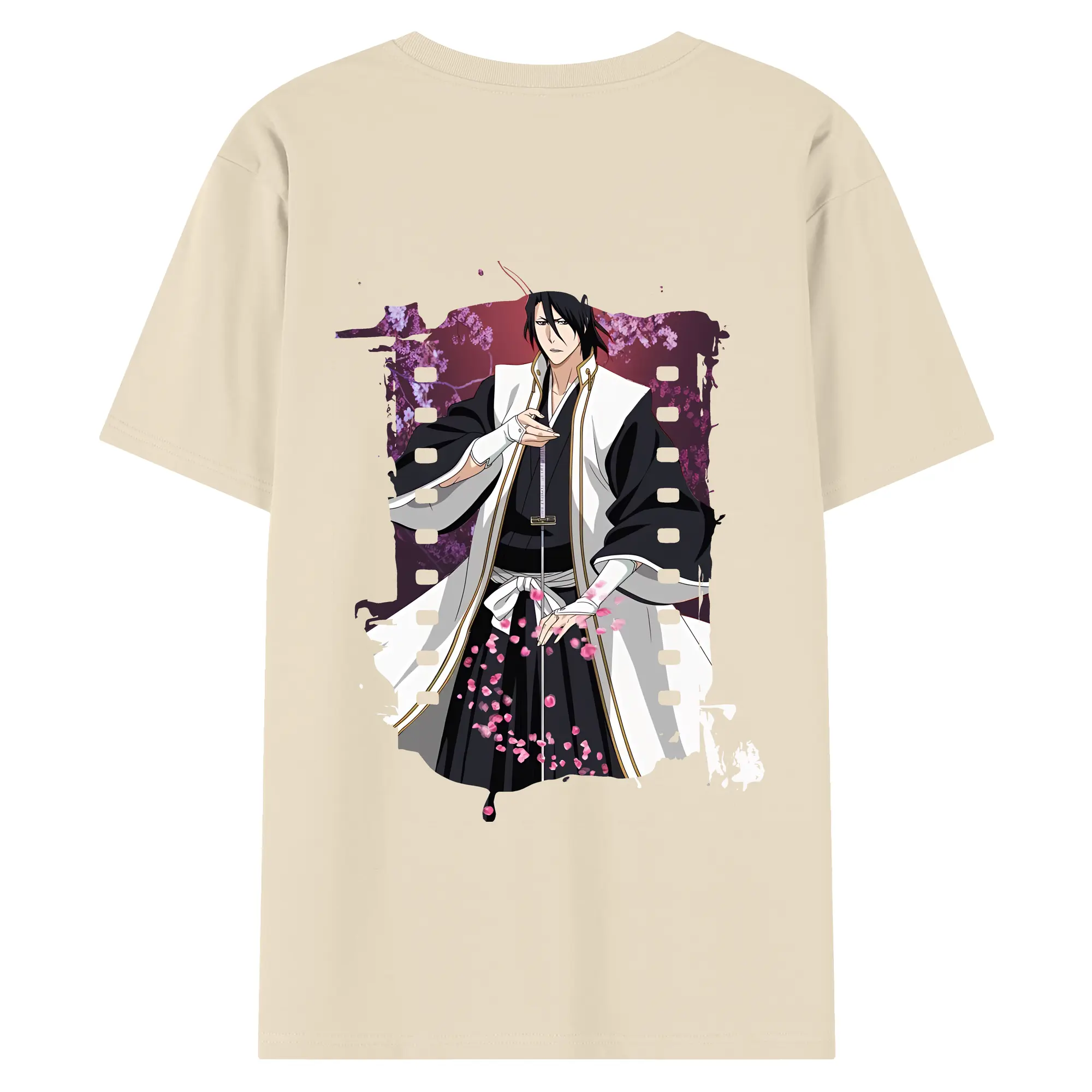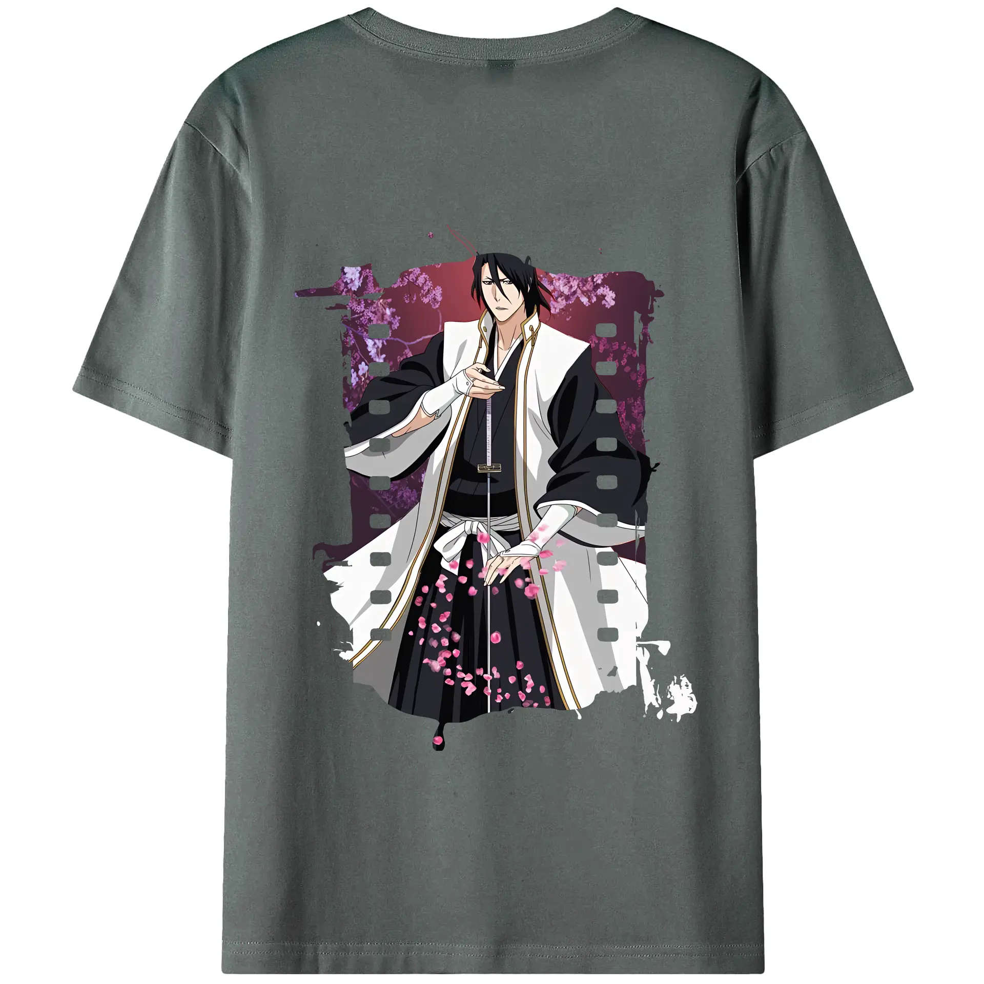 ブリーチ グッズ,朽木 白哉 - 綿100% ヴィンテージ風 半袖Tシャツ ・ 背面プリント ・ 柔らか肌触り ・ 通気性 快適 ・ スポーツ カジュアル 外出用