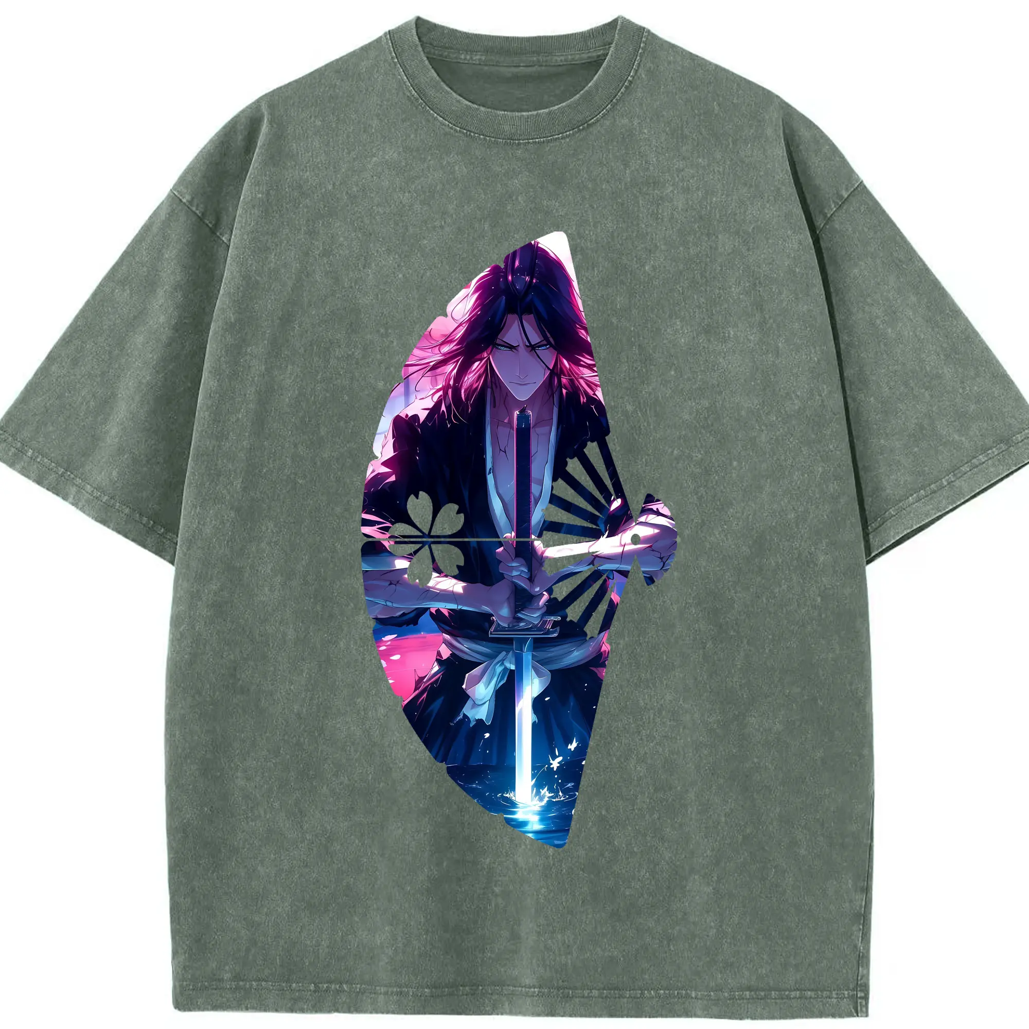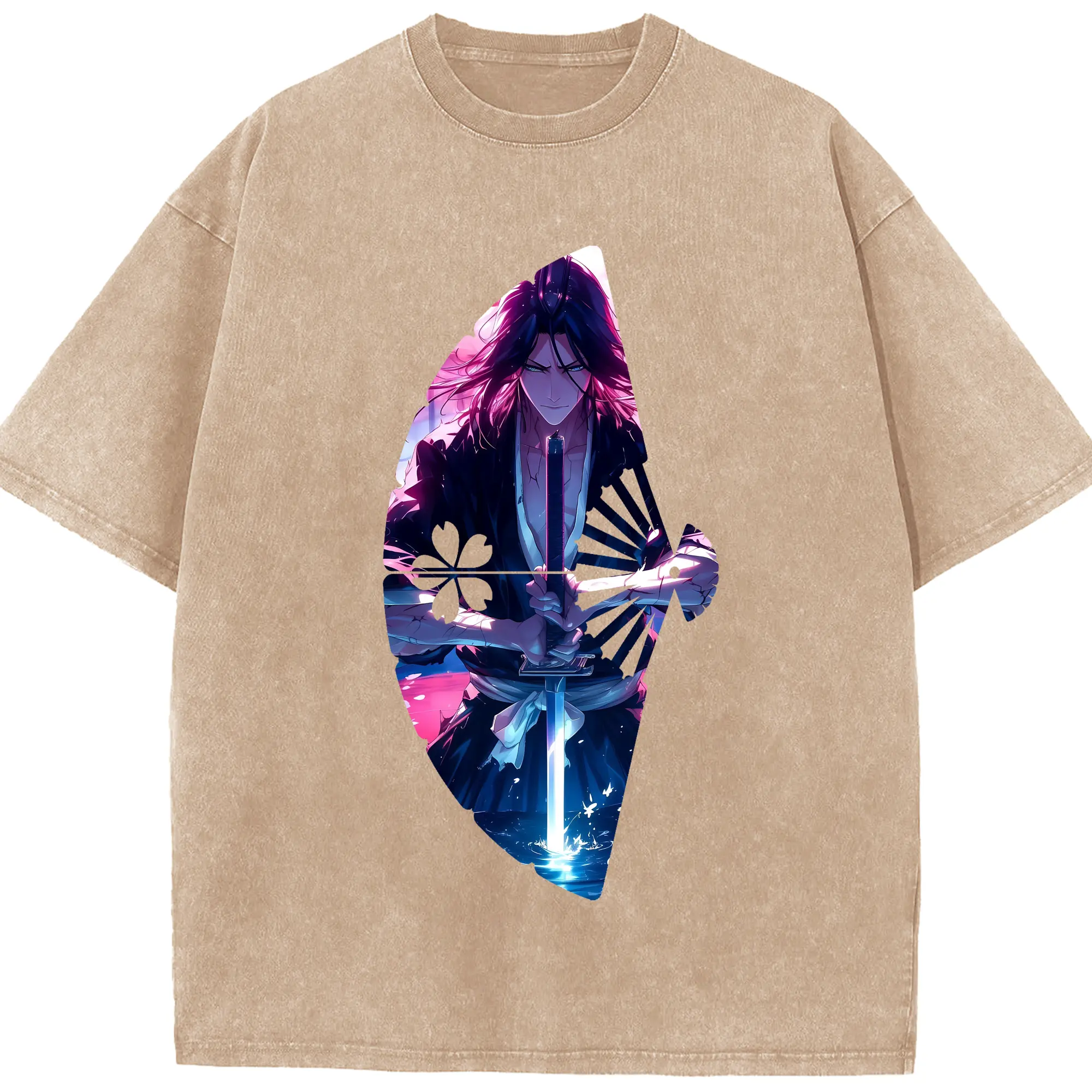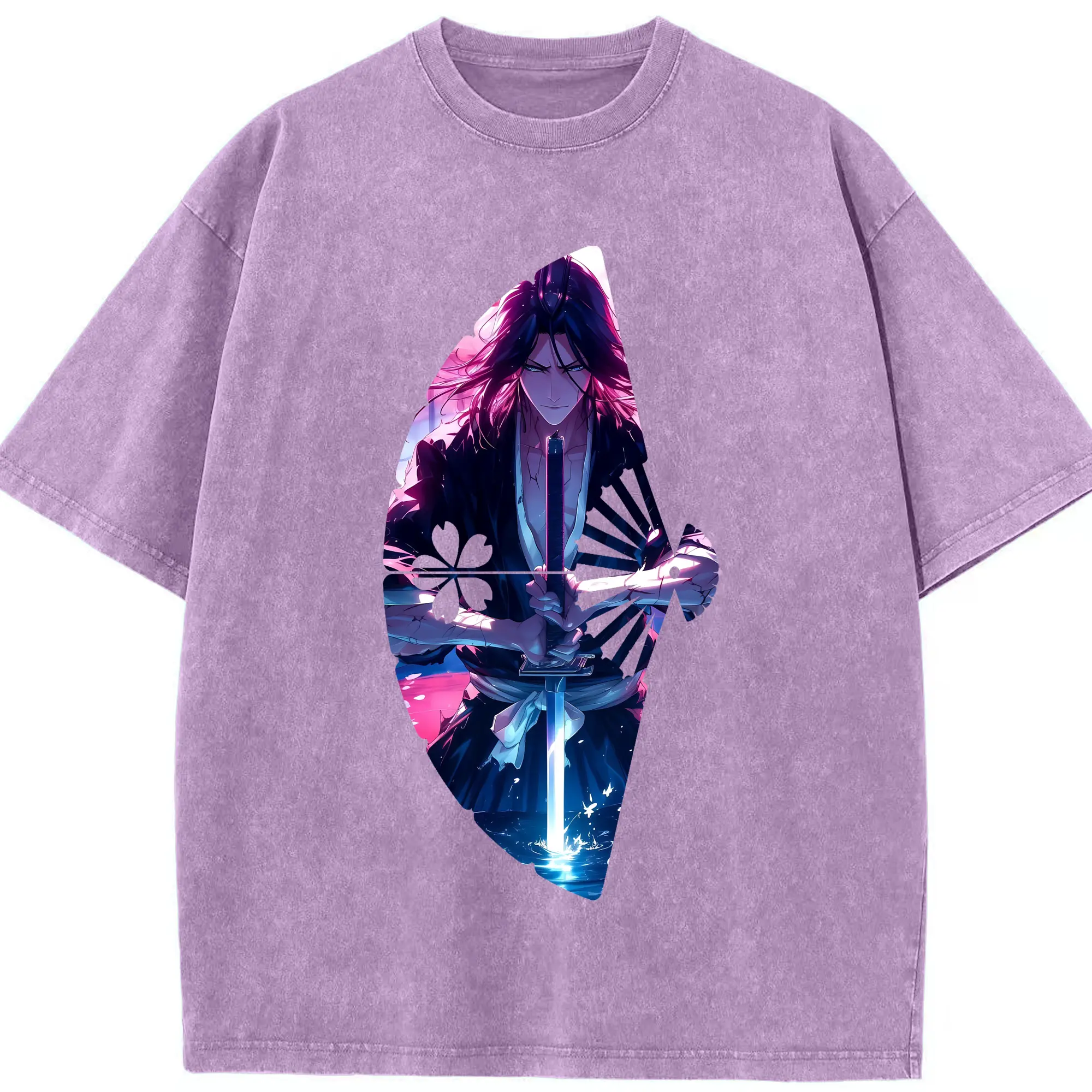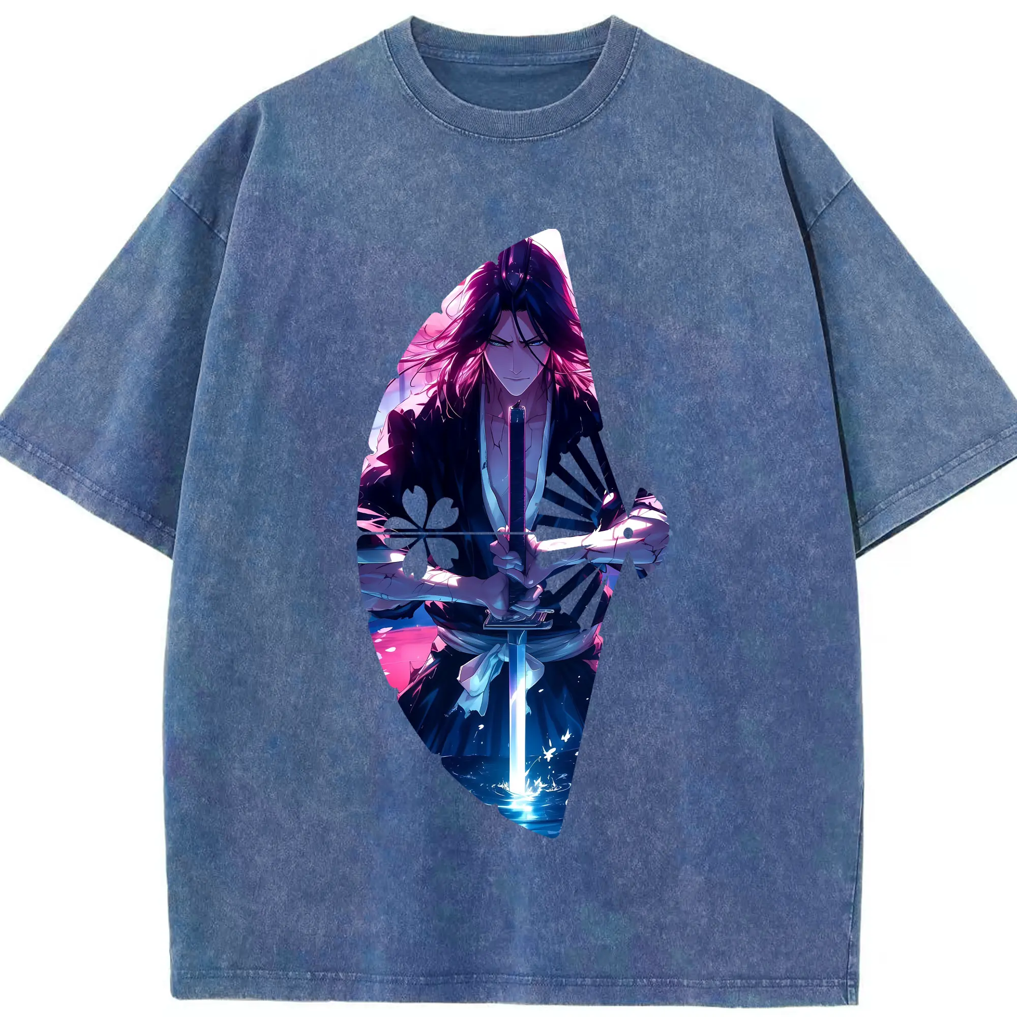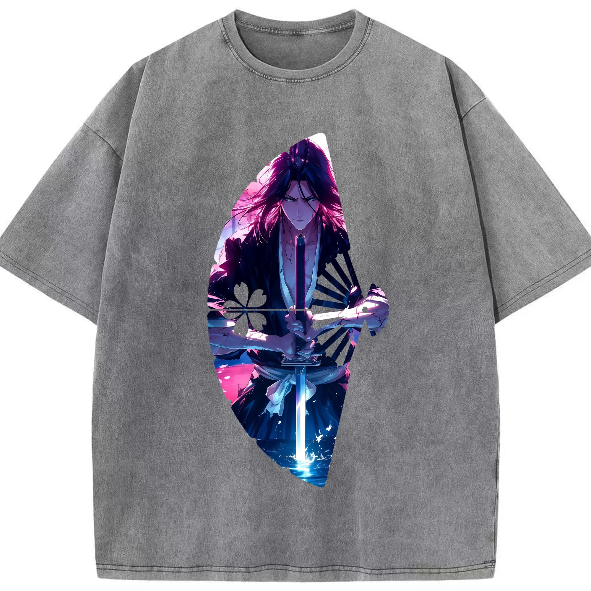 ブリーチ グッズ,朽木 白哉 - 綿100% ヴィンテージ風 半袖Tシャツ ・ 背面プリント ・ 柔らか肌触り ・ 通気性 快適 ・ スポーツ カジュアル 外出用