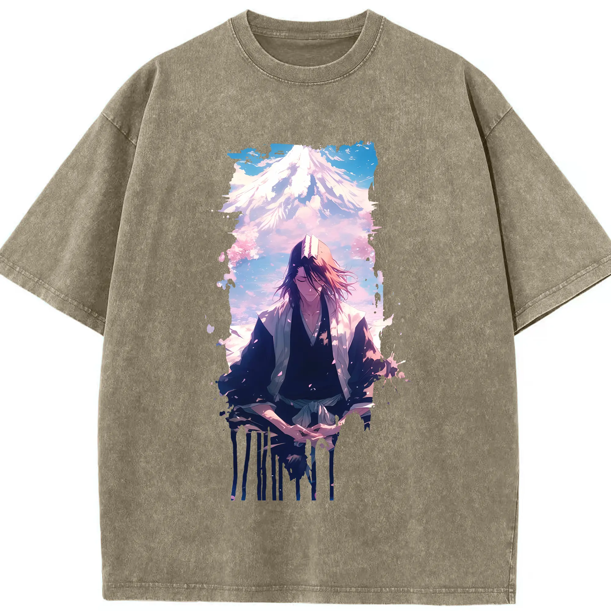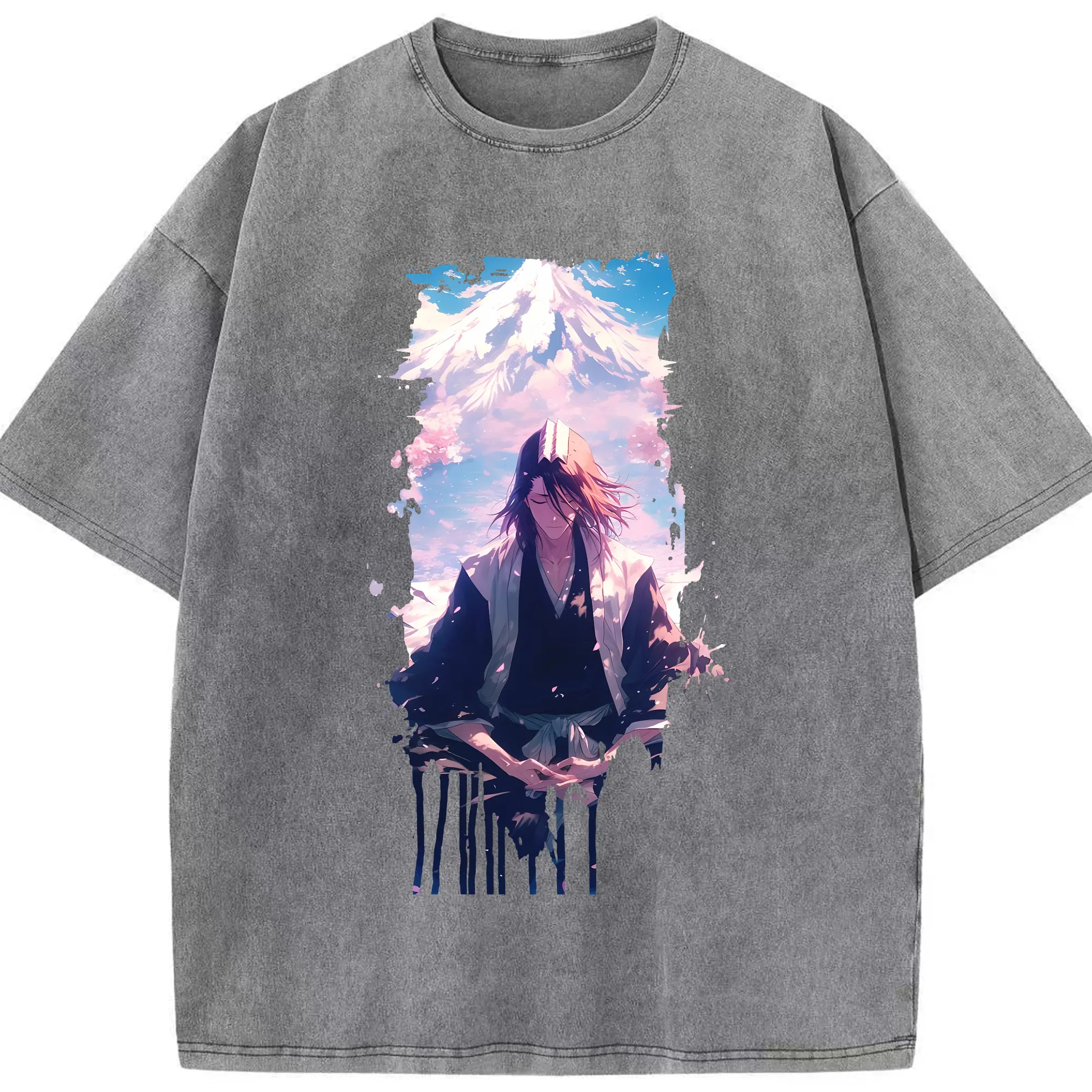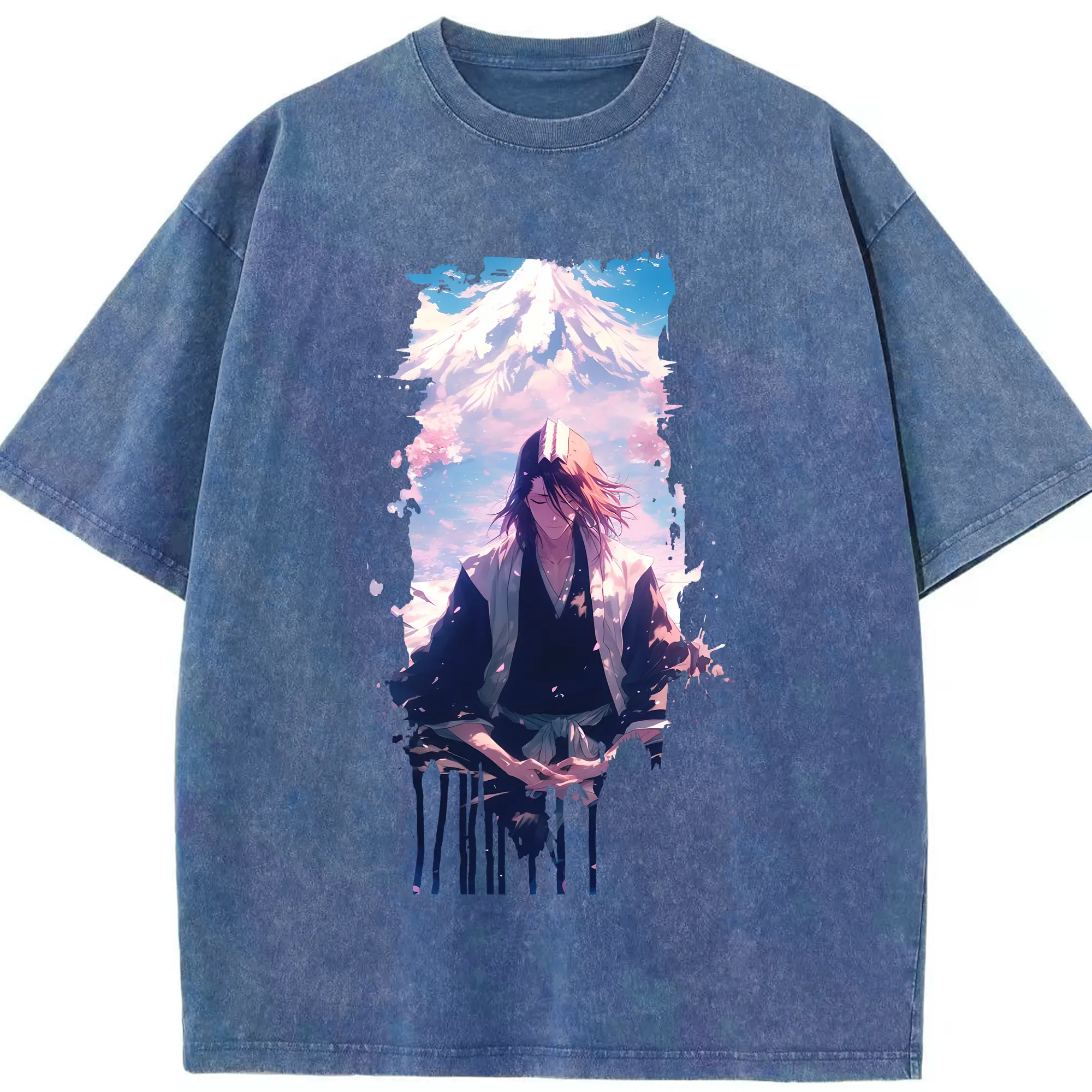 ブリーチ グッズ,朽木 白哉 - 綿100% ヴィンテージ風 半袖Tシャツ ・ 背面プリント ・ 柔らか肌触り ・ 通気性 快適 ・ スポーツ カジュアル 外出用