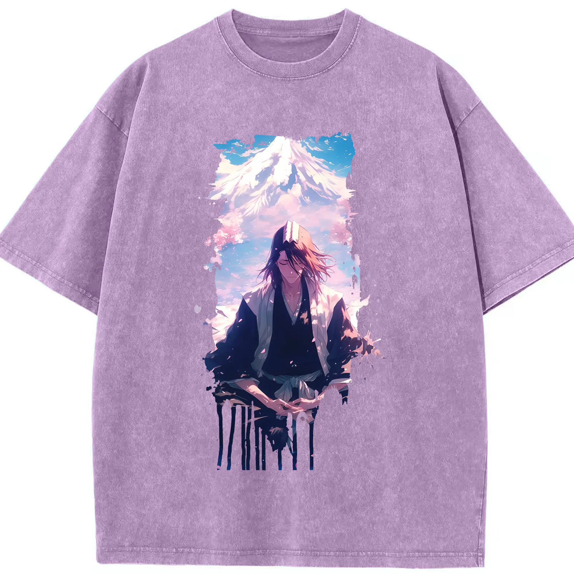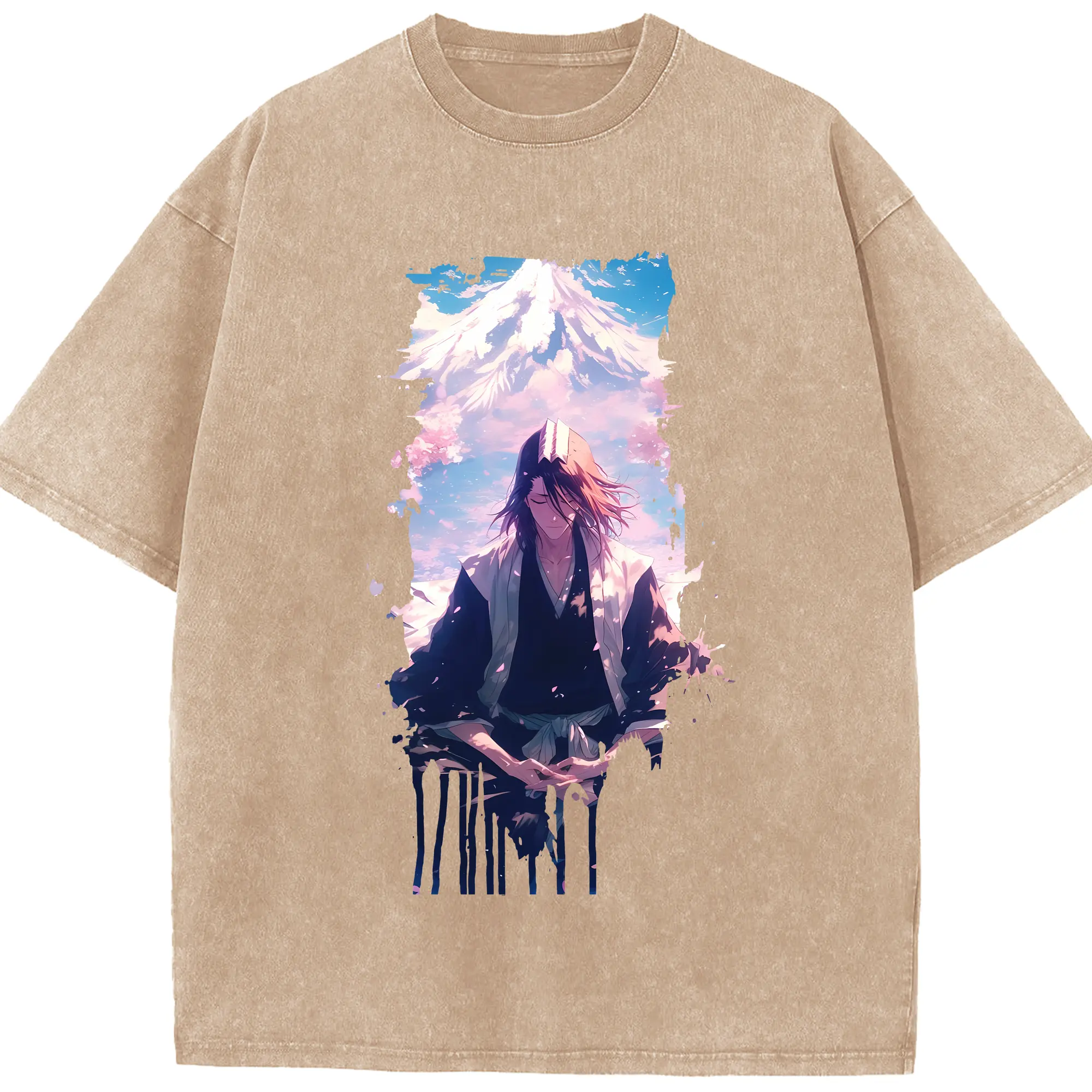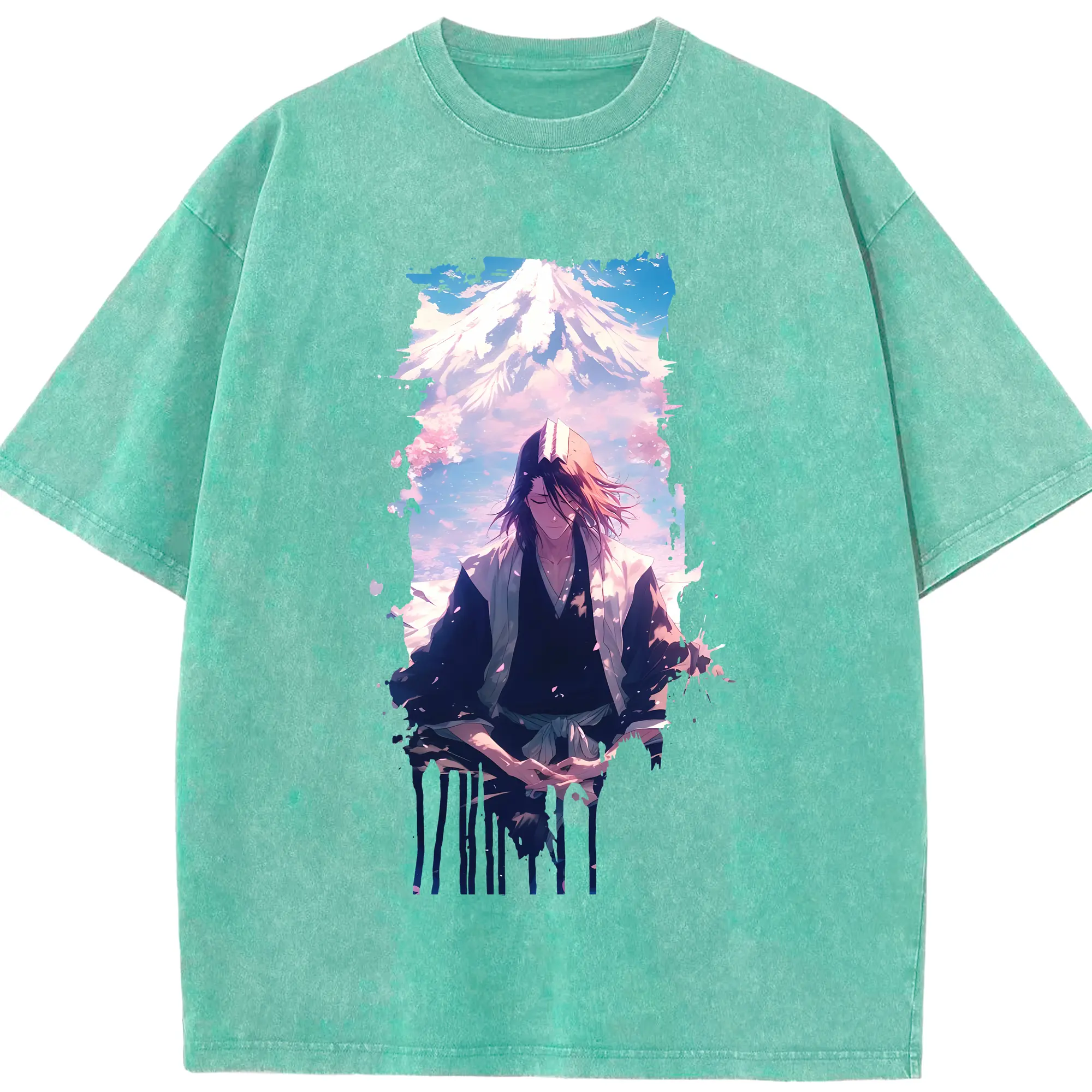 ブリーチ グッズ,朽木 白哉 - 綿100% ヴィンテージ風 半袖Tシャツ ・ 背面プリント ・ 柔らか肌触り ・ 通気性 快適 ・ スポーツ カジュアル 外出用