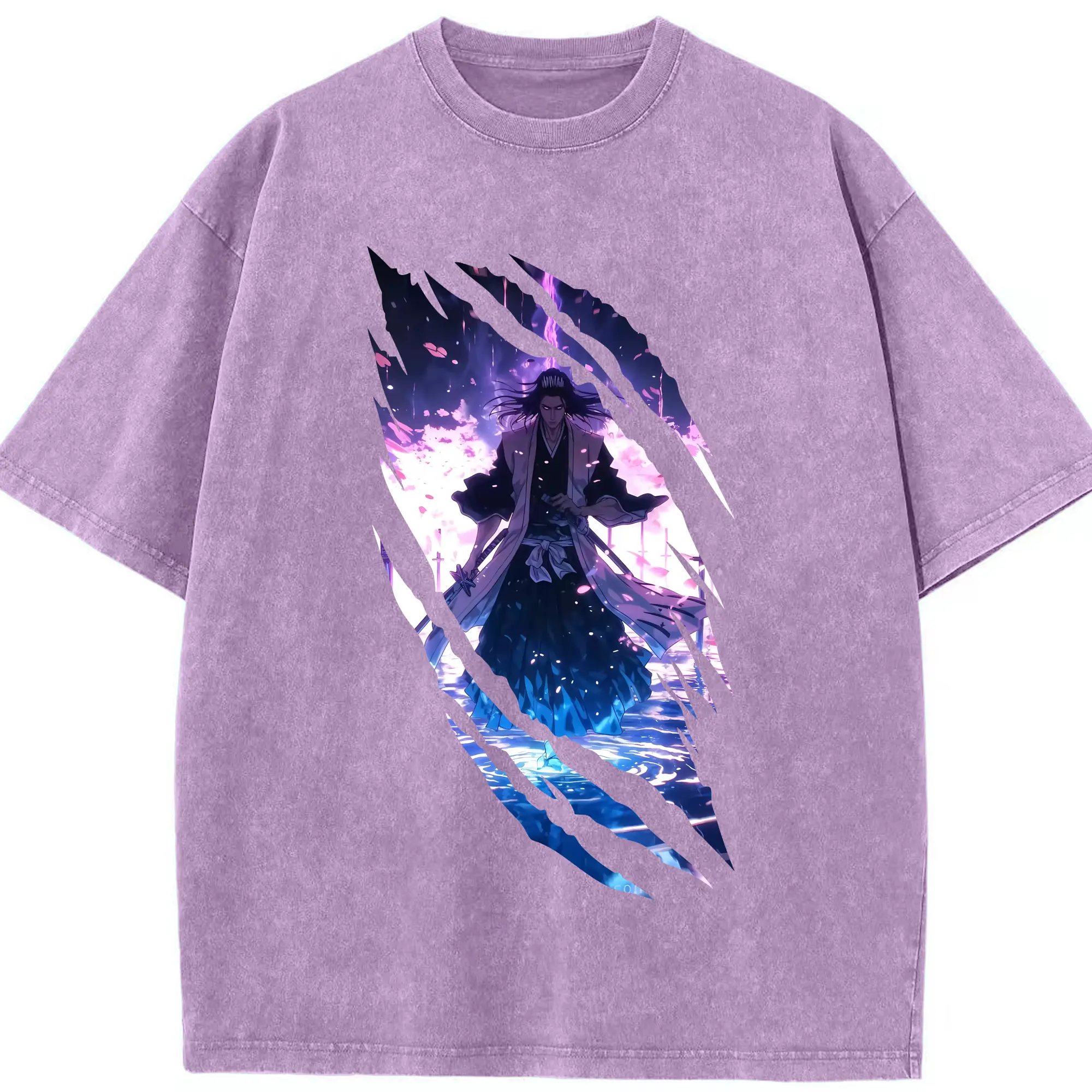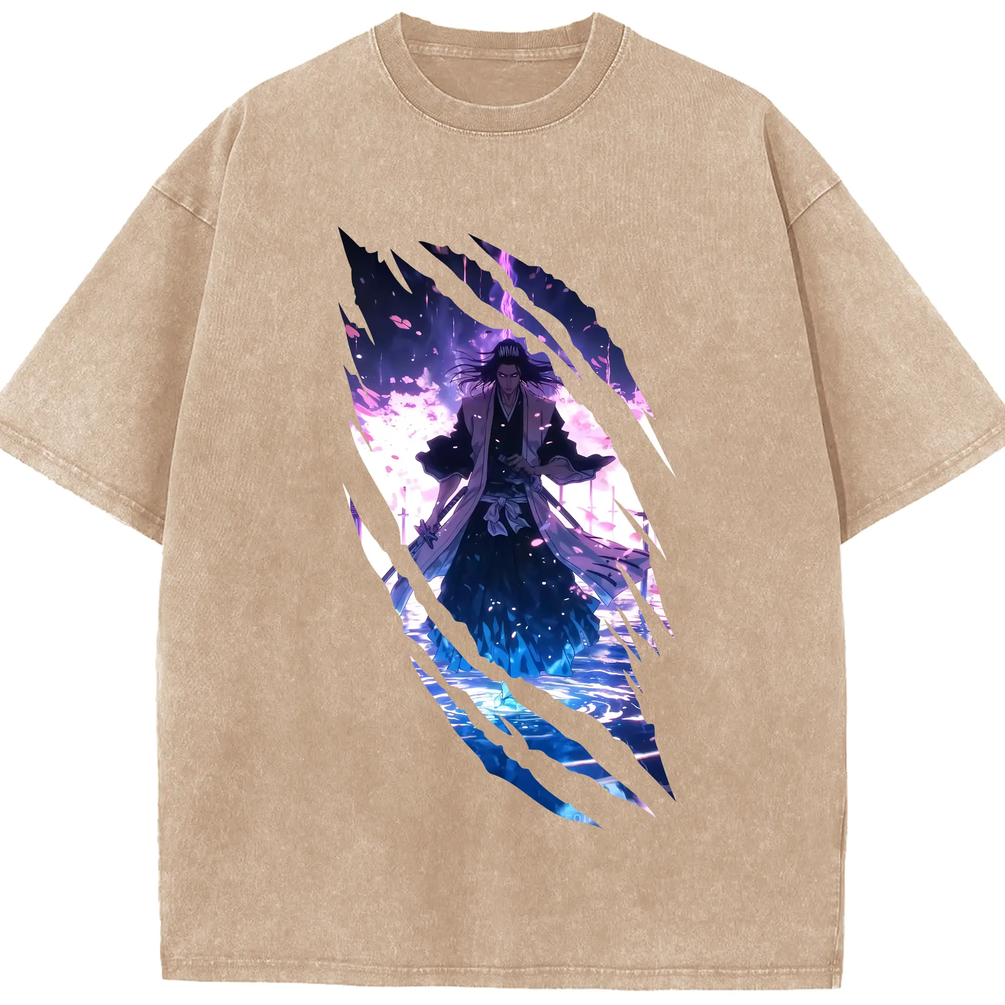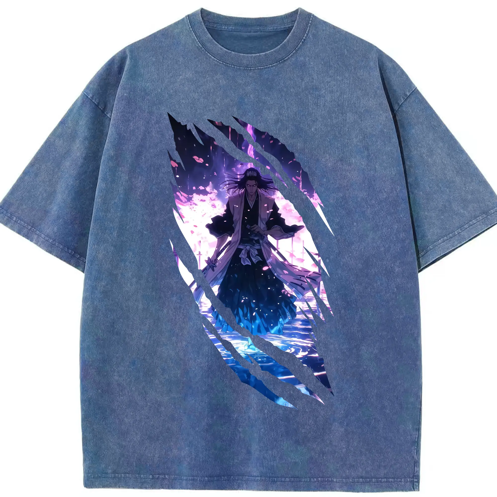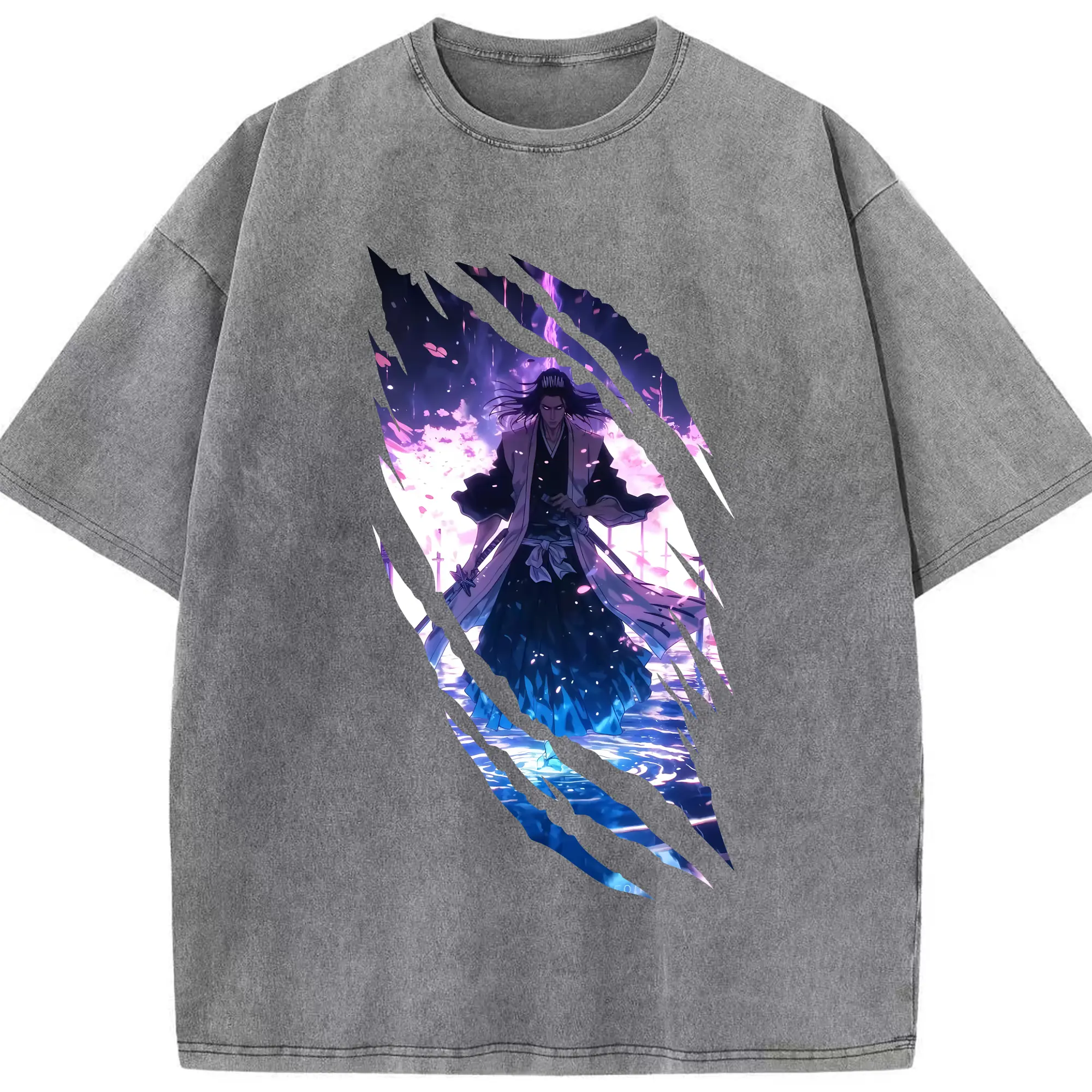 ブリーチ グッズ,朽木 白哉 - 綿100% ヴィンテージ風 半袖Tシャツ ・ 背面プリント ・ 柔らか肌触り ・ 通気性 快適 ・ スポーツ カジュアル 外出用