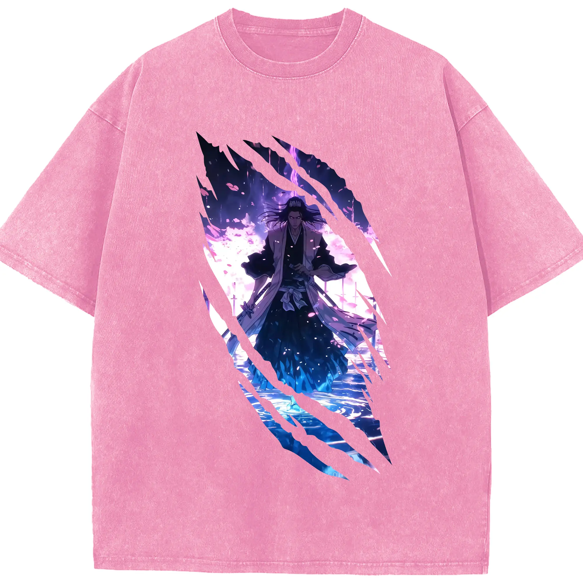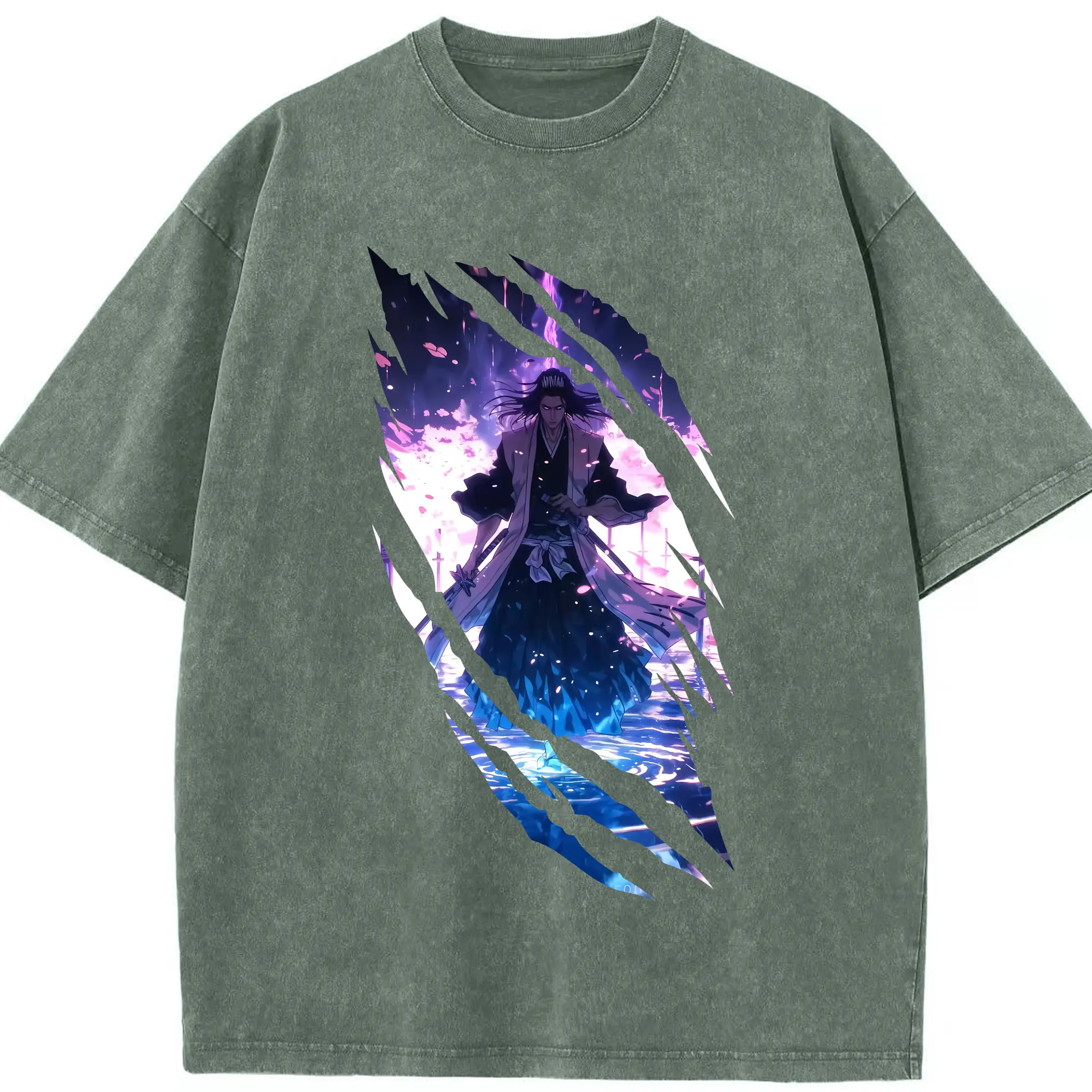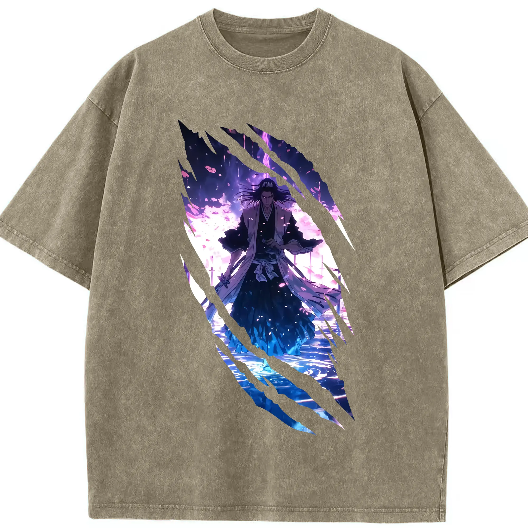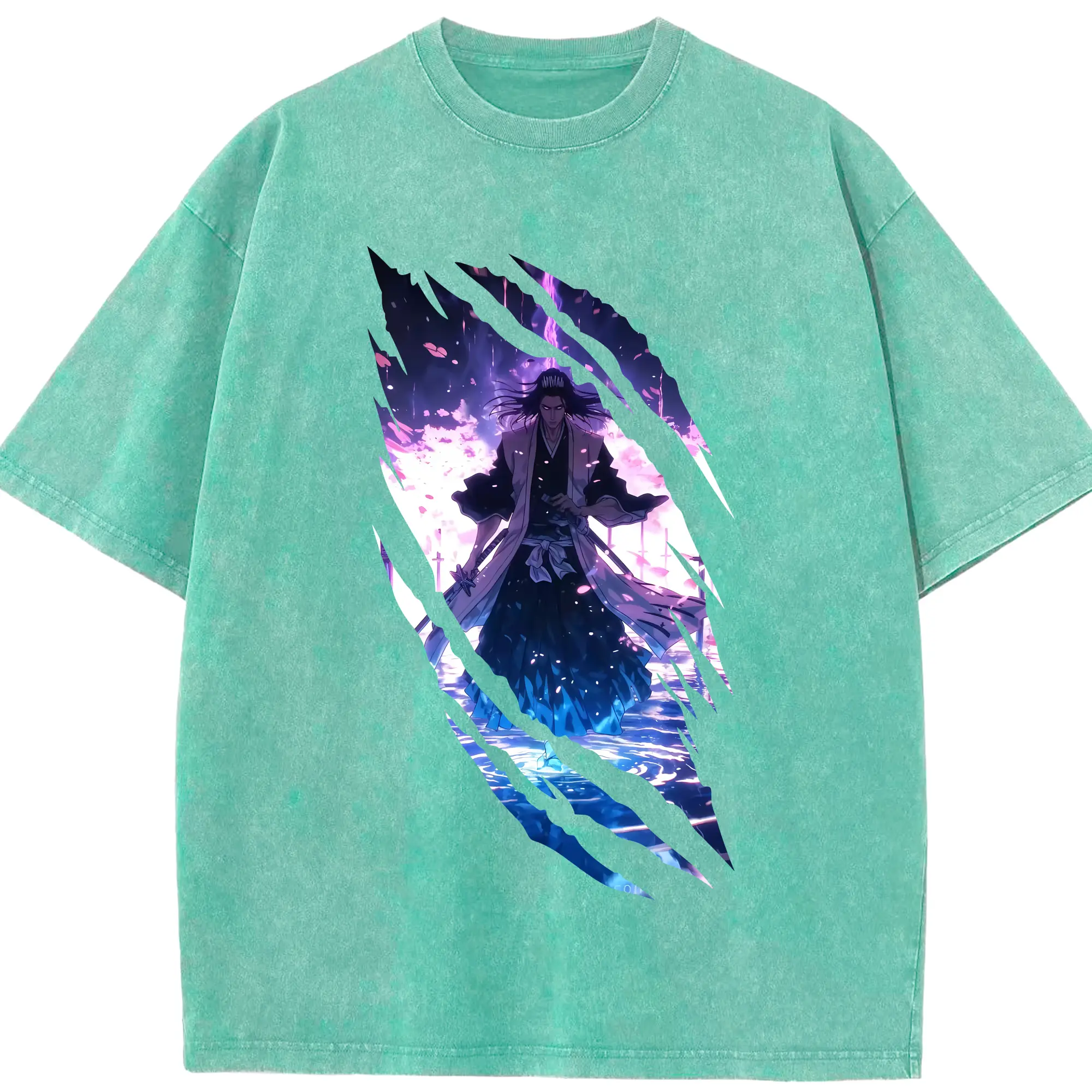 ブリーチ グッズ,朽木 白哉 - 綿100% ヴィンテージ風 半袖Tシャツ ・ 背面プリント ・ 柔らか肌触り ・ 通気性 快適 ・ スポーツ カジュアル 外出用