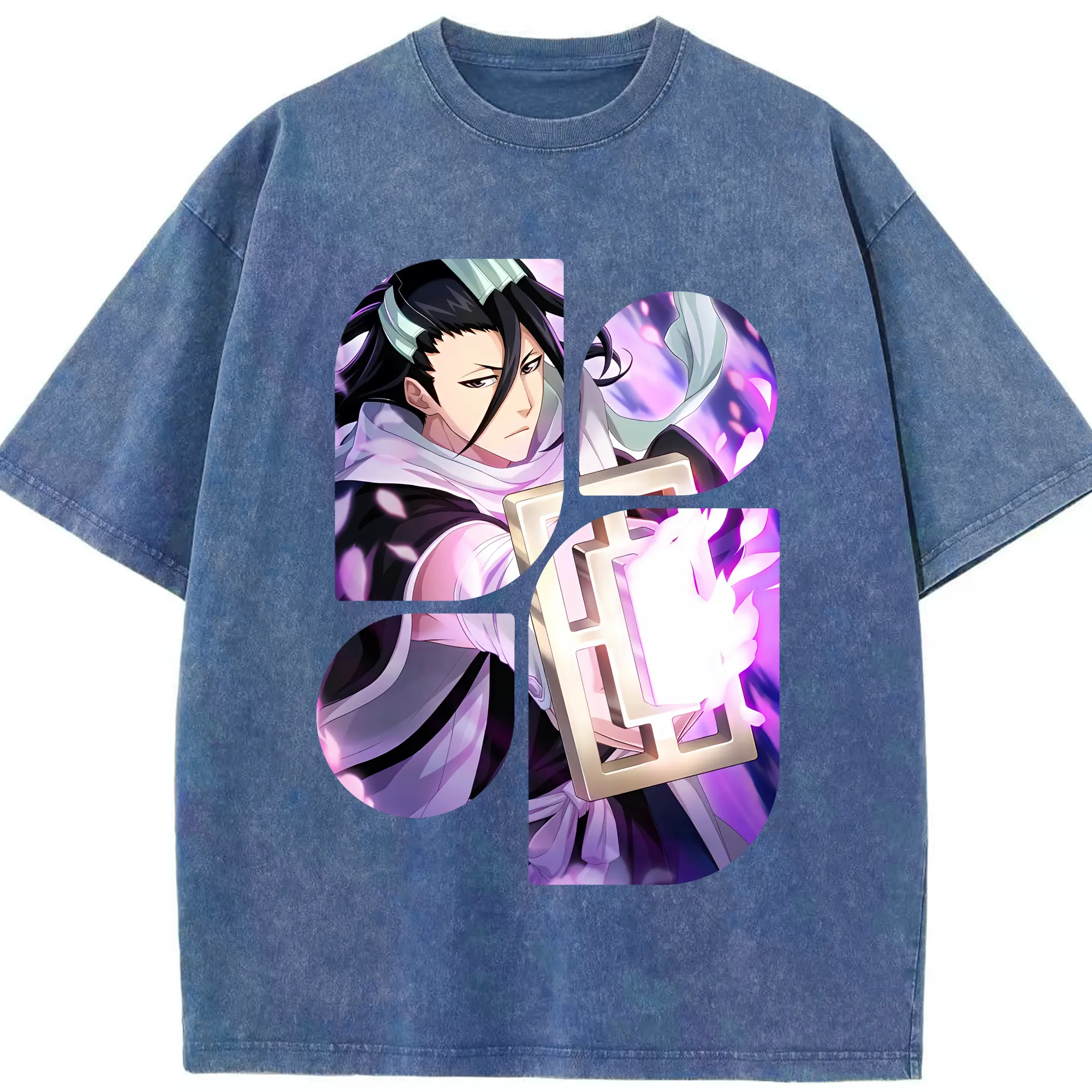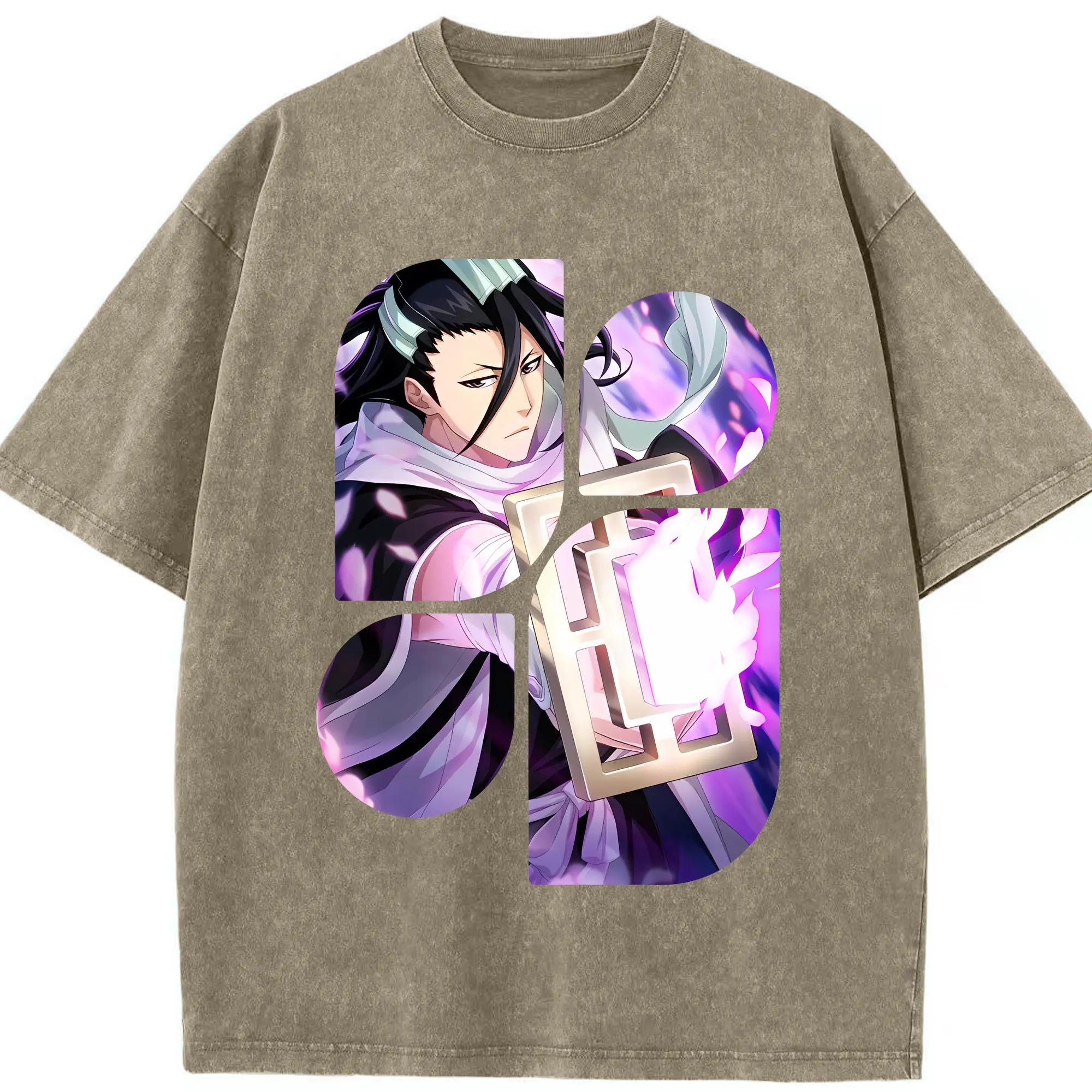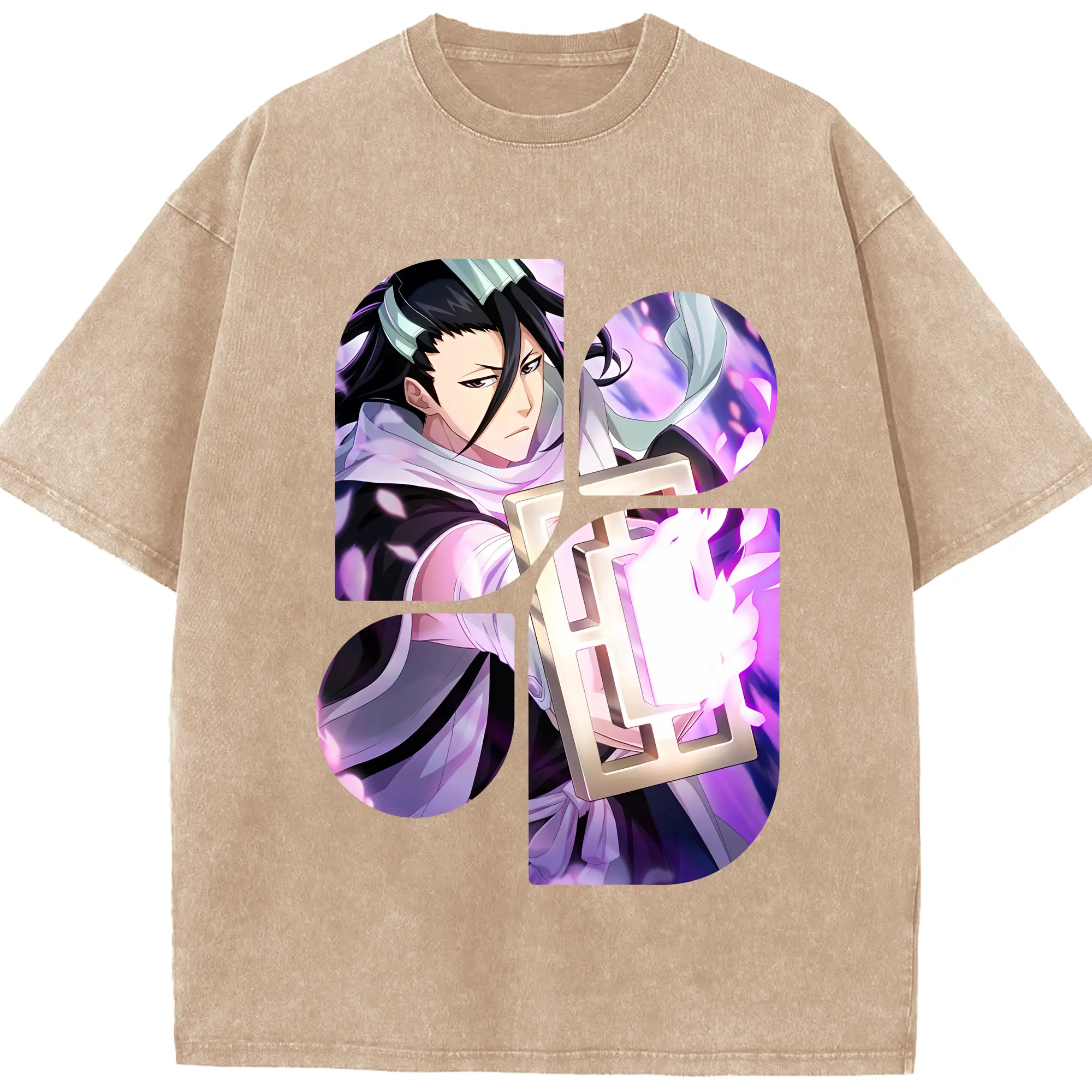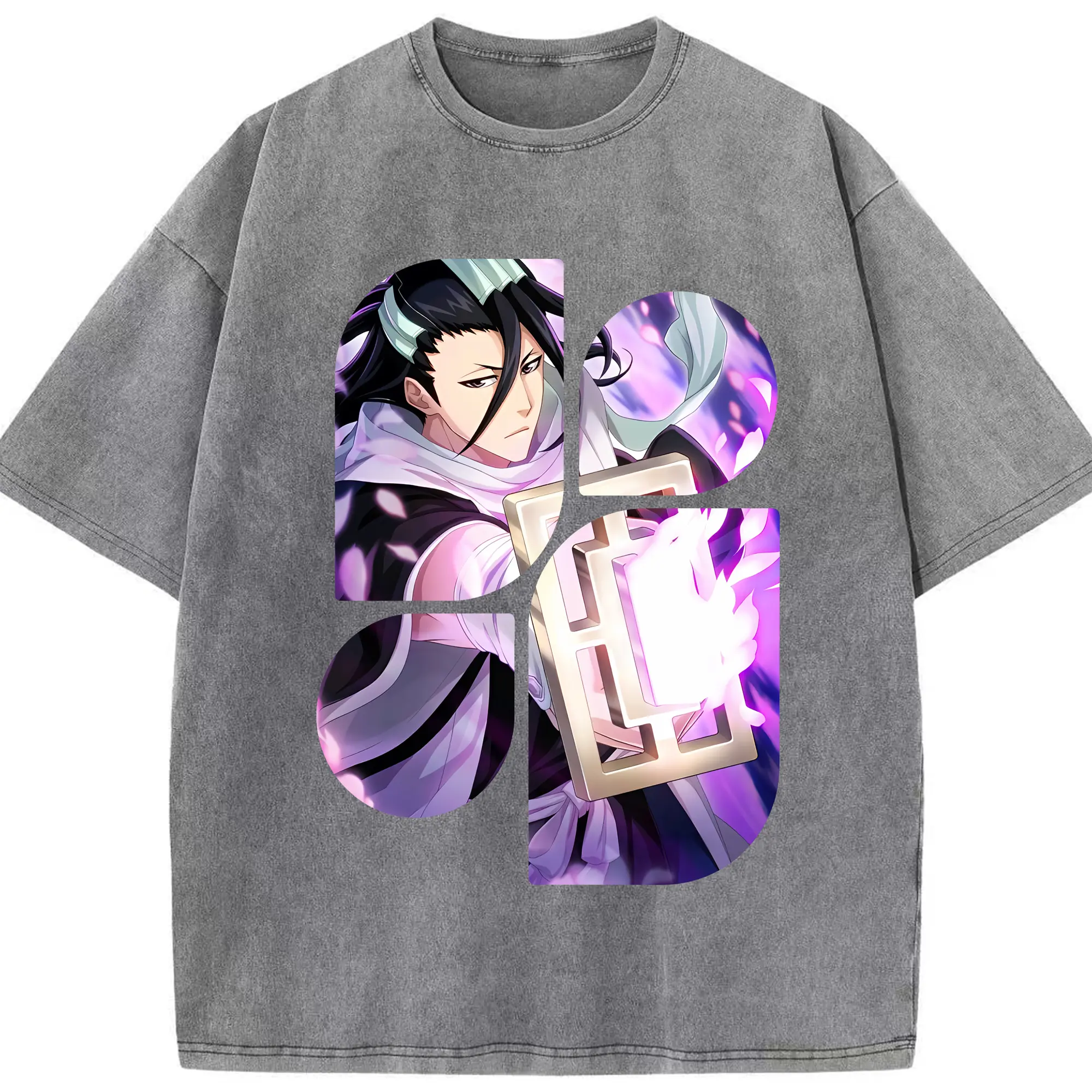 ブリーチ グッズ,朽木 白哉 - 綿100% ヴィンテージ風 半袖Tシャツ ・ 背面プリント ・ 柔らか肌触り ・ 通気性 快適 ・ スポーツ カジュアル 外出用