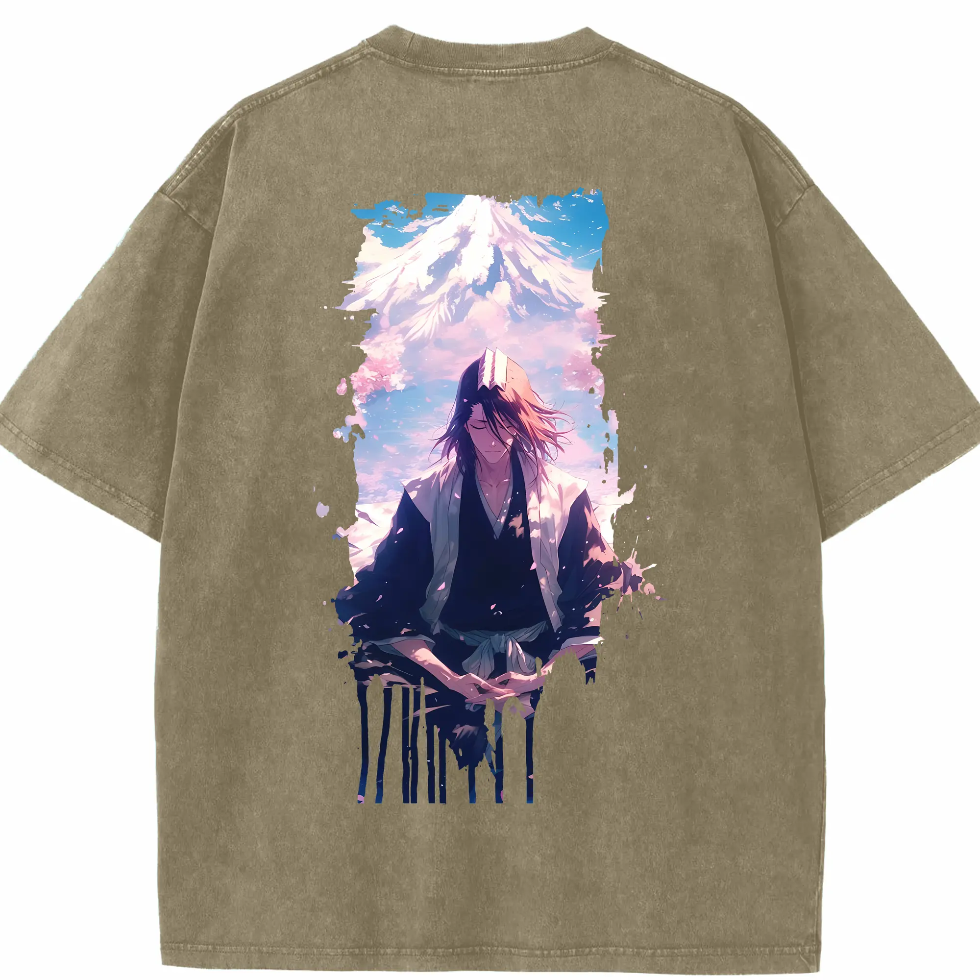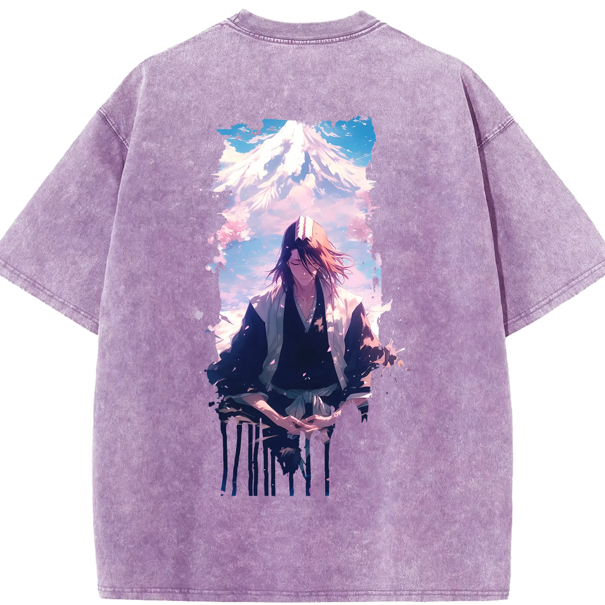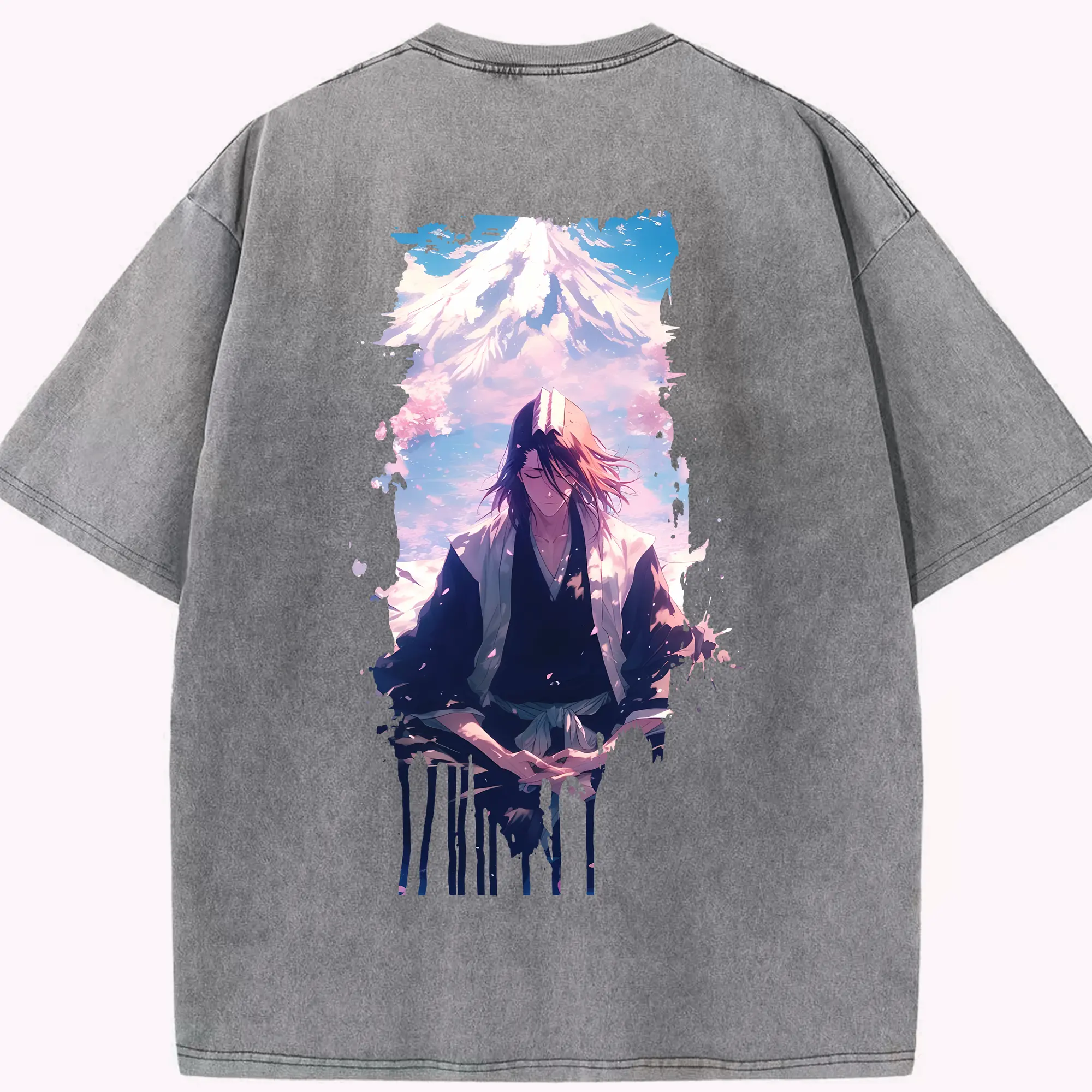 ブリーチ グッズ,朽木 白哉 - 綿100% ヴィンテージ風 半袖Tシャツ ・ フロントプリント ・ 柔らか肌触り ・ 通気性 快適 ・ スポーツ カジュアル 外出用