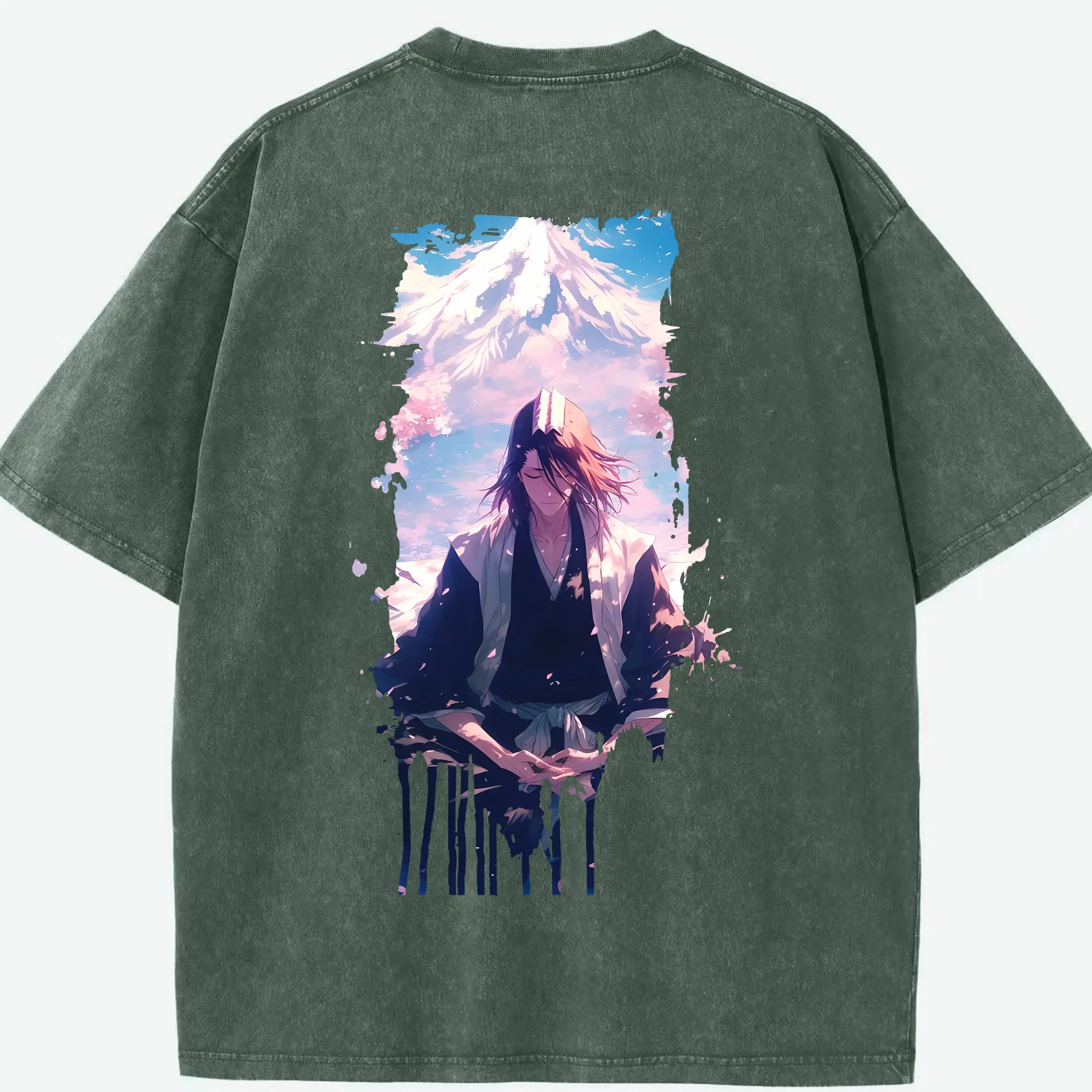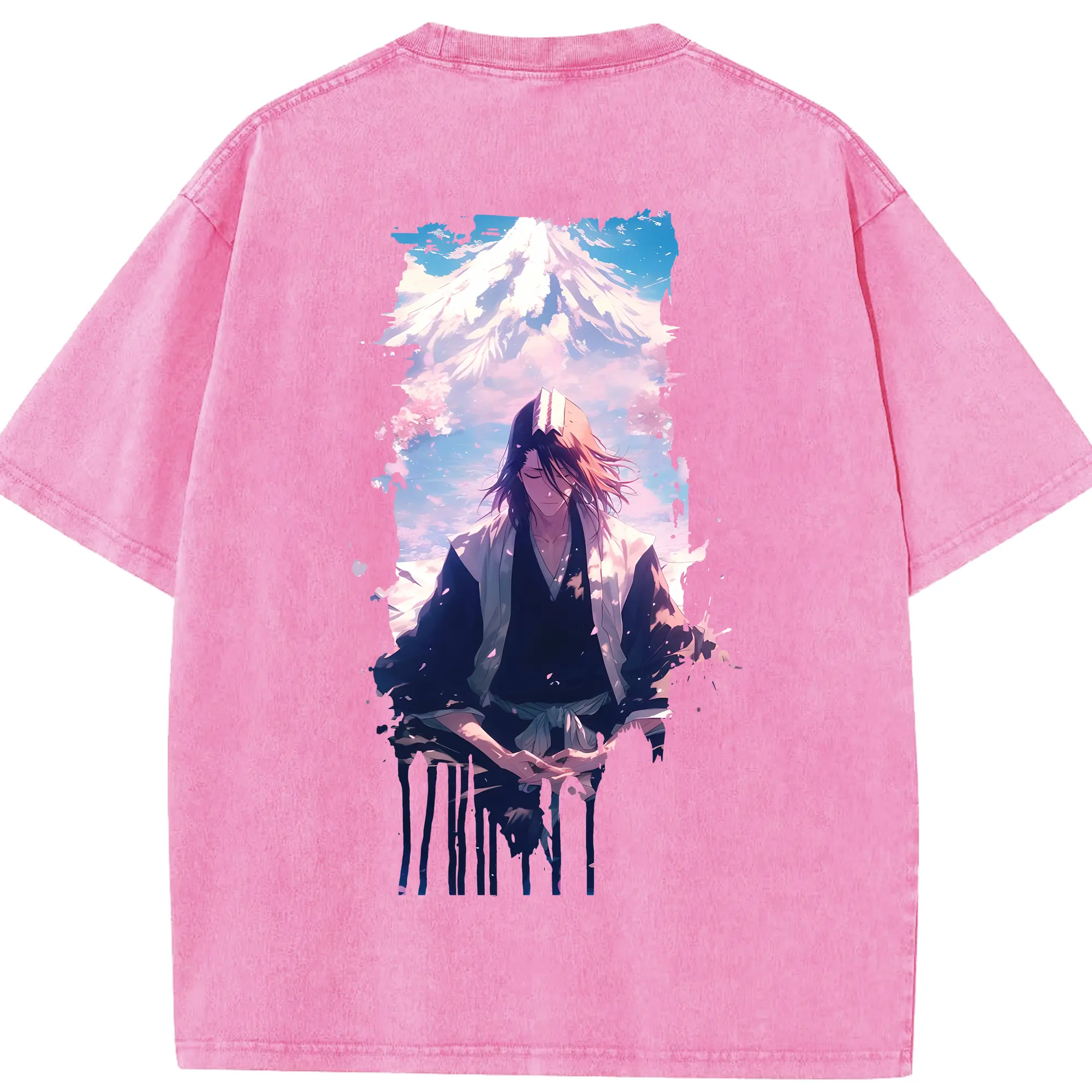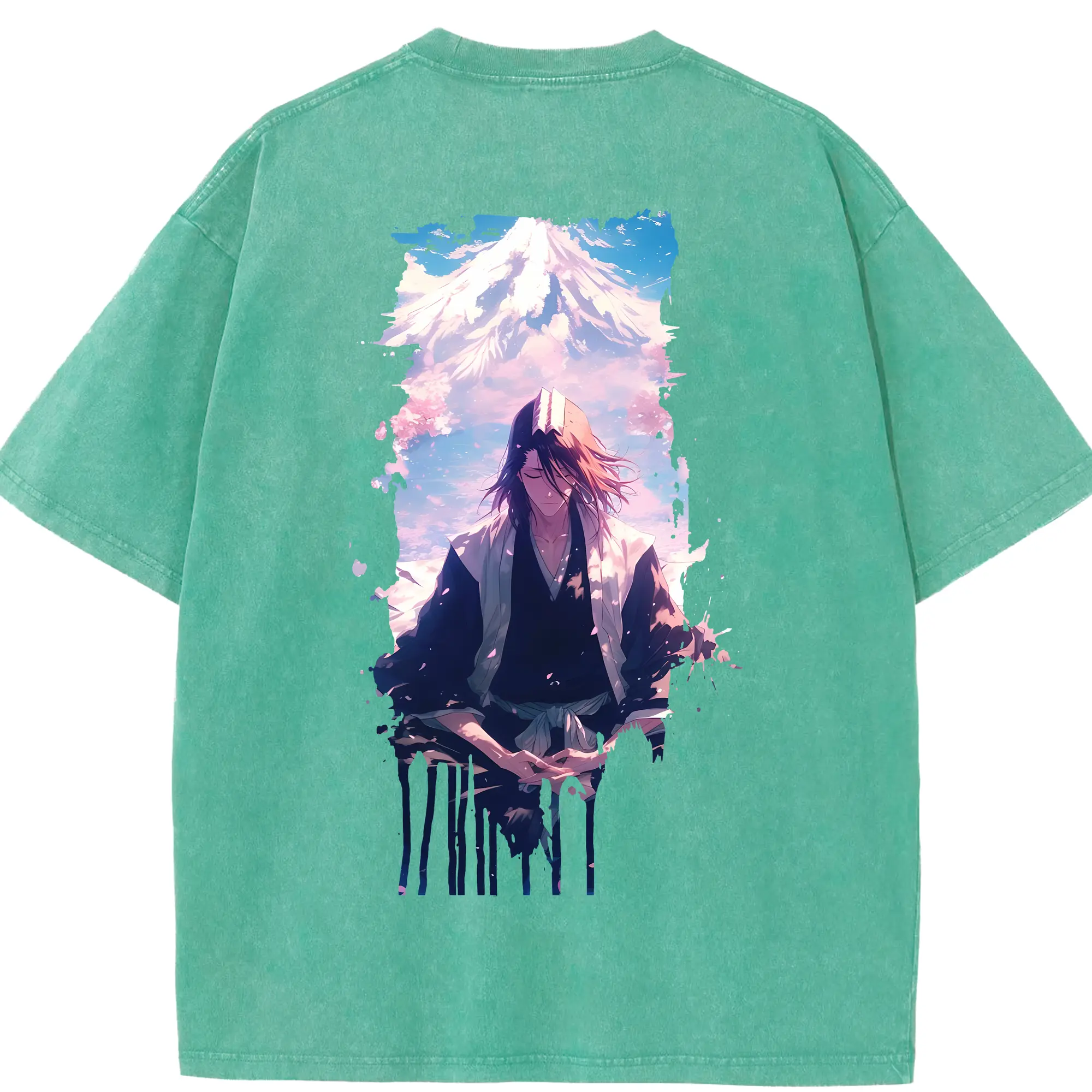ブリーチ グッズ,朽木 白哉 - 綿100% ヴィンテージ風 半袖Tシャツ ・ フロントプリント ・ 柔らか肌触り ・ 通気性 快適 ・ スポーツ カジュアル 外出用