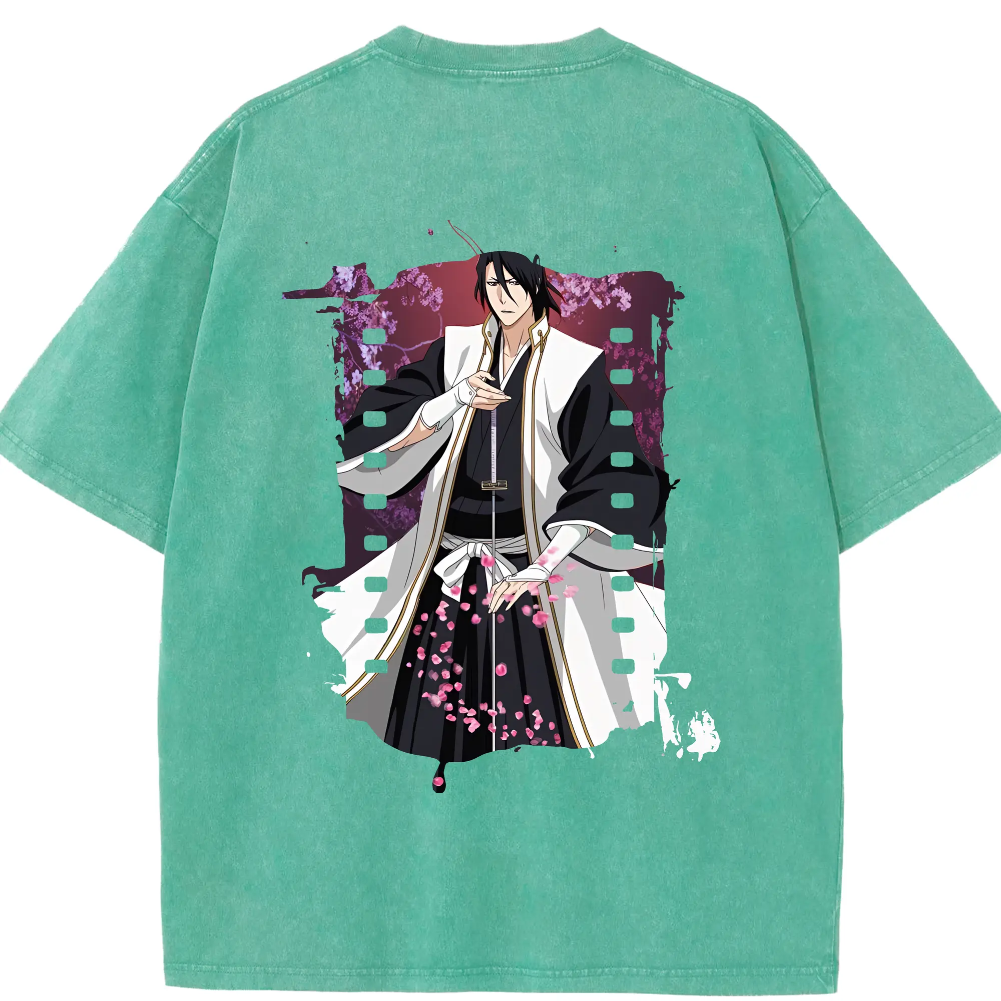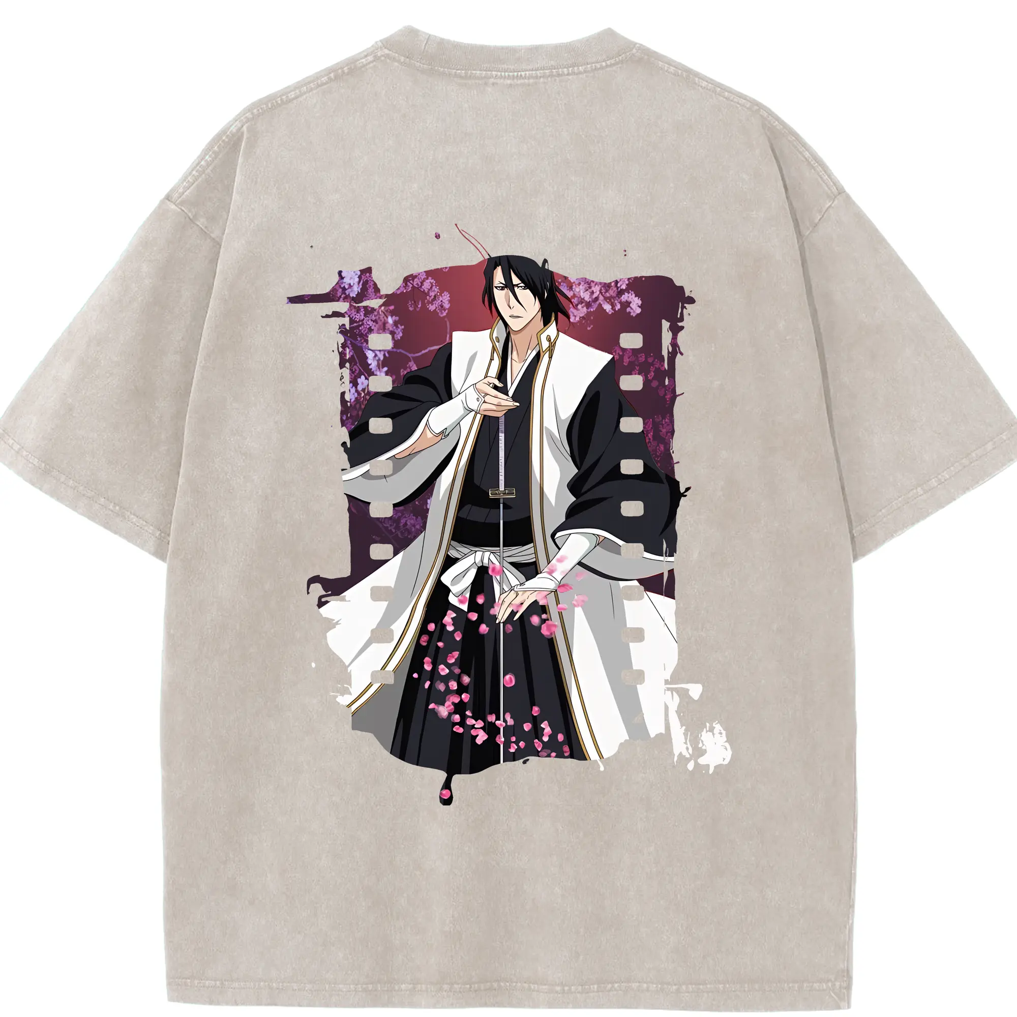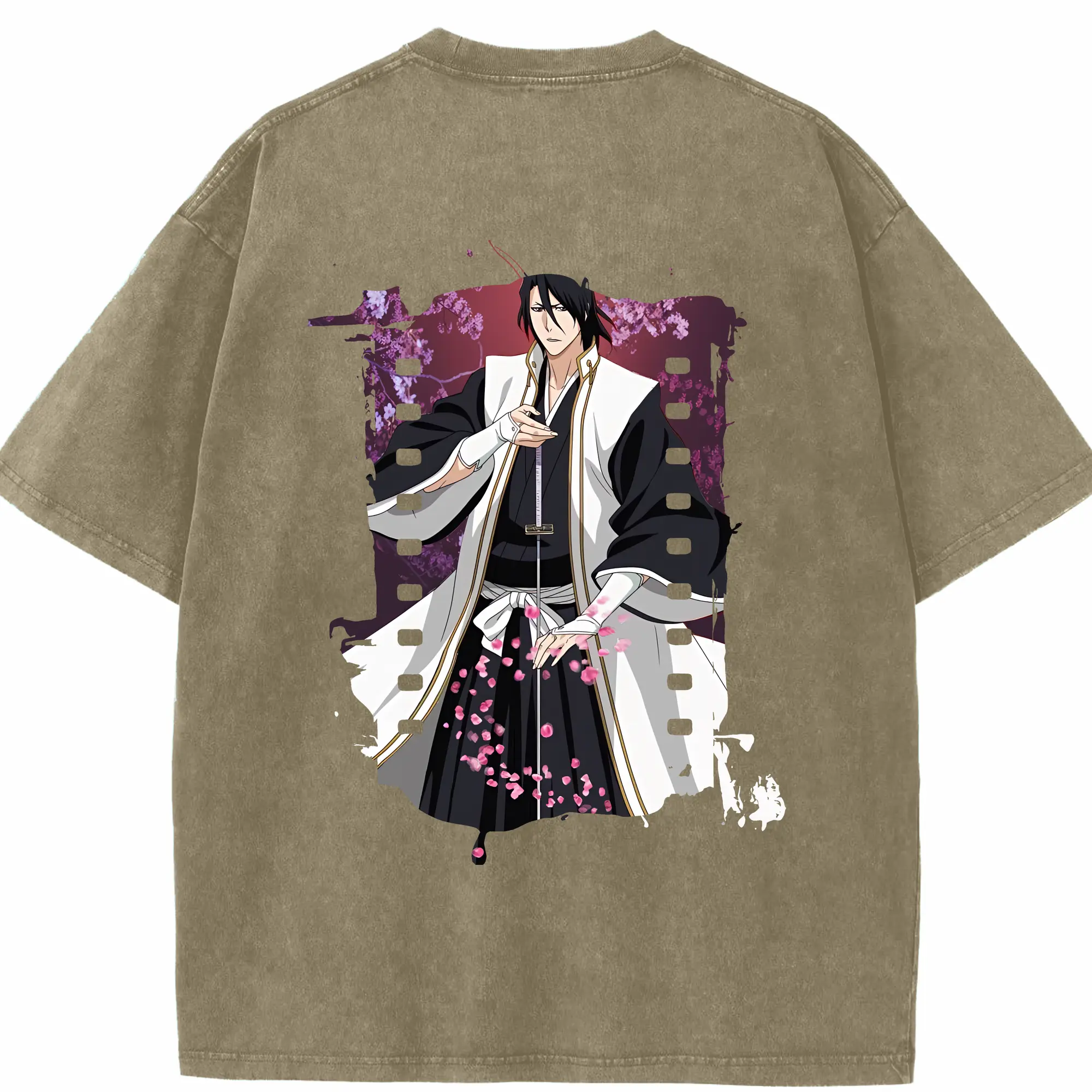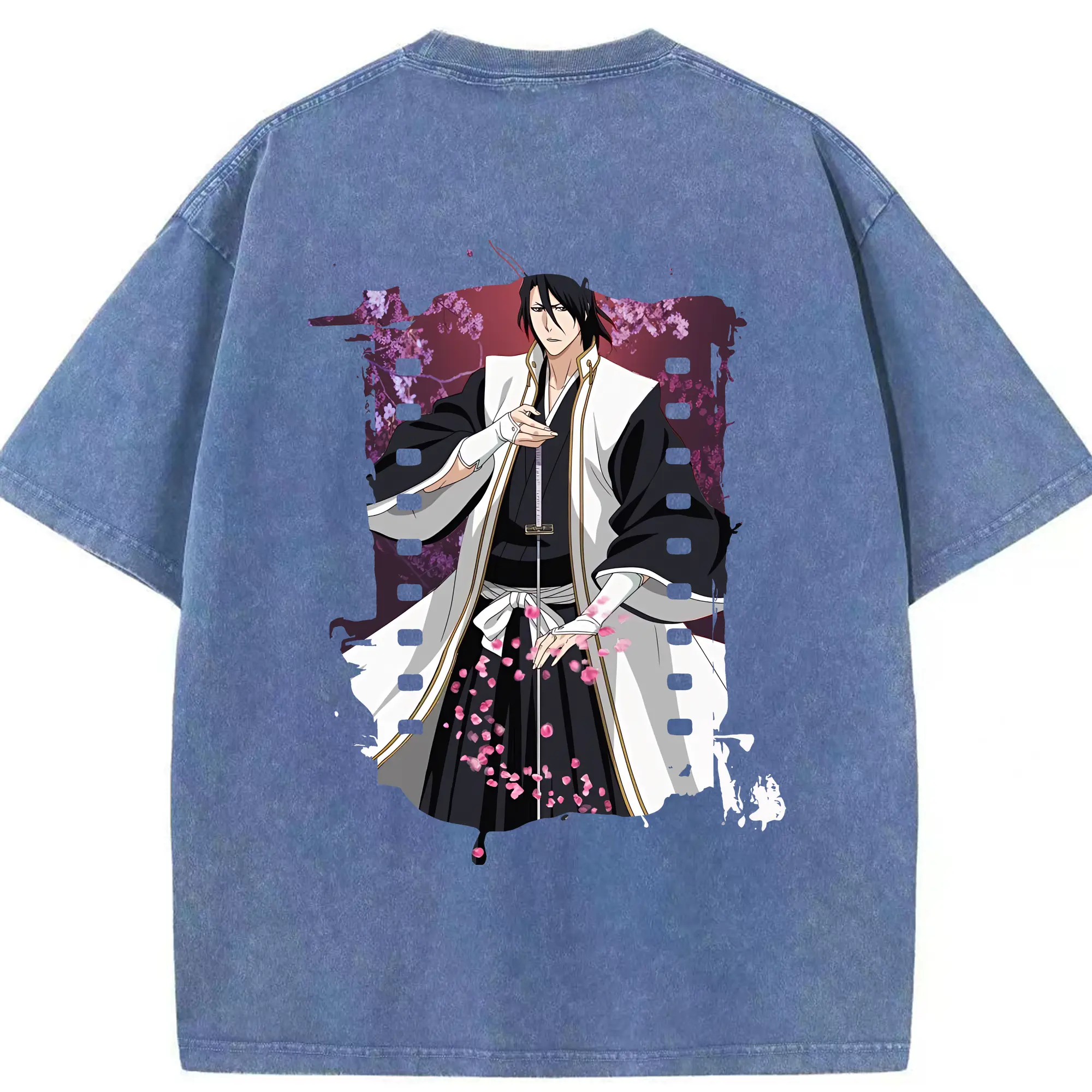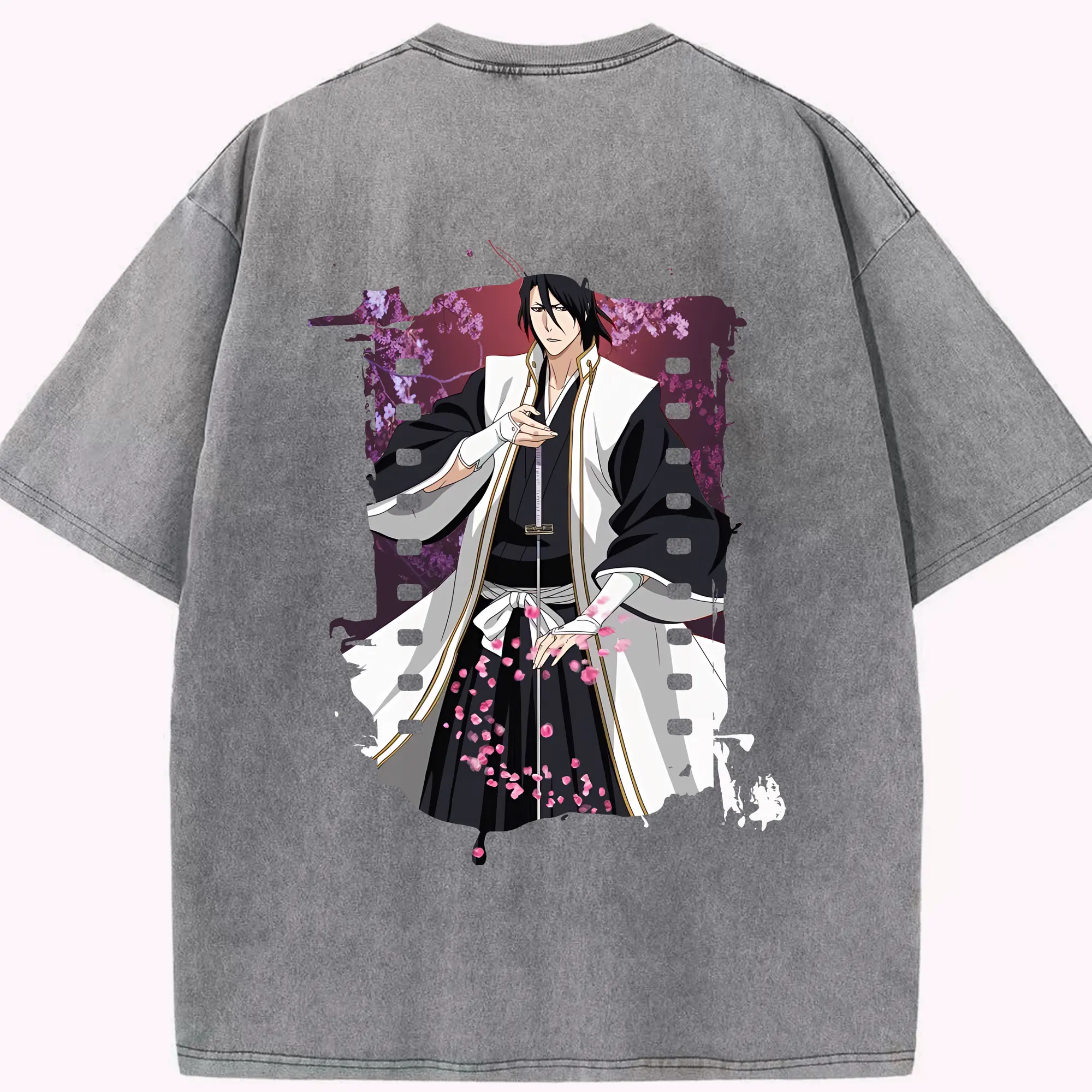 ブリーチ グッズ,朽木 白哉 - 綿100% ヴィンテージ風 半袖Tシャツ ・ フロントプリント ・ 柔らか肌触り ・ 通気性 快適 ・ スポーツ カジュアル 外出用