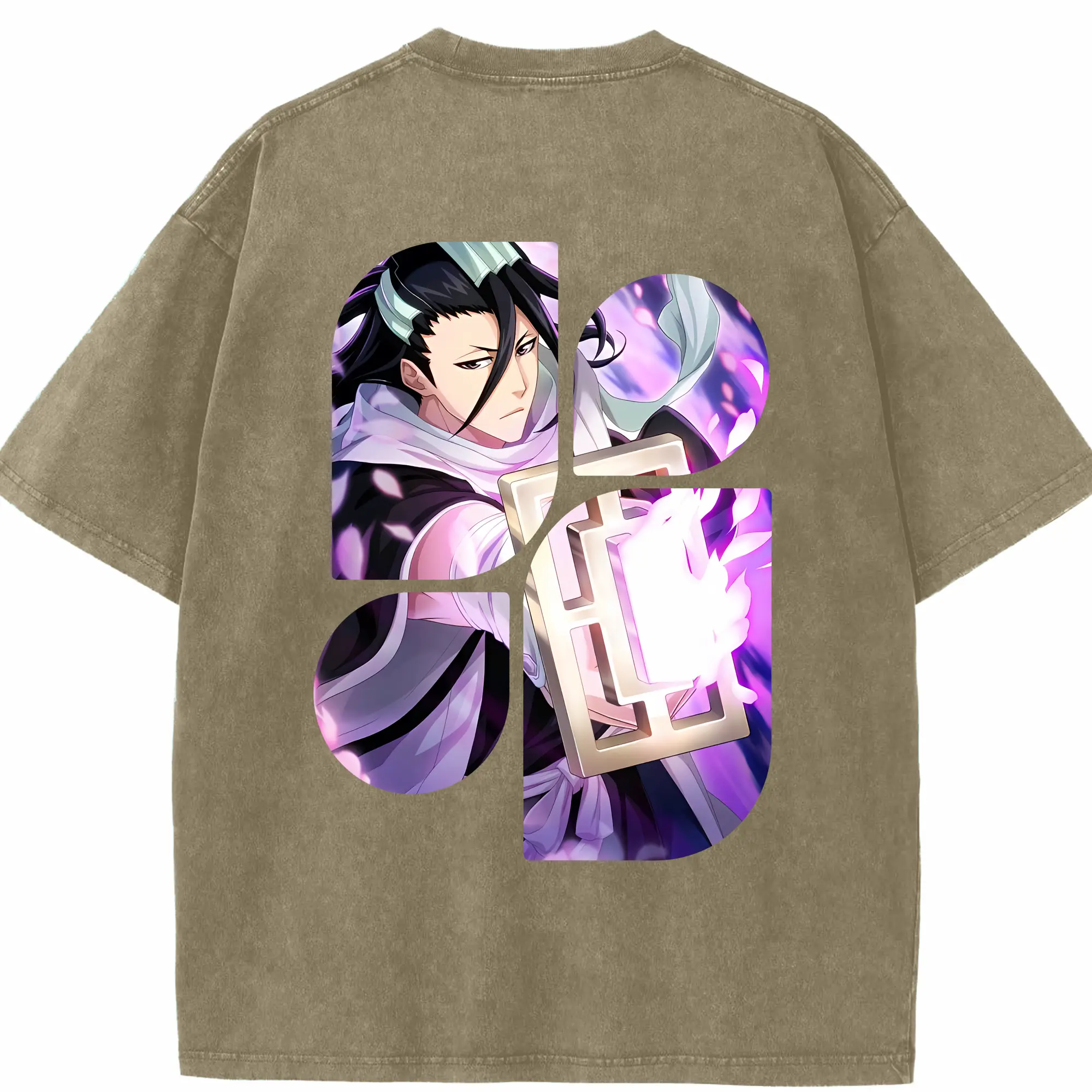 ブリーチ グッズ,朽木 白哉 - 綿100% ヴィンテージ風 半袖Tシャツ ・ フロントプリント ・ 柔らか肌触り ・ 通気性 快適 ・ スポーツ カジュアル 外出用