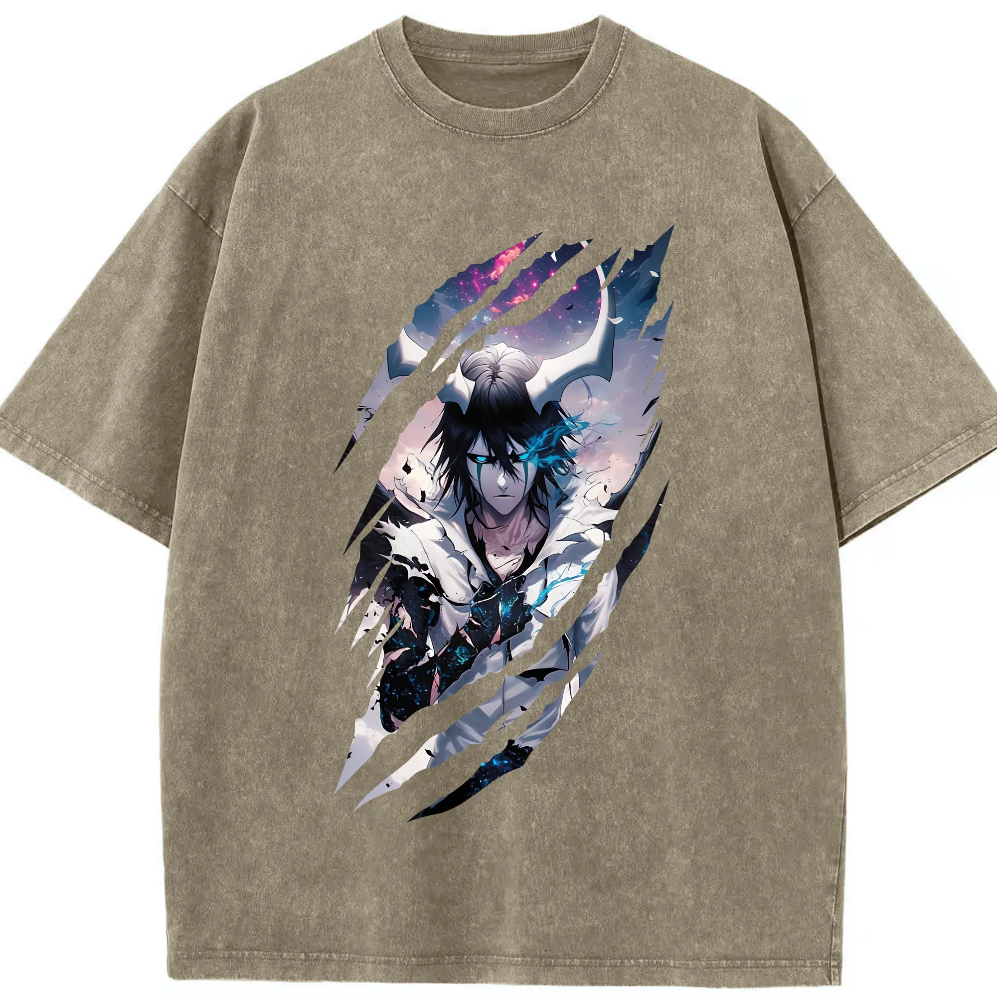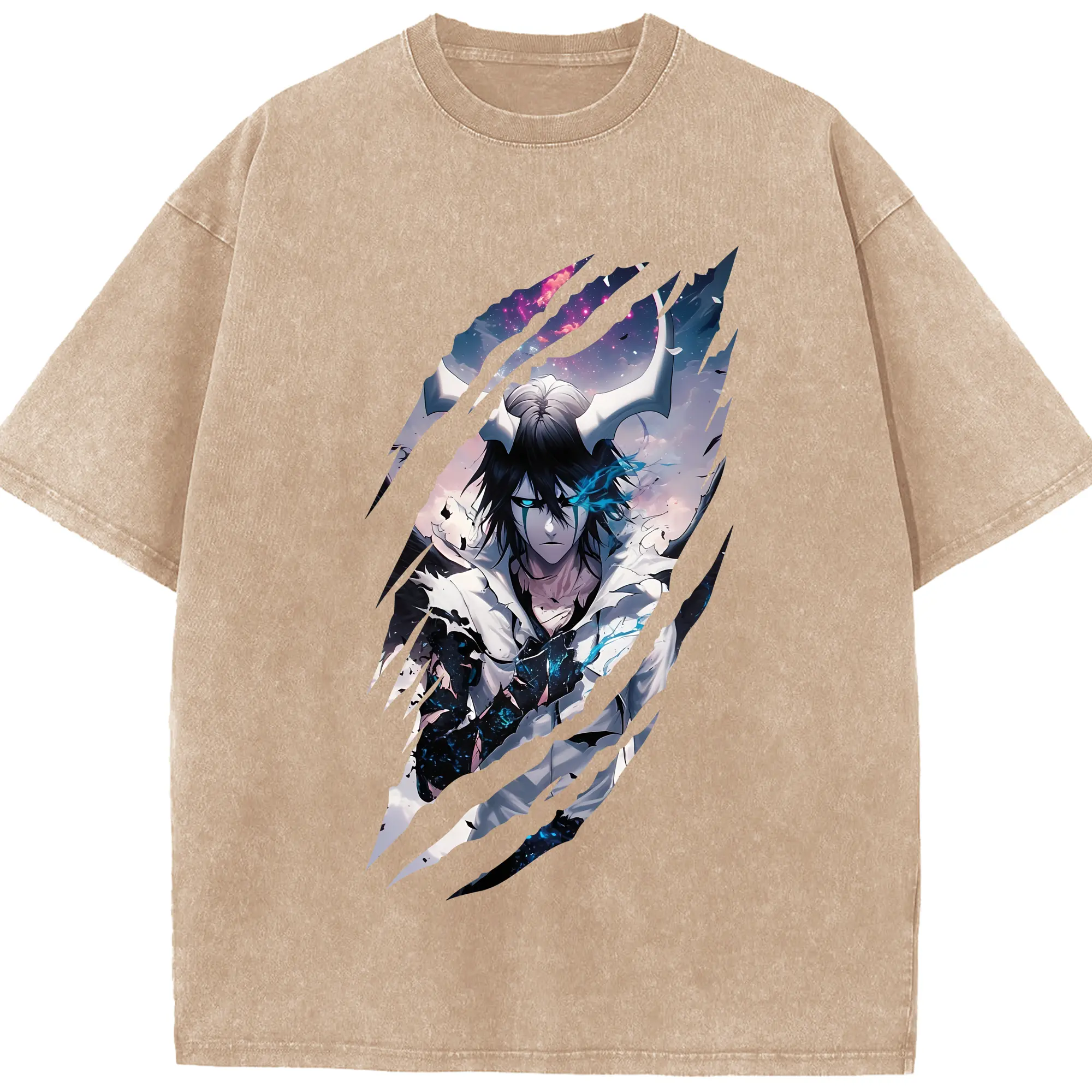 ブリーチ グッズ ウルキオラ・シファー - 綿100% ヴィンテージ風 半袖Tシャツ ・ 背面プリント ・ 柔らか肌触り ・ 通気性 快適 ・ スポーツ カジュアル 外出用