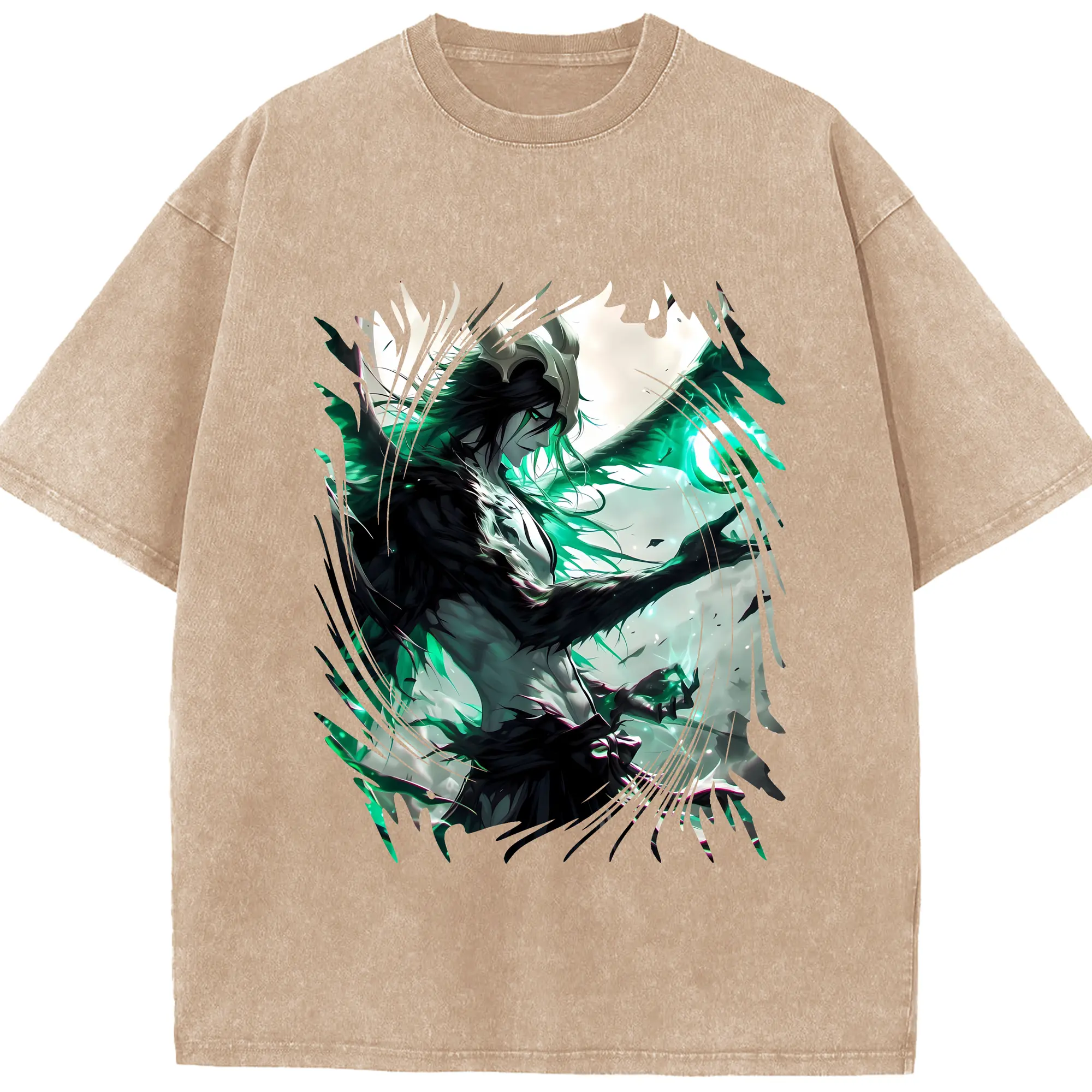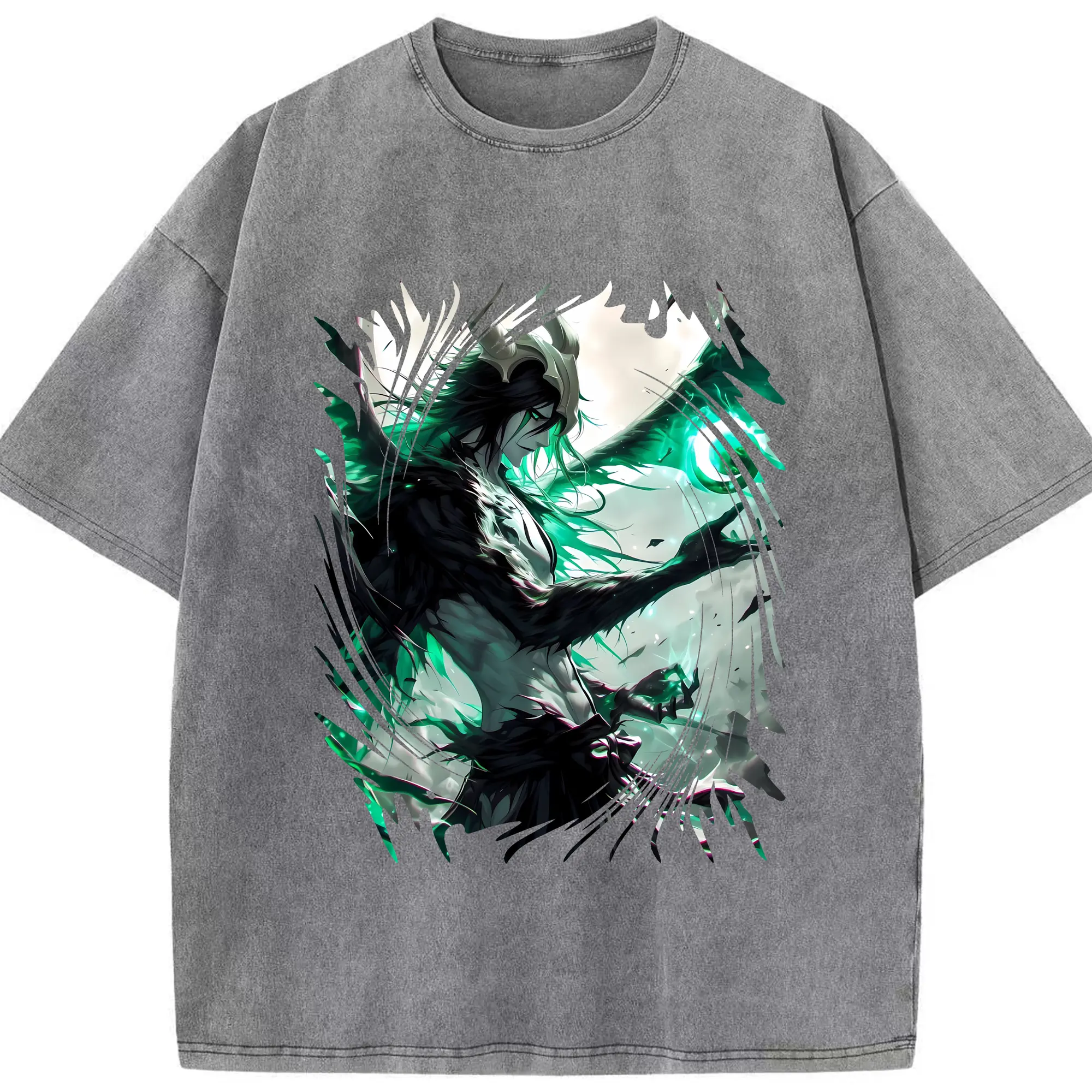 ブリーチ グッズ ウルキオラ・シファー - 綿100% ヴィンテージ風 半袖Tシャツ ・ 背面プリント ・ 柔らか肌触り ・ 通気性 快適 ・ スポーツ カジュアル 外出用