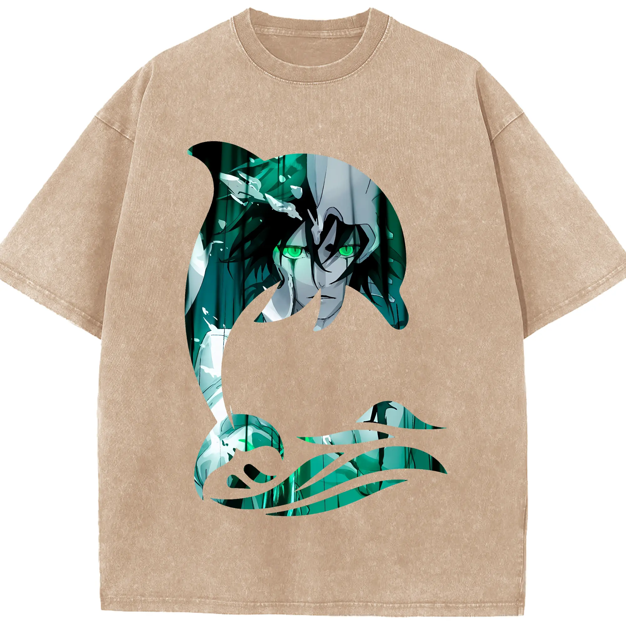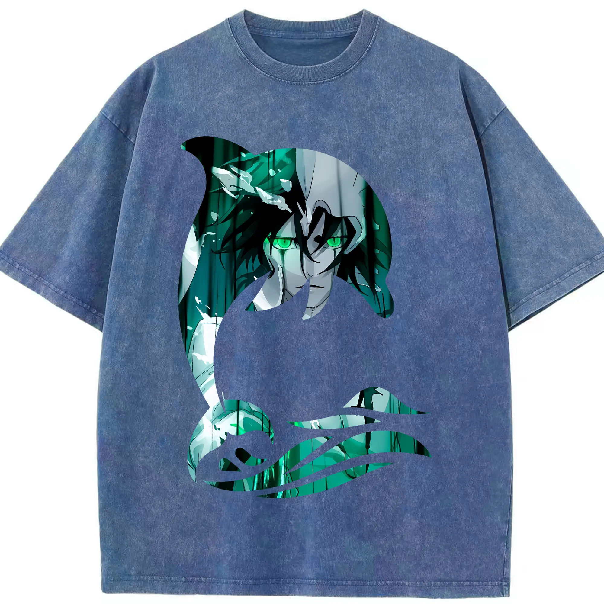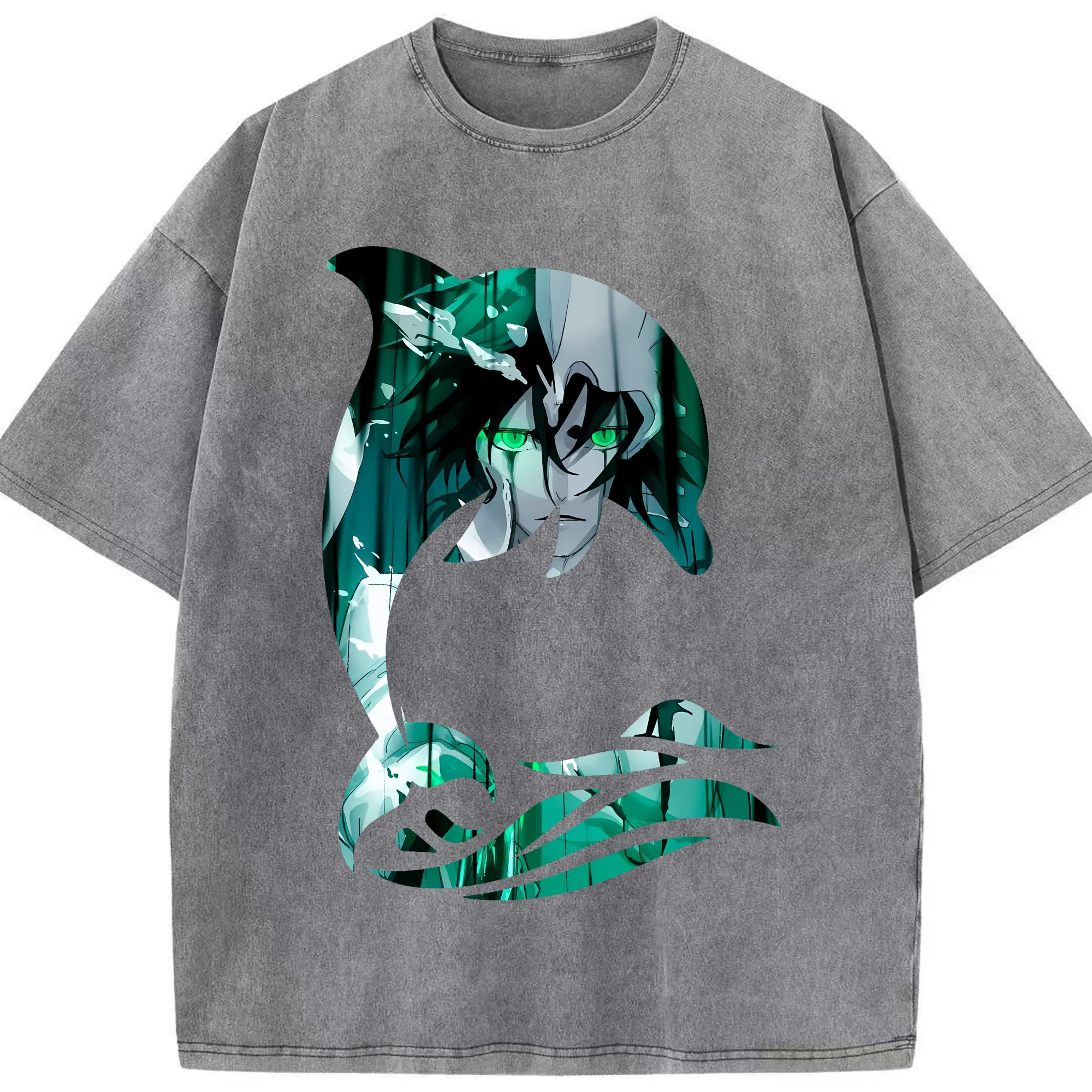 ブリーチ グッズ ウルキオラ・シファー - 綿100% ヴィンテージ風 半袖Tシャツ ・ 背面プリント ・ 柔らか肌触り ・ 通気性 快適 ・ スポーツ カジュアル 外出用