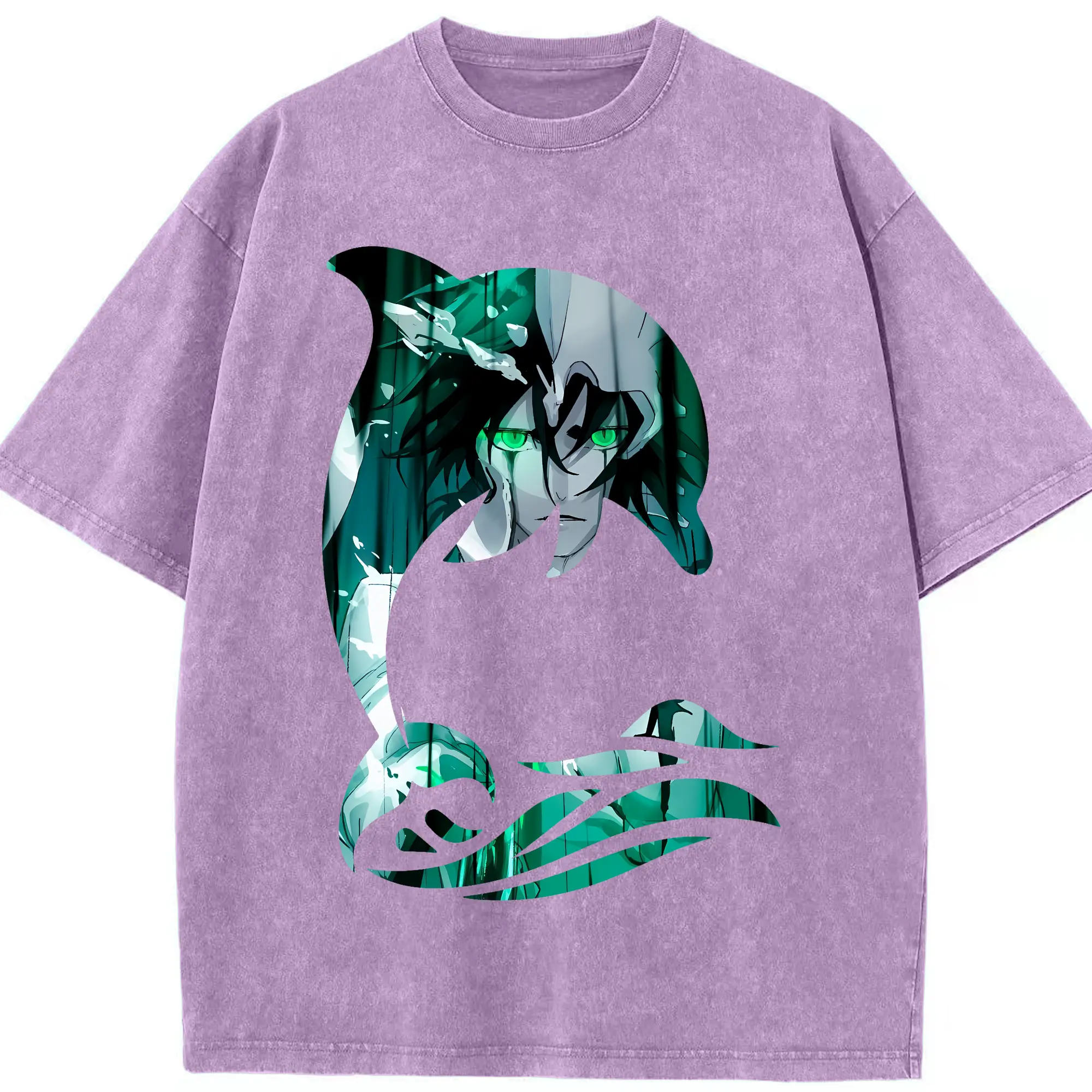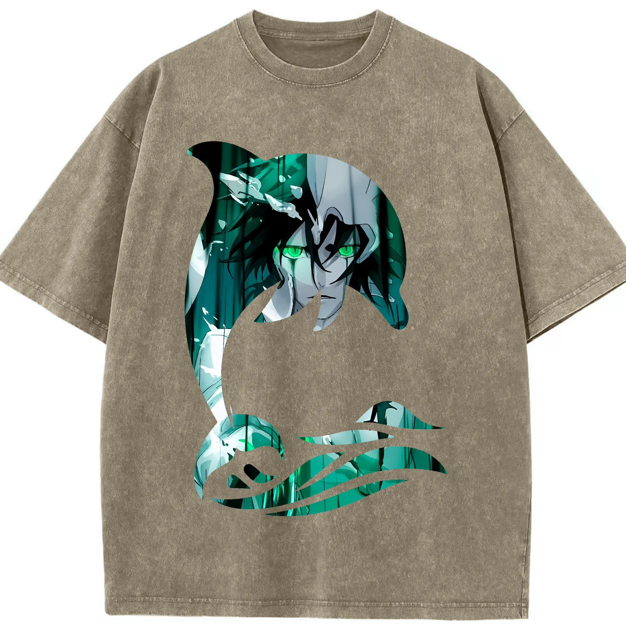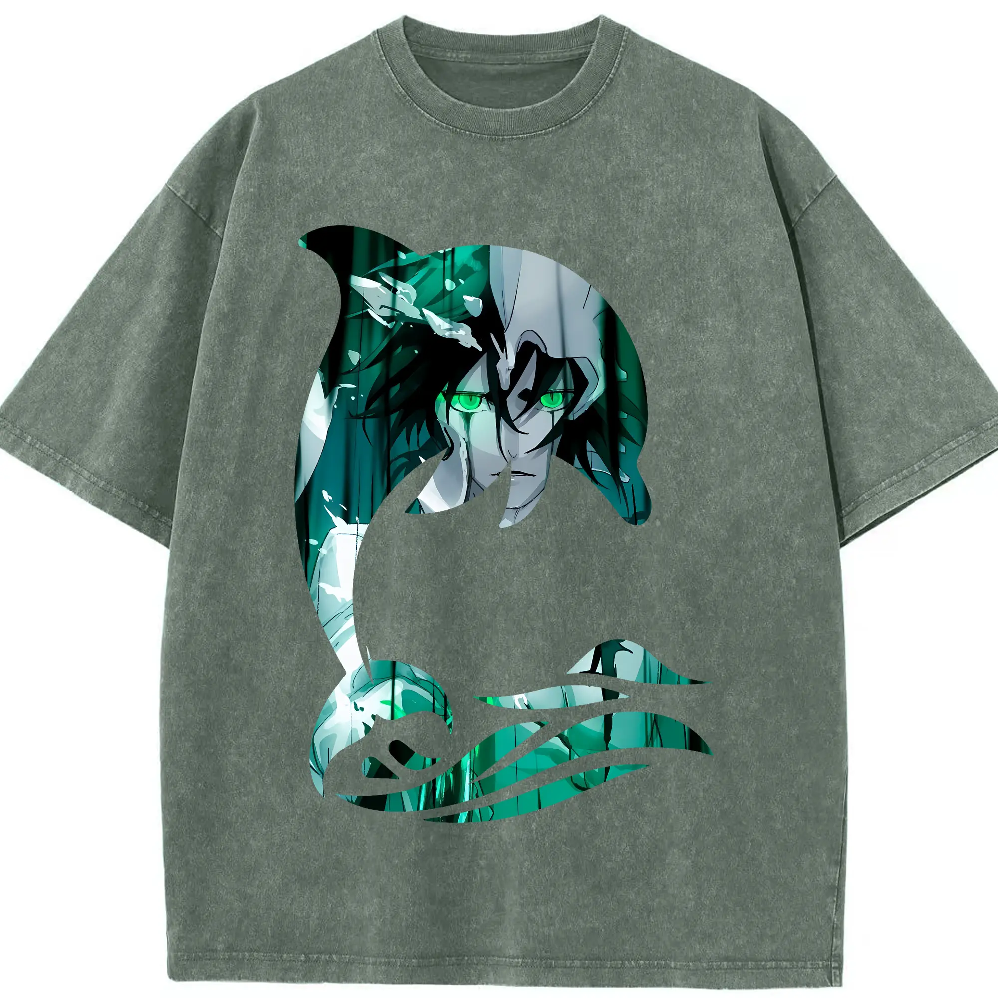 ブリーチ グッズ ウルキオラ・シファー - 綿100% ヴィンテージ風 半袖Tシャツ ・ 背面プリント ・ 柔らか肌触り ・ 通気性 快適 ・ スポーツ カジュアル 外出用