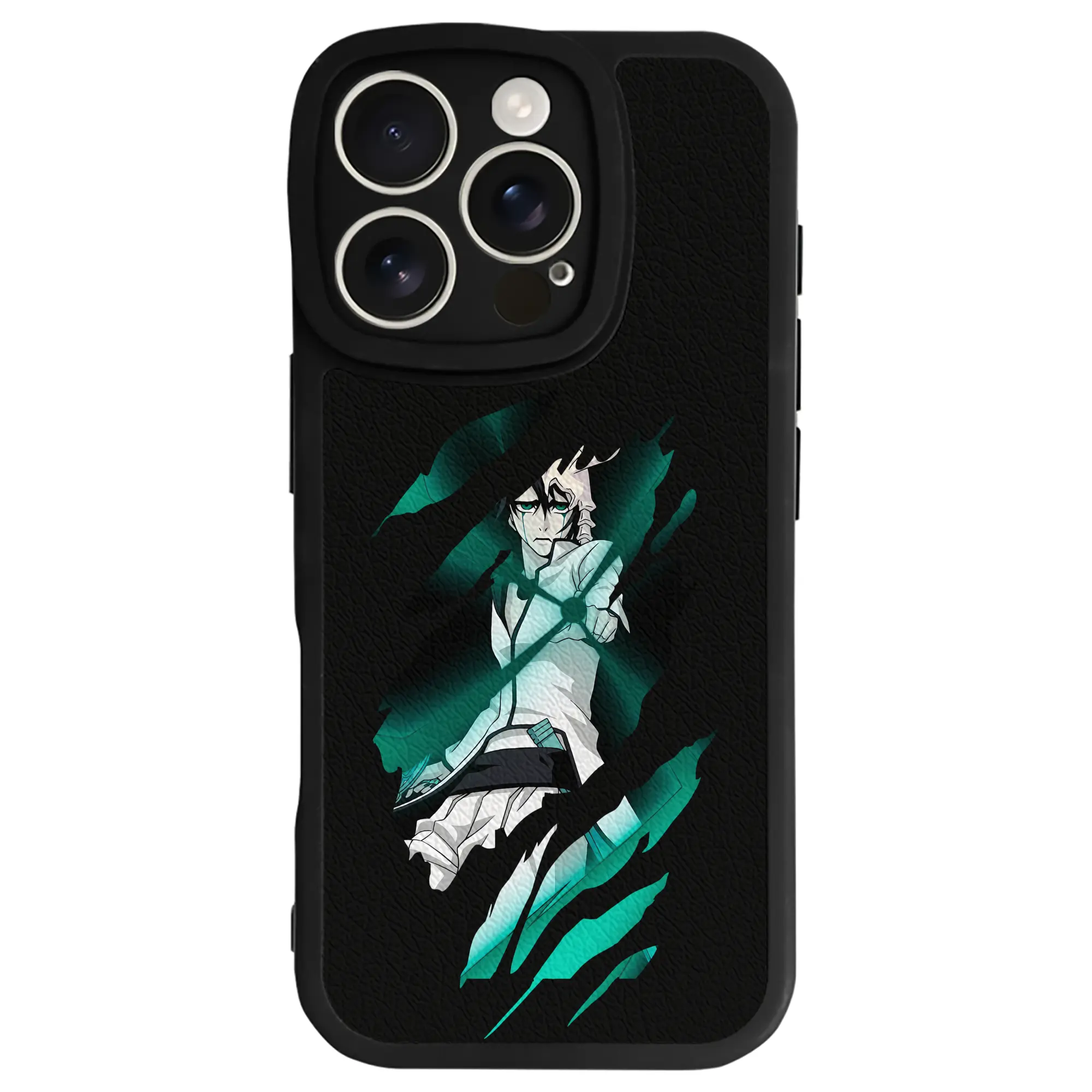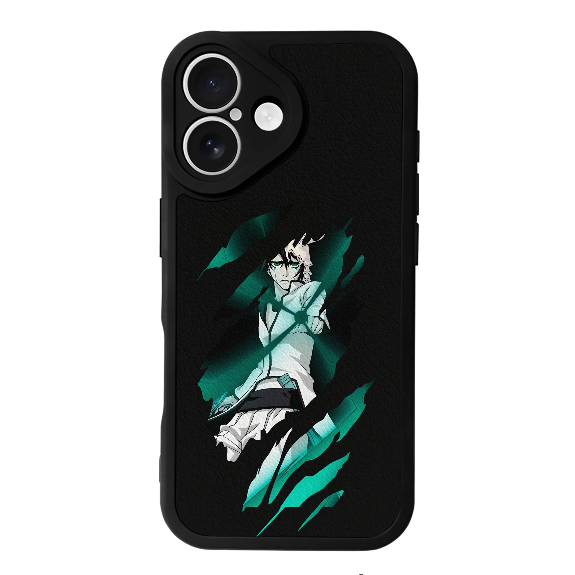 ブリーチ グッズ ウルキオラ・シファー - IPhone 16シリーズ対応 ・ シリコンスマホケース ・ レザー調 ・ 高精度フィット ・ 耐衝撃 ・ ワイヤレス充電対応 ・ 精密カット