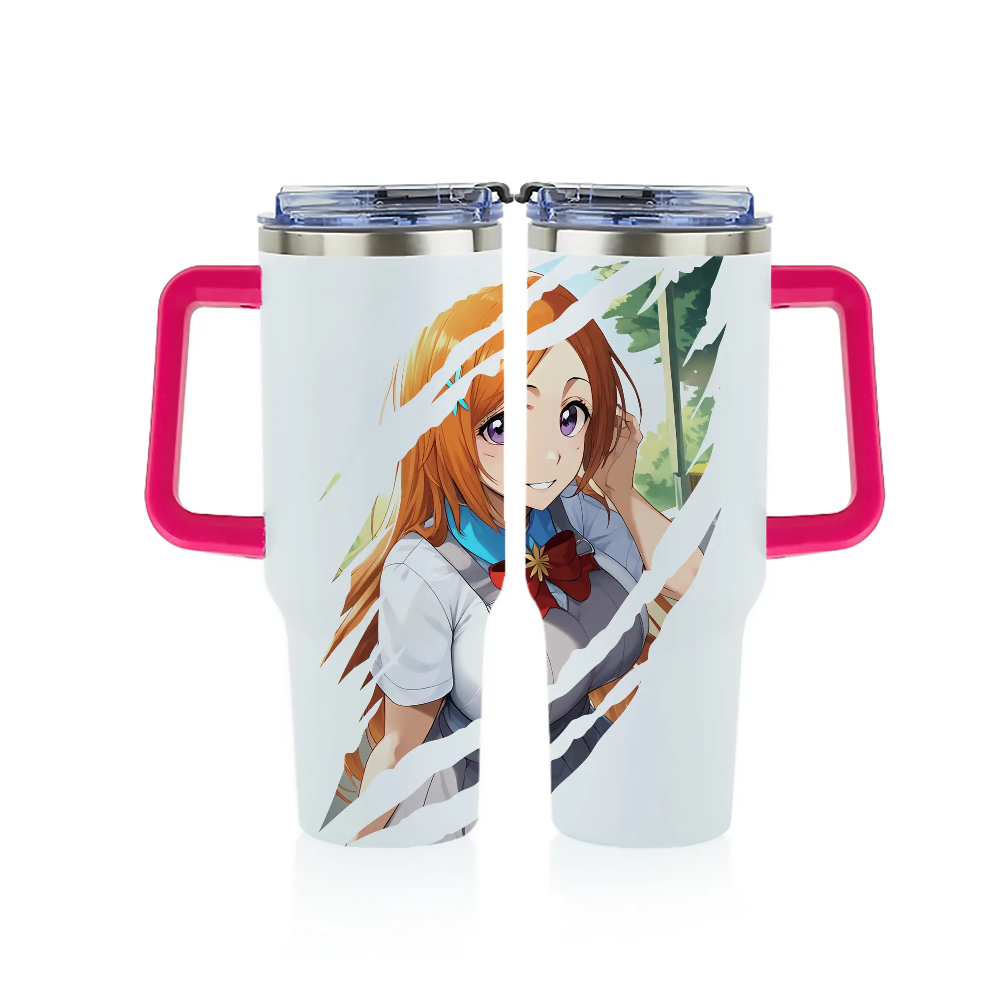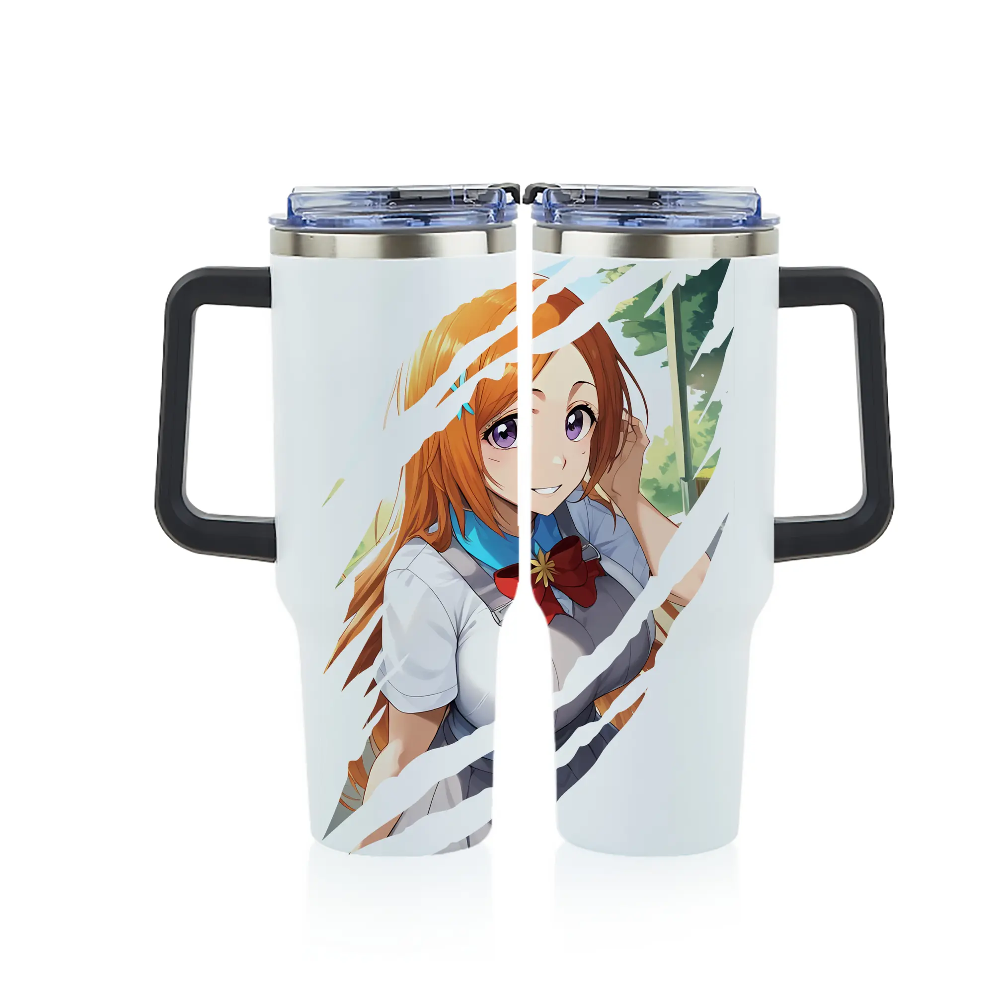 ブリーチ グッズ 井上 織姫 - 1200mL フルプリント車用タンブラー ・ 304ステンレス 内側 ・ 201ステンレス 外側 ・ 保温 保冷 ・ 通勤 ドライブ アウトドア用