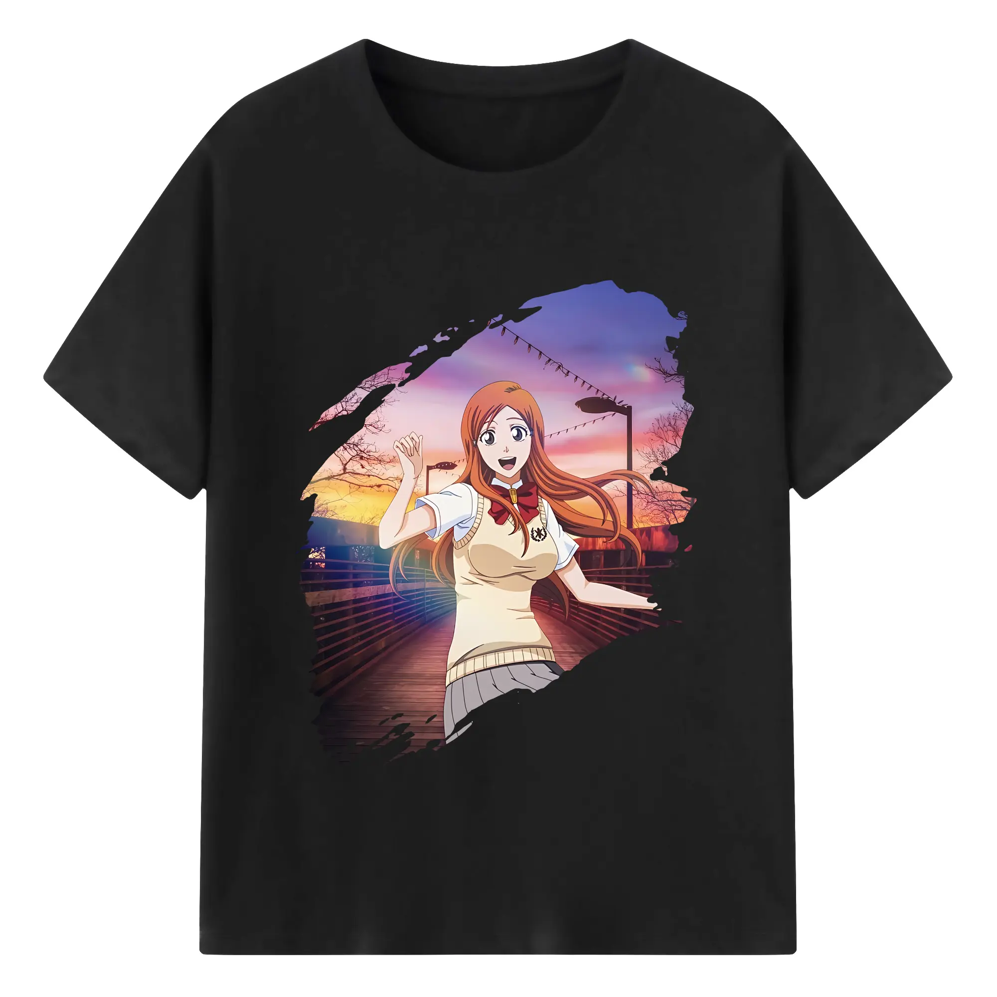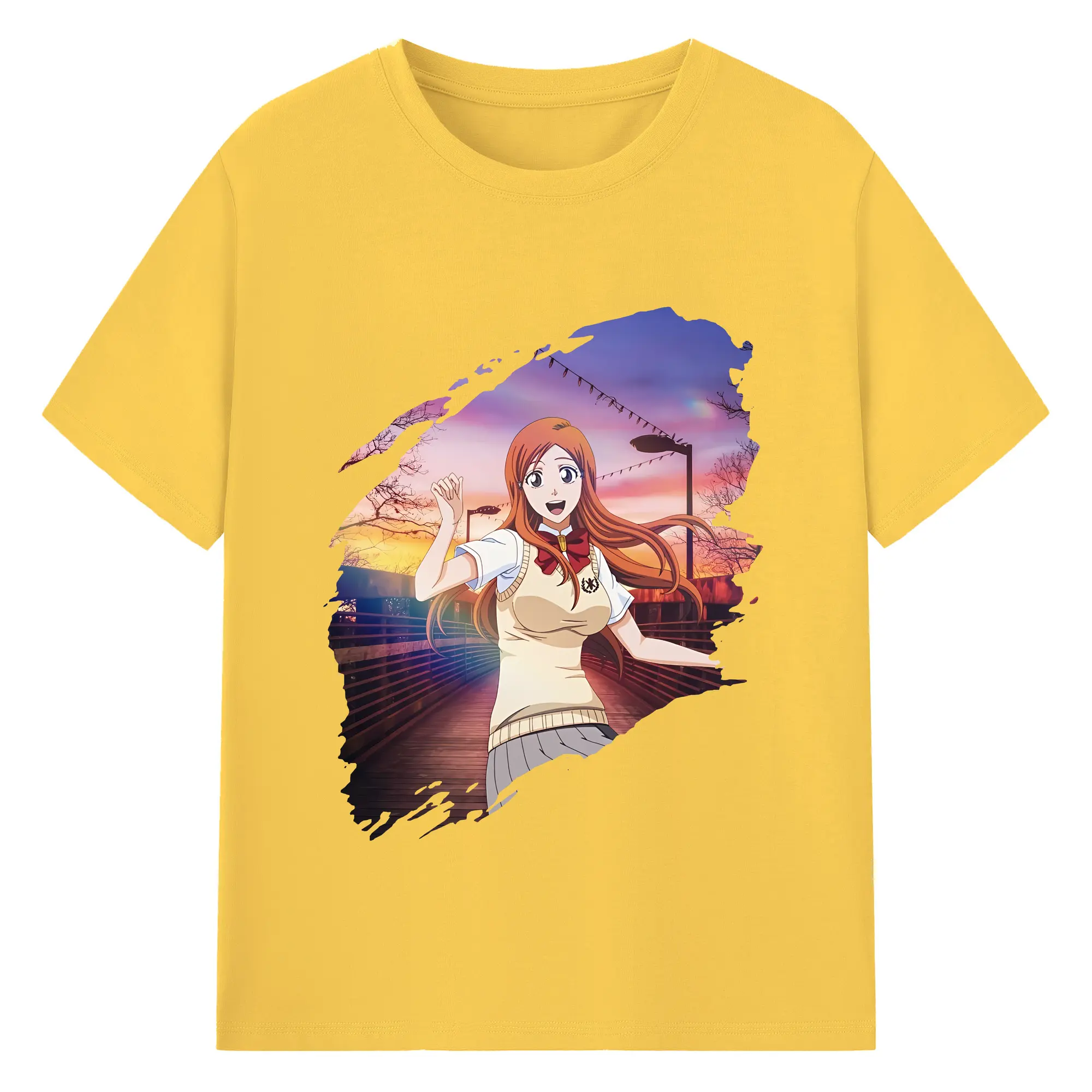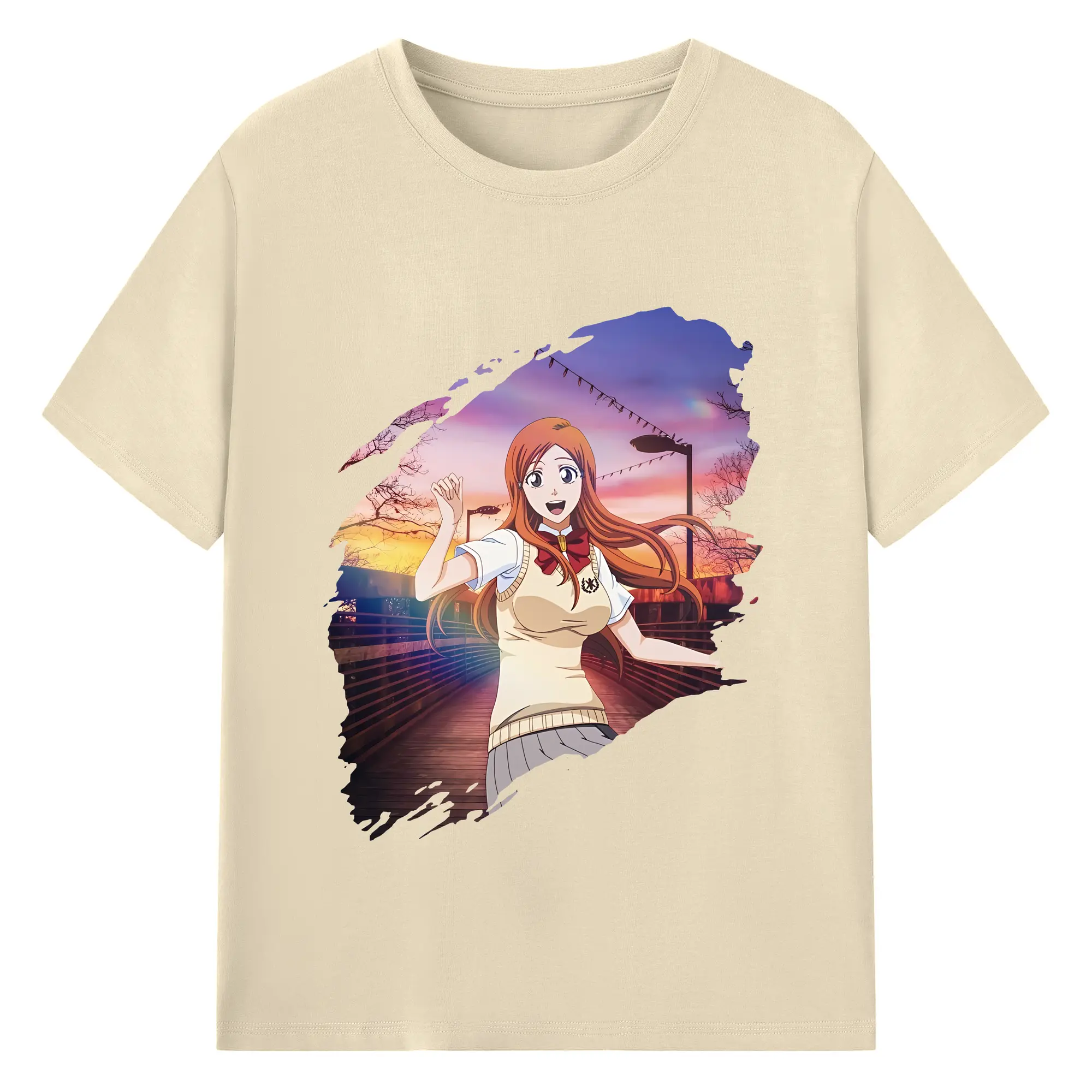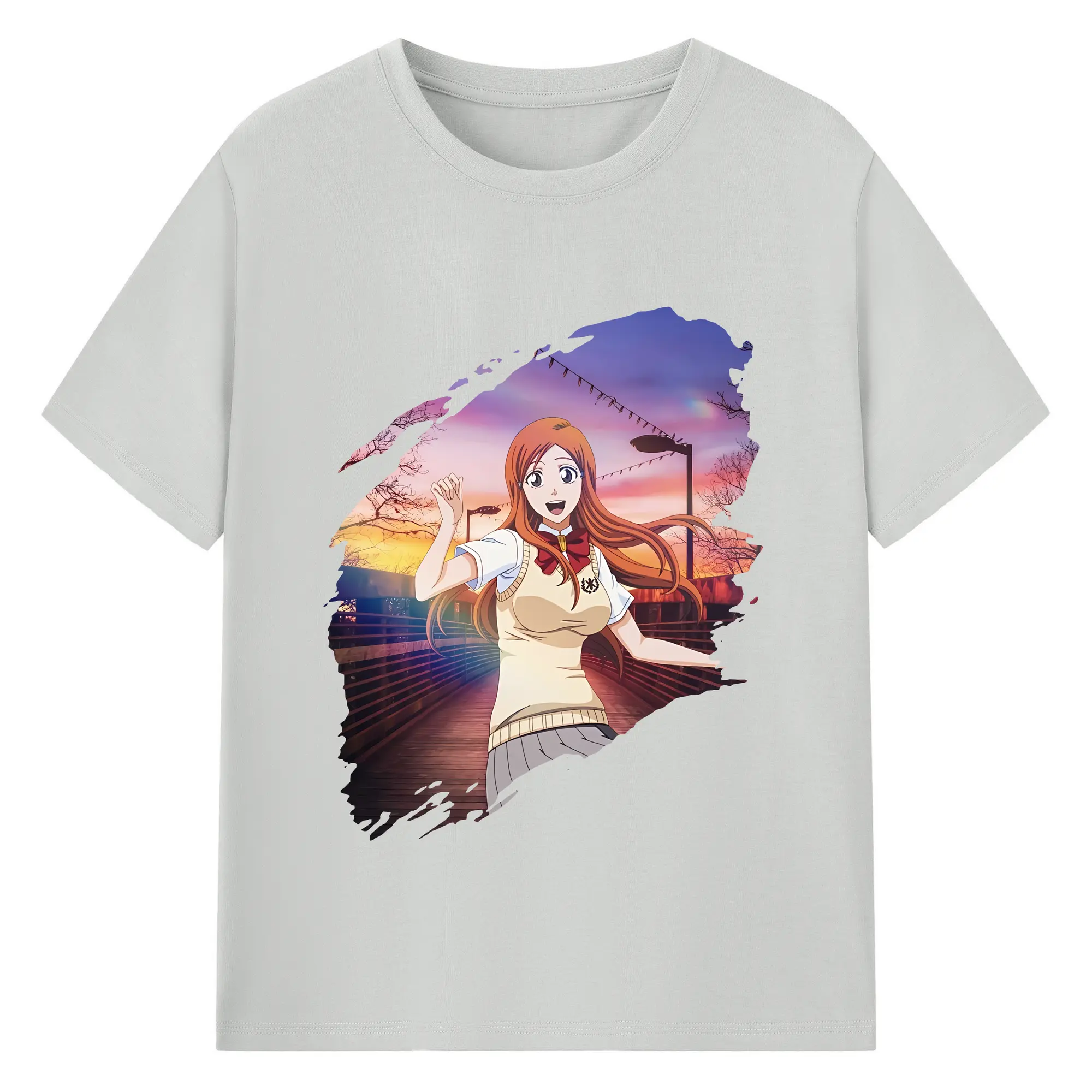 ブリーチ グッズ 井上 織姫 - 綿100% ヴィンテージ風 半袖Tシャツ ・ フロントプリント ・ 柔らか肌触り ・ 通気性 快適 ・ スポーツ カジュアル 外出用