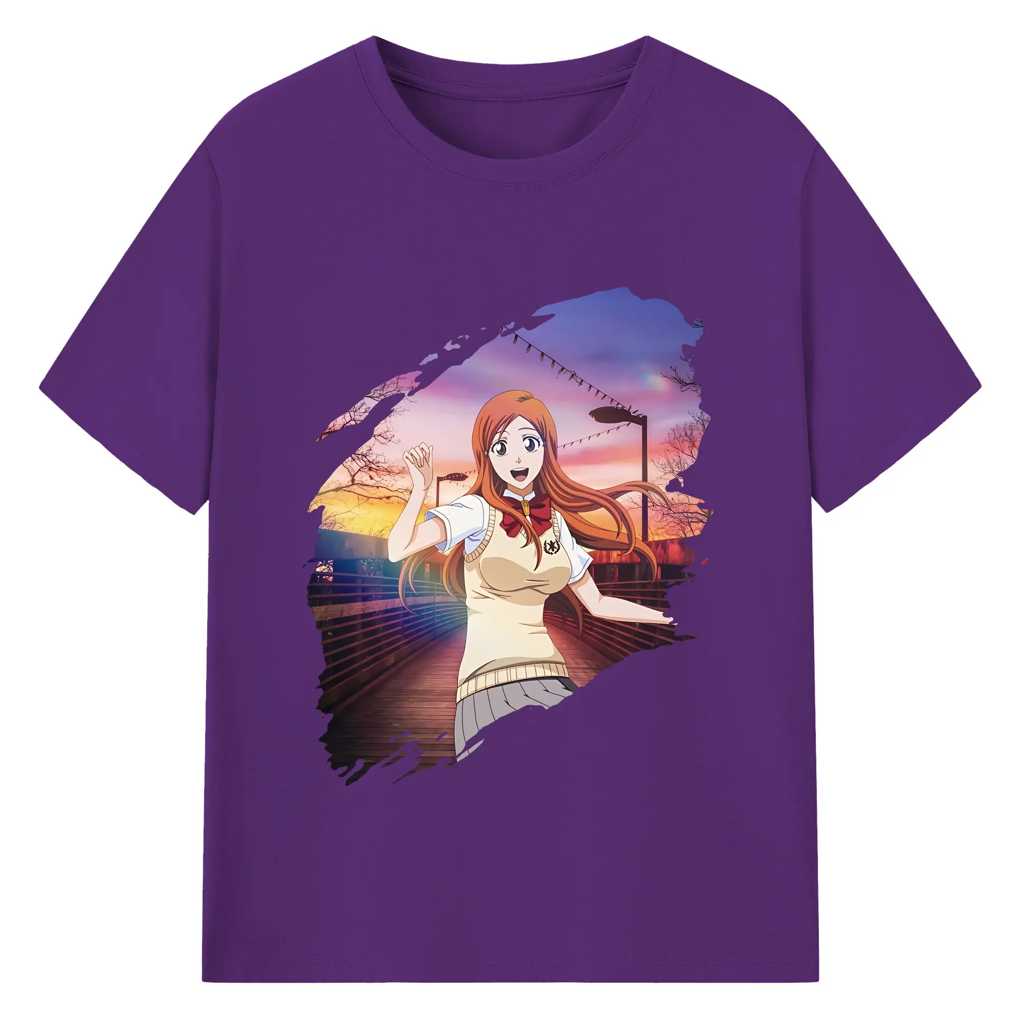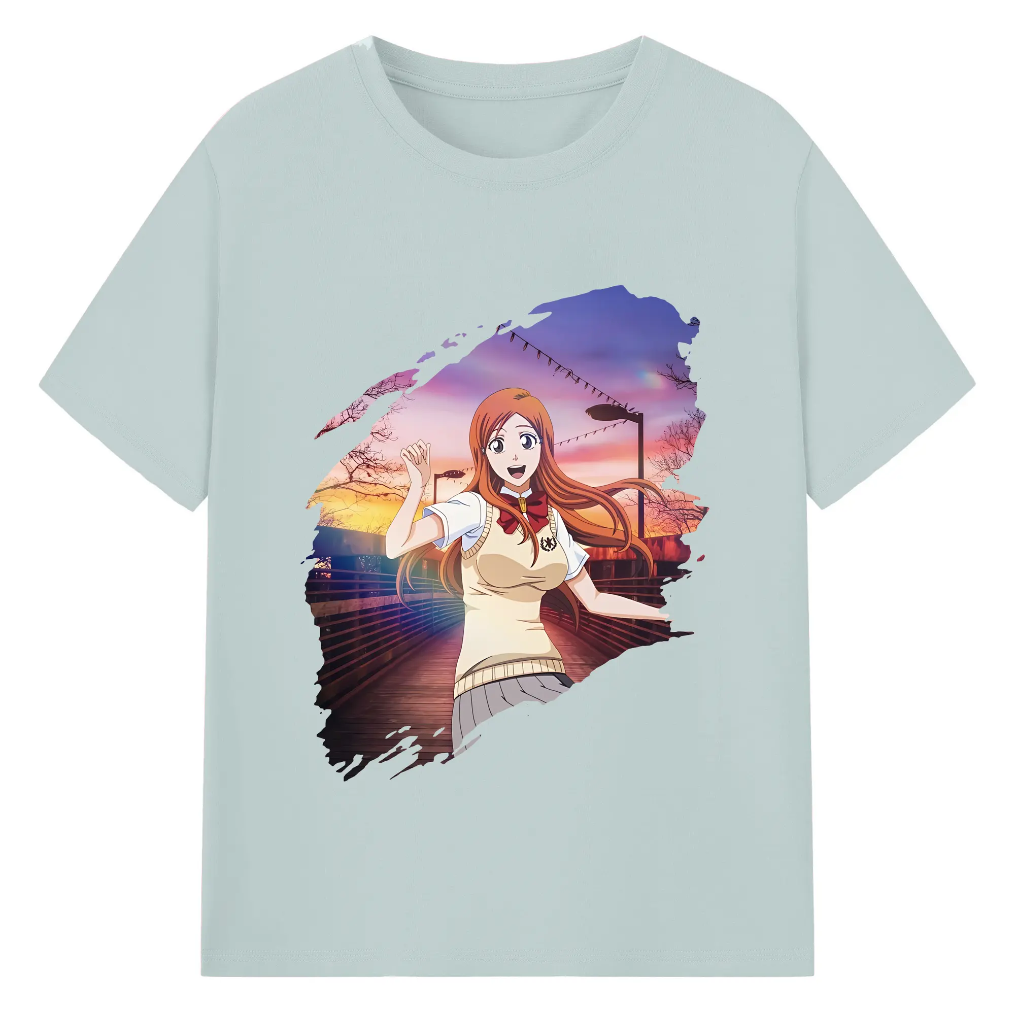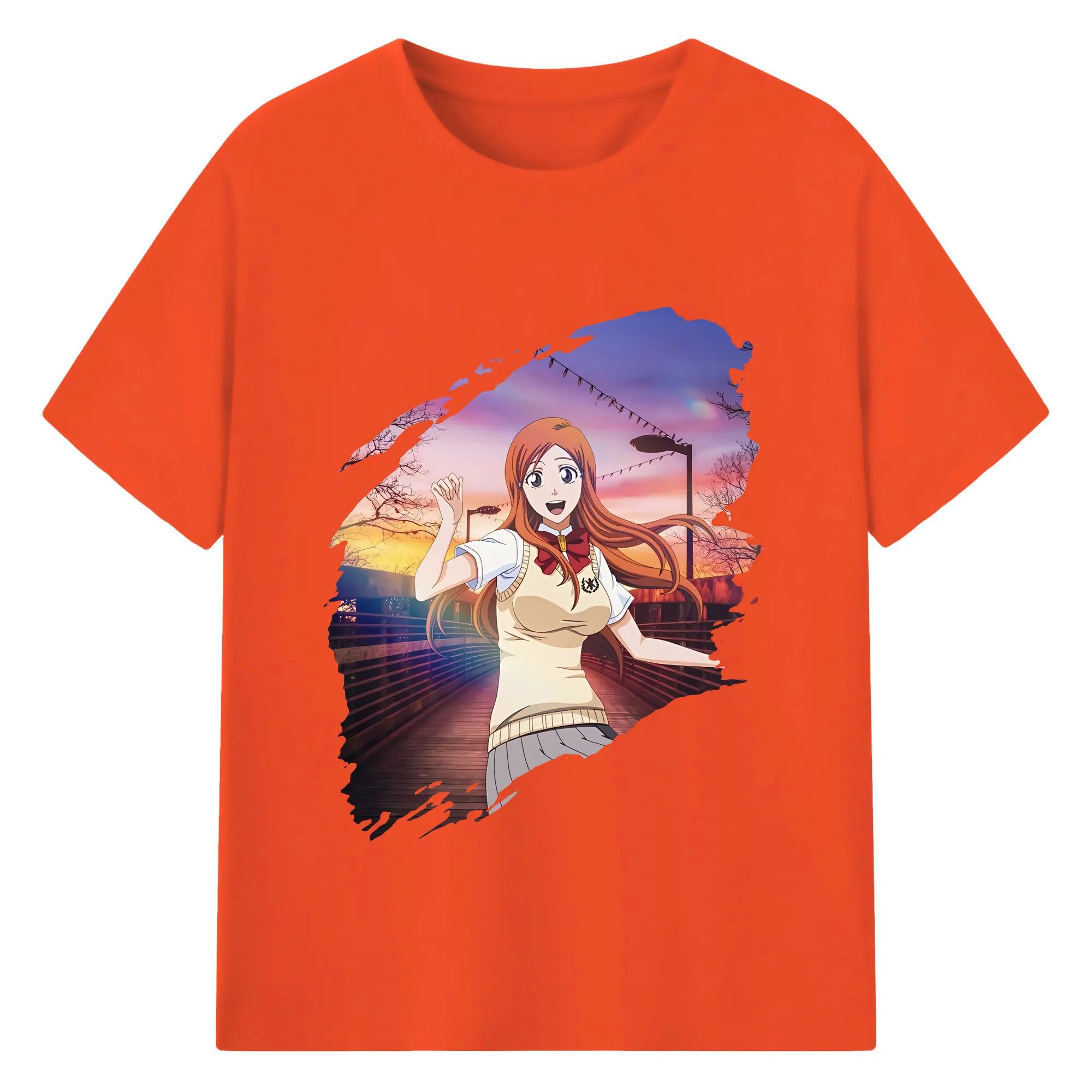 ブリーチ グッズ 井上 織姫 - 綿100% ヴィンテージ風 半袖Tシャツ ・ フロントプリント ・ 柔らか肌触り ・ 通気性 快適 ・ スポーツ カジュアル 外出用