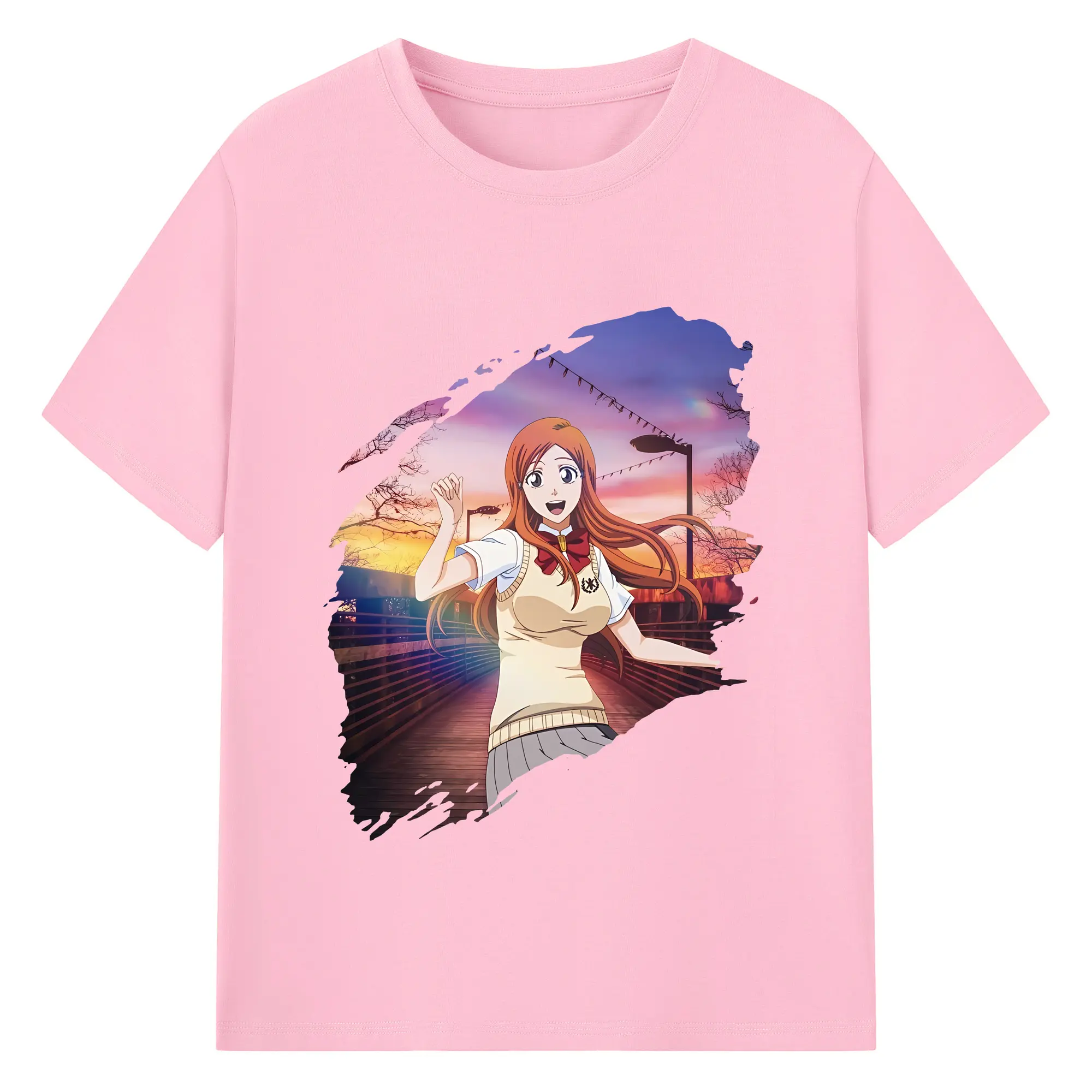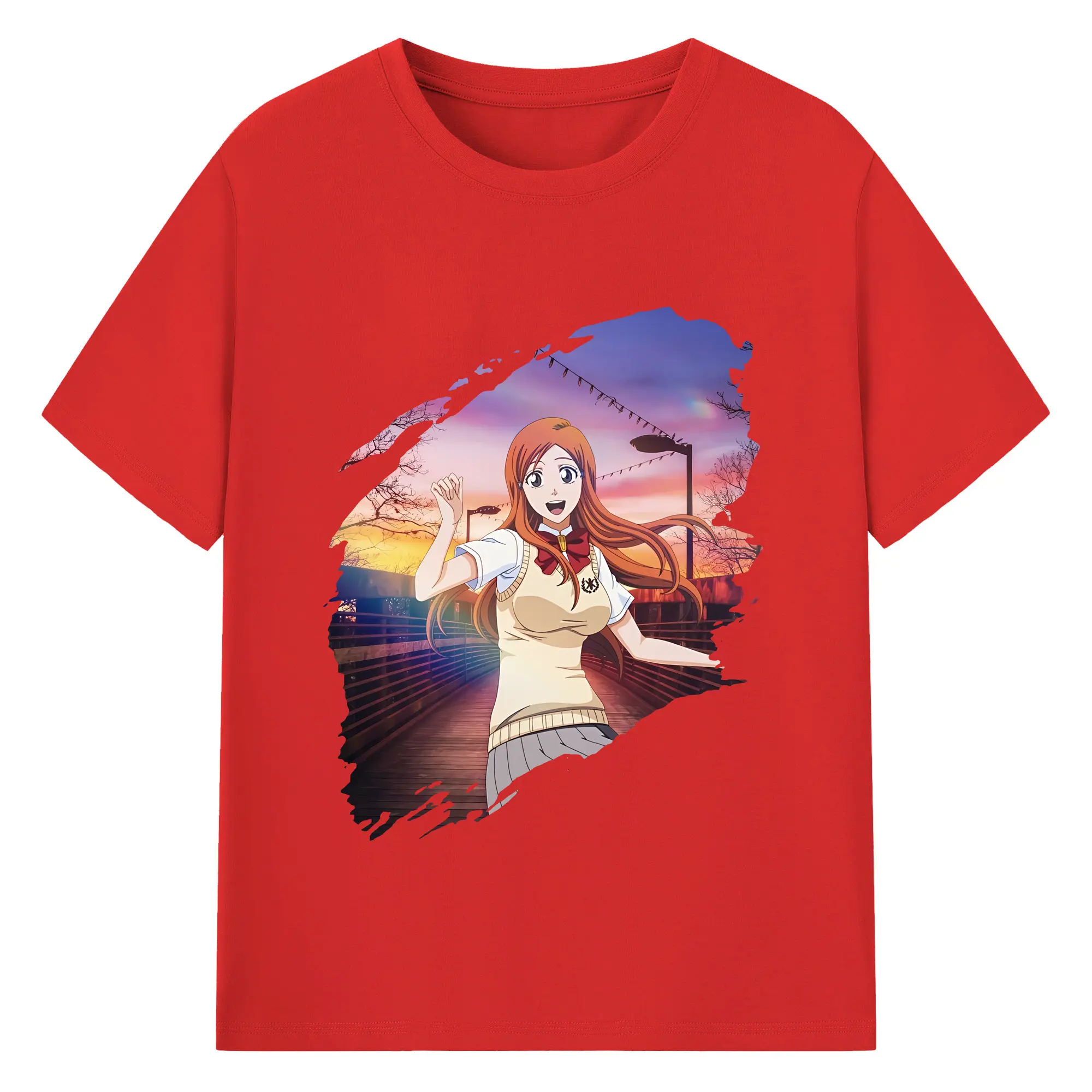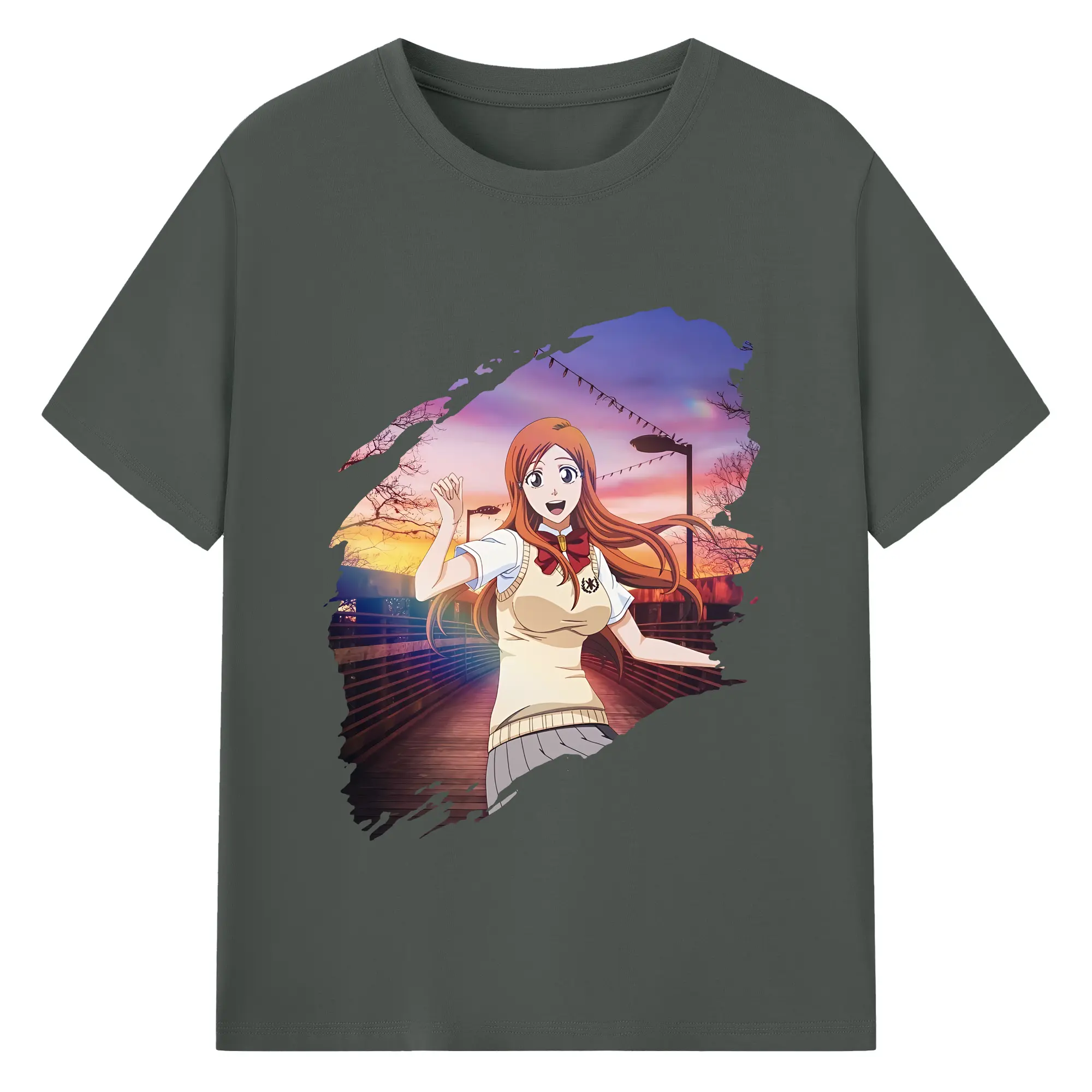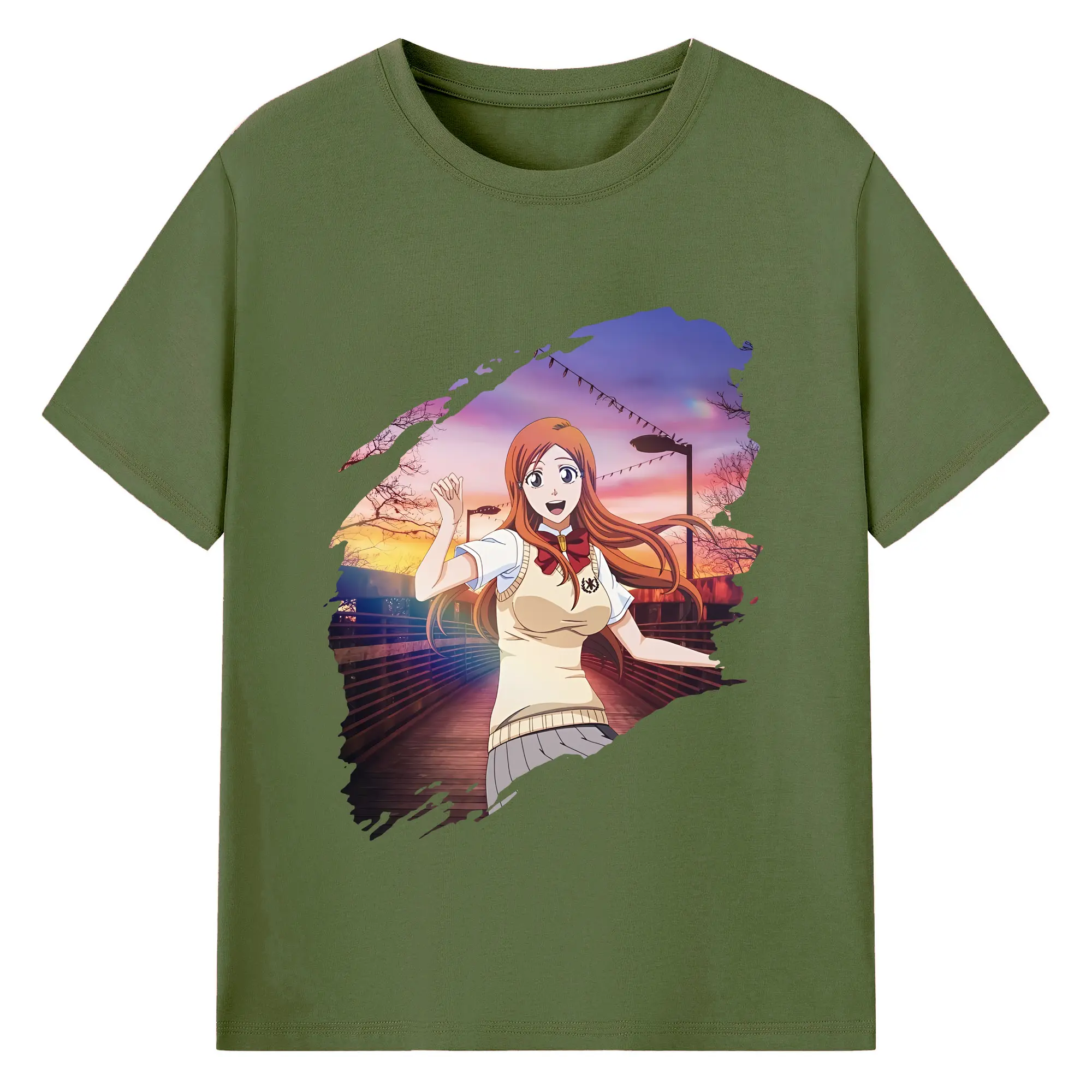 ブリーチ グッズ 井上 織姫 - 綿100% ヴィンテージ風 半袖Tシャツ ・ フロントプリント ・ 柔らか肌触り ・ 通気性 快適 ・ スポーツ カジュアル 外出用