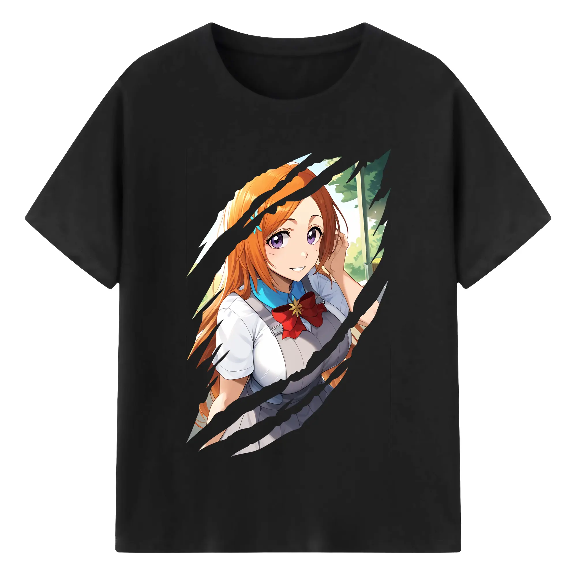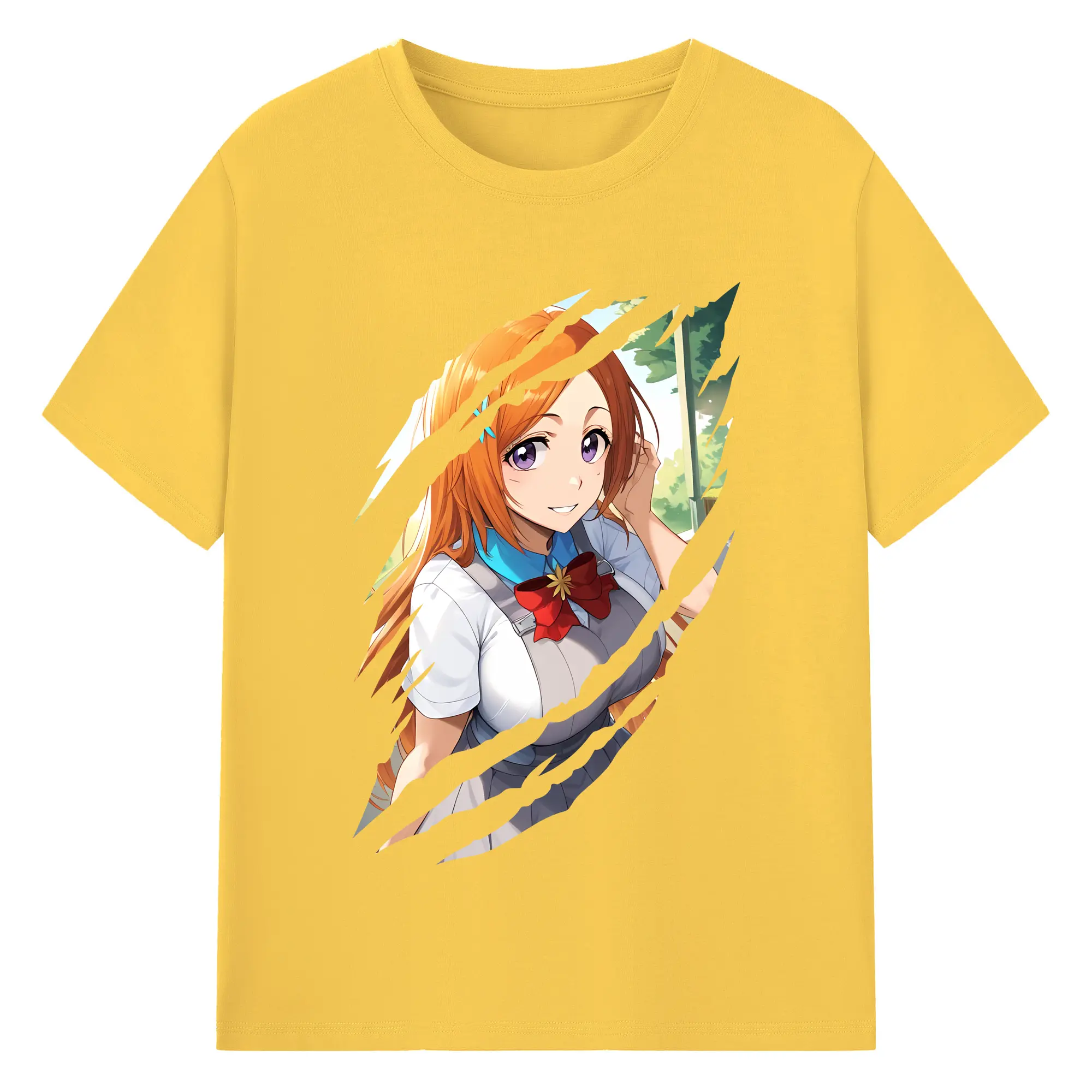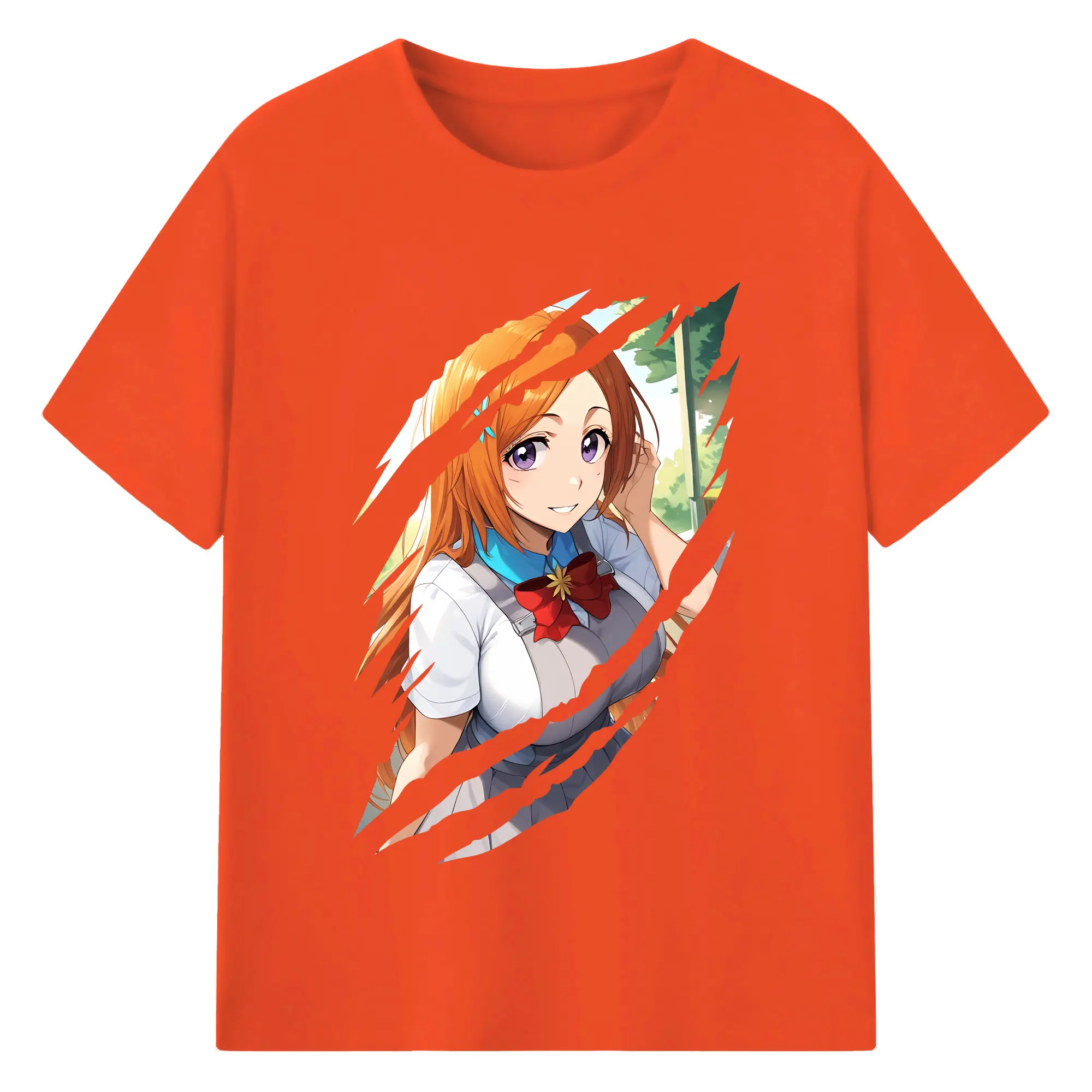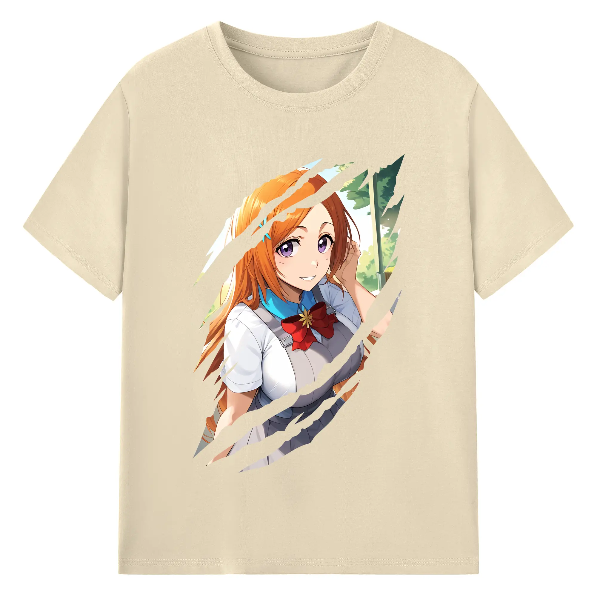ブリーチ グッズ 井上 織姫 - 綿100% ヴィンテージ風 半袖Tシャツ ・ フロントプリント ・ 柔らか肌触り ・ 通気性 快適 ・ スポーツ カジュアル 外出用