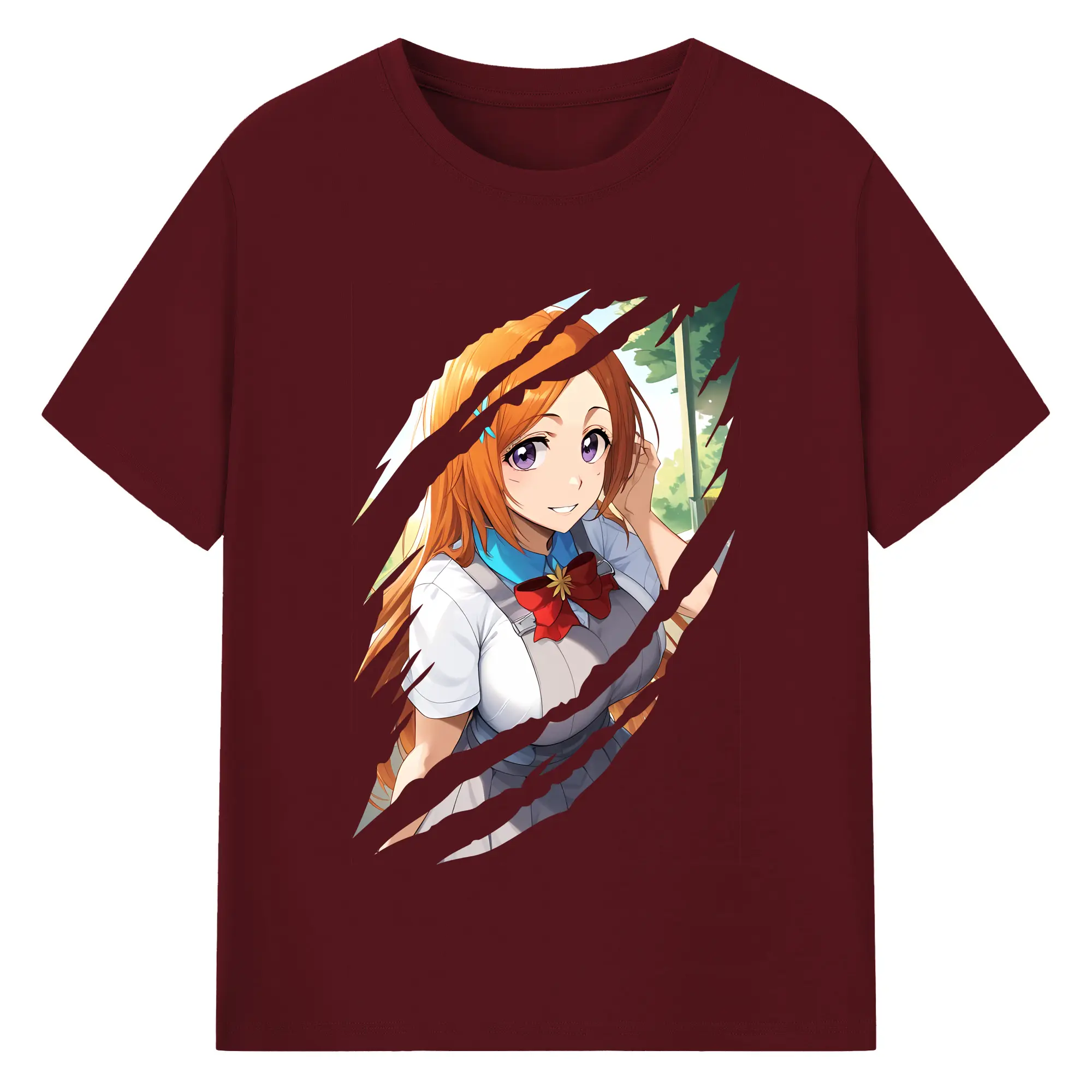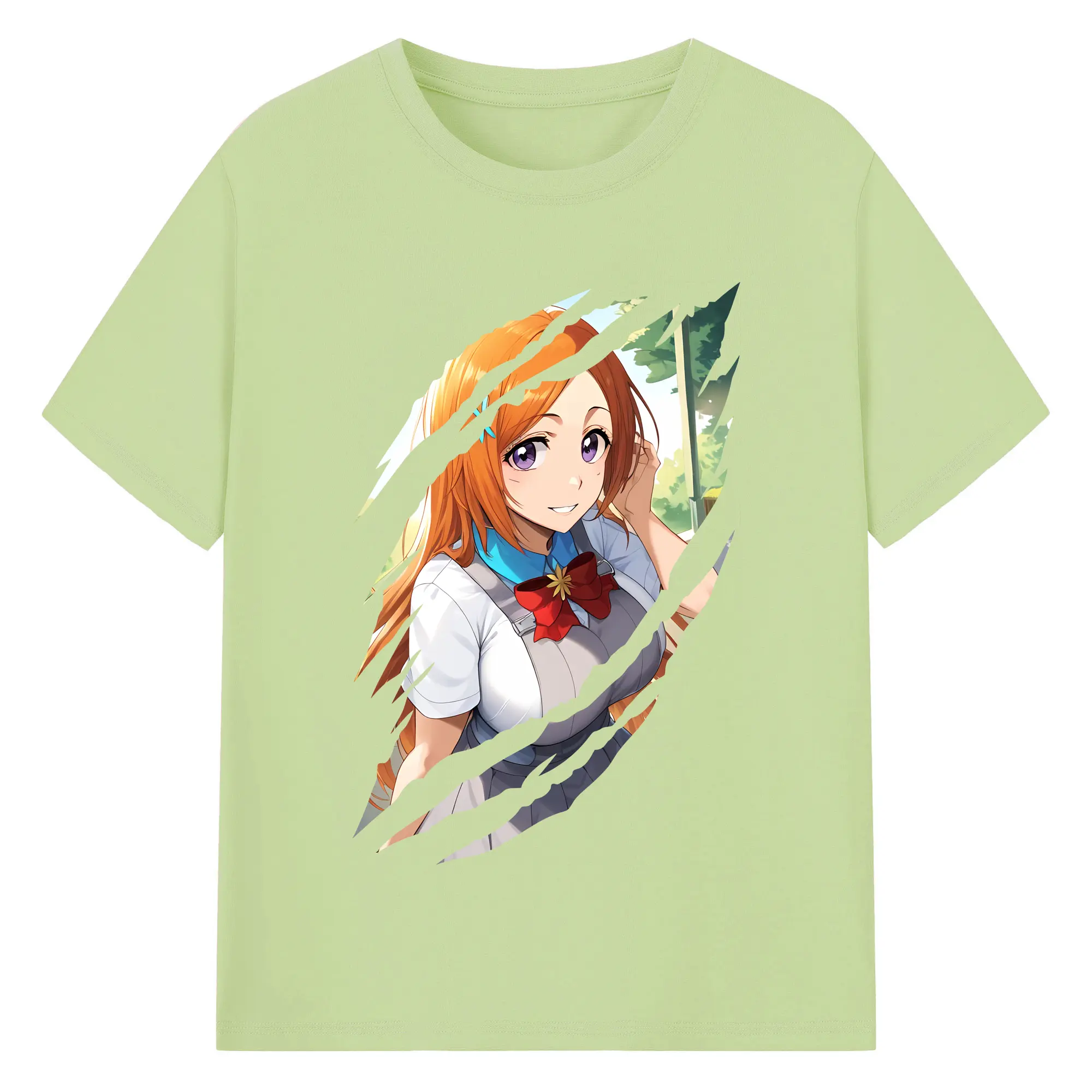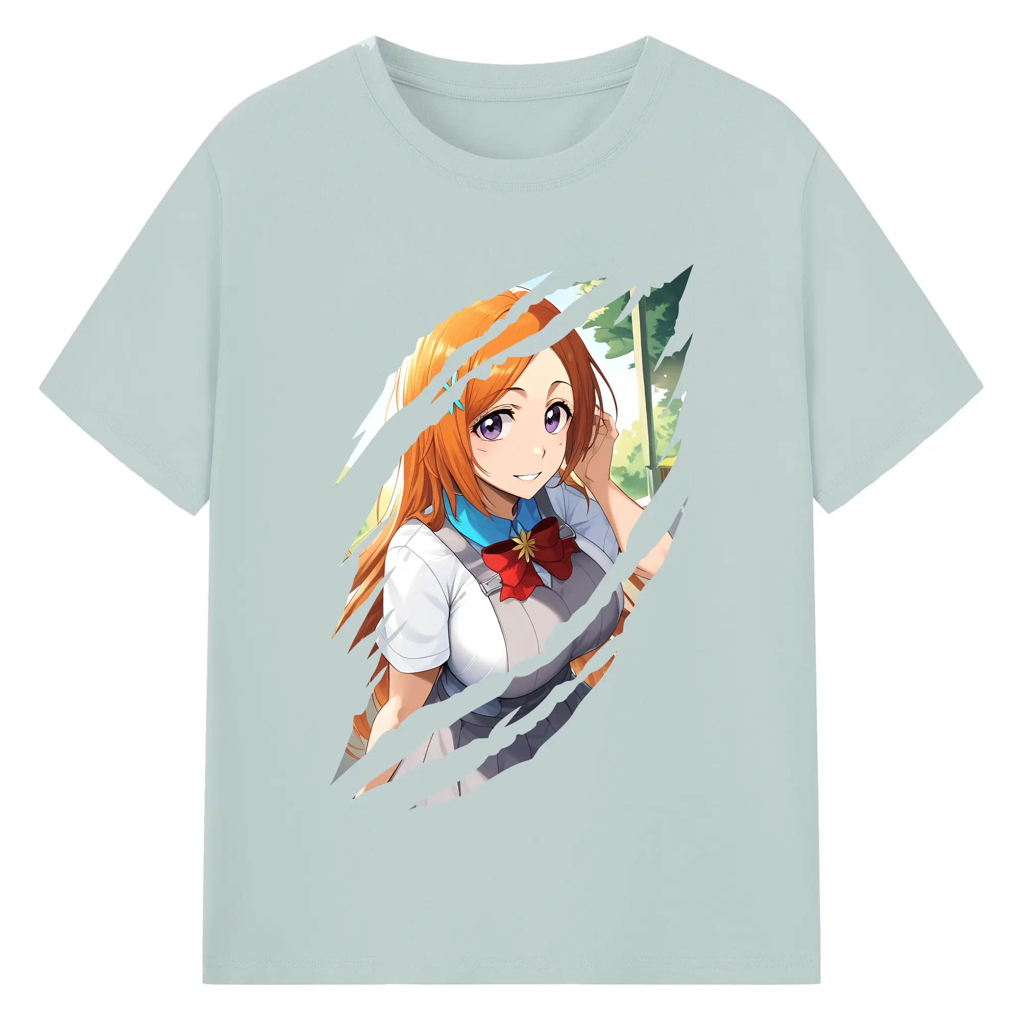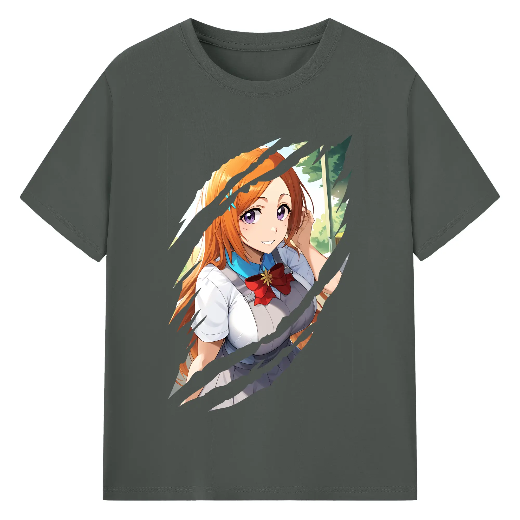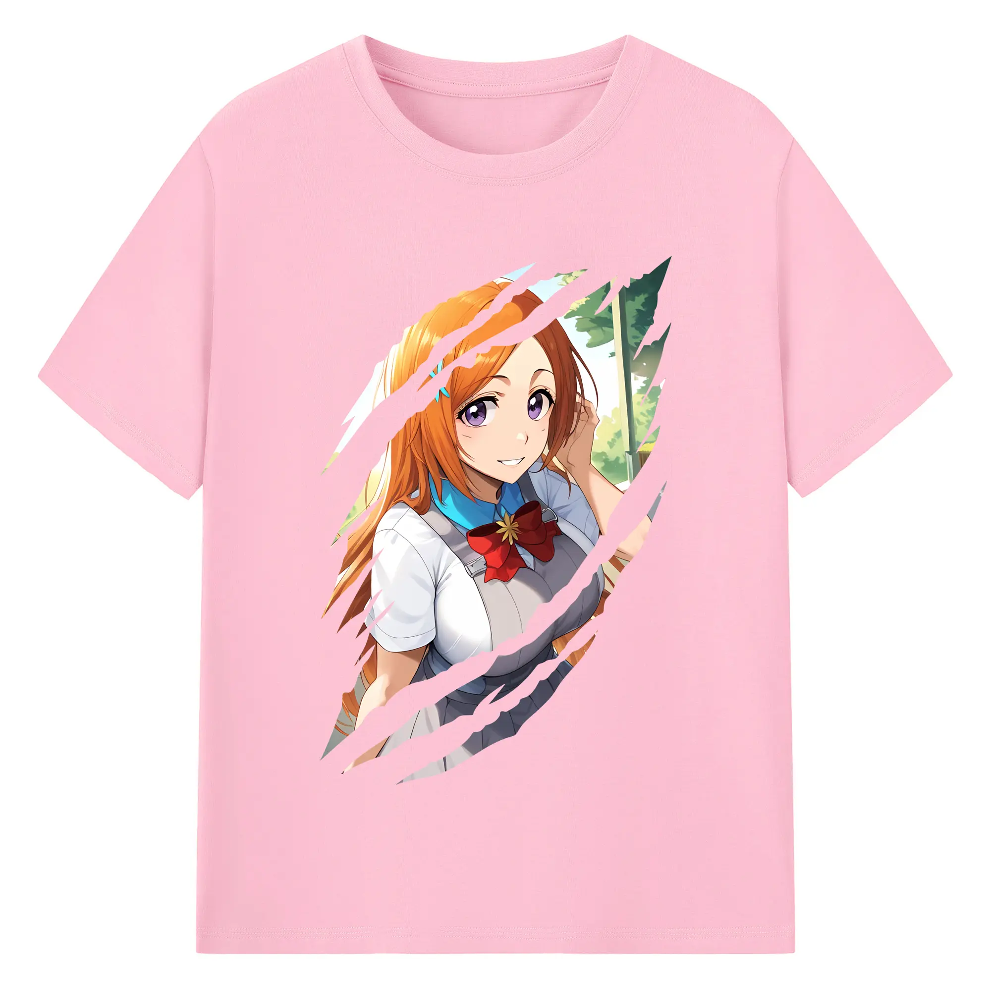 ブリーチ グッズ 井上 織姫 - 綿100% ヴィンテージ風 半袖Tシャツ ・ フロントプリント ・ 柔らか肌触り ・ 通気性 快適 ・ スポーツ カジュアル 外出用