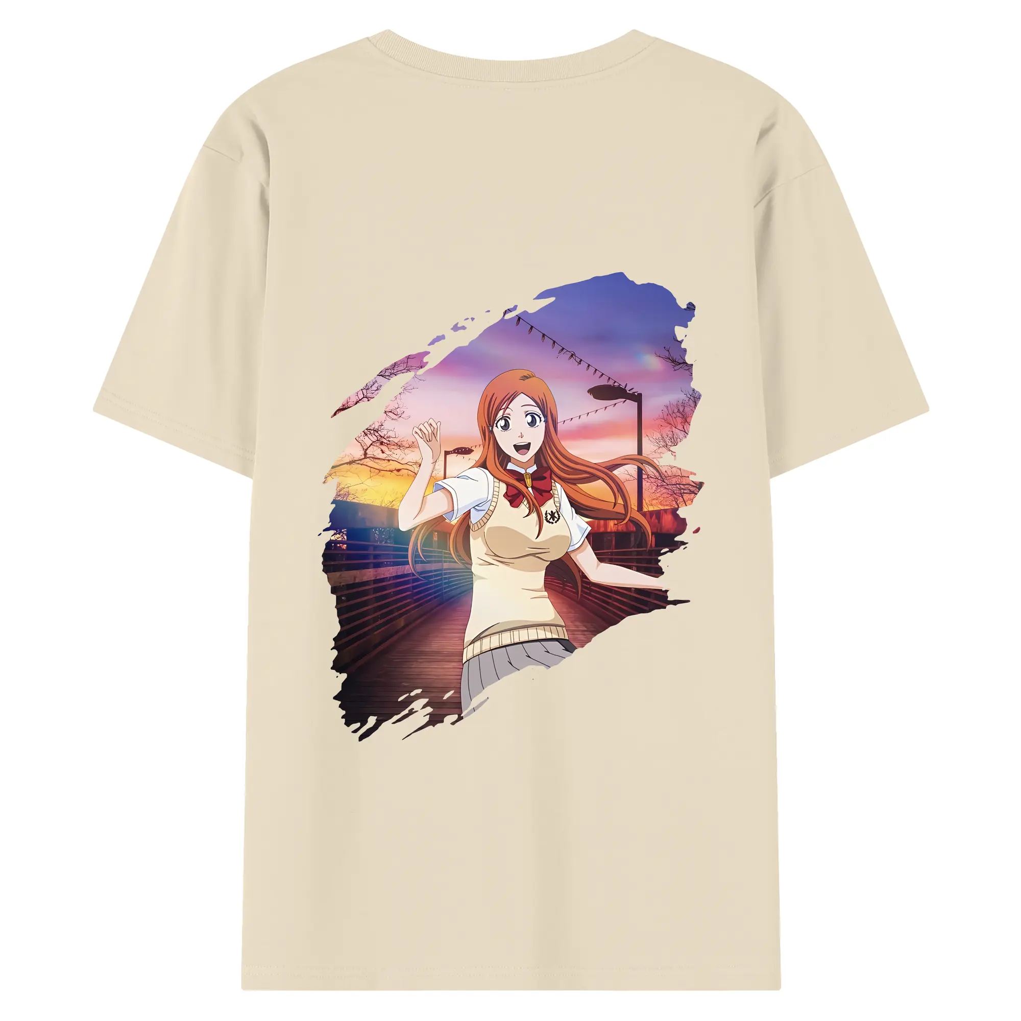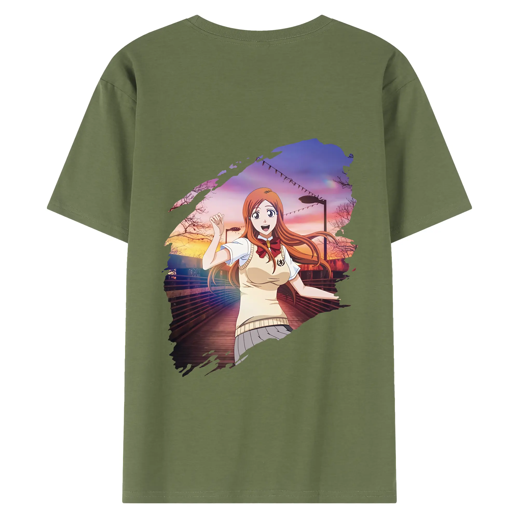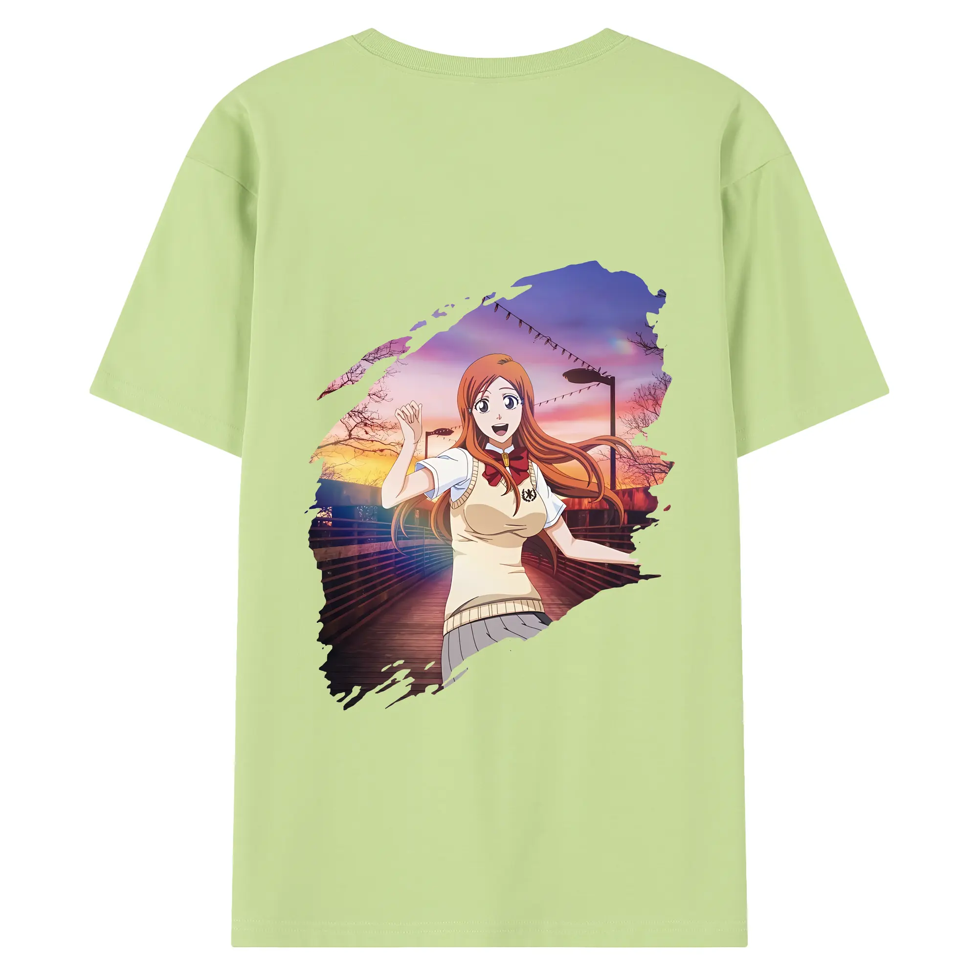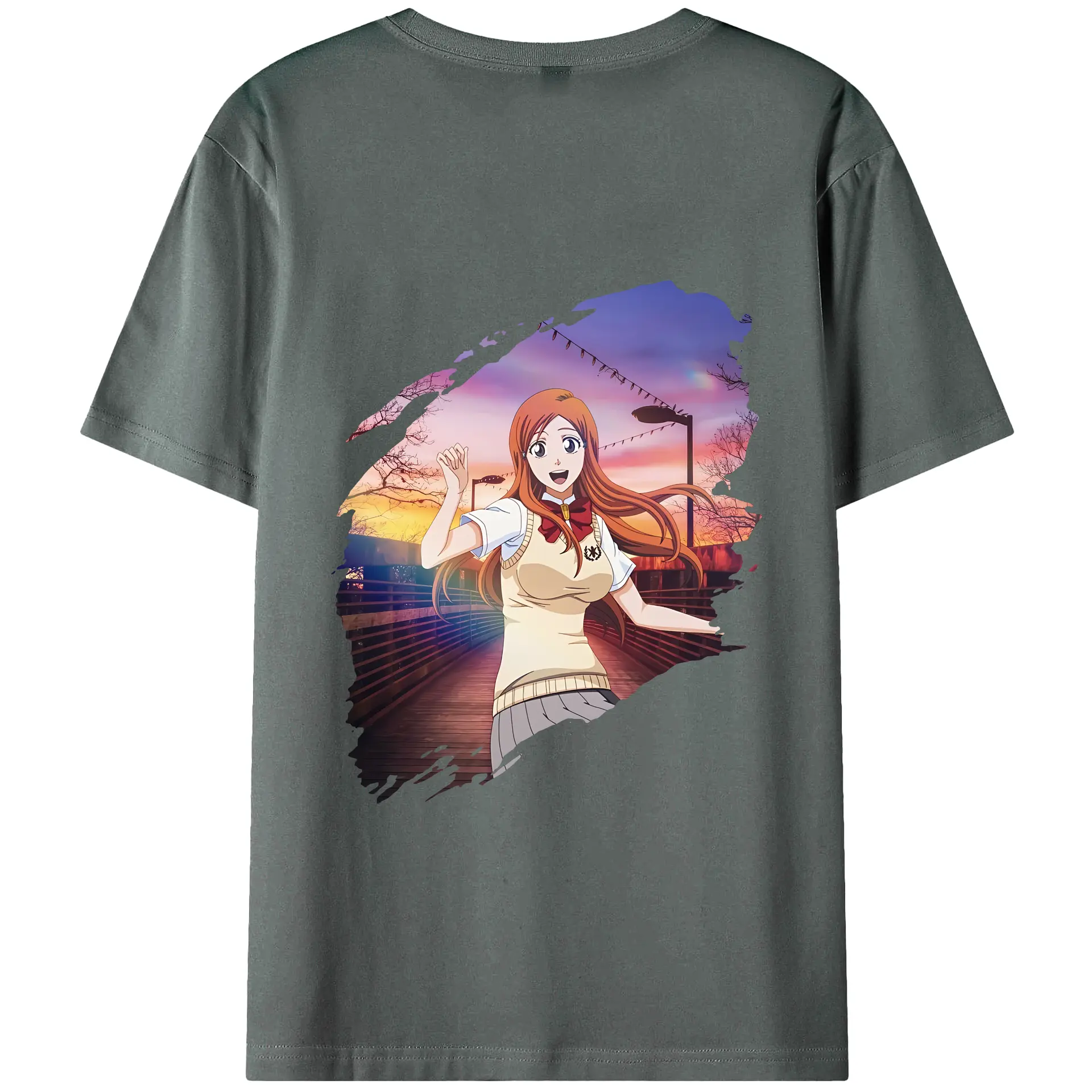 ブリーチ グッズ 井上 織姫 - 綿100% ヴィンテージ風 半袖Tシャツ ・ フロントプリント ・ 柔らか肌触り ・ 通気性 快適 ・ スポーツ カジュアル 外出用