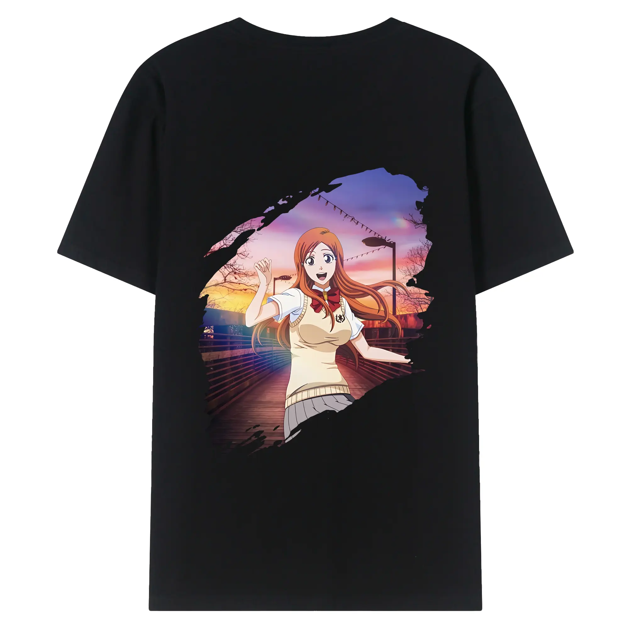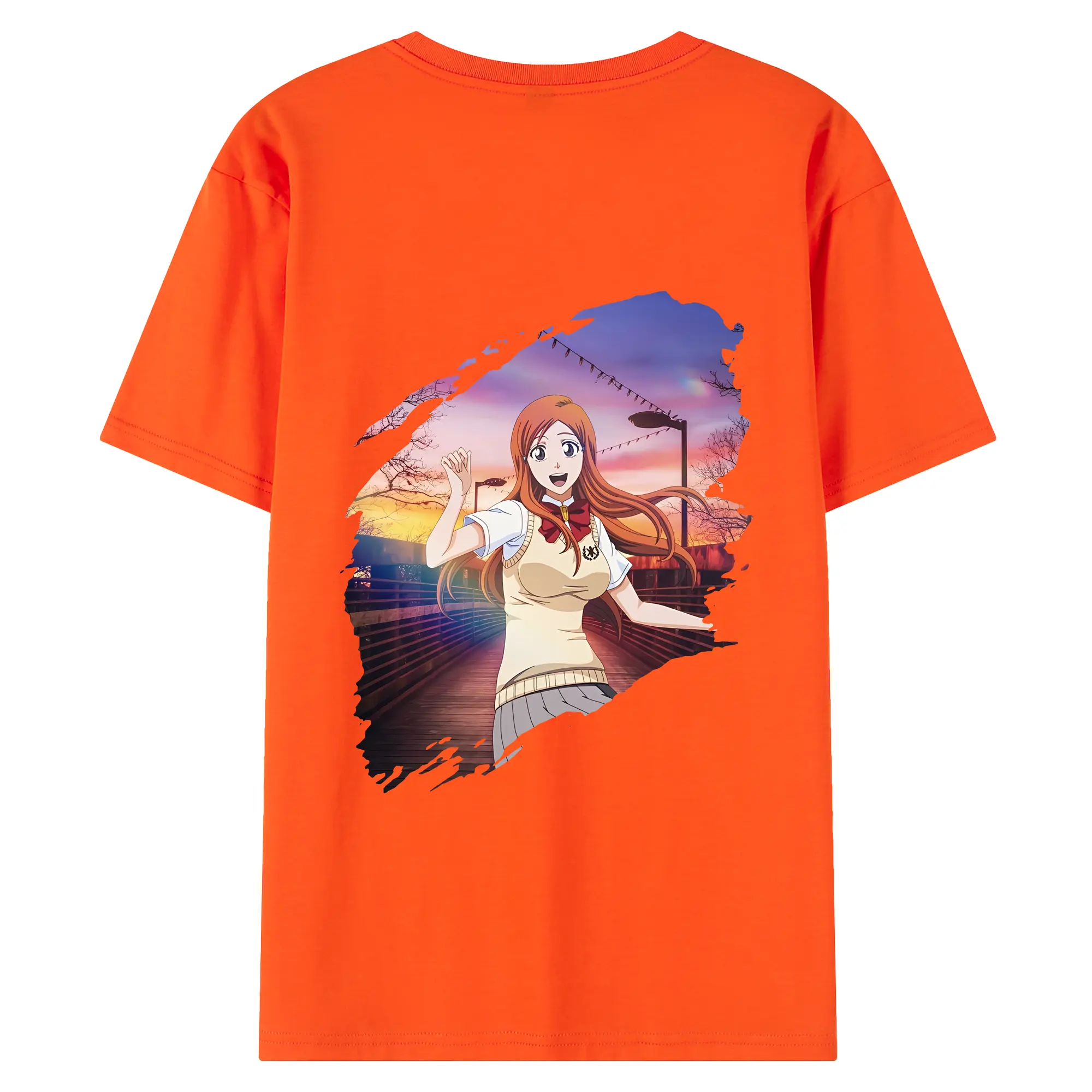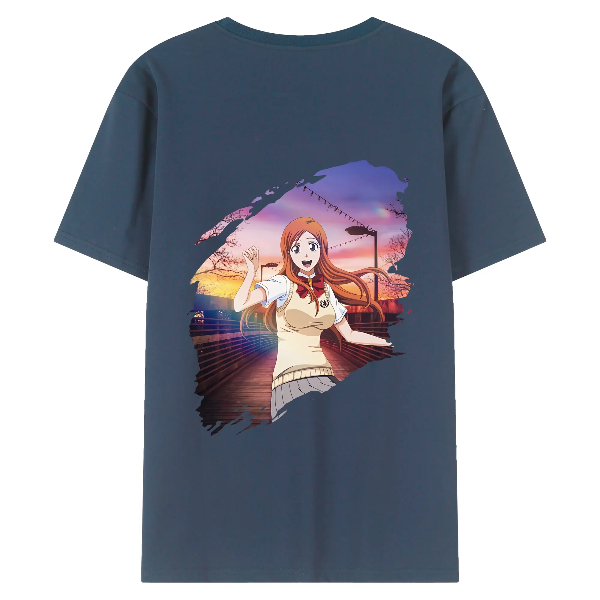 ブリーチ グッズ 井上 織姫 - 綿100% ヴィンテージ風 半袖Tシャツ ・ 背面プリント ・ 柔らか肌触り ・ 通気性 快適 ・ スポーツ カジュアル 外出用