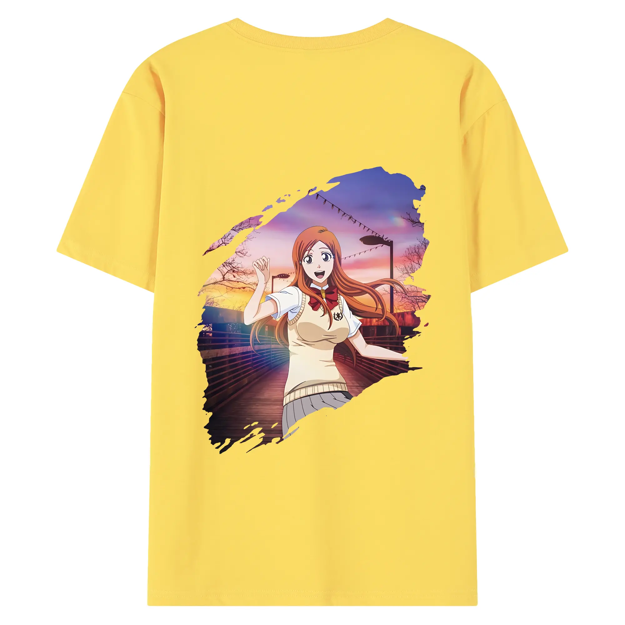 ブリーチ グッズ 井上 織姫 - 綿100% 半袖Tシャツ ・ フロントプリント ・ 快適 通気性 ・ 日常使い 散歩 スポーツ用