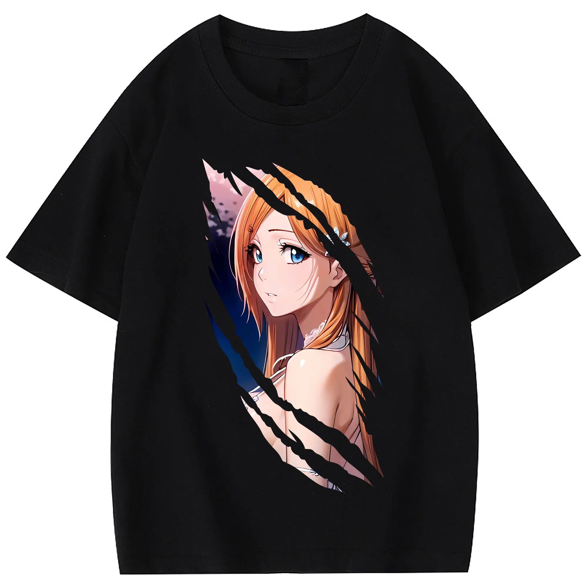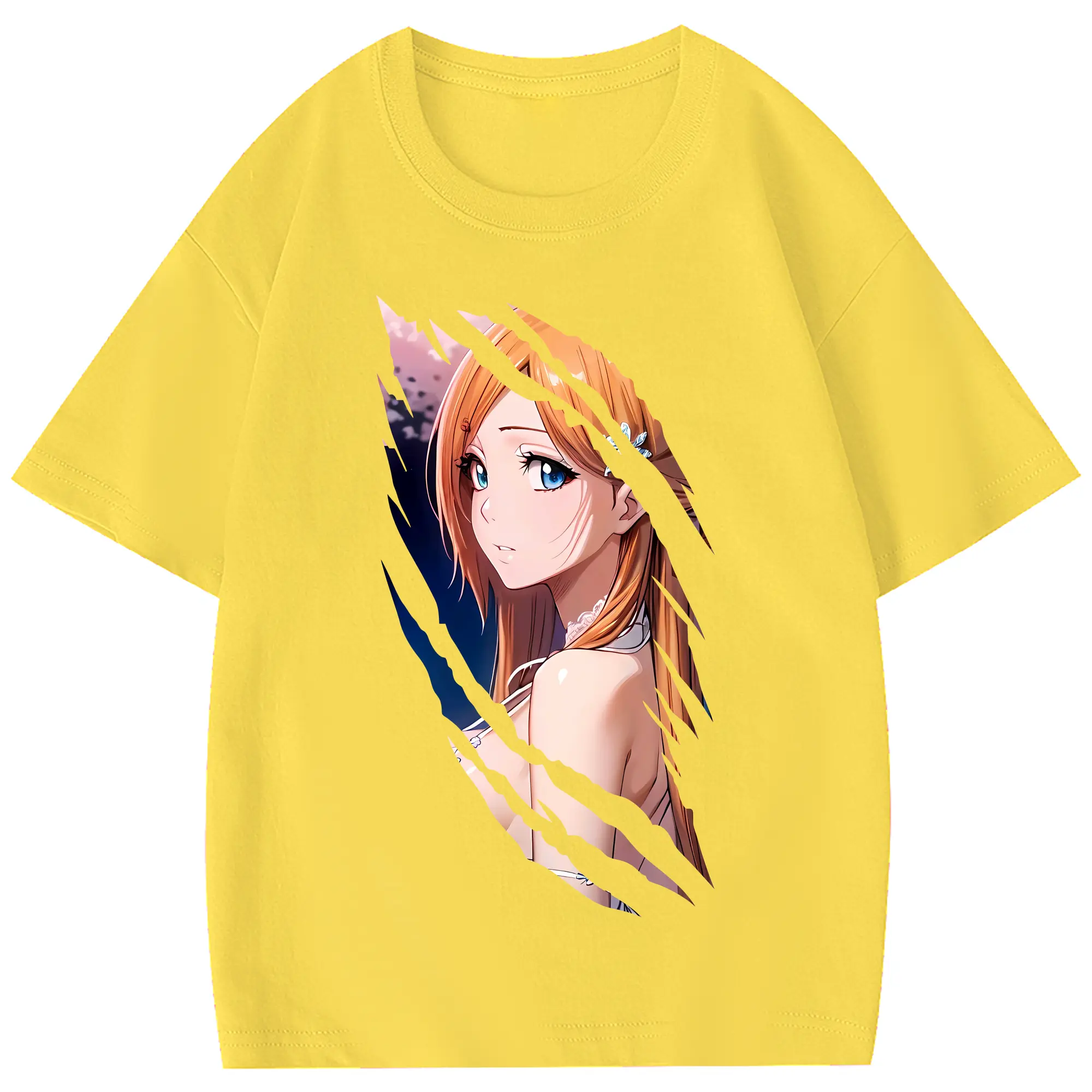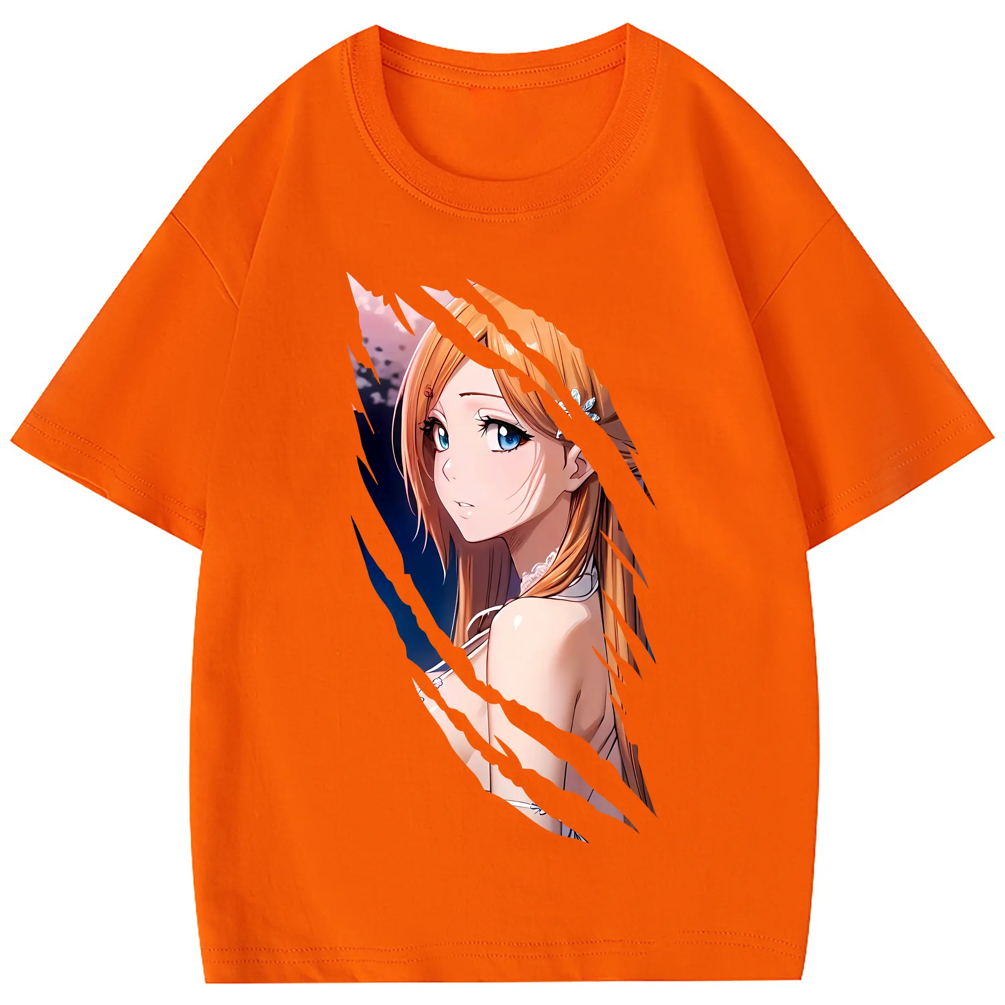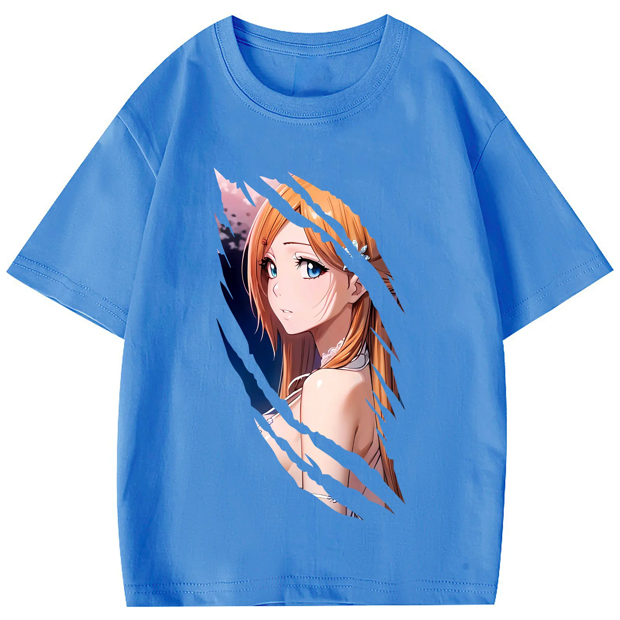 ブリーチ グッズ 井上 織姫 - 綿100% ヴィンテージ風 半袖Tシャツ ・ フロントプリント ・ 柔らか肌触り ・ 通気性 快適 ・ スポーツ カジュアル 外出用