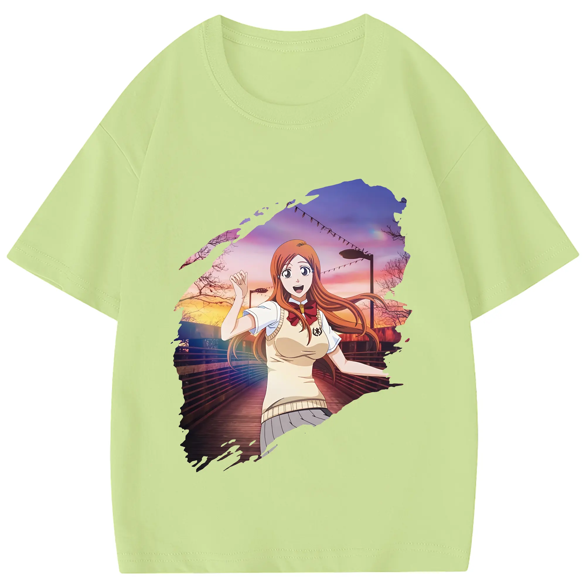 ブリーチ グッズ 井上 織姫 - 綿100% ヴィンテージ風 半袖Tシャツ ・ フロントプリント ・ 柔らか肌触り ・ 通気性 快適 ・ スポーツ カジュアル 外出用