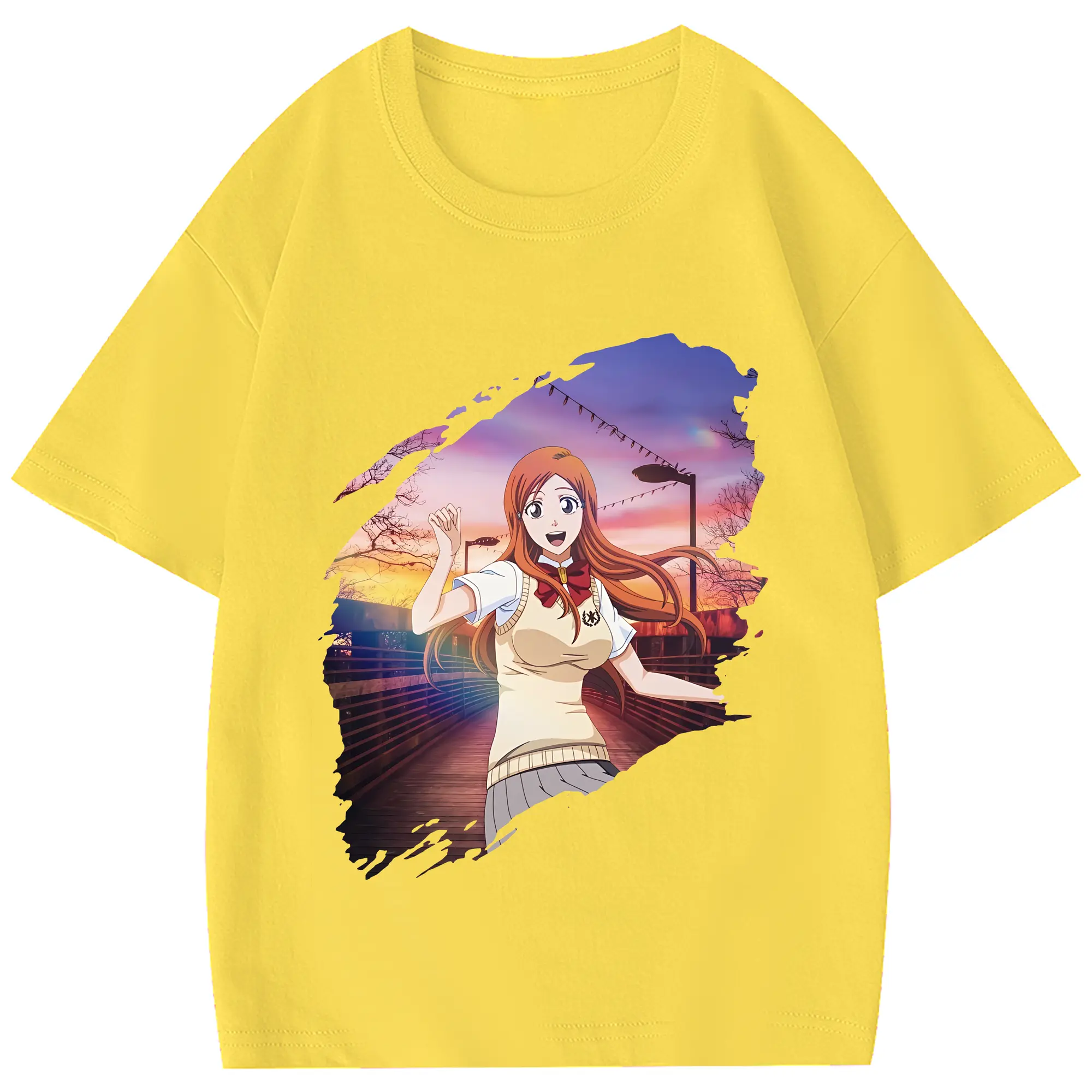 ブリーチ グッズ 井上 織姫 - 綿100% 半袖Tシャツ ・ フロントプリント ・ 快適 通気性 ・ 日常使い 散歩 スポーツ用