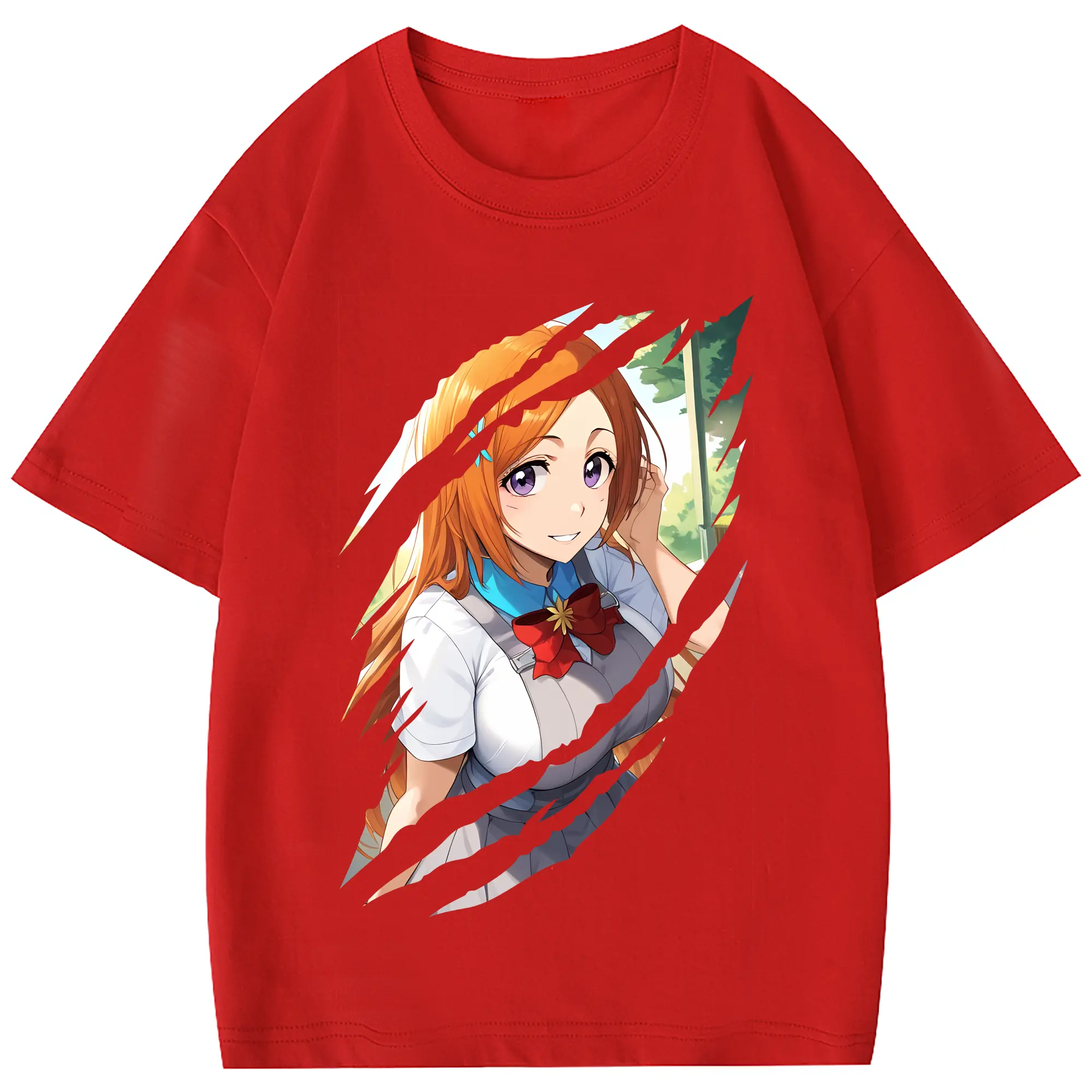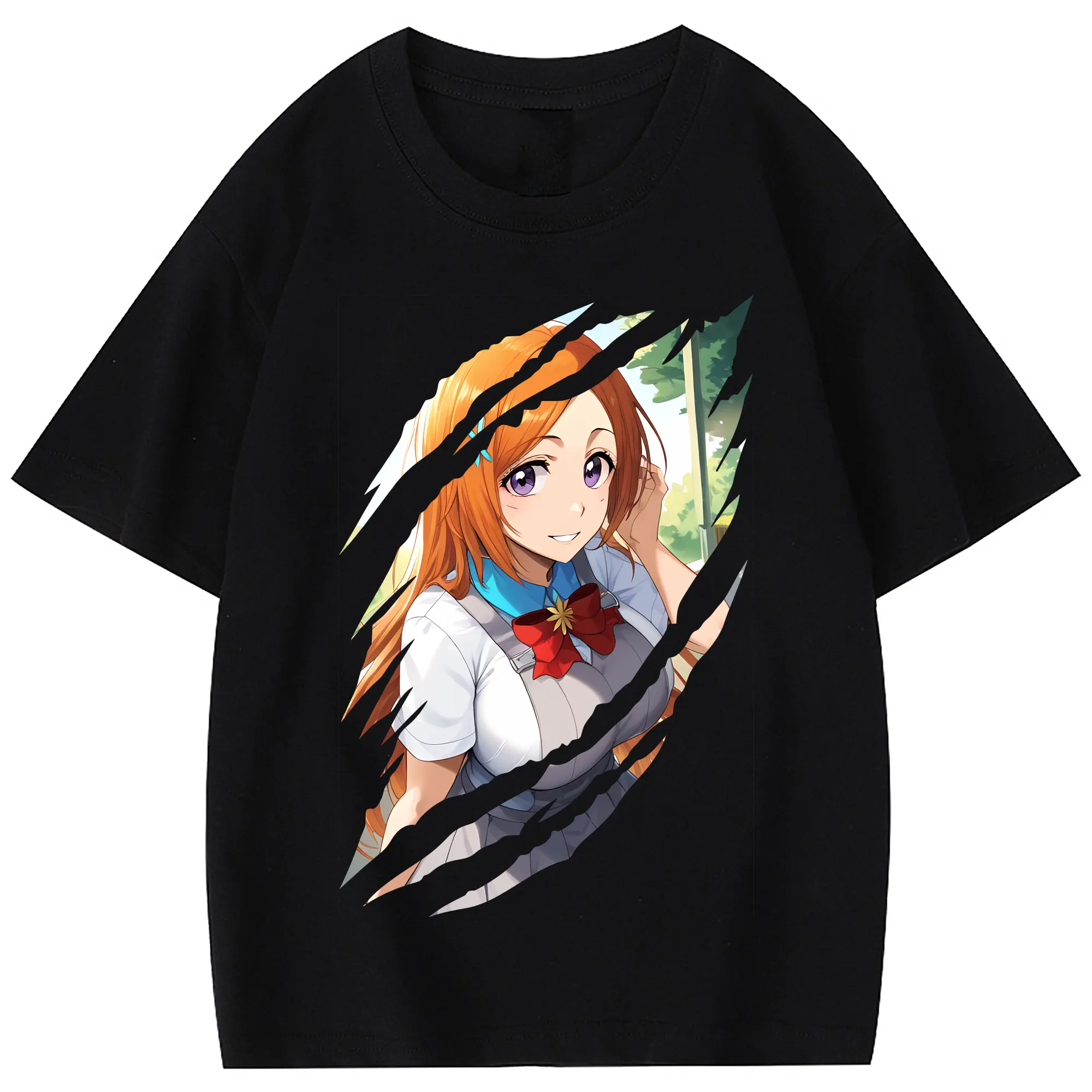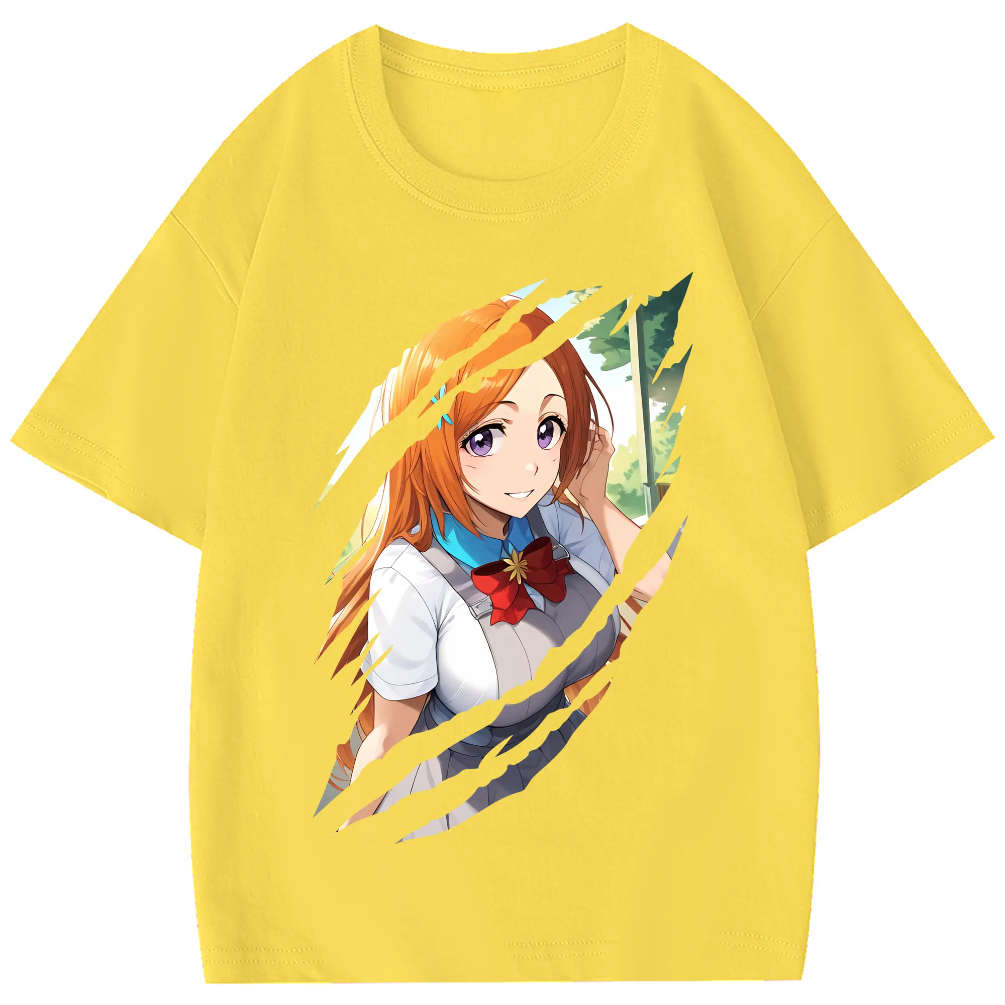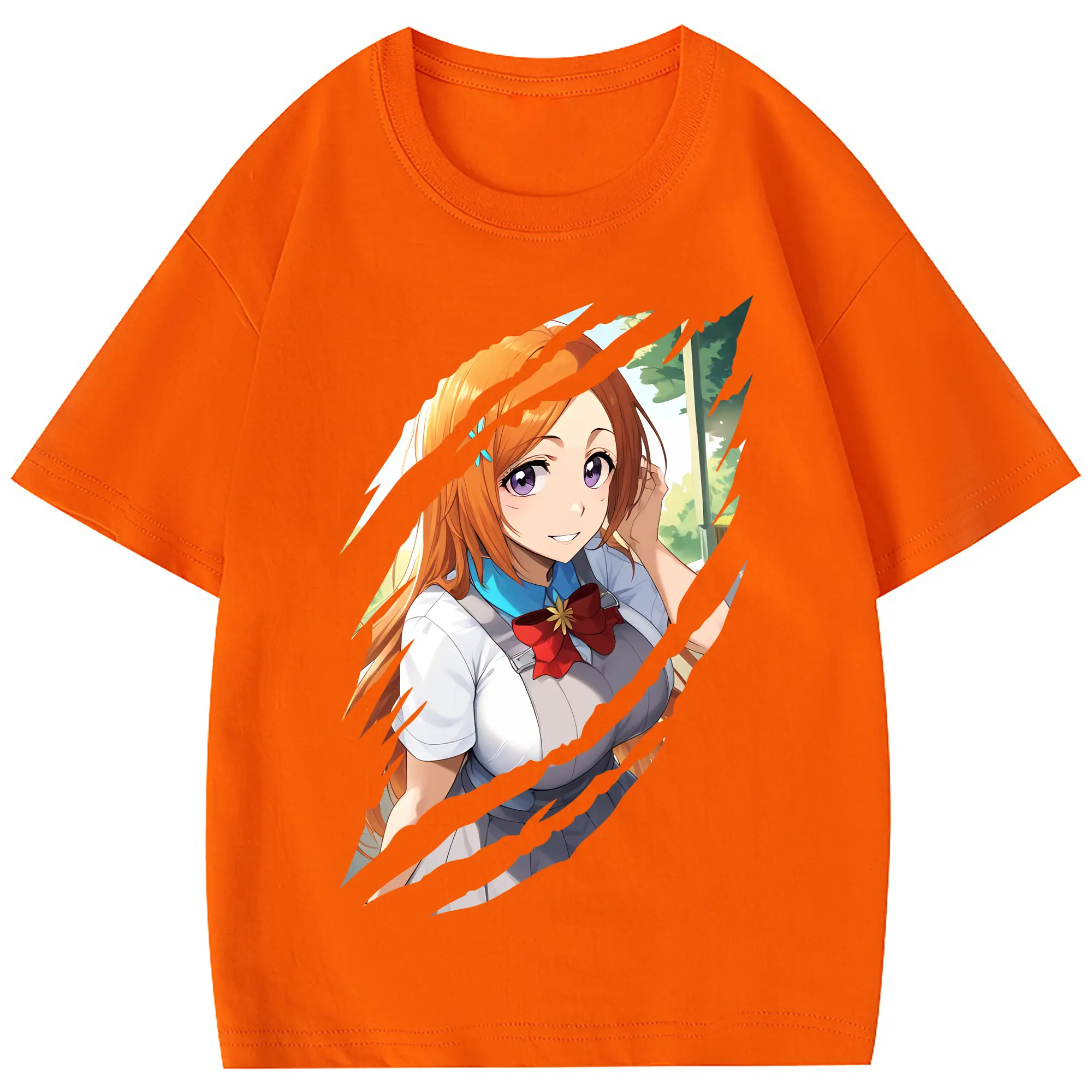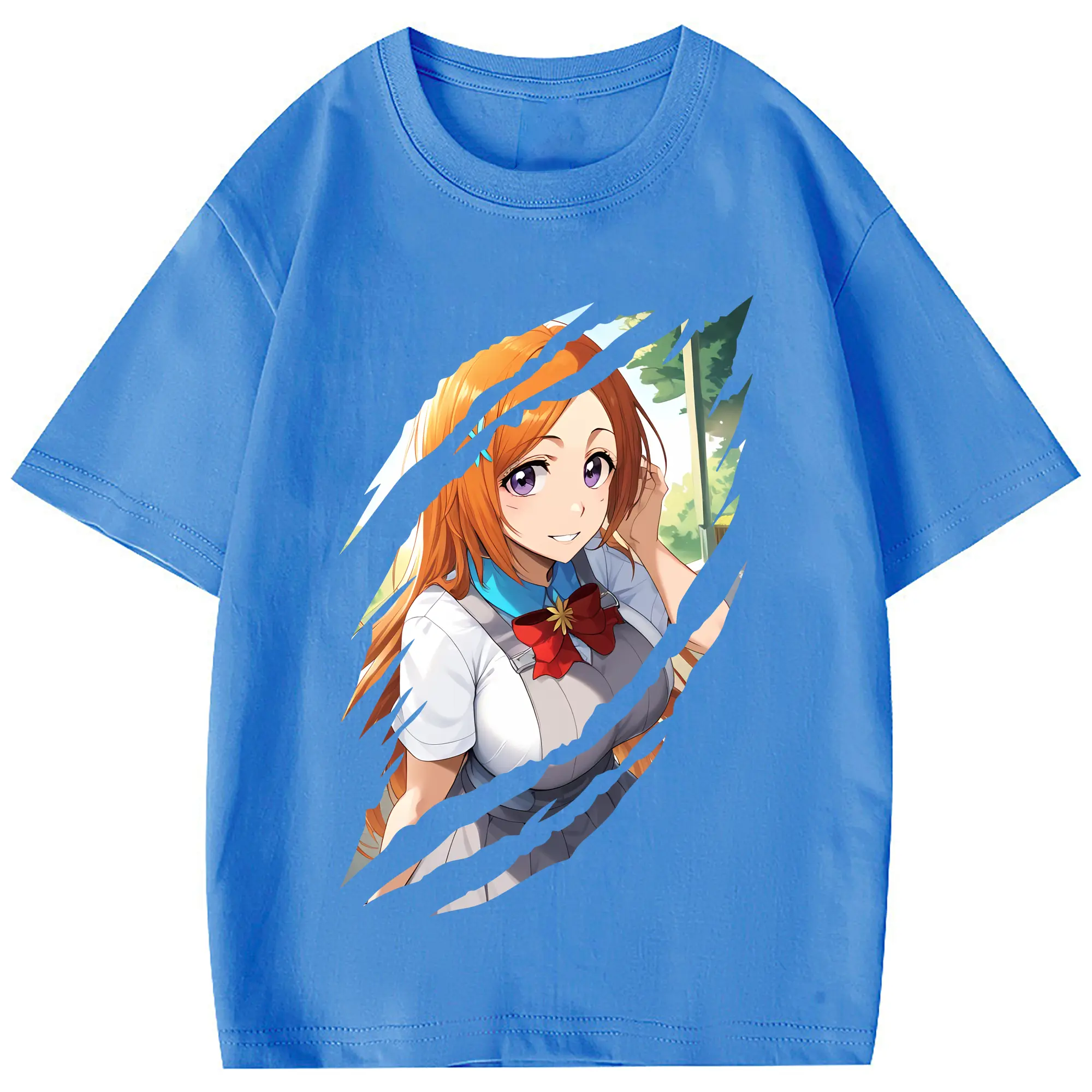 ブリーチ グッズ 井上 織姫 - 綿100% ヴィンテージ風 半袖Tシャツ ・ フロントプリント ・ 柔らか肌触り ・ 通気性 快適 ・ スポーツ カジュアル 外出用