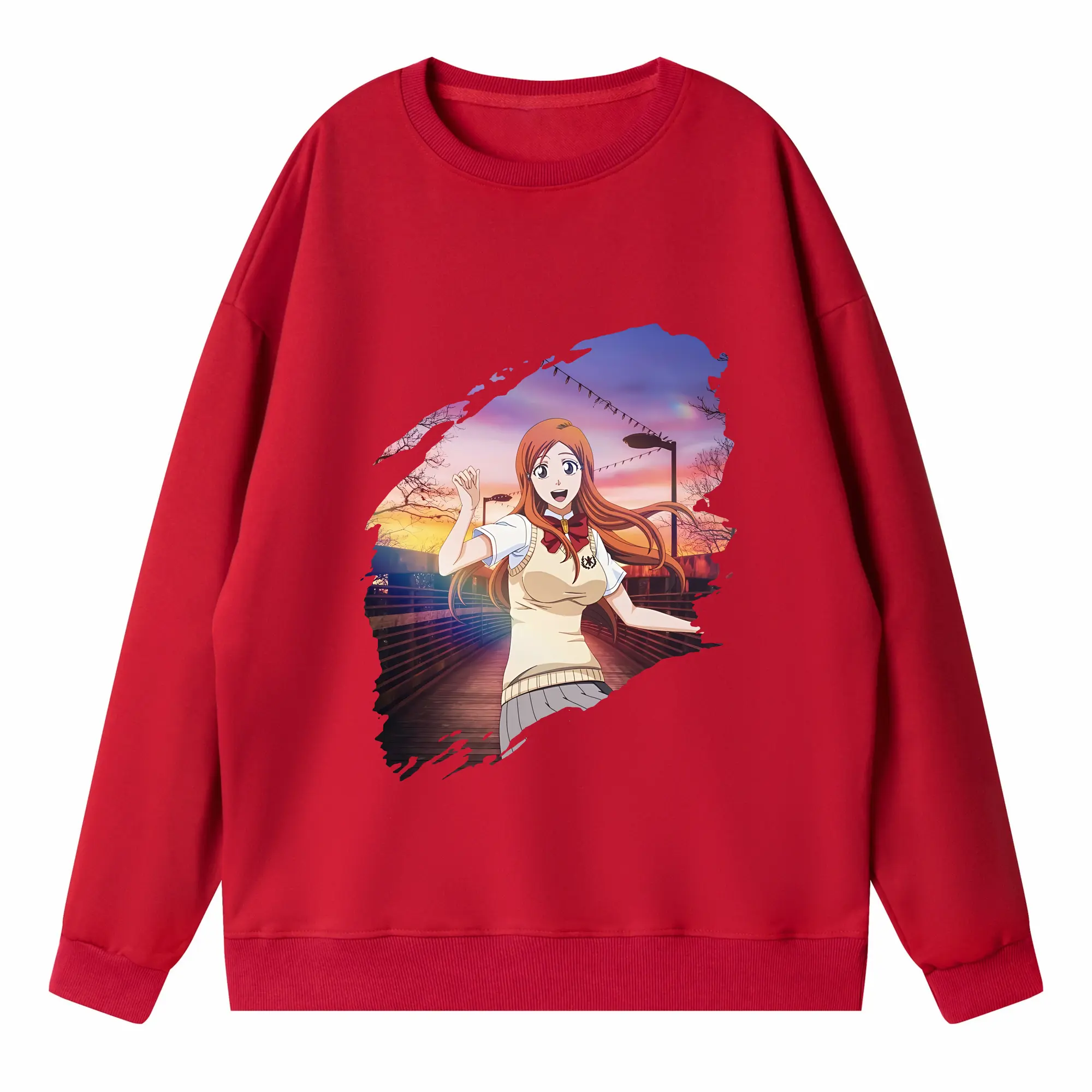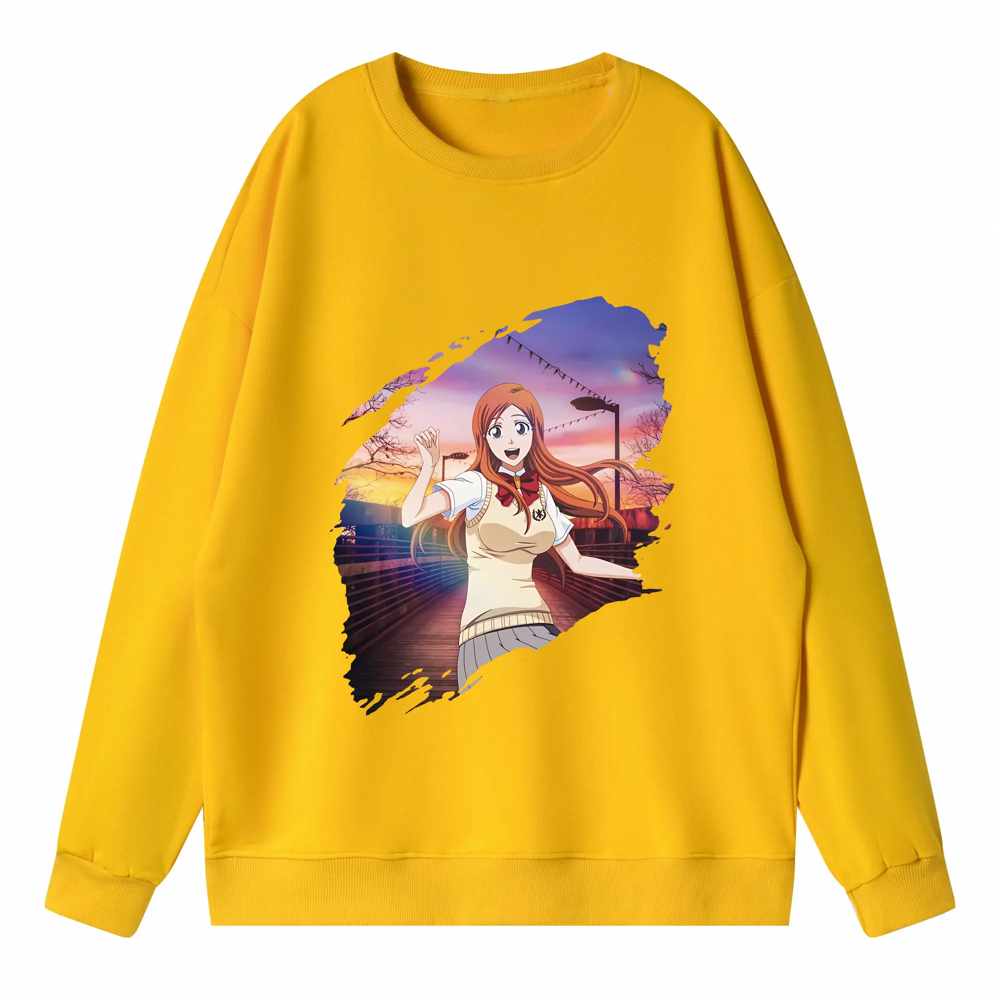 ブリーチ グッズ 井上 織姫 - 高品質 クルーネック スウェット ・ コットン59% ポリエステル41% ・ ユニセックス 長袖 トレーナー ・ カジュアル デイリー スポーツ 散歩用