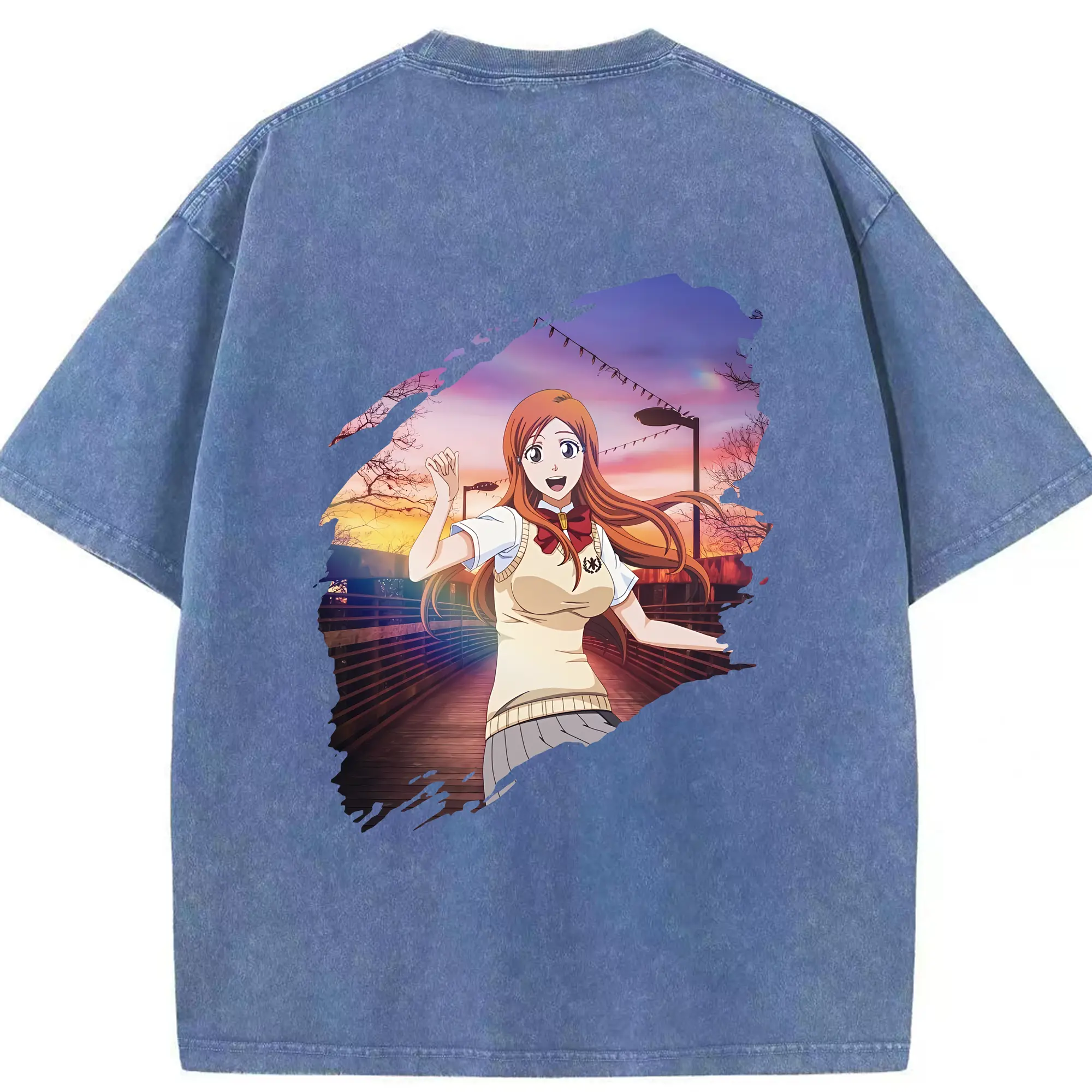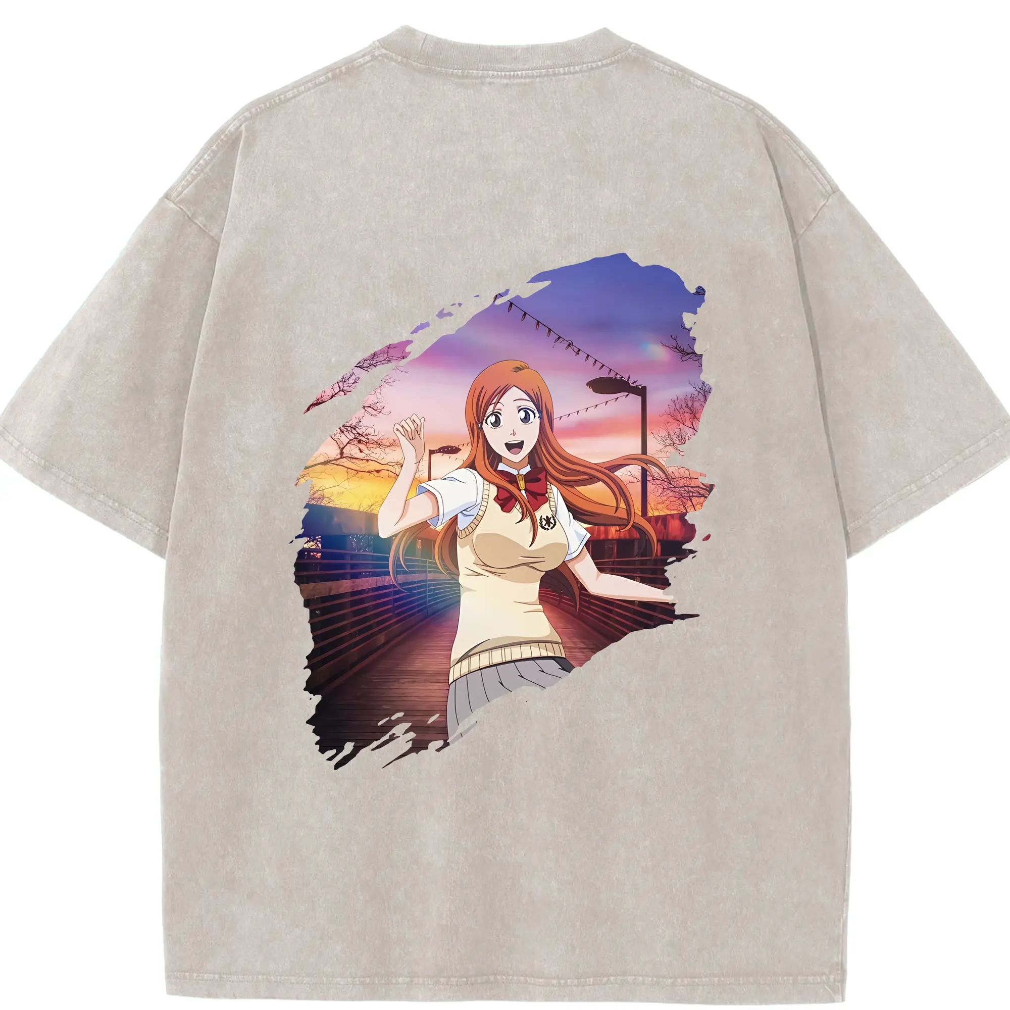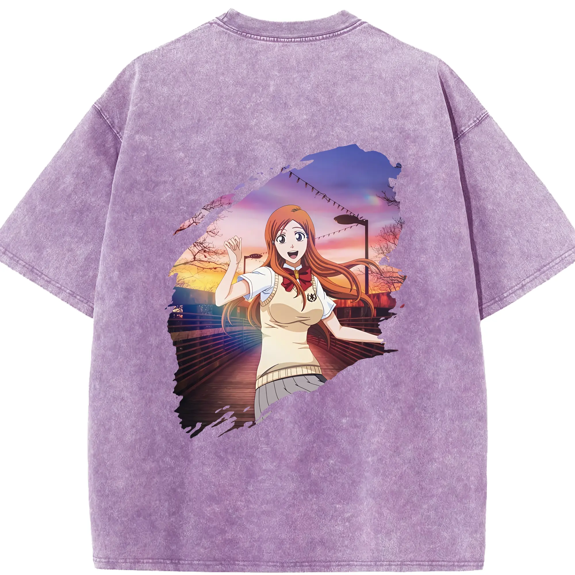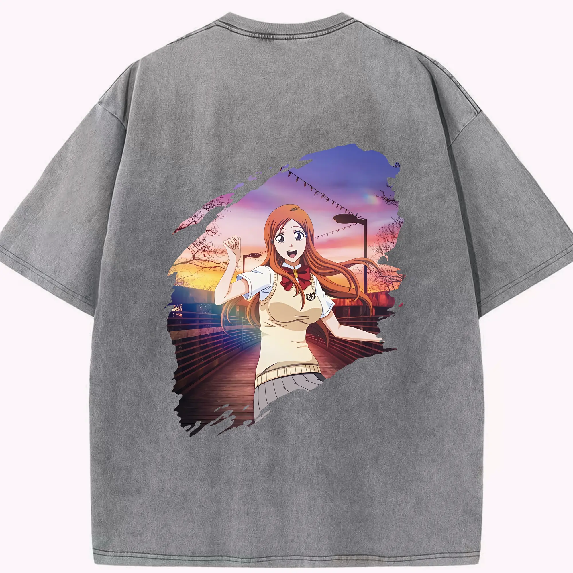 ブリーチ グッズ 井上 織姫 - 綿100% ヴィンテージ風 半袖Tシャツ ・ フロントプリント ・ 柔らか肌触り ・ 通気性 快適 ・ スポーツ カジュアル 外出用