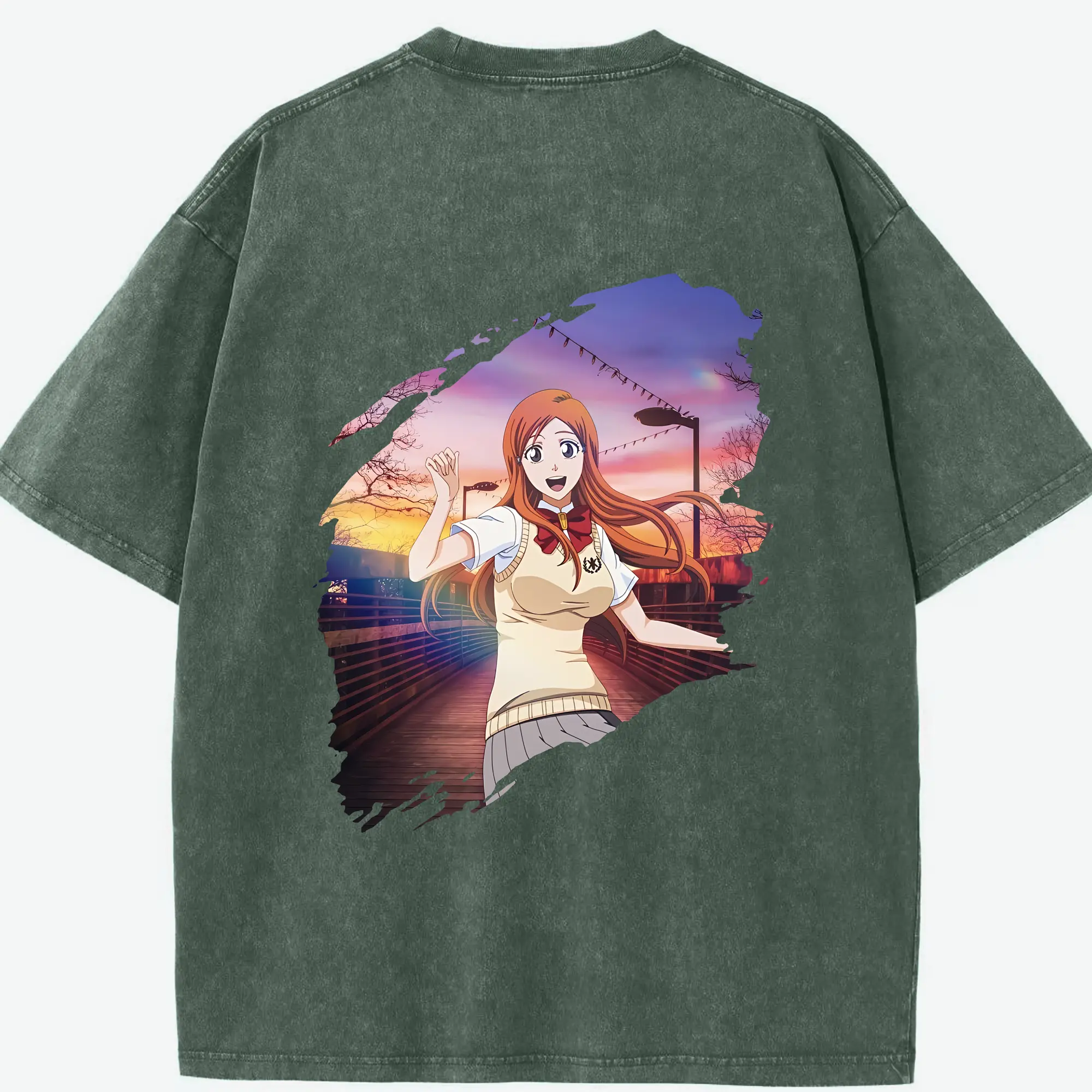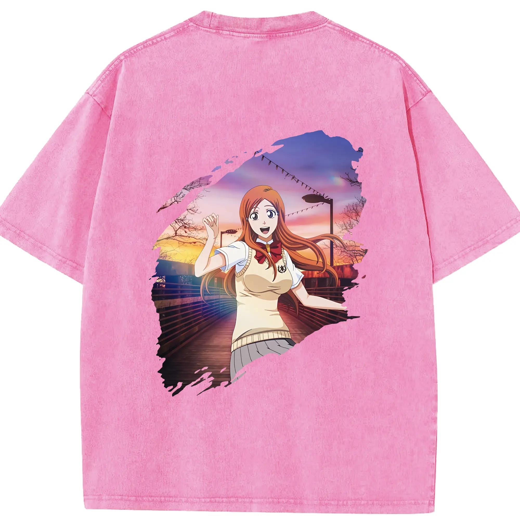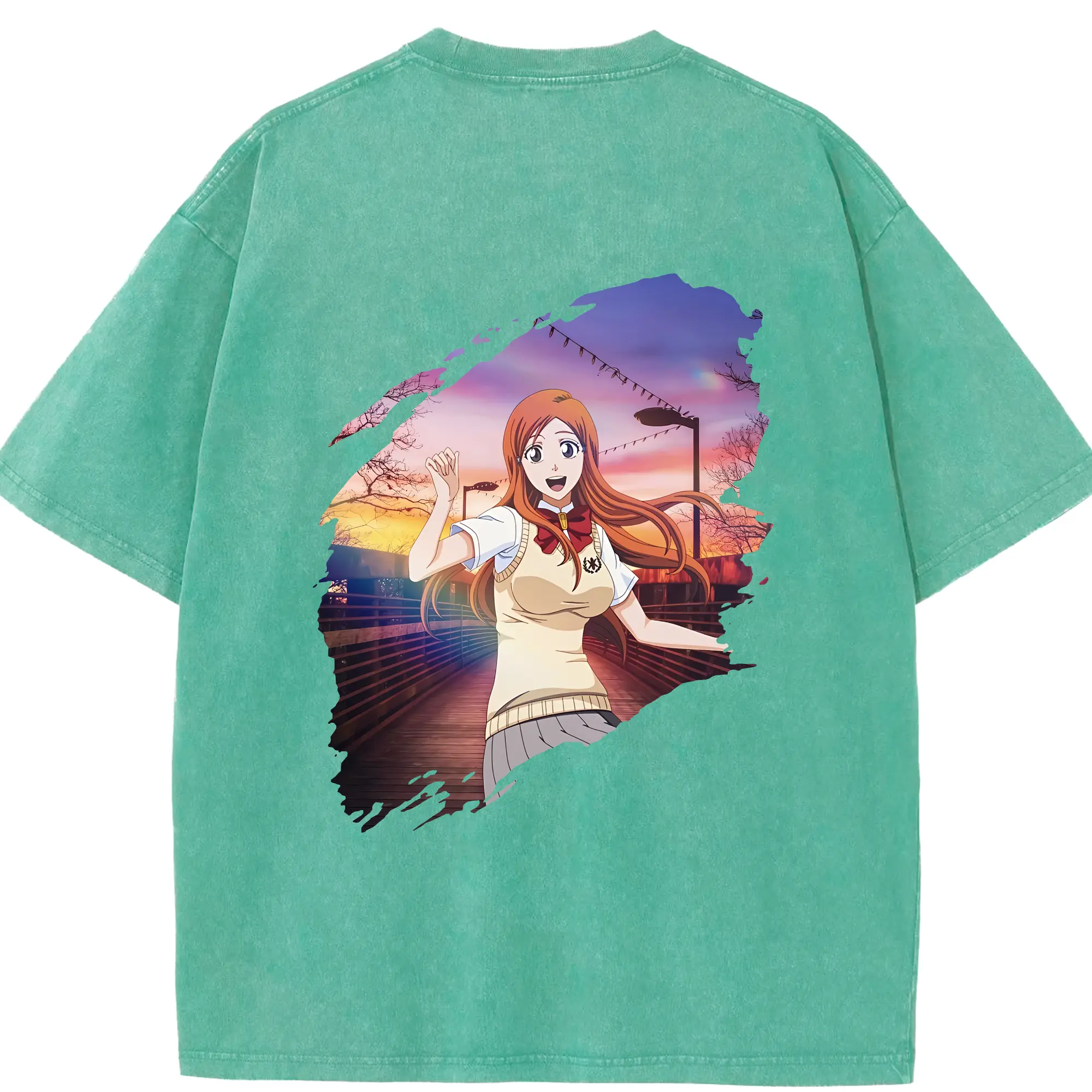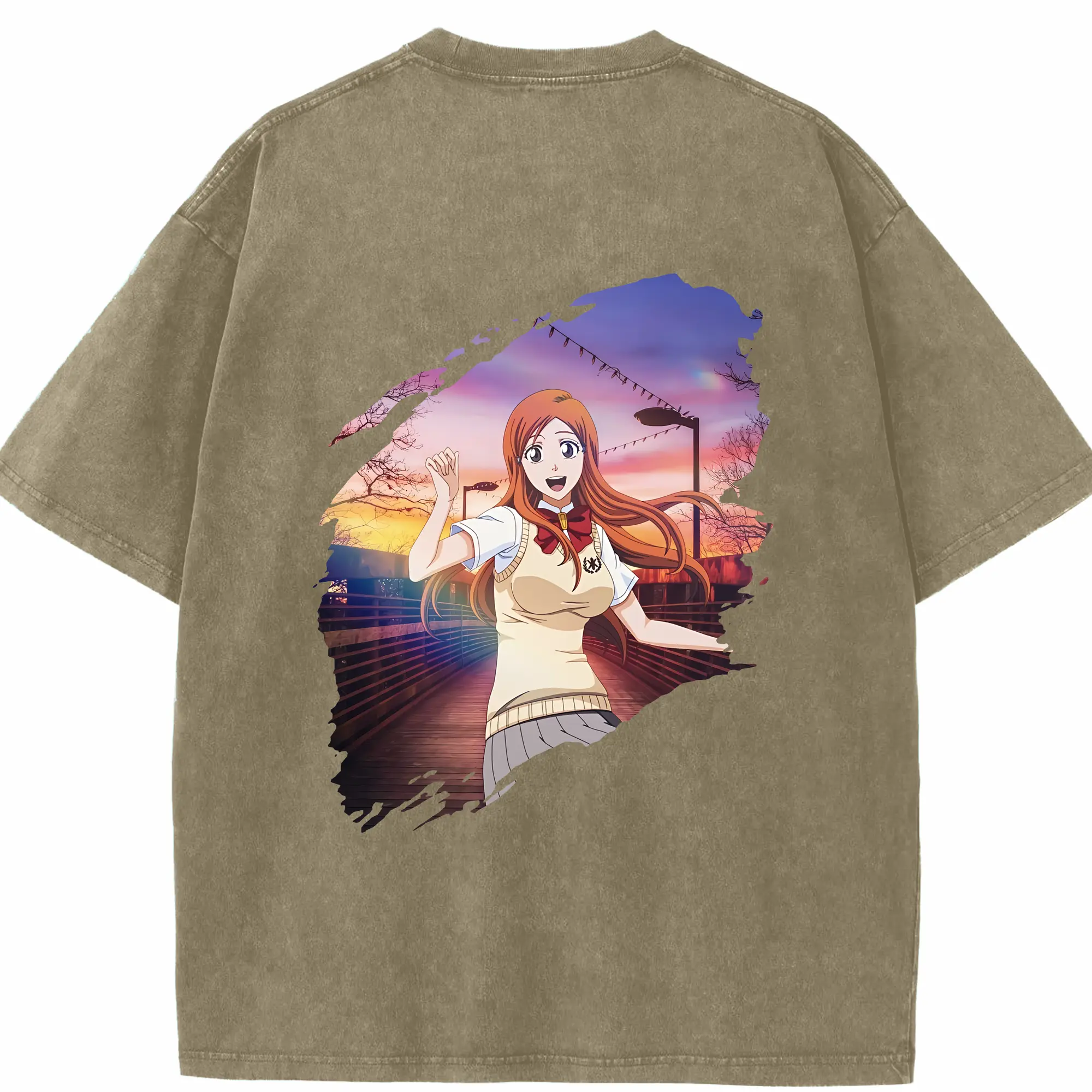 ブリーチ グッズ 井上 織姫 - 綿100% ヴィンテージ風 半袖Tシャツ ・ フロントプリント ・ 柔らか肌触り ・ 通気性 快適 ・ スポーツ カジュアル 外出用