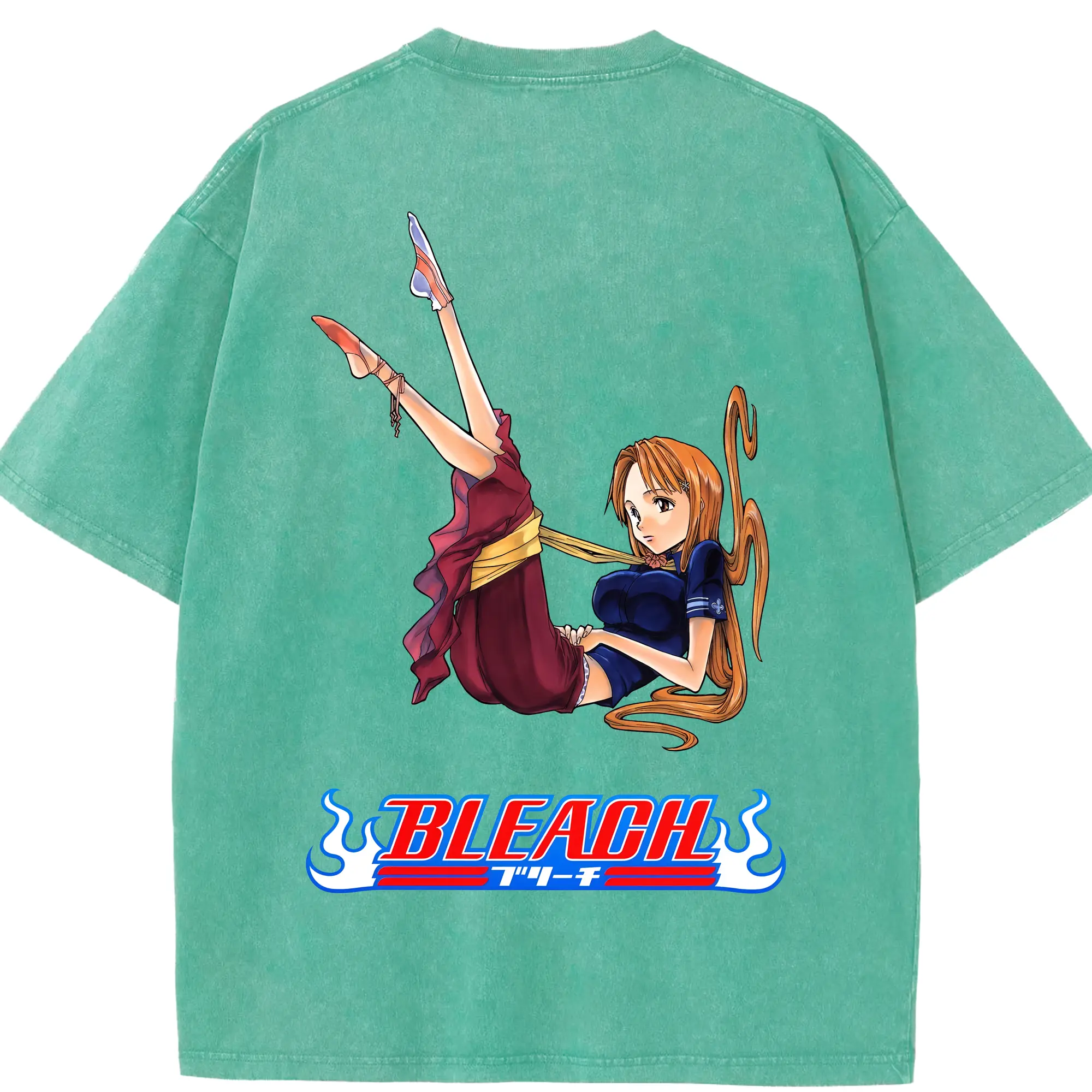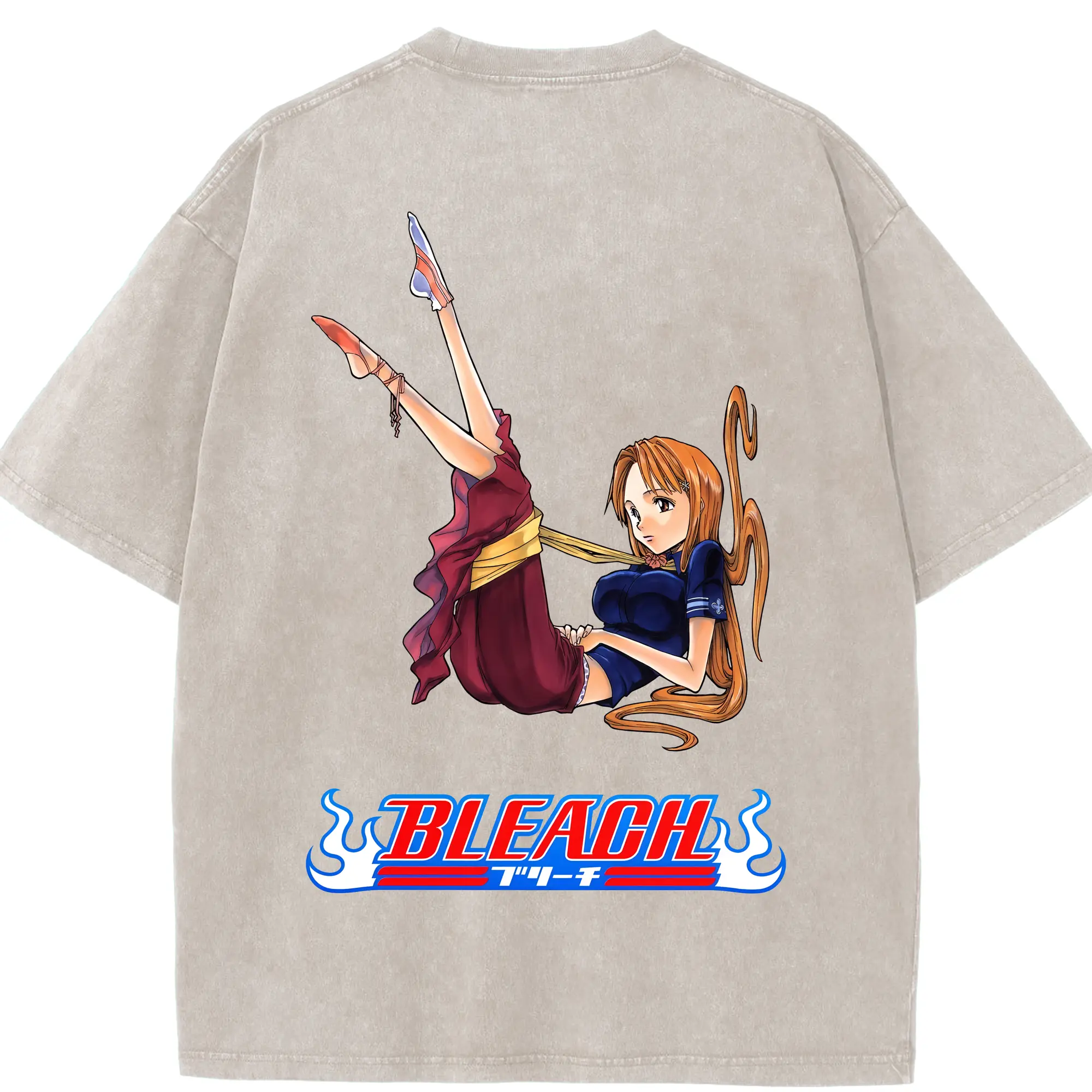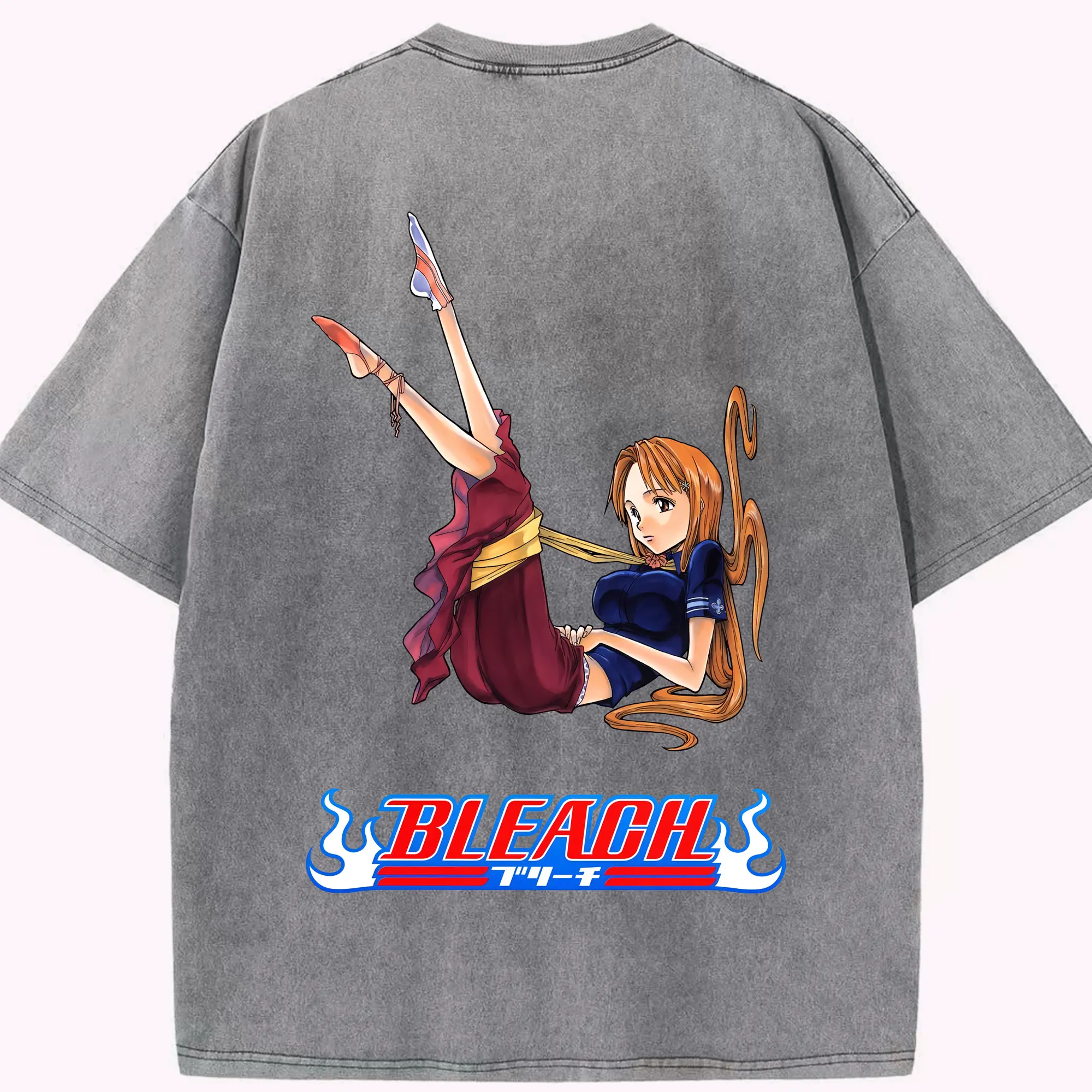 ブリーチ グッズ 井上 織姫 - 綿100% ヴィンテージ風 半袖Tシャツ ・ フロントプリント ・ 柔らか肌触り ・ 通気性 快適 ・ スポーツ カジュアル 外出用