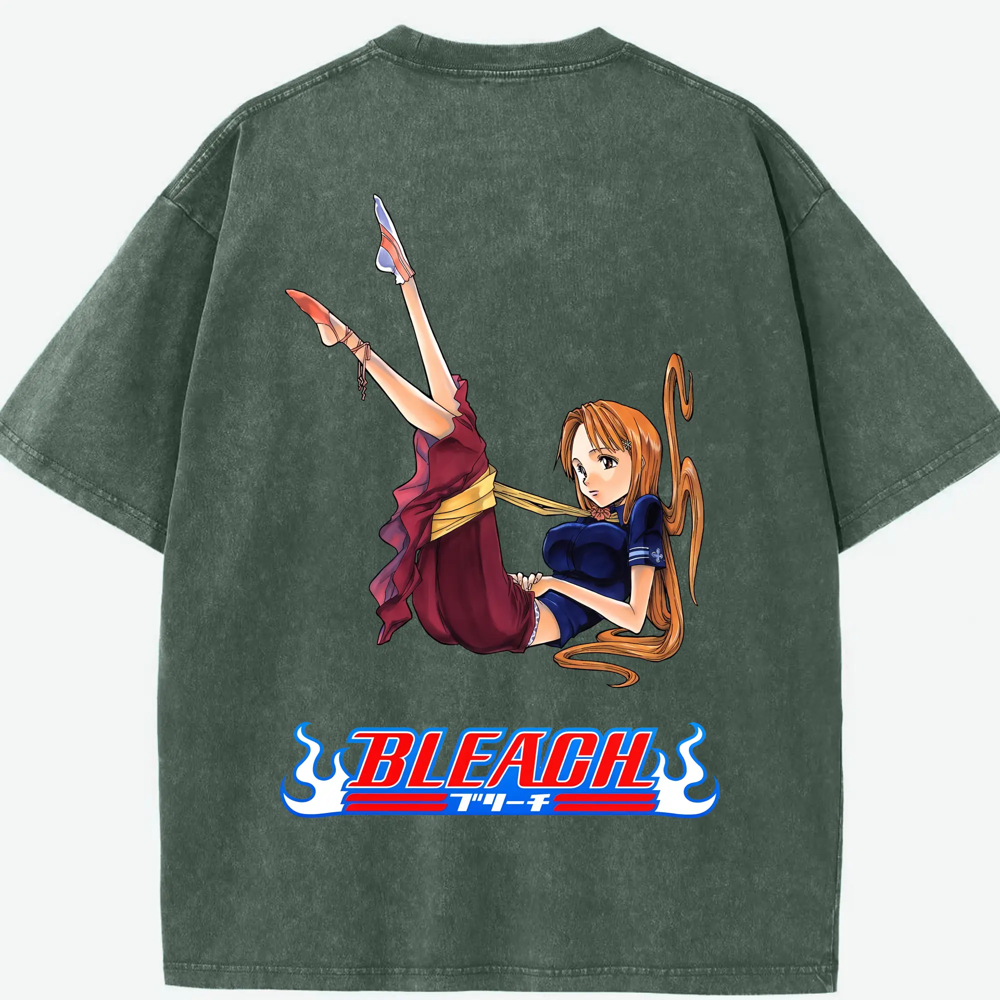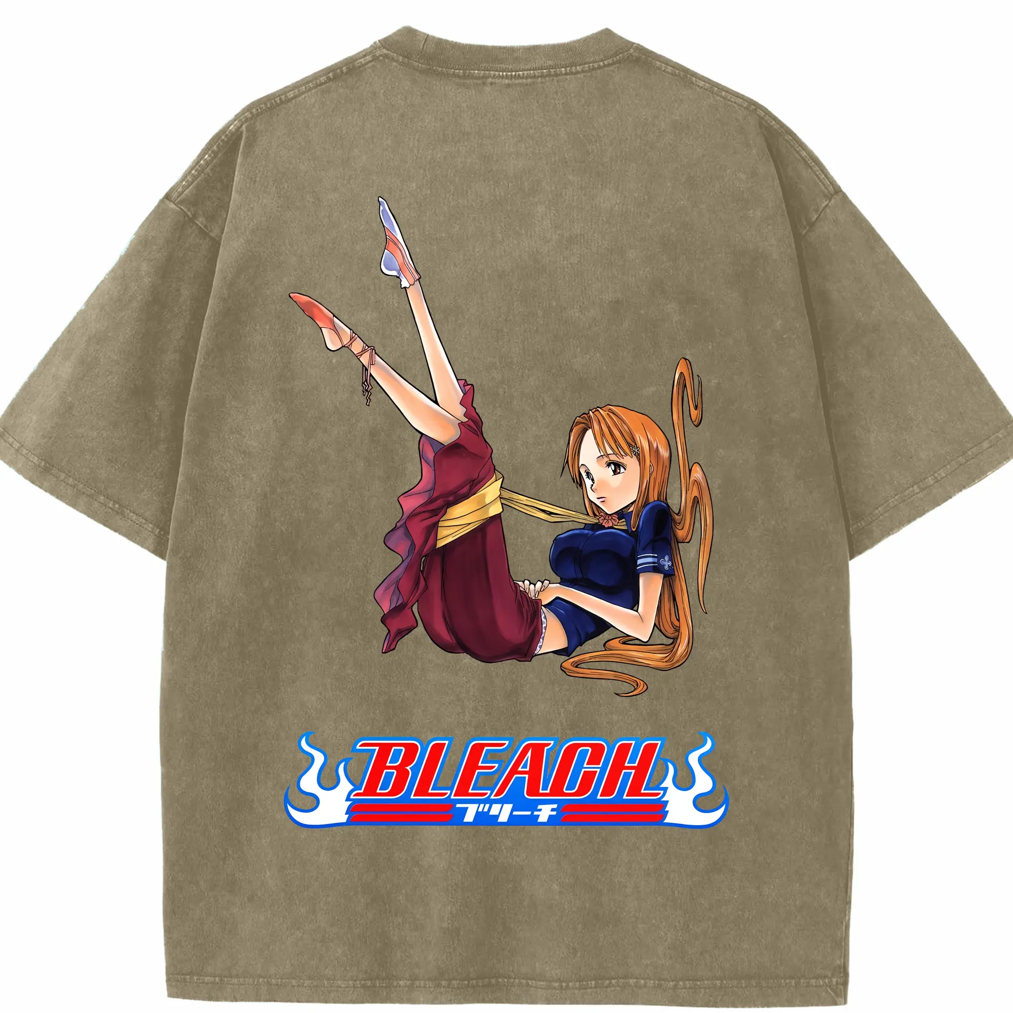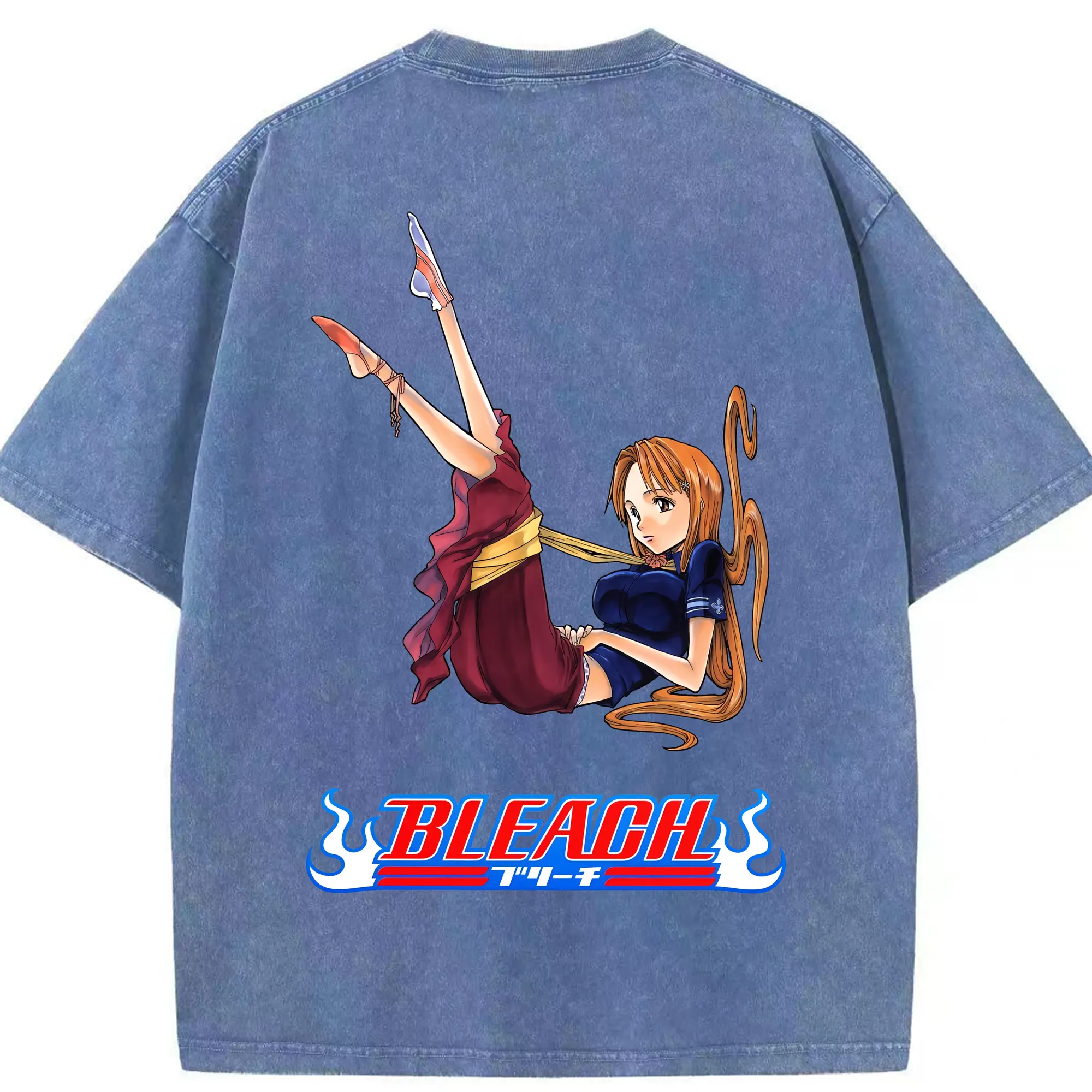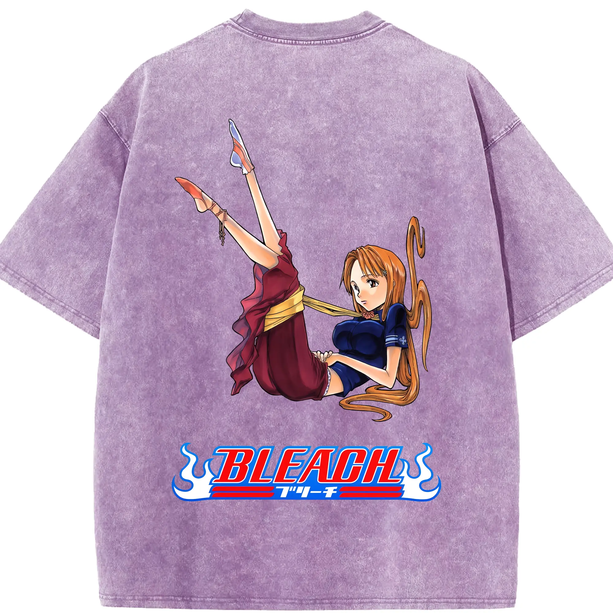 ブリーチ グッズ 井上 織姫 - 綿100% ヴィンテージ風 半袖Tシャツ ・ フロントプリント ・ 柔らか肌触り ・ 通気性 快適 ・ スポーツ カジュアル 外出用
