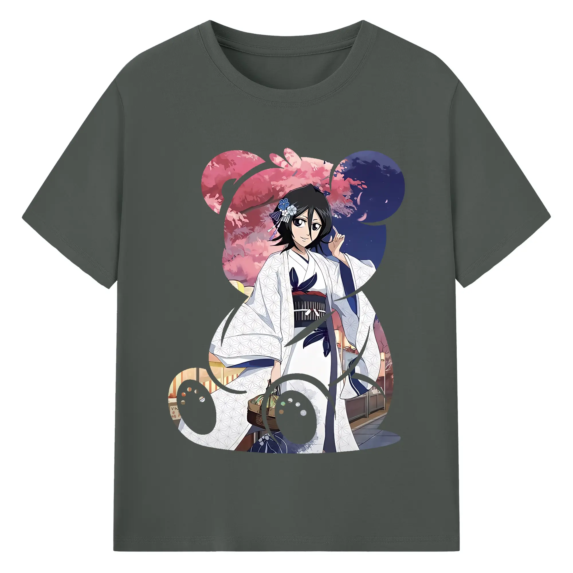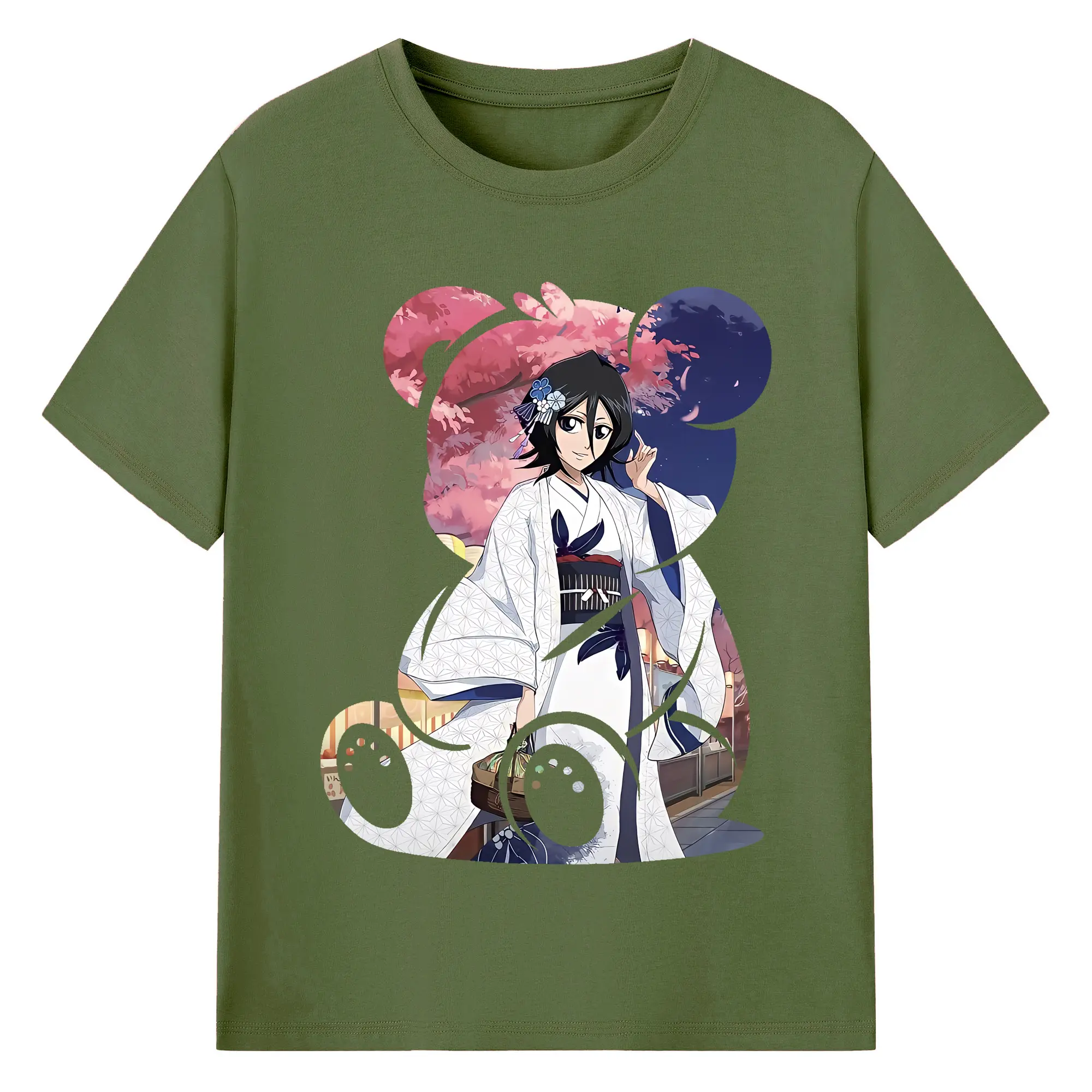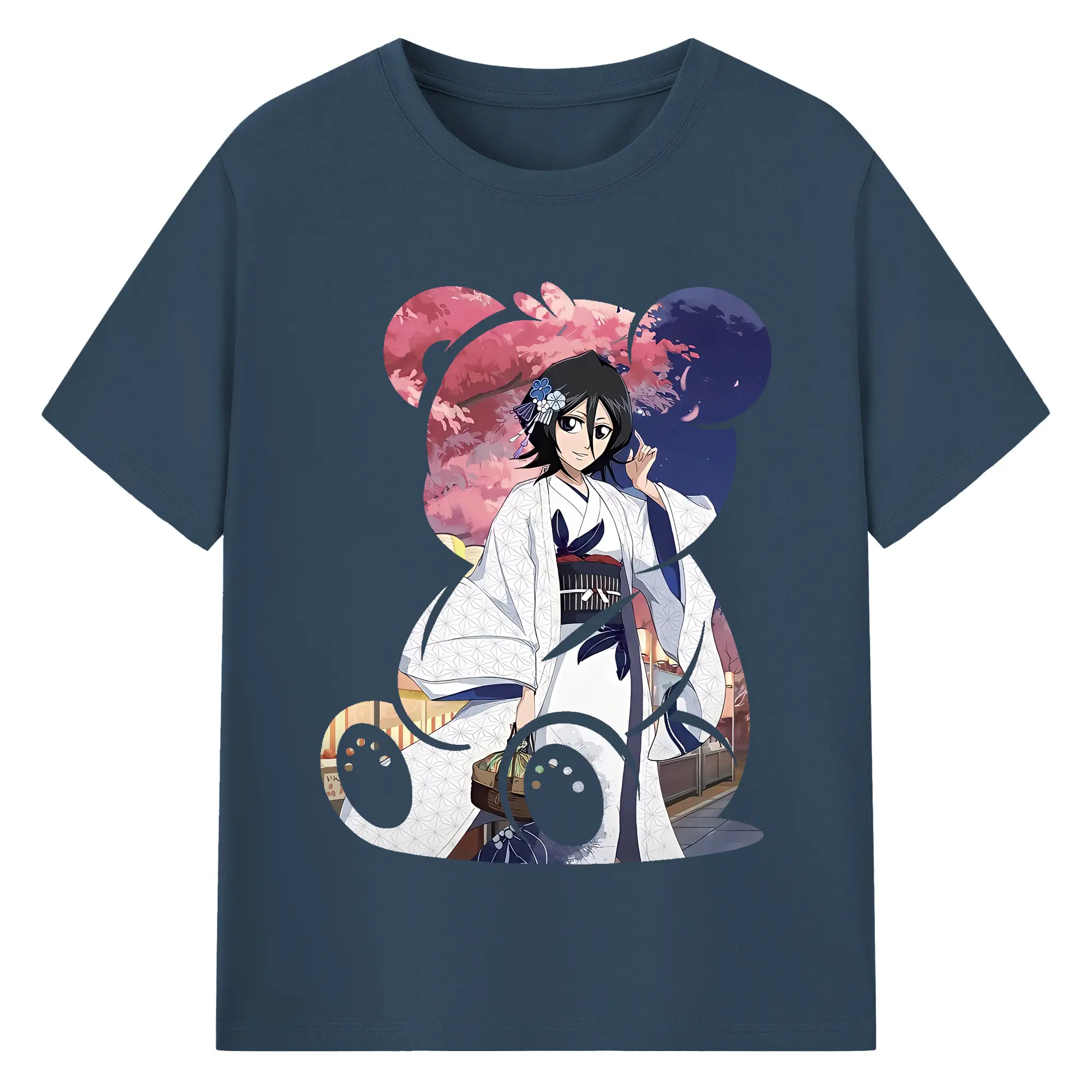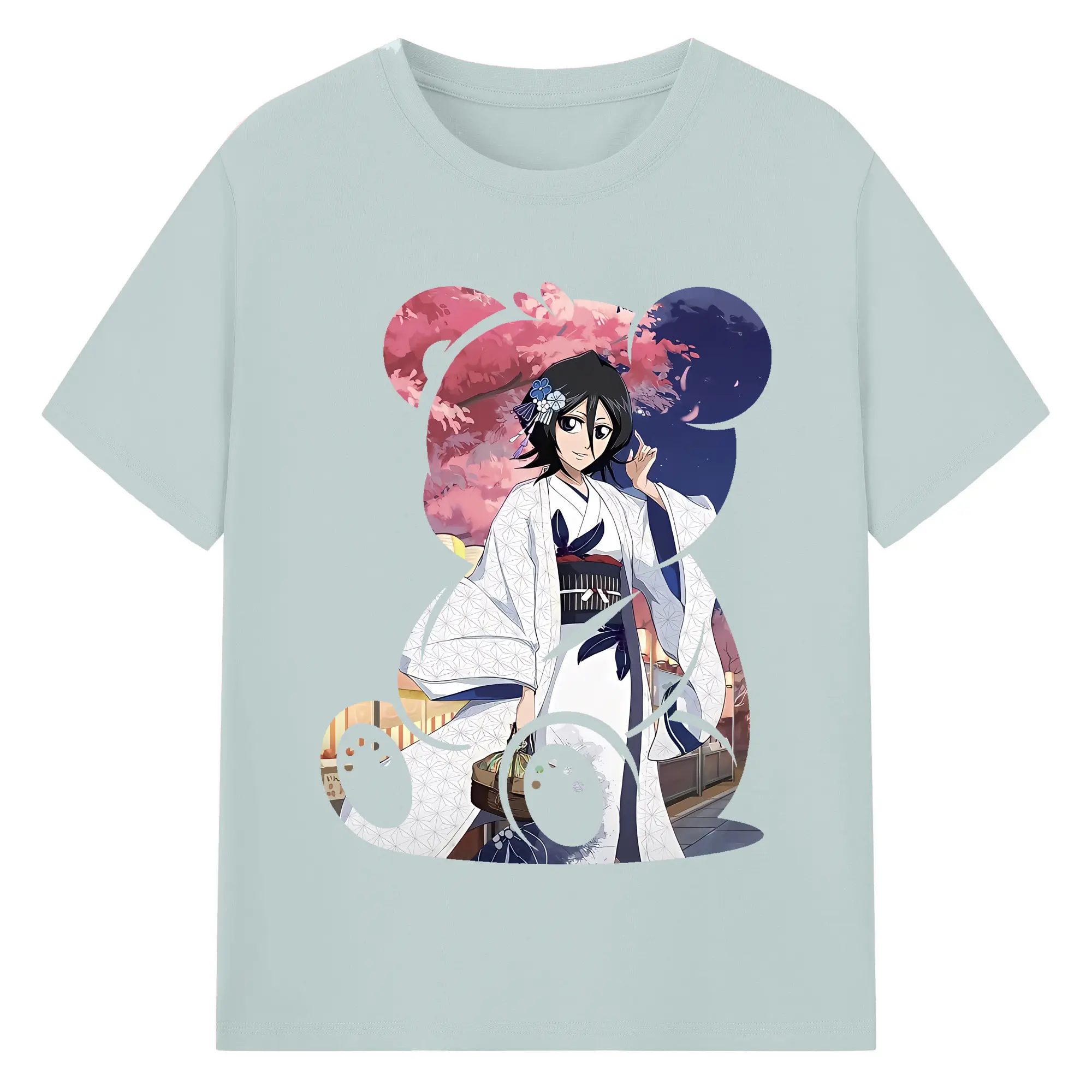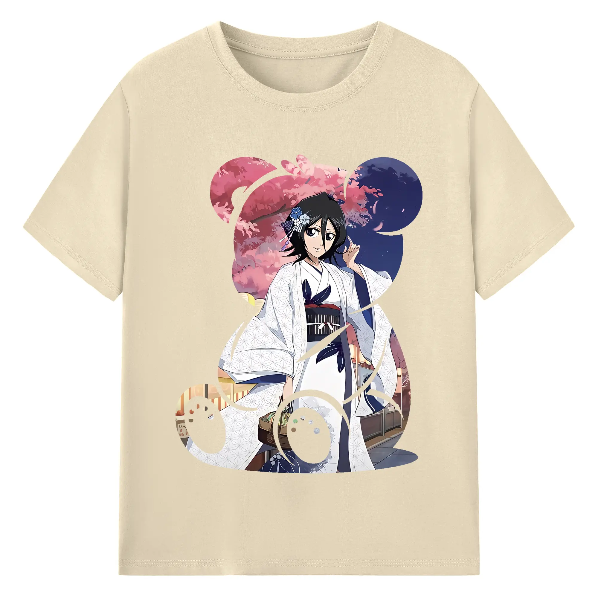ブリーチ グッズ 朽木 ルキア - 綿100% ヴィンテージ風 半袖Tシャツ ・ フロントプリント ・ 柔らか肌触り ・ 通気性 快適 ・ スポーツ カジュアル 外出用
