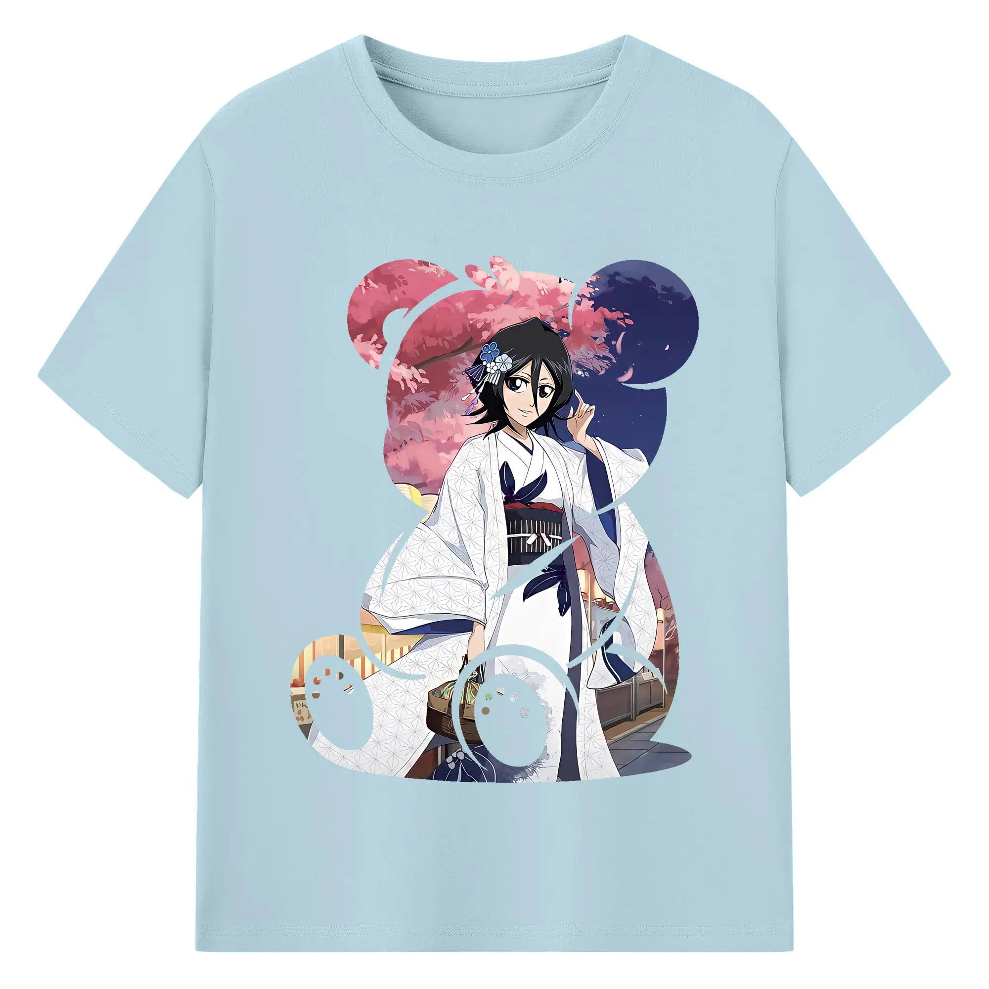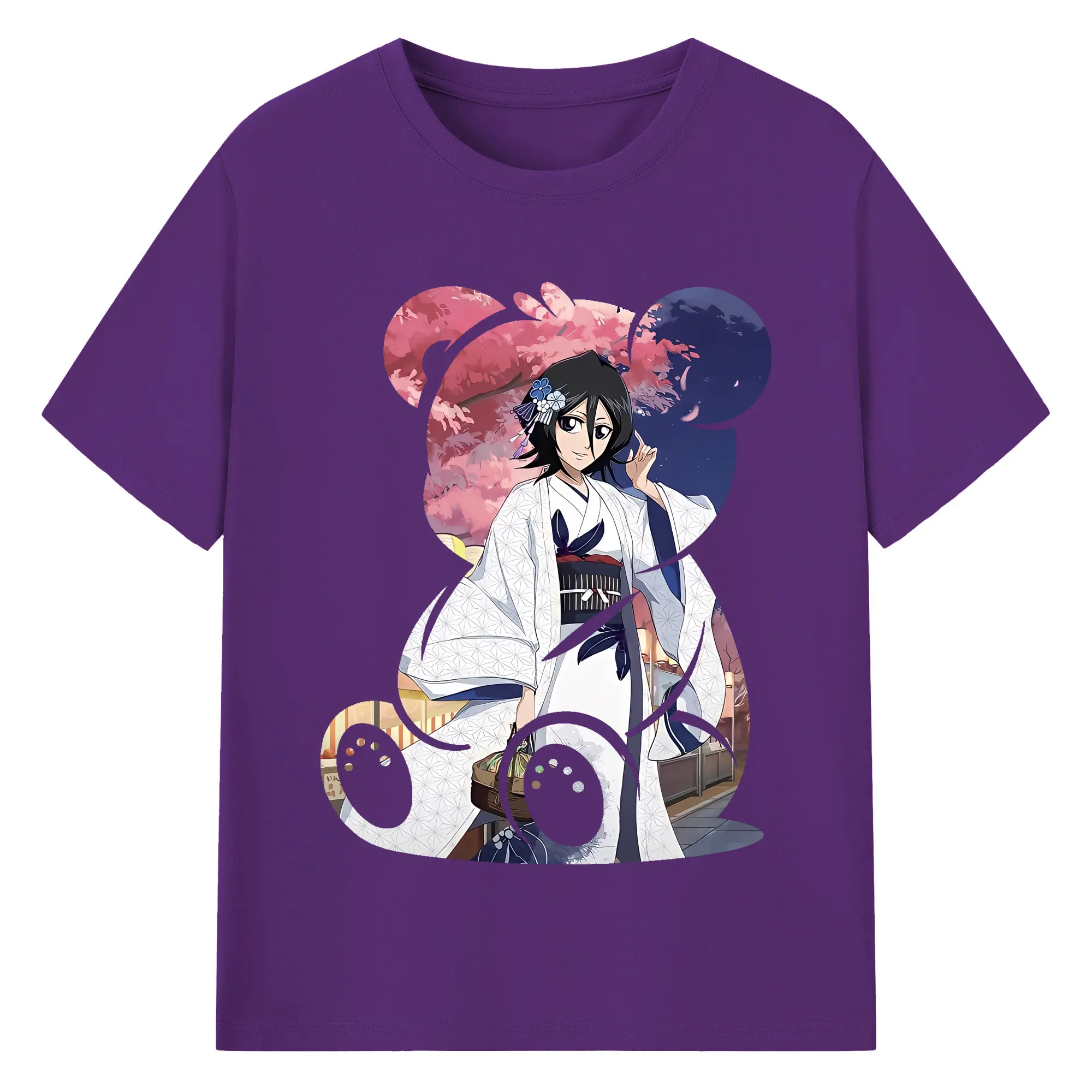 ブリーチ グッズ 朽木 ルキア - 綿100% 半袖Tシャツ ・ バックプリント ・ 快適 通気性 ・ 日常使い 散歩 スポーツ用