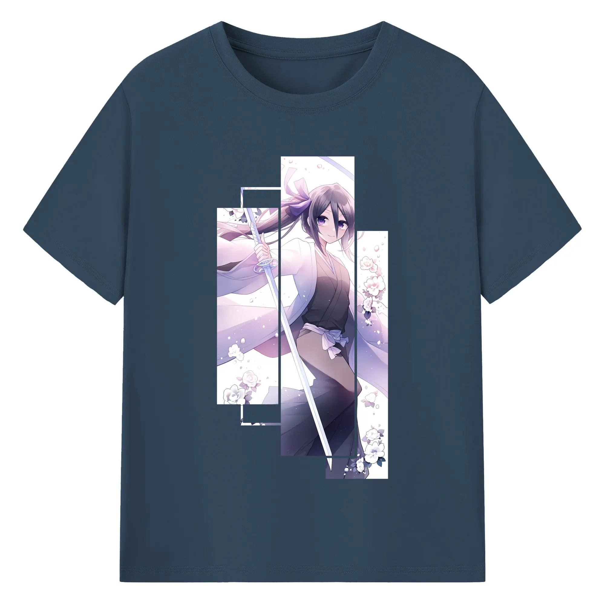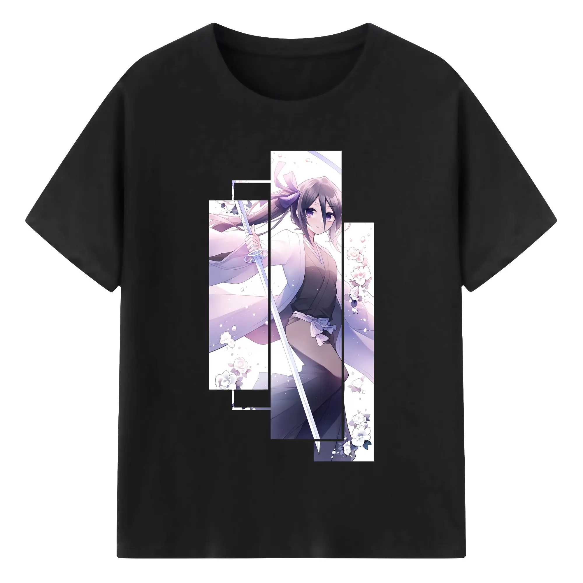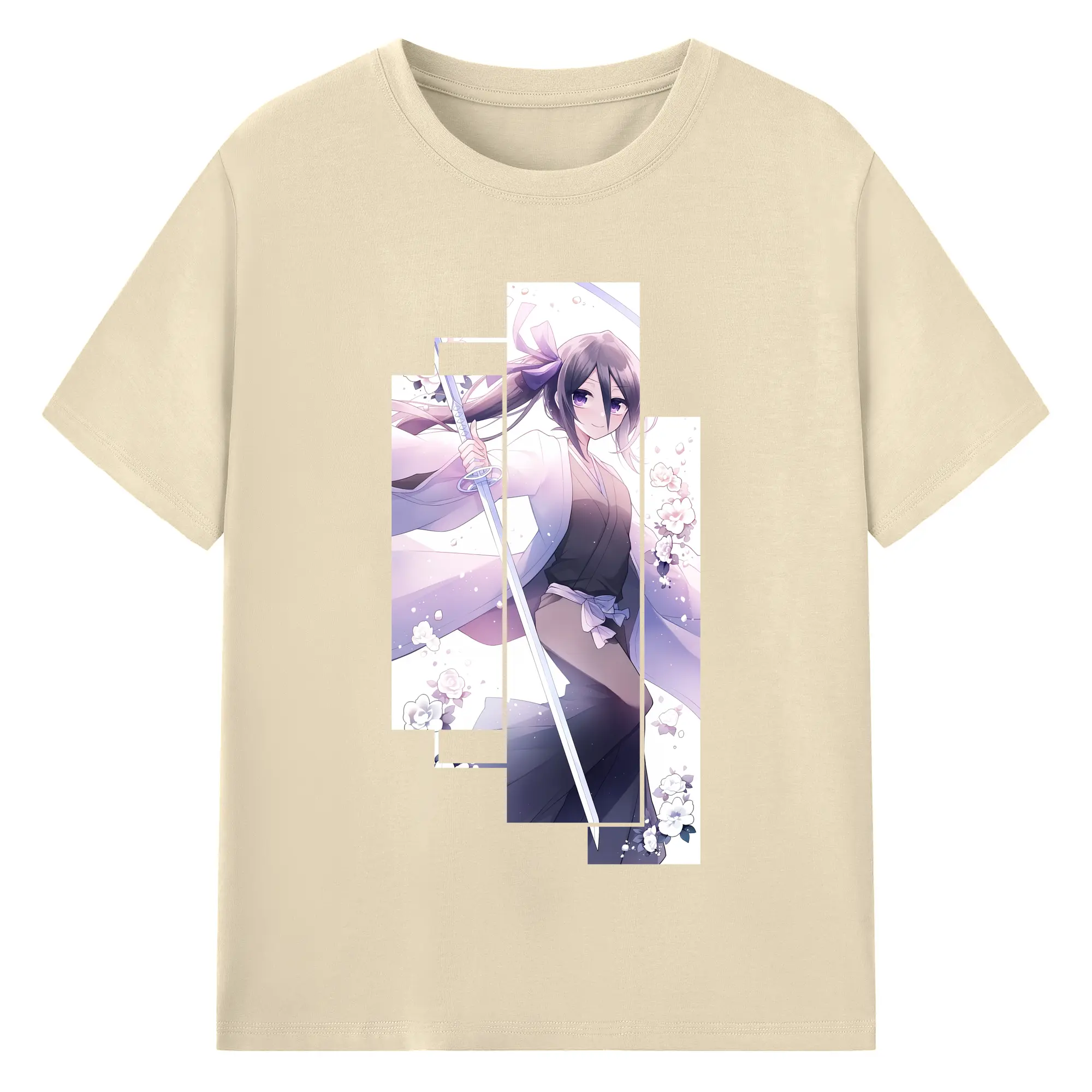 ブリーチ グッズ 朽木 ルキア - 綿100% ヴィンテージ風 半袖Tシャツ ・ フロントプリント ・ 柔らか肌触り ・ 通気性 快適 ・ スポーツ カジュアル 外出用