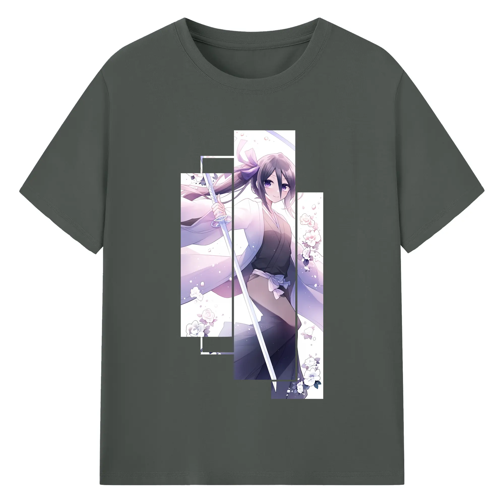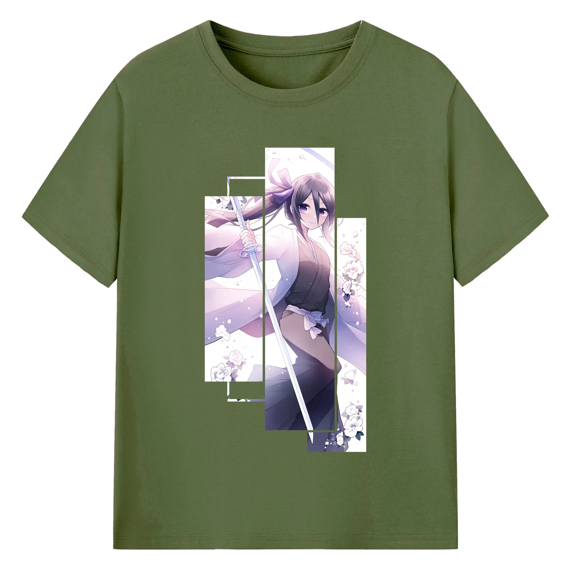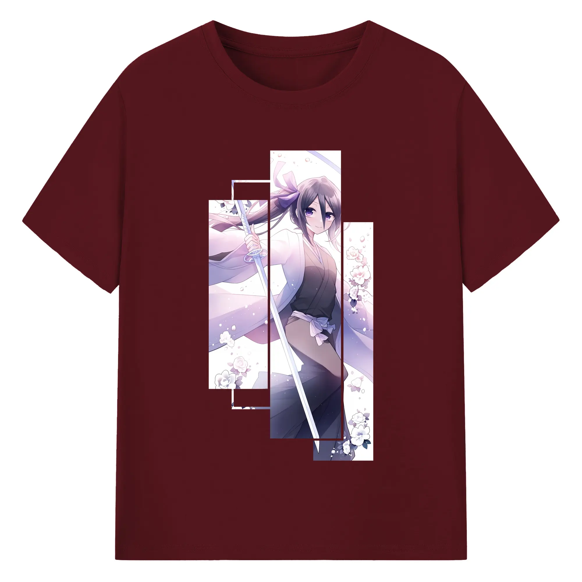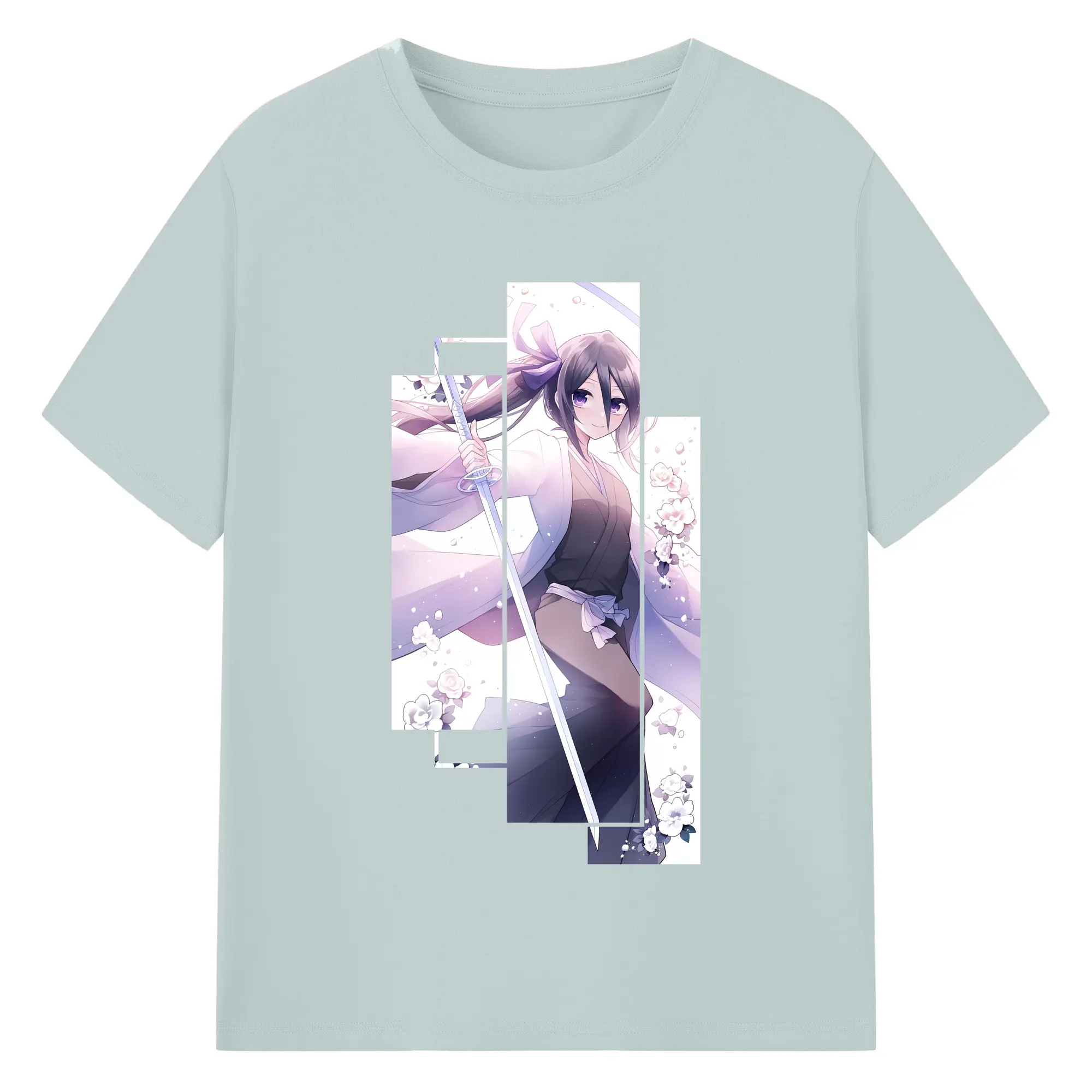 ブリーチ グッズ 朽木 ルキア - 綿100% ヴィンテージ風 半袖Tシャツ ・ フロントプリント ・ 柔らか肌触り ・ 通気性 快適 ・ スポーツ カジュアル 外出用