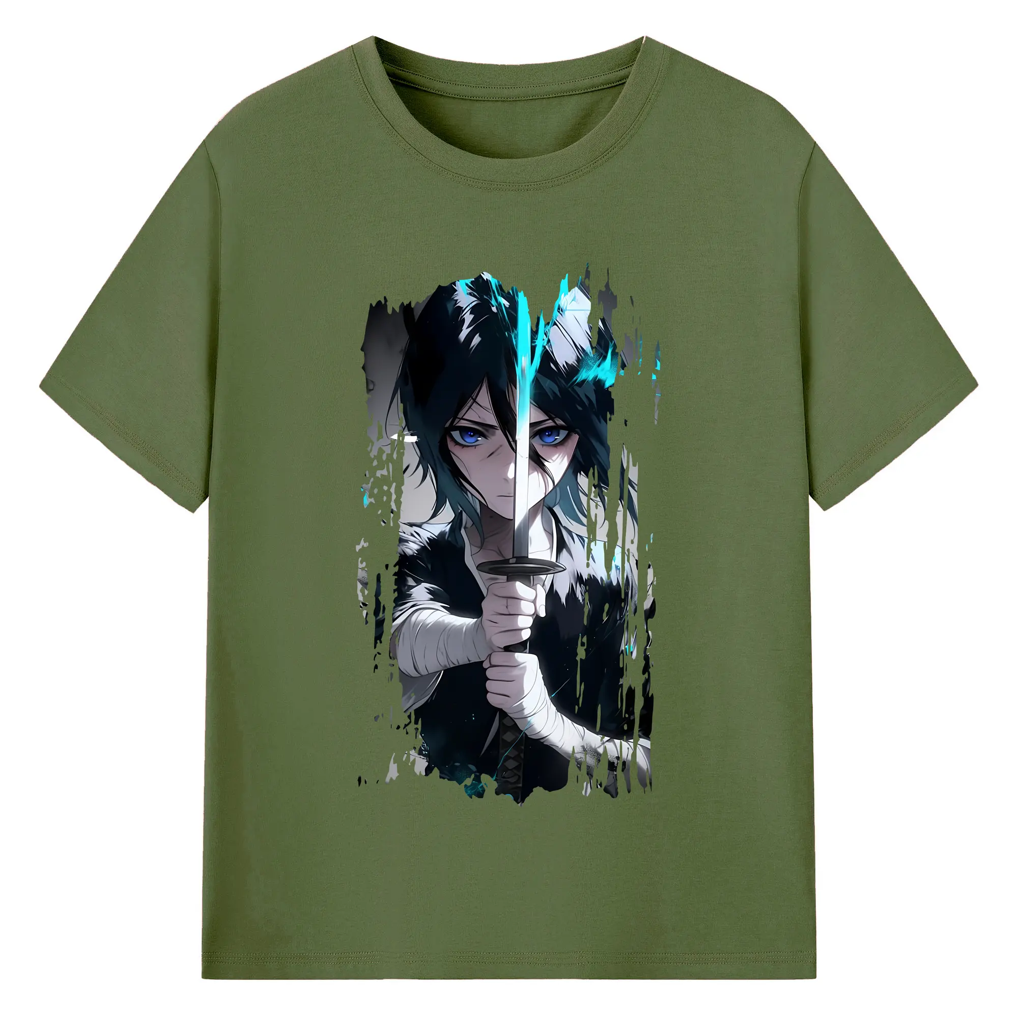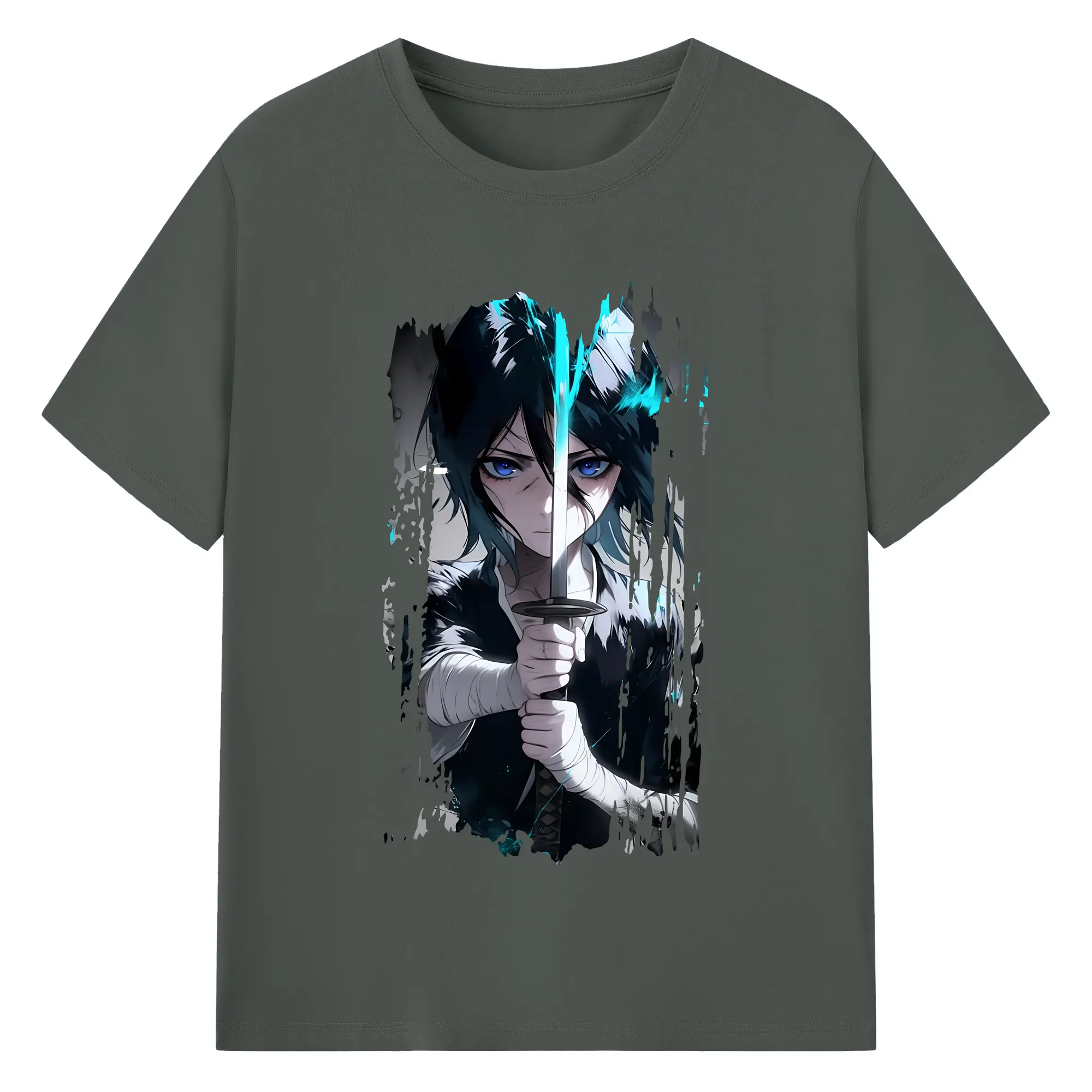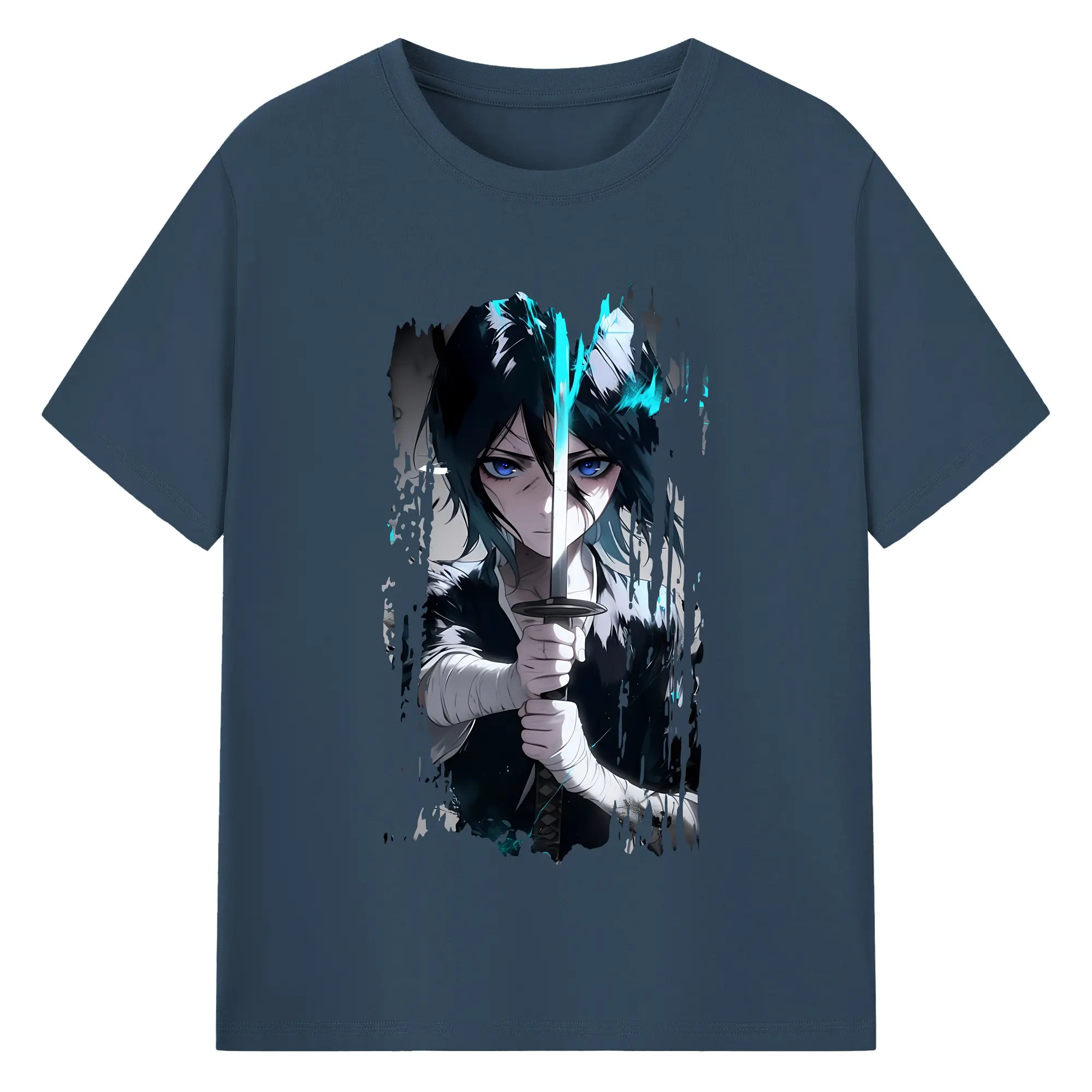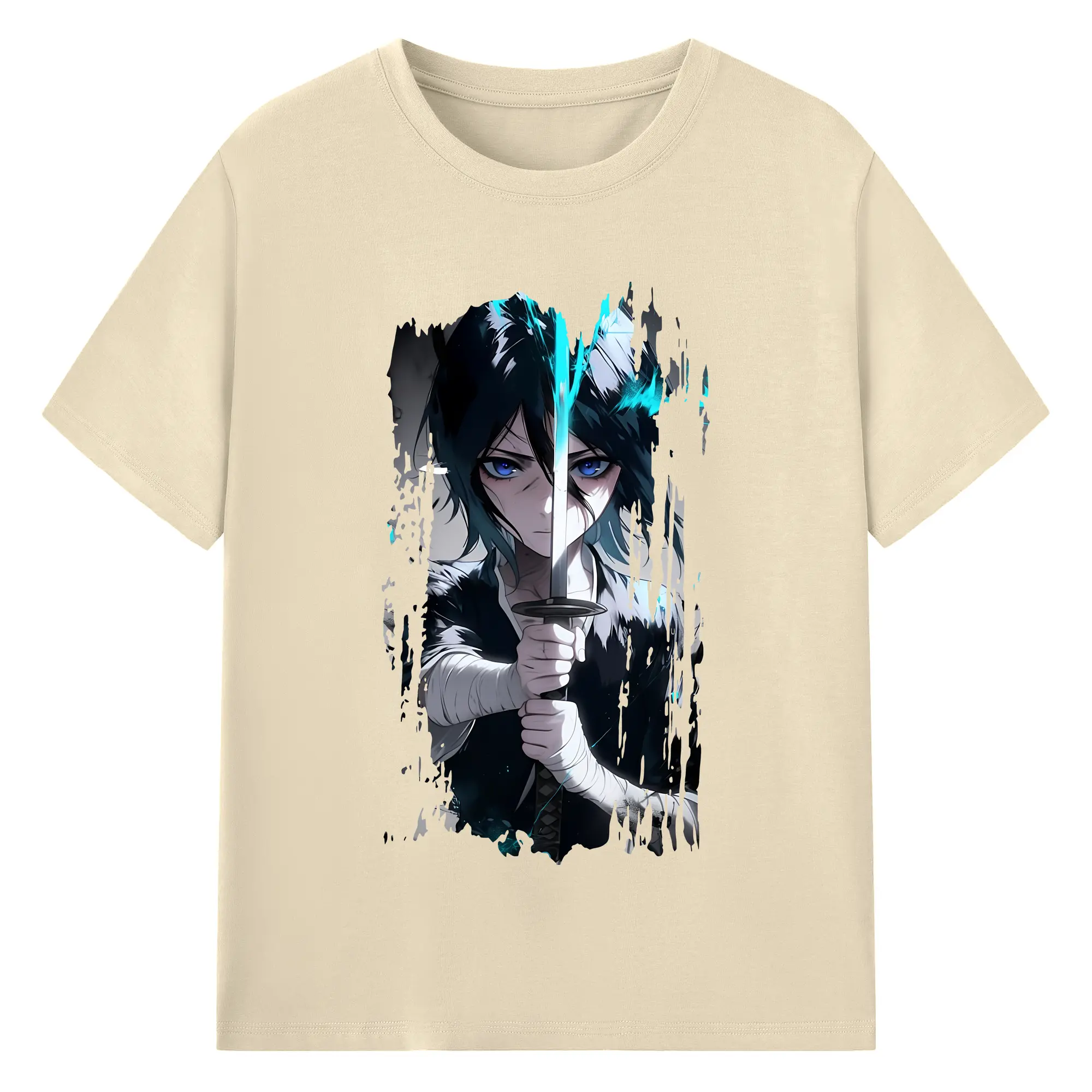 ブリーチ グッズ 朽木 ルキア - 綿100% ヴィンテージ風 半袖Tシャツ ・ フロントプリント ・ 柔らか肌触り ・ 通気性 快適 ・ スポーツ カジュアル 外出用