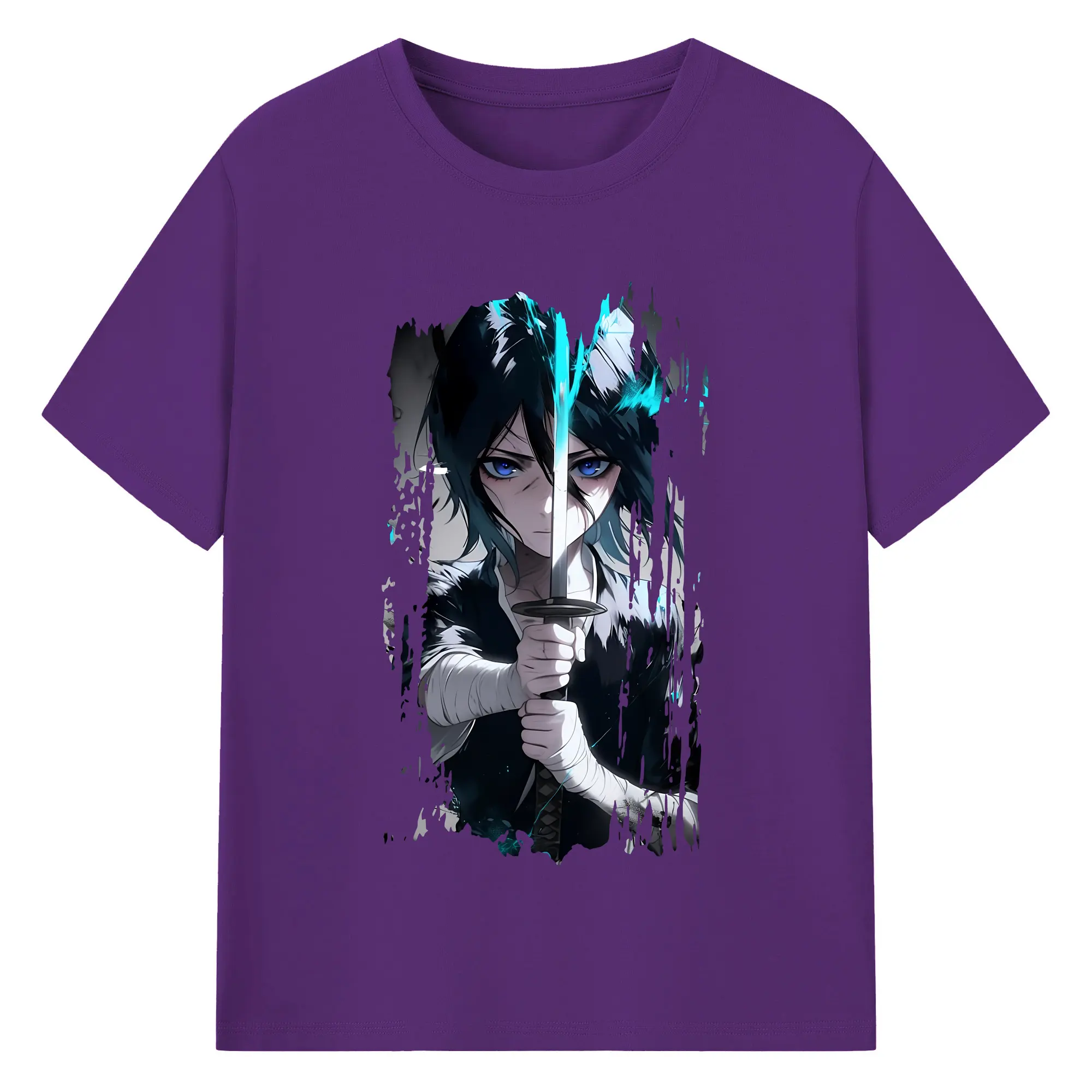 ブリーチ グッズ 朽木 ルキア - 綿100% 半袖Tシャツ ・ バックプリント ・ 快適 通気性 ・ 日常使い 散歩 スポーツ用